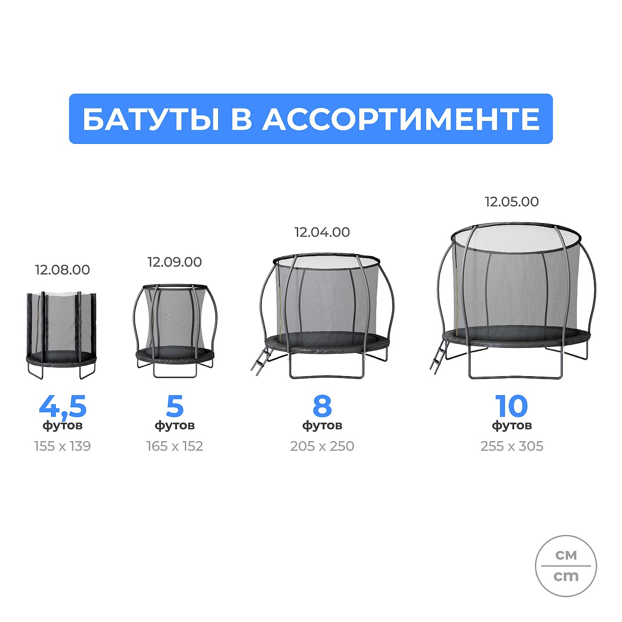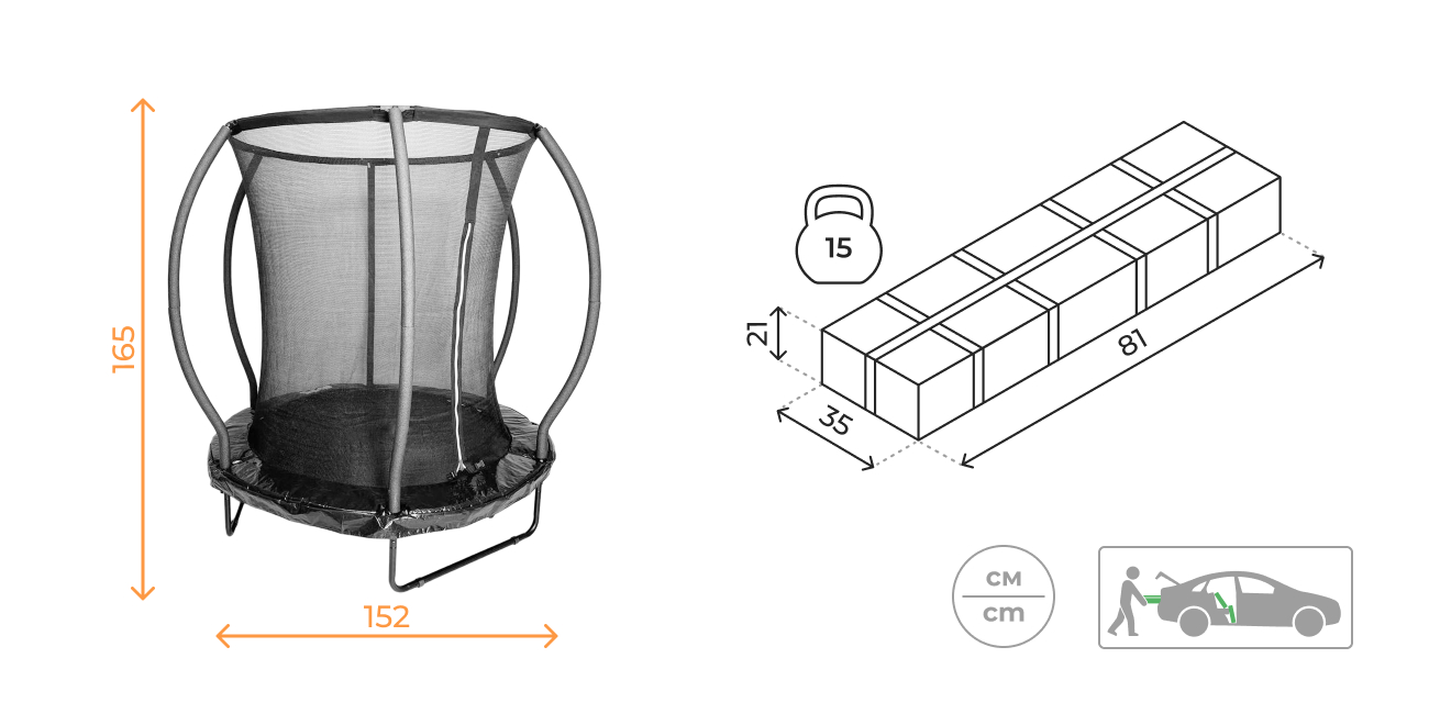 Батут легко собирается и разбирается, поэтому его удобно хранить и перевозить, в разобранном виде легко помещается в багажник автомобиля.