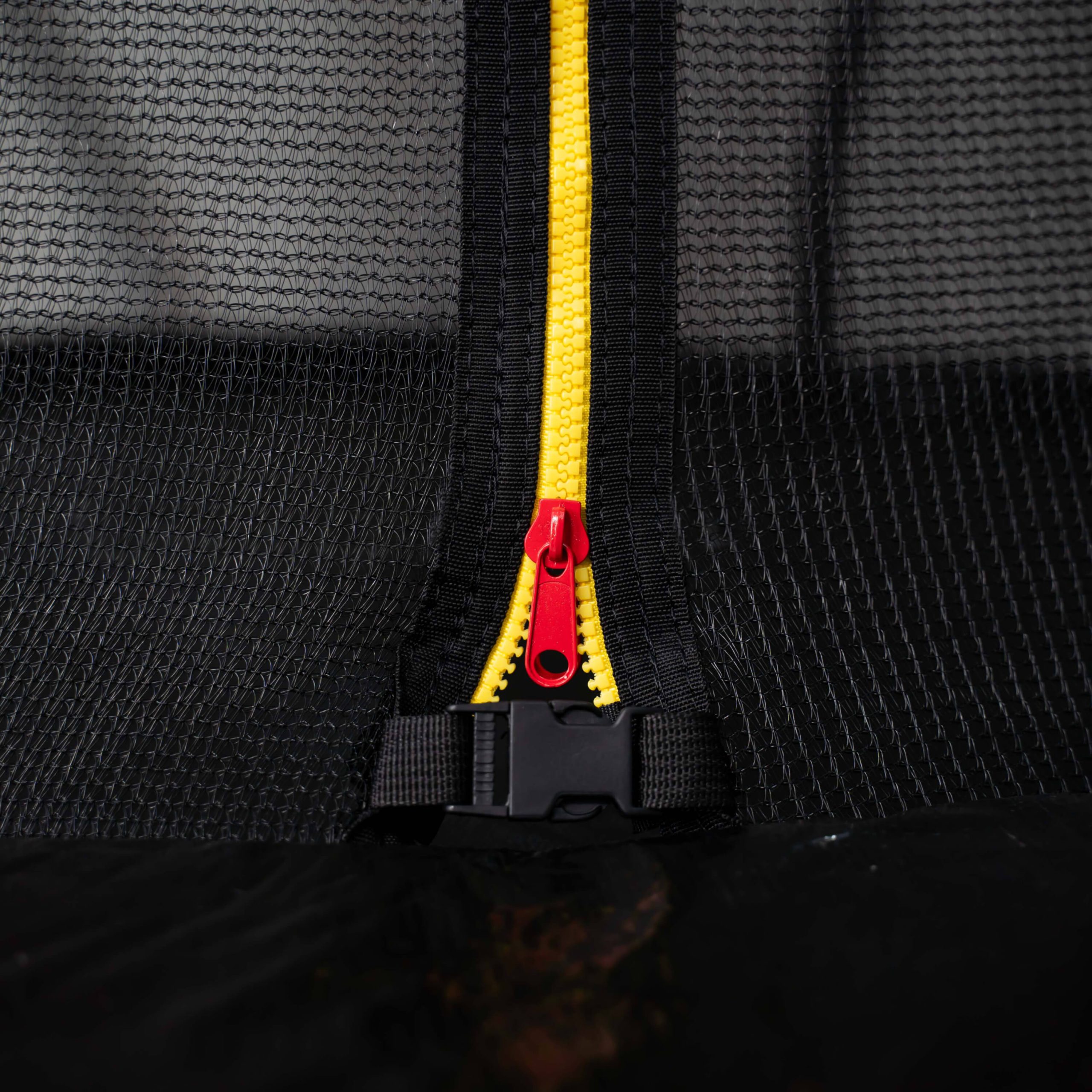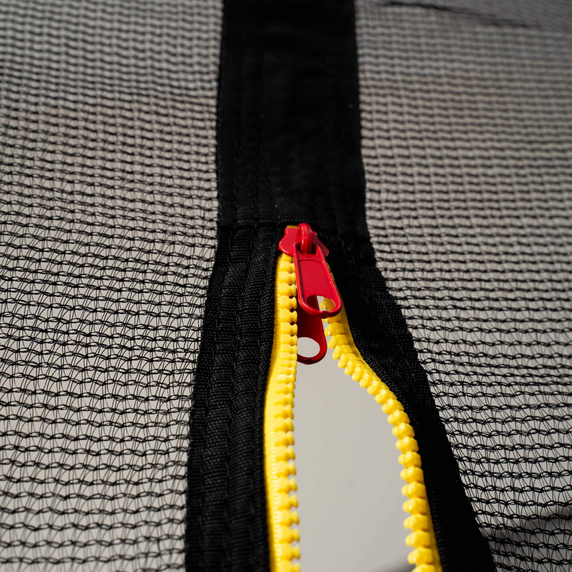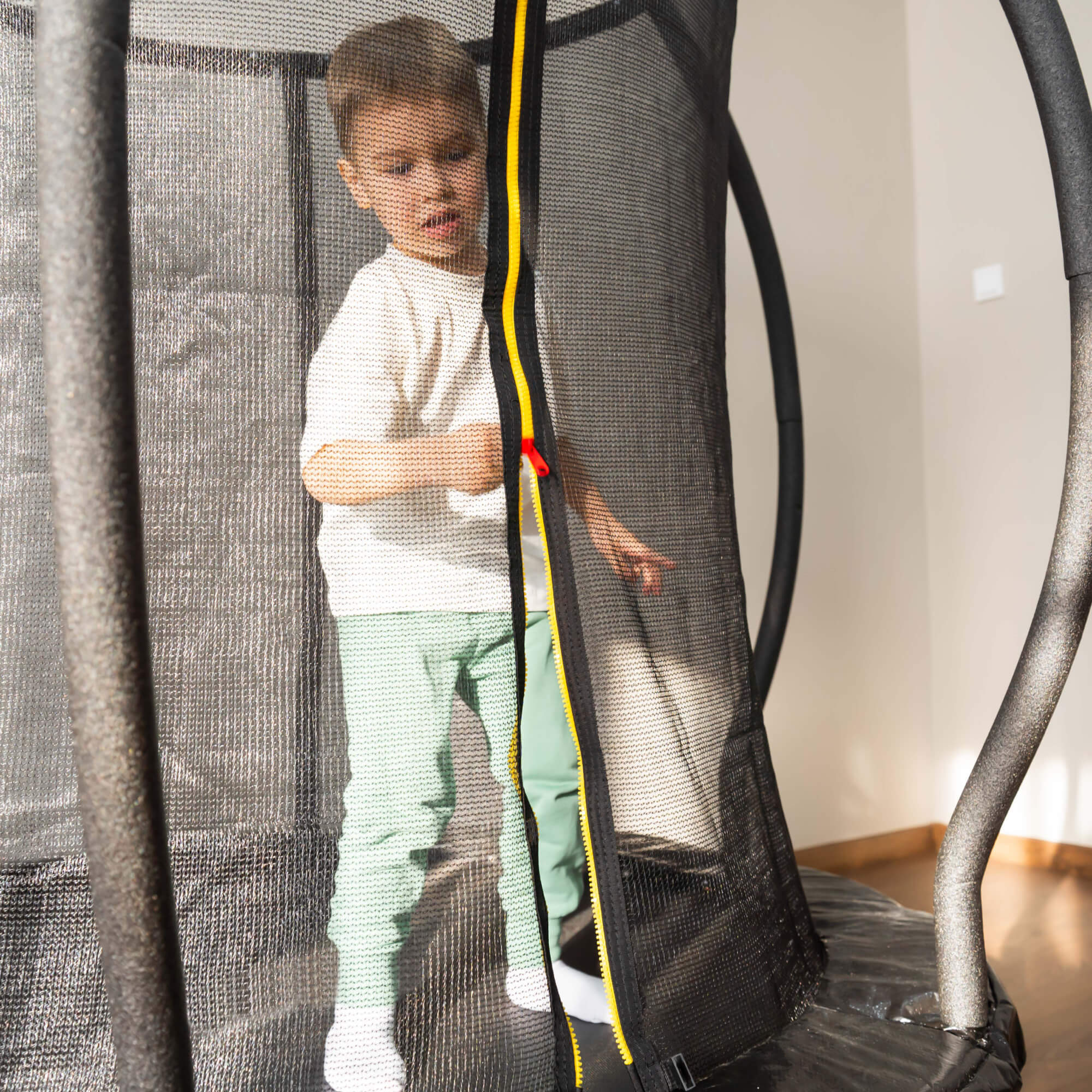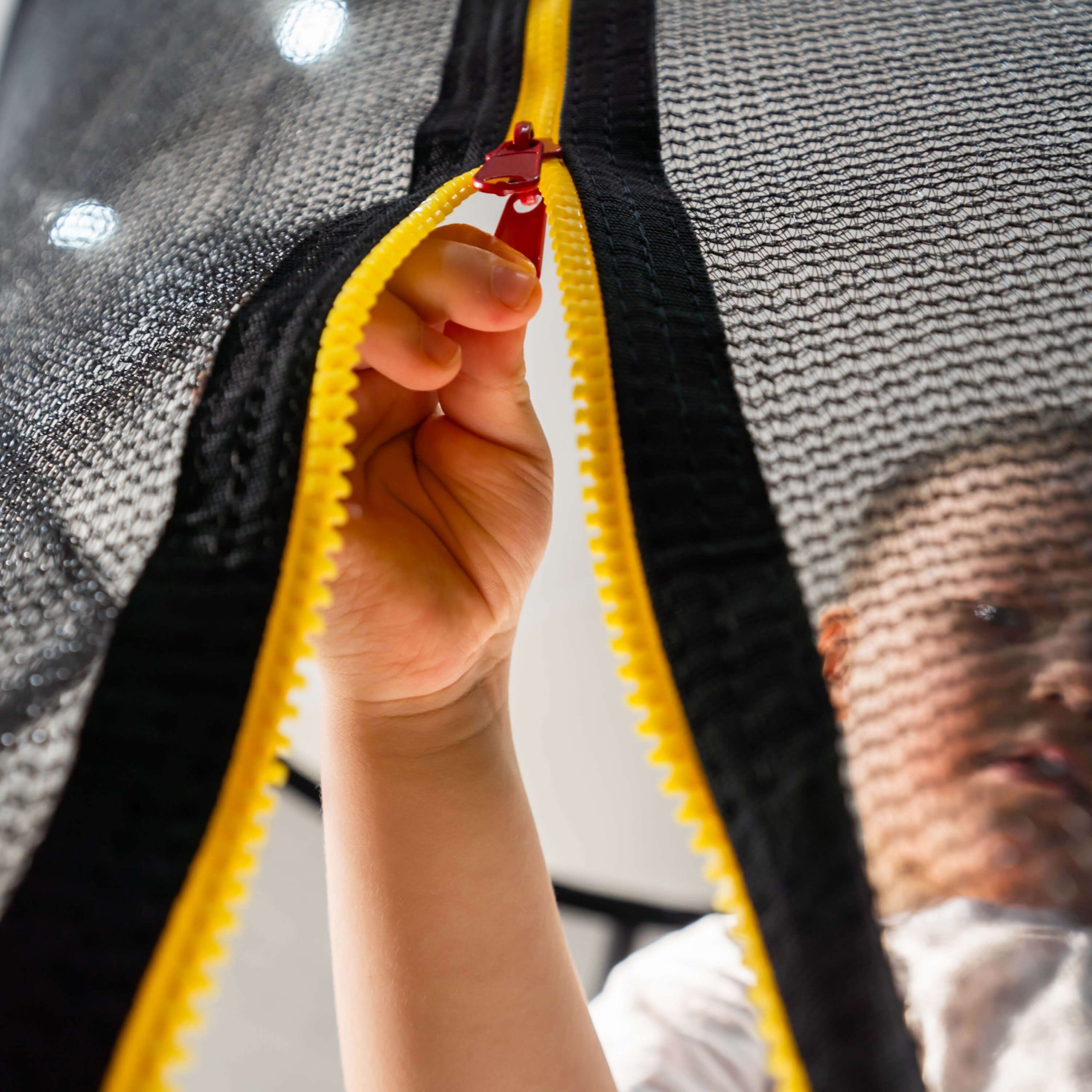 Защитная сетка обеспечивает безопасность ребенка, предотвращает падения. Стойки, покрытые мягким материалом, также предохраняют от ударов во время прыжков. Попасть внутрь можно с помощью двустороннего замка-молнии.