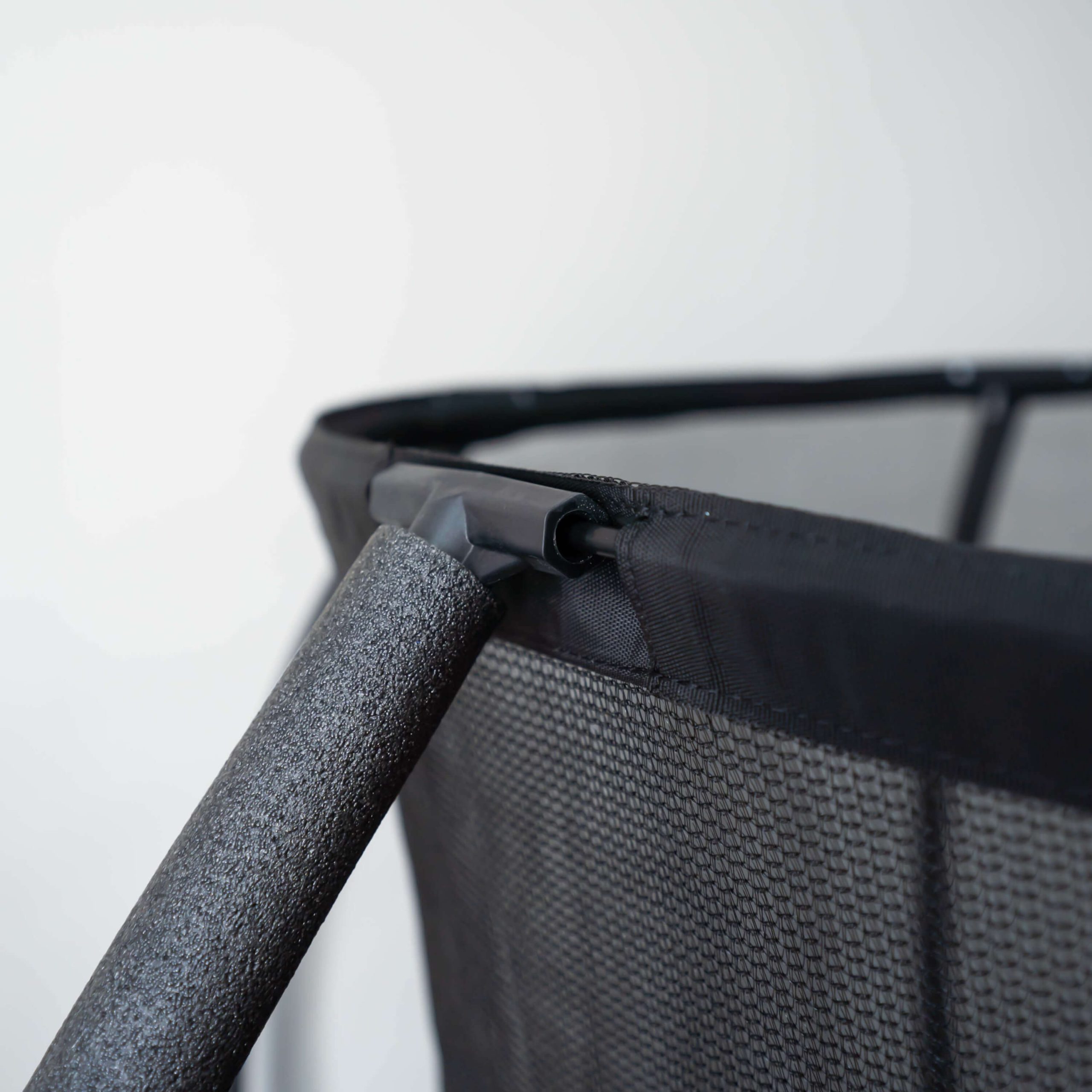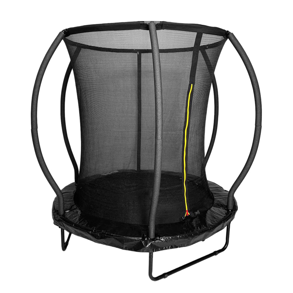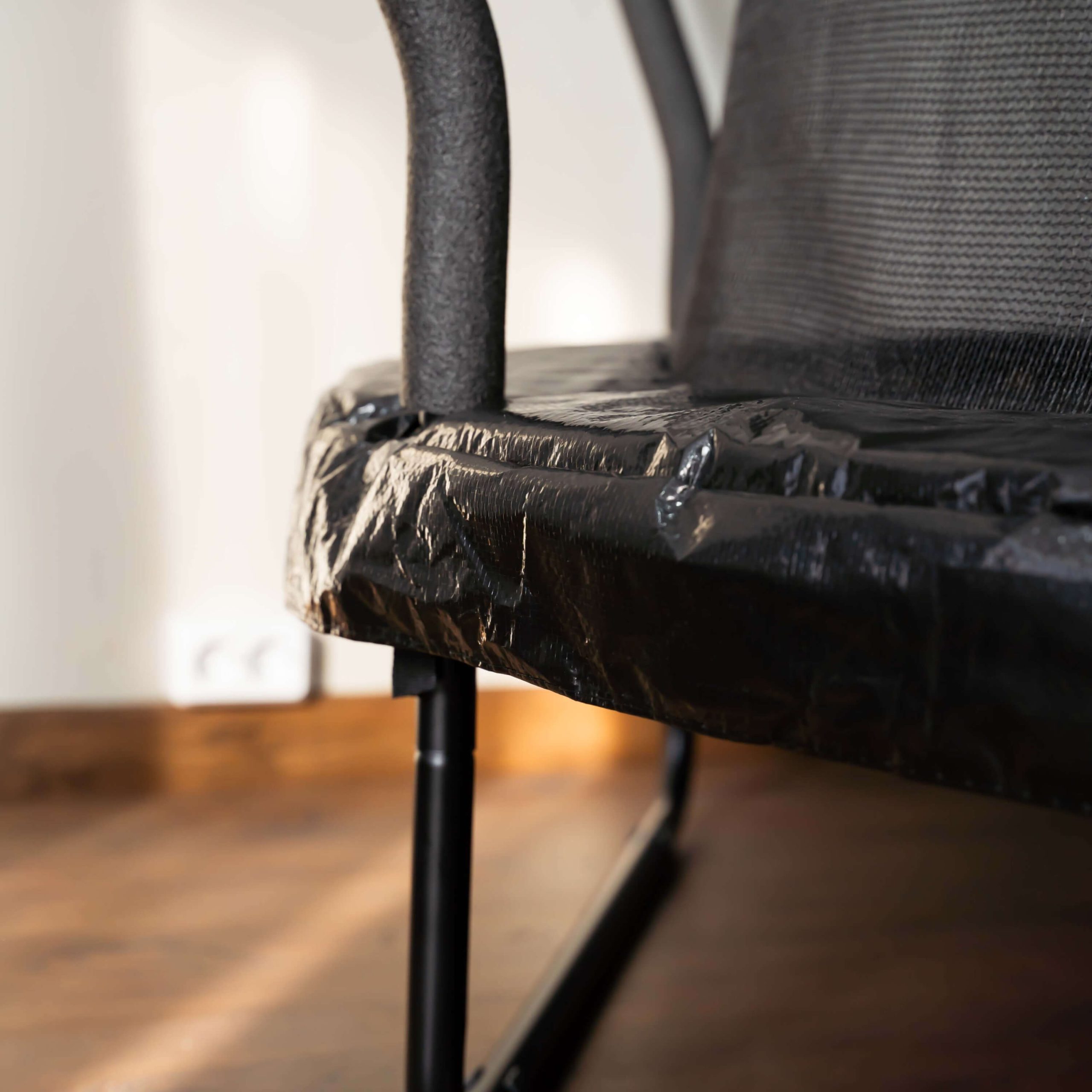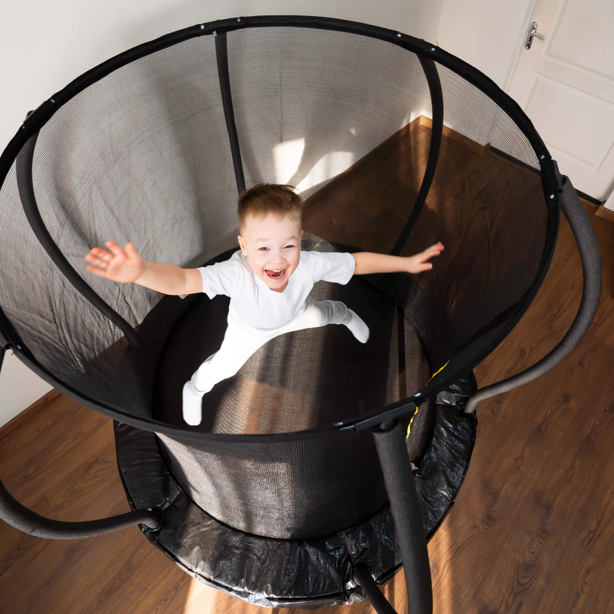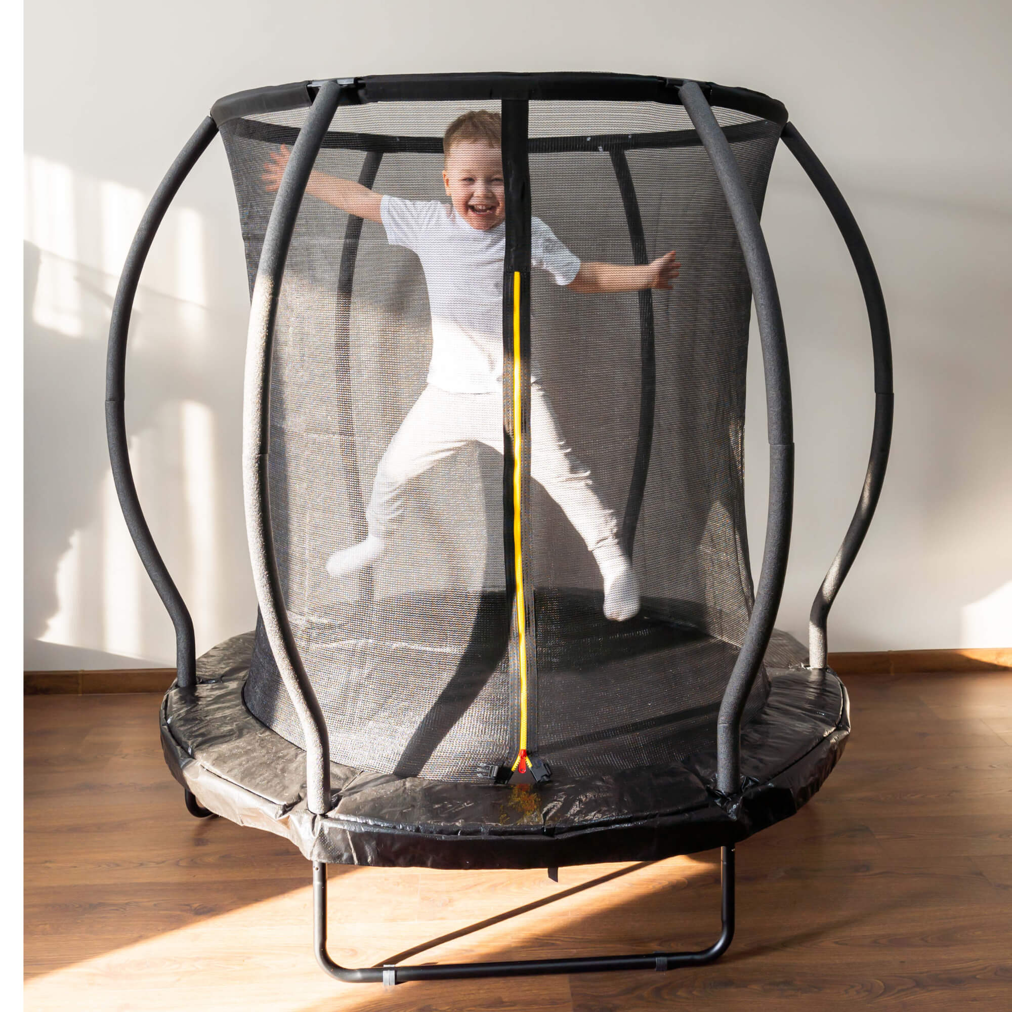 Прочная высокая сетка, тщательно натянутое упругое полотно, закрытые полотном пружины гарантируют максимальную безопасность детей во время джампинга, а накладки на ножки защищают пол от царапин. Качественные материалы обеспечивают долговечность и надежность конструкции, а также позволяют использовать батут не только как домашний, но и уличный.