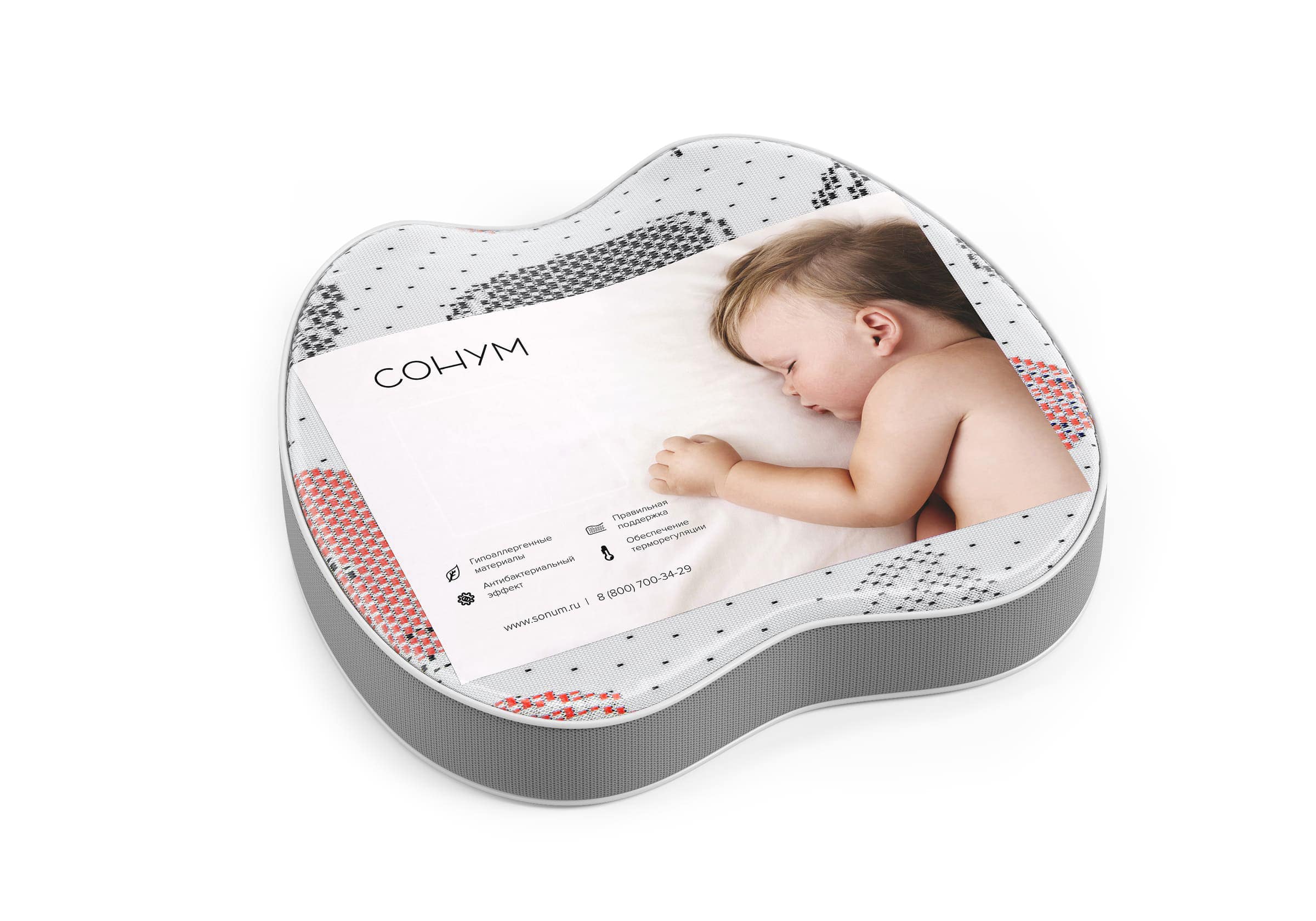 Благодаря форме с выемкой под голову и материалу с эффектом памяти (memory foam), подушка Tiny деликатно поддерживает шею и голову ребенка. Способствует правильному развитию шейного отдела позвоночника у малышей, учитывает их анатомо-физиологические особенности. Для детей от 0 до 12 месяцев.