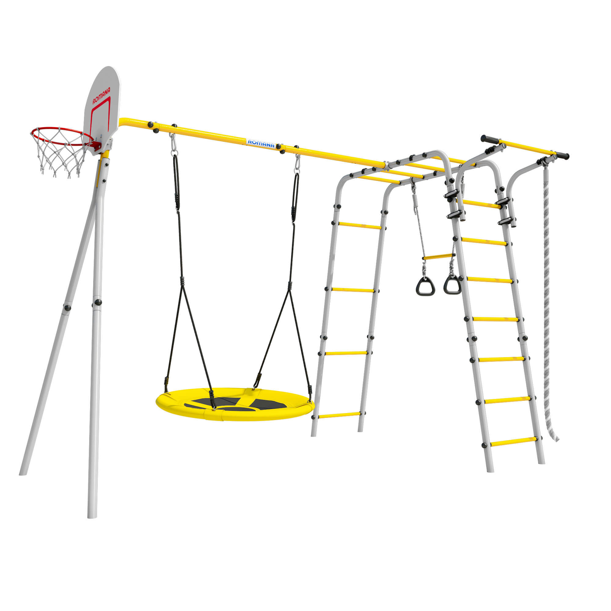 Детский спортивный комплекс для дачи ROMANA Акробат — 2 (желтый/серый) (Качели гнездо — 100см)