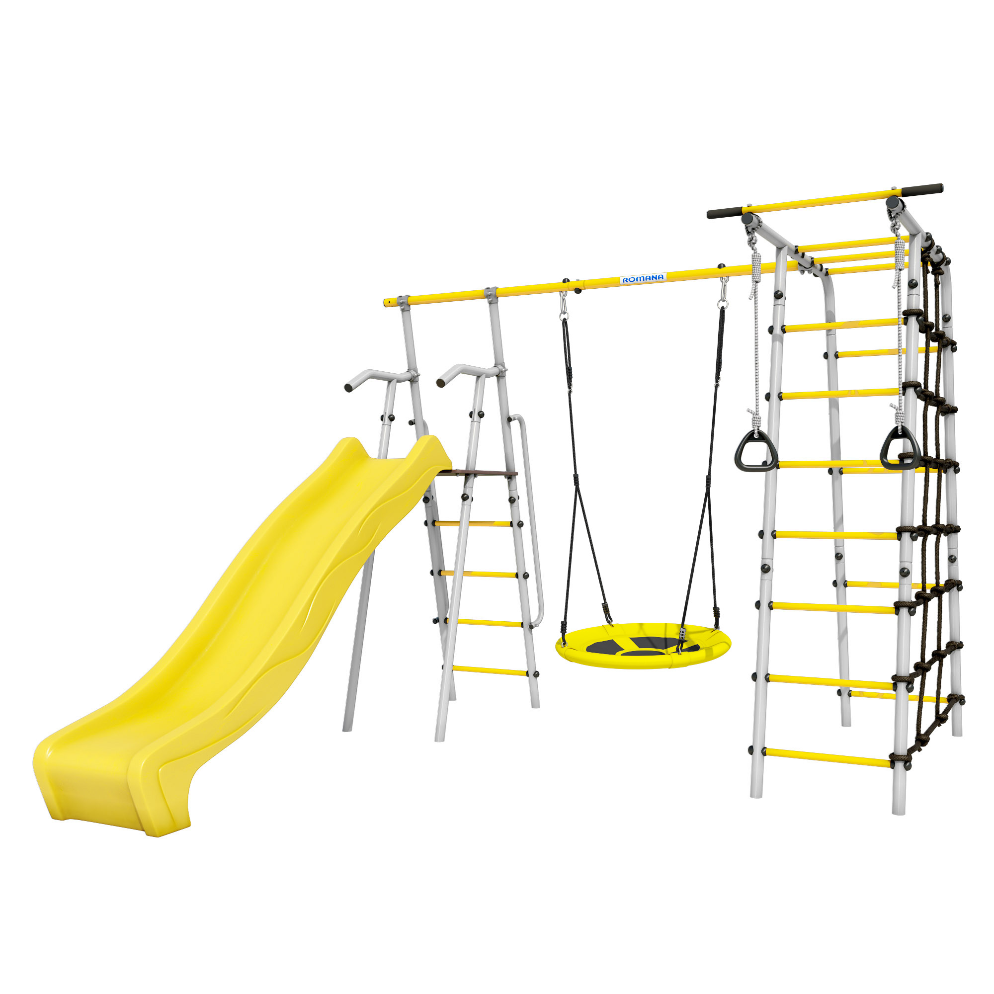 Детский спортивный комплекс для дачи ROMANA Космос (желтый/серый)(с пластиковыми качелями)