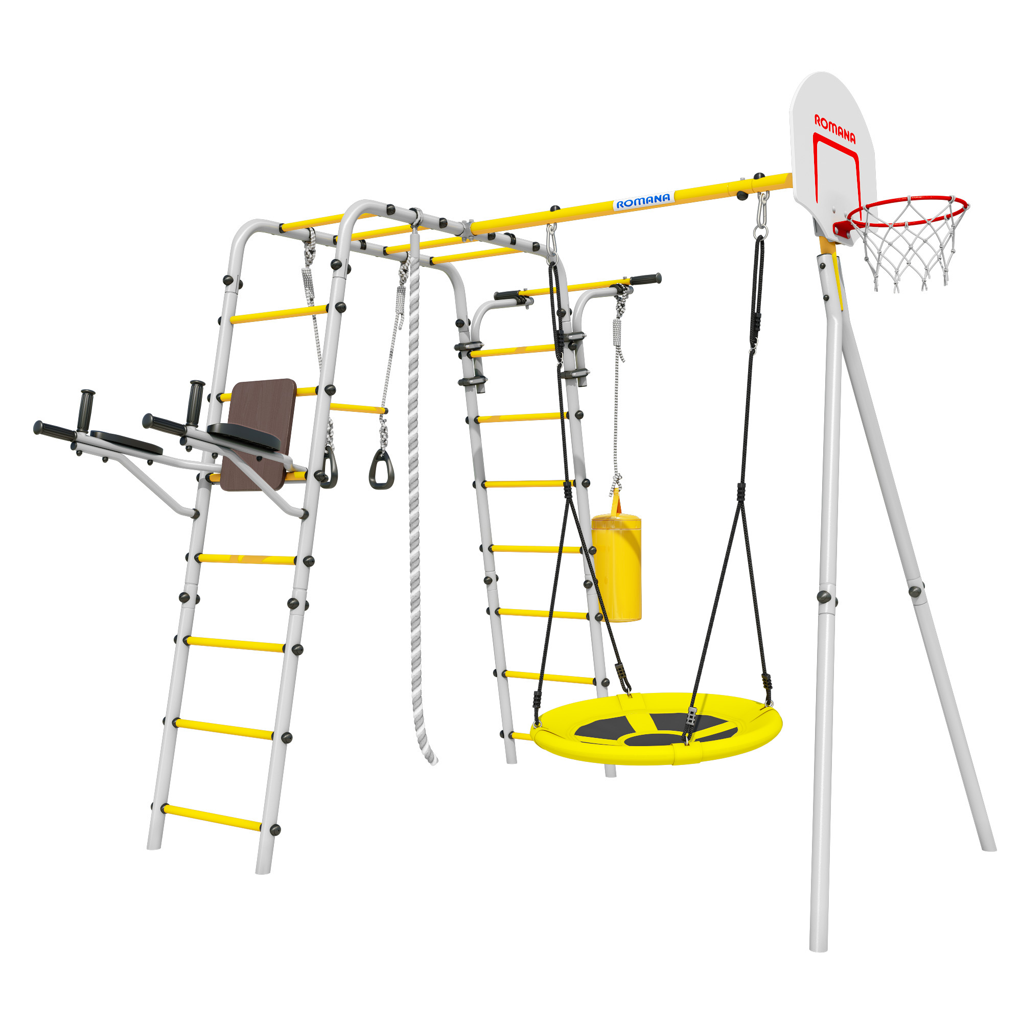 Детский спортивный комплекс для дачи ROMANA Фитнес (желтый/серый) (с качелями гнездо)