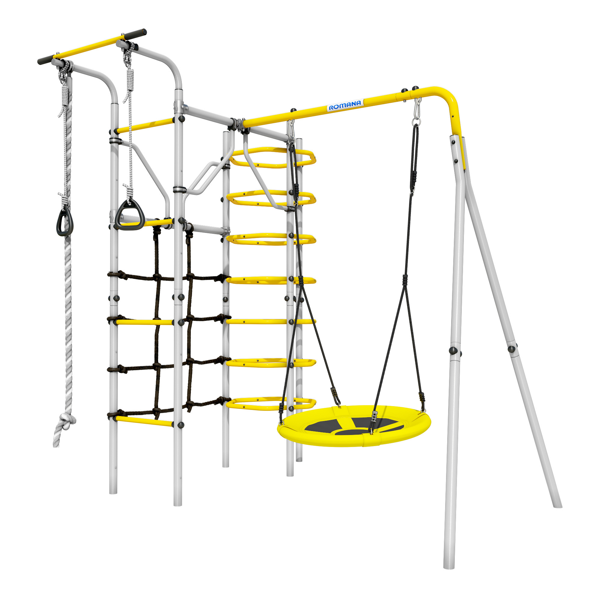 Детский спортивный комплекс для дачи ROMANA Космос (желтый/серый)(с качелями гнездо)