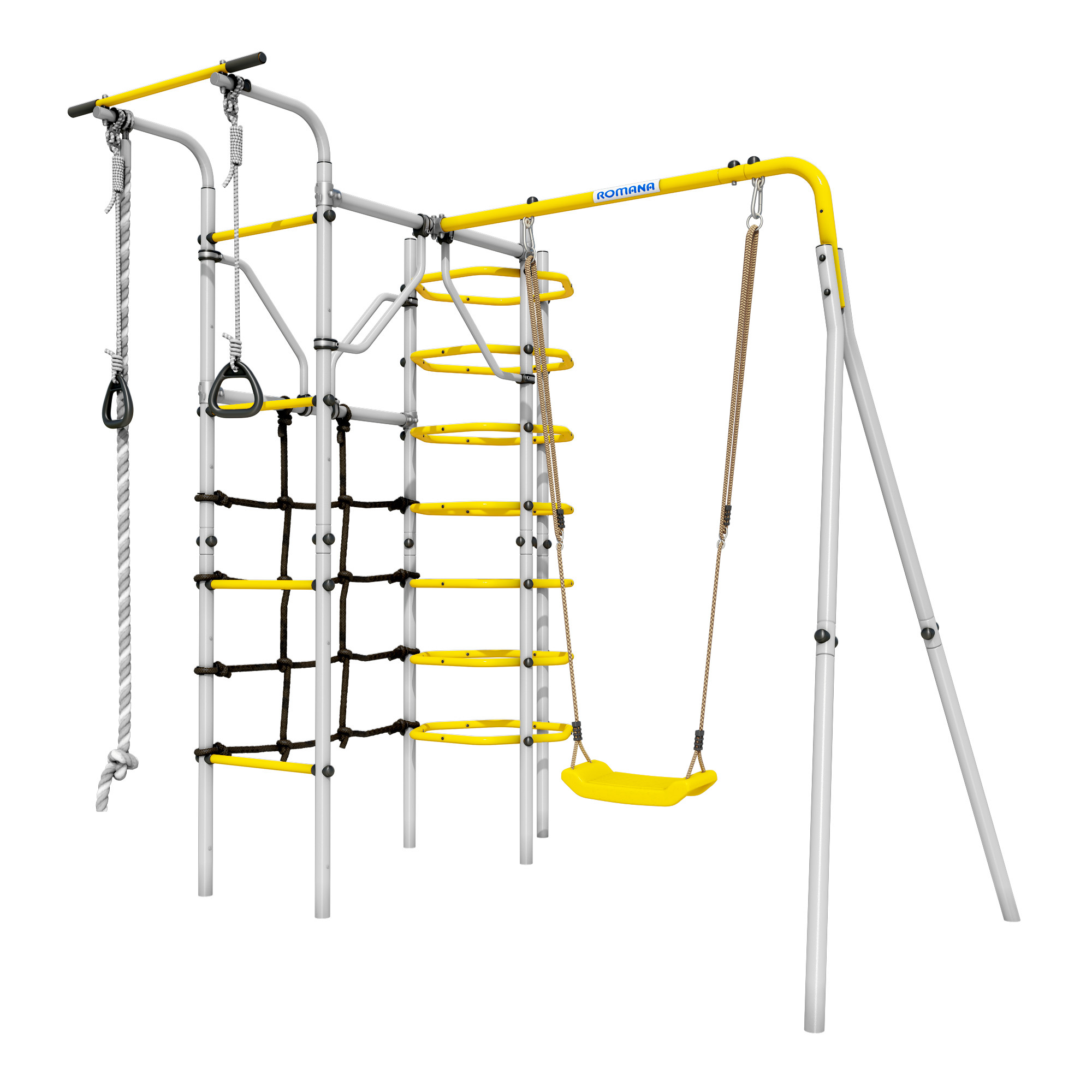 Детский спортивный комплекс для дачи ROMANA Космос (желтый/серый)(с пластиковыми качелями)