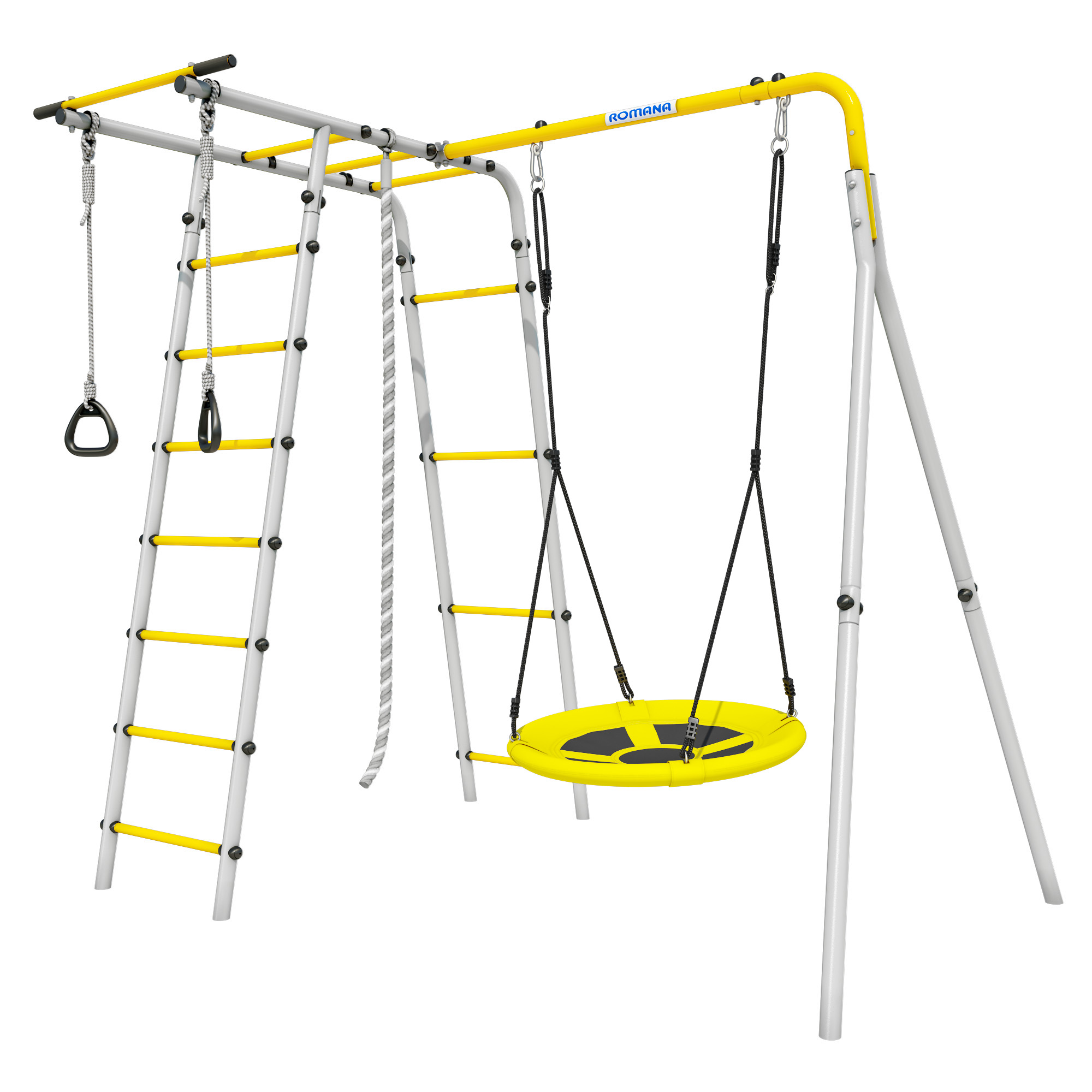Детский спортивный комплекс для дачи ROMANA Лесная поляна — 3 (желтый/серый) (с качелями гнездо)