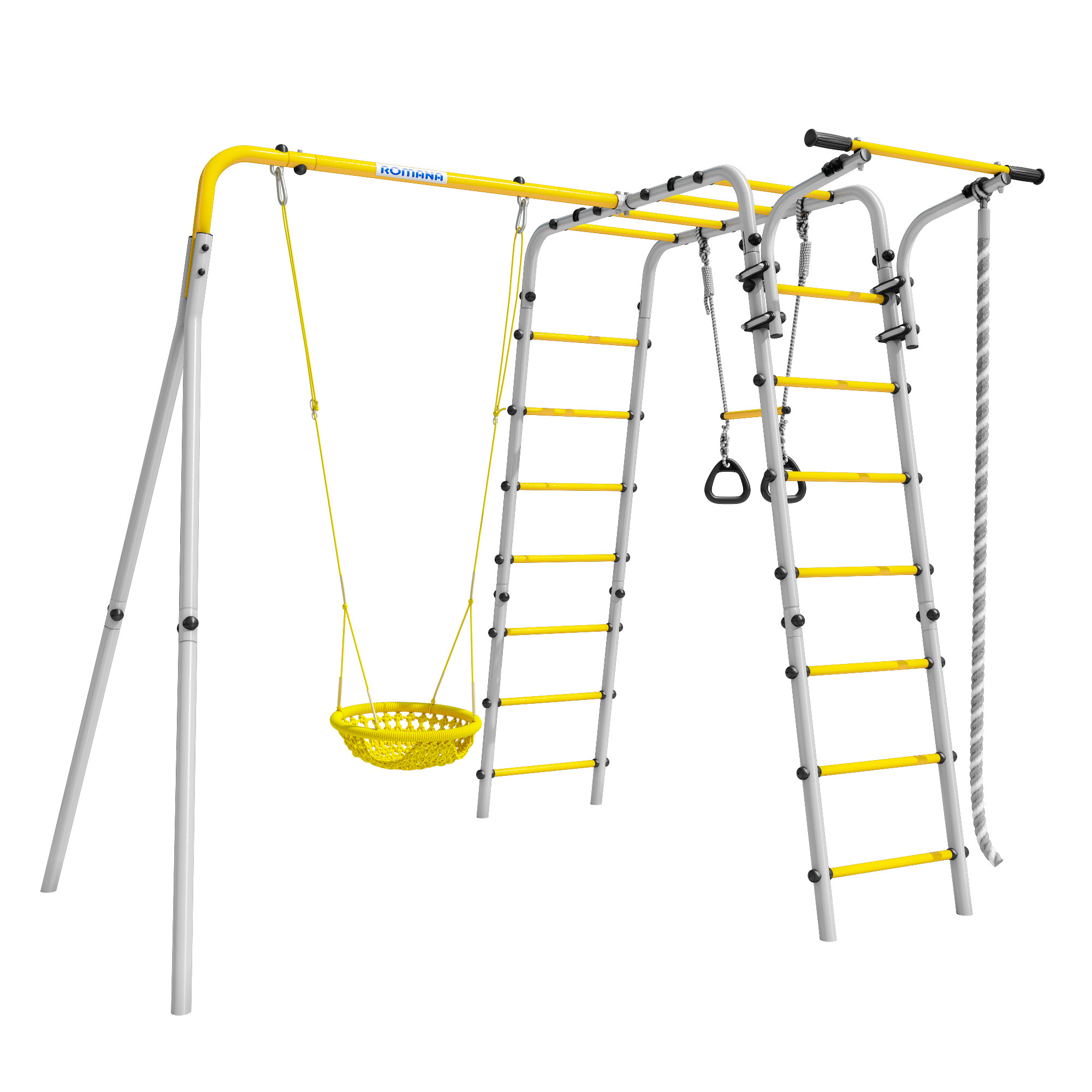 Детский спортивный комплекс для дачи ROMANA Космос (желтый/серый)(с пластиковыми качелями)