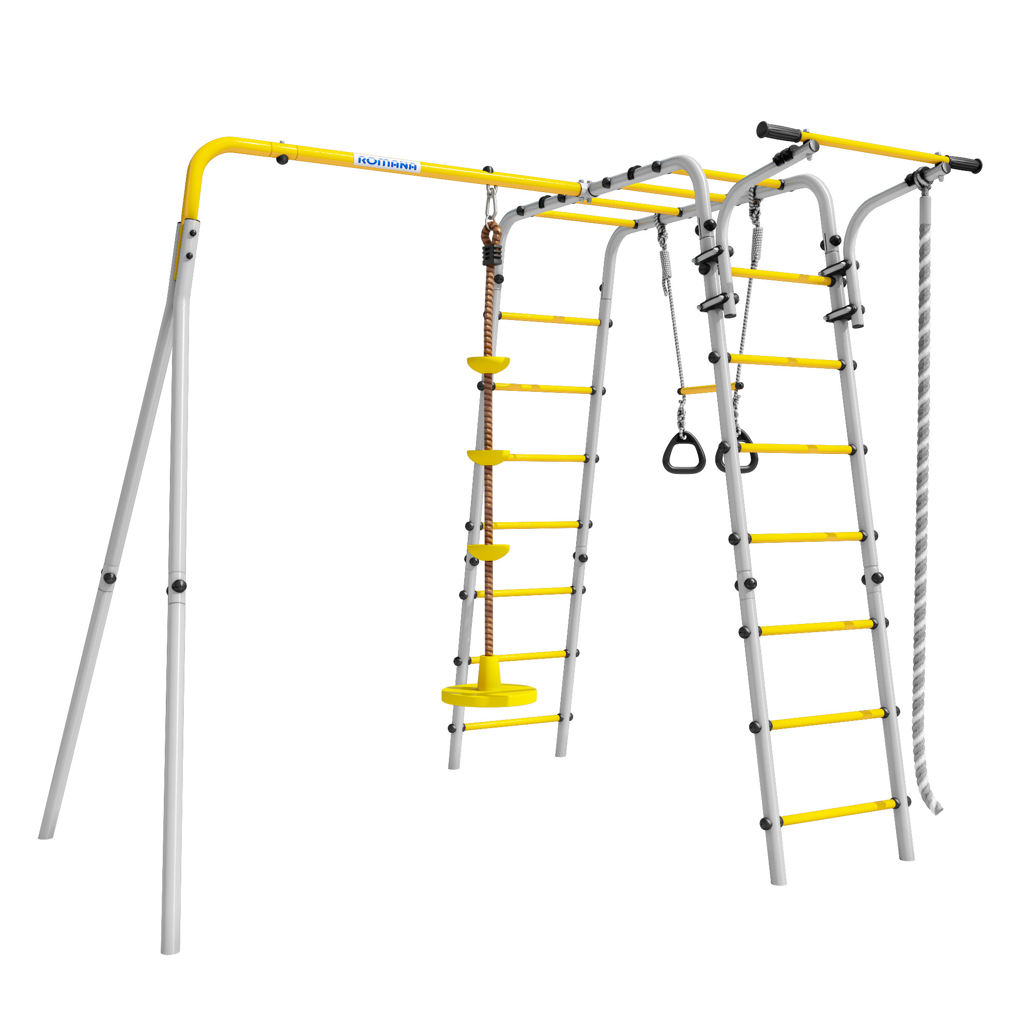 Детский спортивный комплекс для дачи ROMANA Веселая лужайка — 2 (желтый/серый) (с качелями Диск)