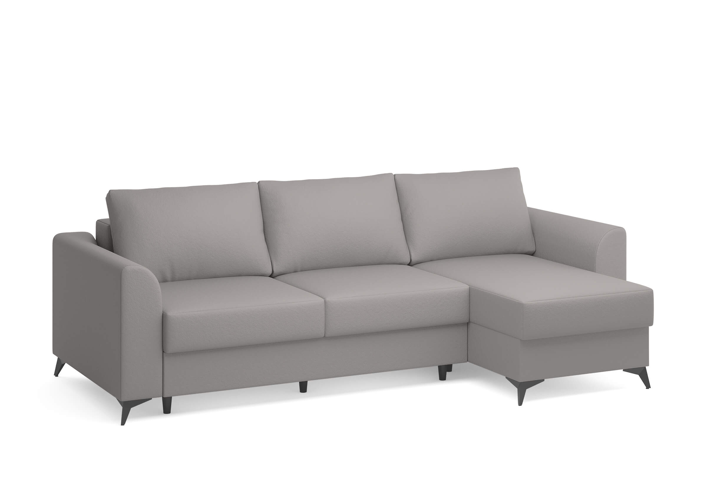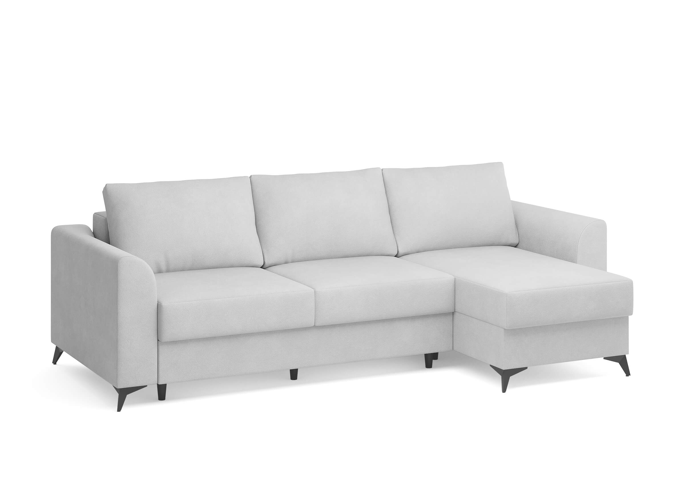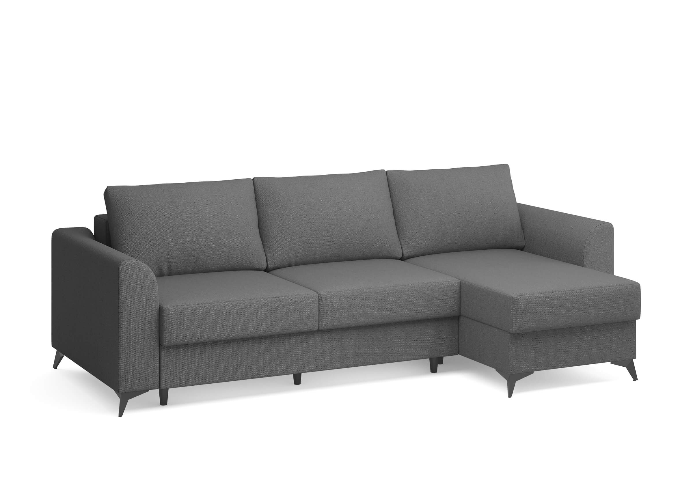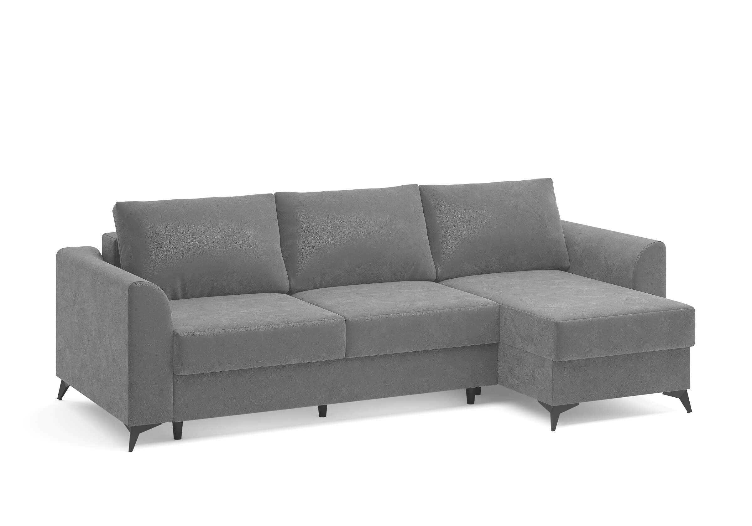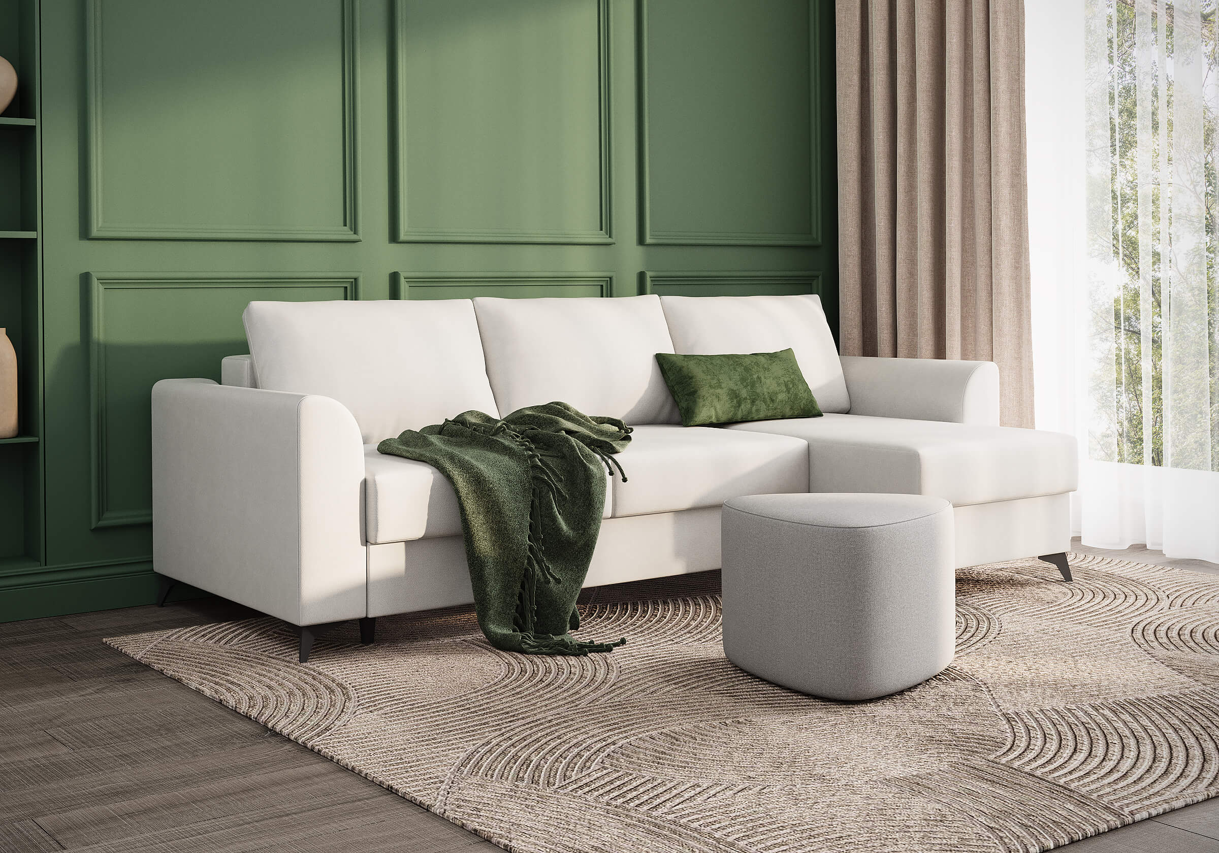 Угловой диван Dario — это сочетание лаконичного дизайна, продуманной эргономики и непревзойденного комфорта. Плавные линии, дизайнерские подлокотники и стильные металлические ножки создают выразительный силуэт, который станет ключевым элементом гостиной. Универсальная конструкция позволяет собрать конфигурацию под ваше пространство — левую или правую. Диван не только красив, но и практичен: независимый пружинный блок в сочетании с высокоэластичной пеной в составе матраса обеспечивает комфортное место для сна и отдыха. Глубина и высота сидений гарантируют удобство в повседневной эксплуатации. Вместительный бельевой короб позволяет эффективно использовать пространство и хранить постельные принадлежности или другие вещи. Практичная обивка и продуманная высота спинки защитят стены, сохраняя безупречный вид вашего интерьера. Размер спального места 150*225