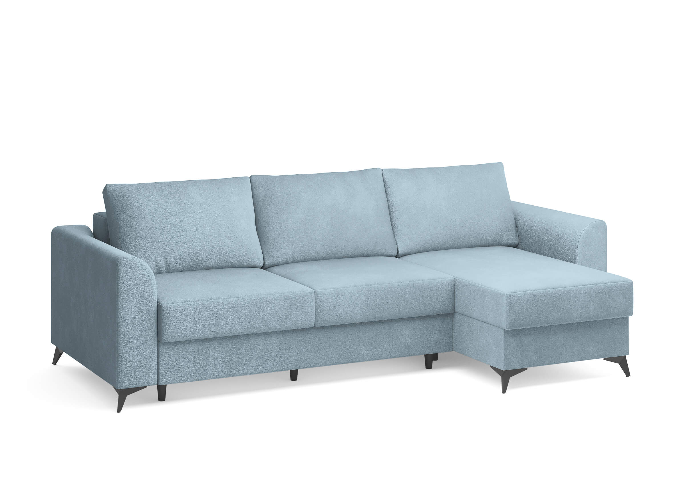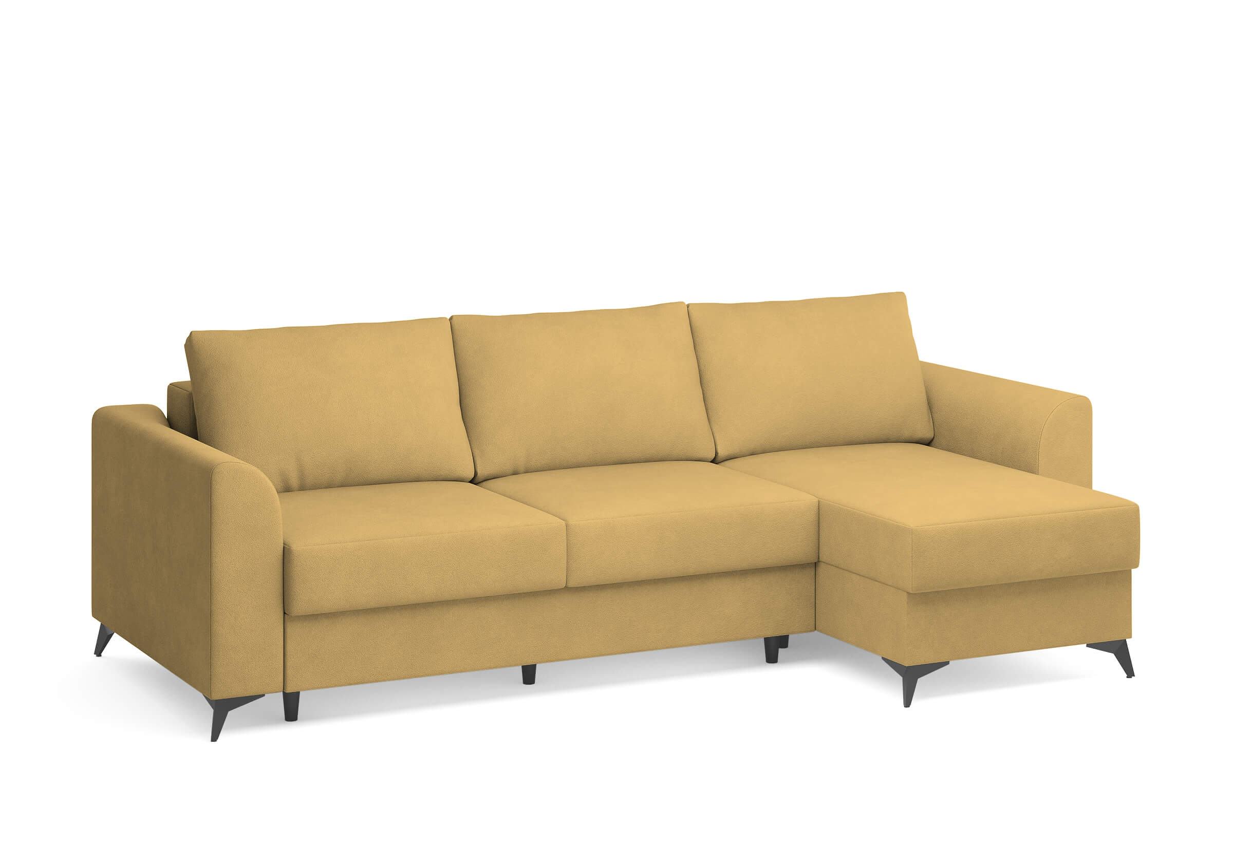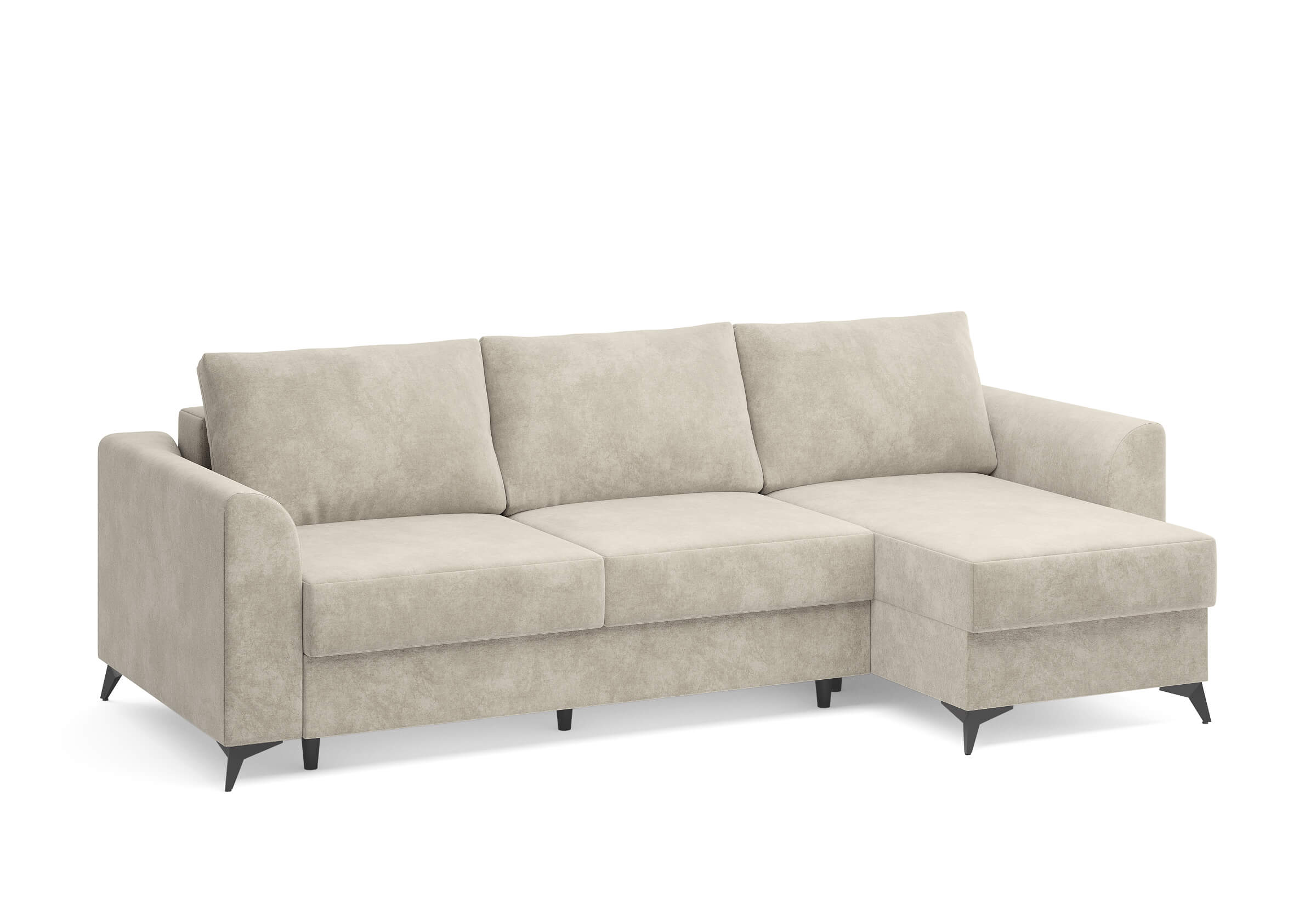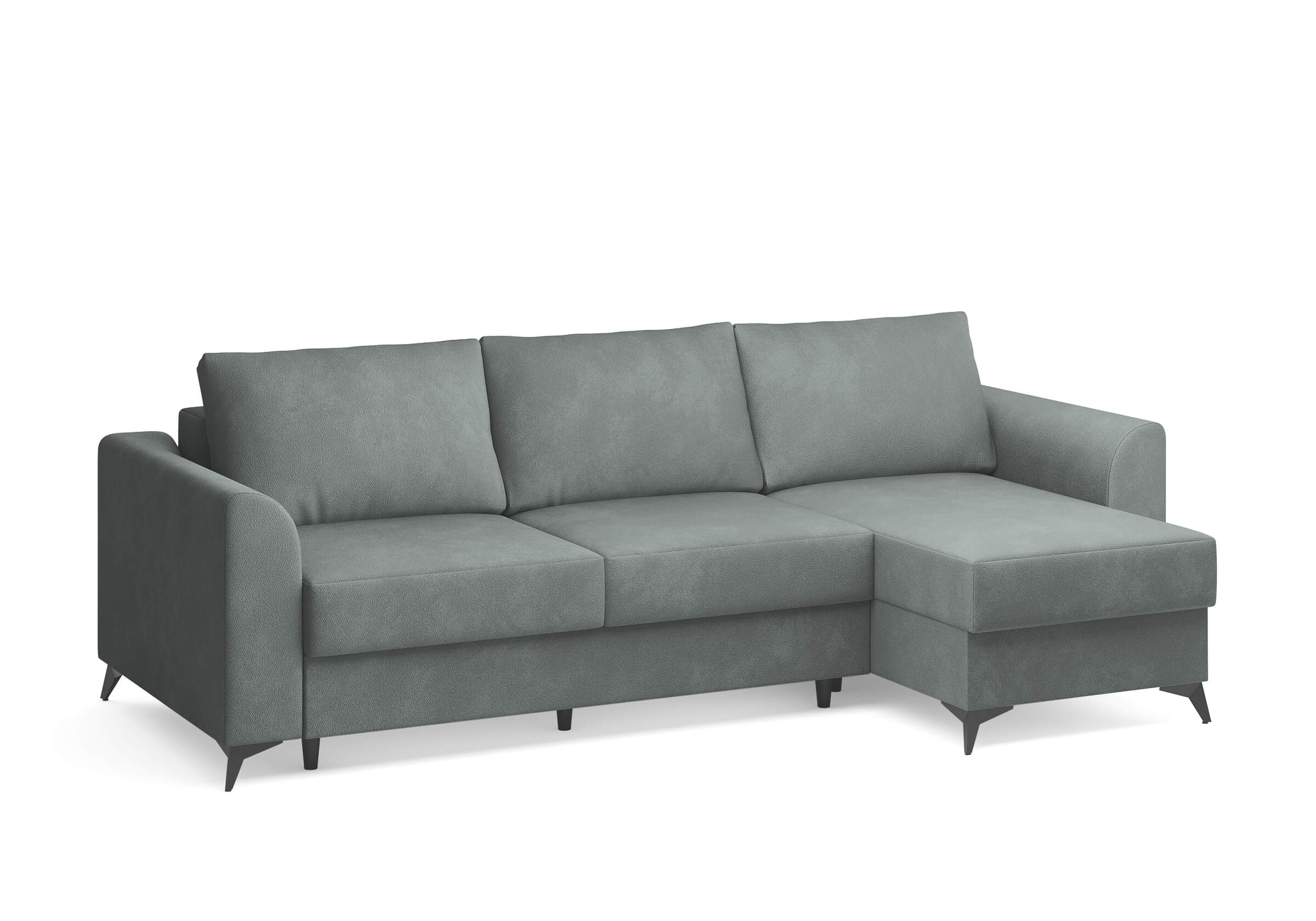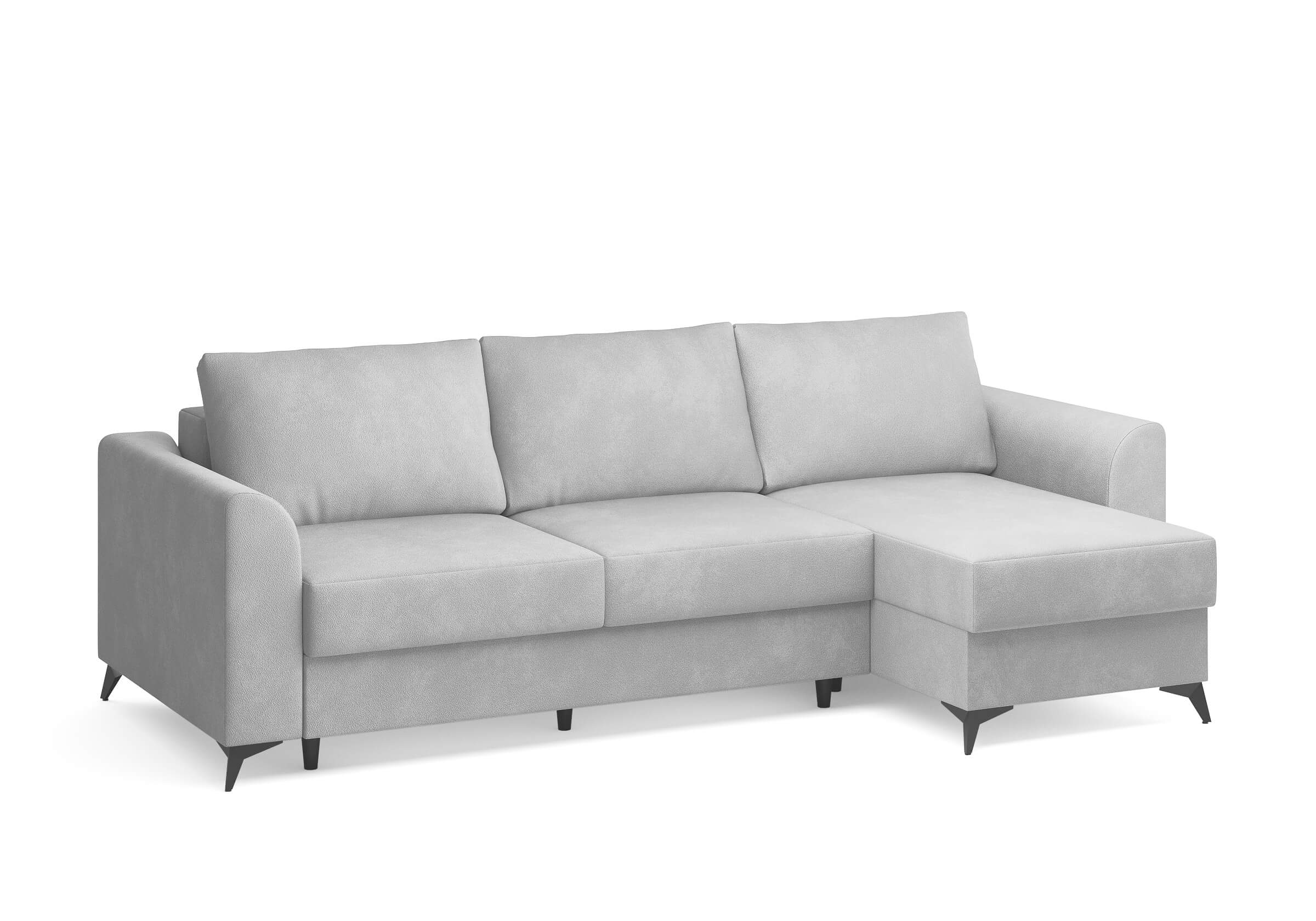 Угловой диван Dario — это сочетание лаконичного дизайна, продуманной эргономики и непревзойденного комфорта. Плавные линии, дизайнерские подлокотники и стильные металлические ножки создают выразительный силуэт, который станет ключевым элементом гостиной. Универсальная конструкция позволяет собрать конфигурацию под ваше пространство — левую или правую. Диван не только красив, но и практичен: независимый пружинный блок в сочетании с высокоэластичной пеной в составе матраса обеспечивает комфортное место для сна и отдыха. Глубина и высота сидений гарантируют удобство в повседневной эксплуатации. Вместительный бельевой короб позволяет эффективно использовать пространство и хранить постельные принадлежности или другие вещи. Практичная обивка и продуманная высота спинки защитят стены, сохраняя безупречный вид вашего интерьера. Размер спального места 150*225