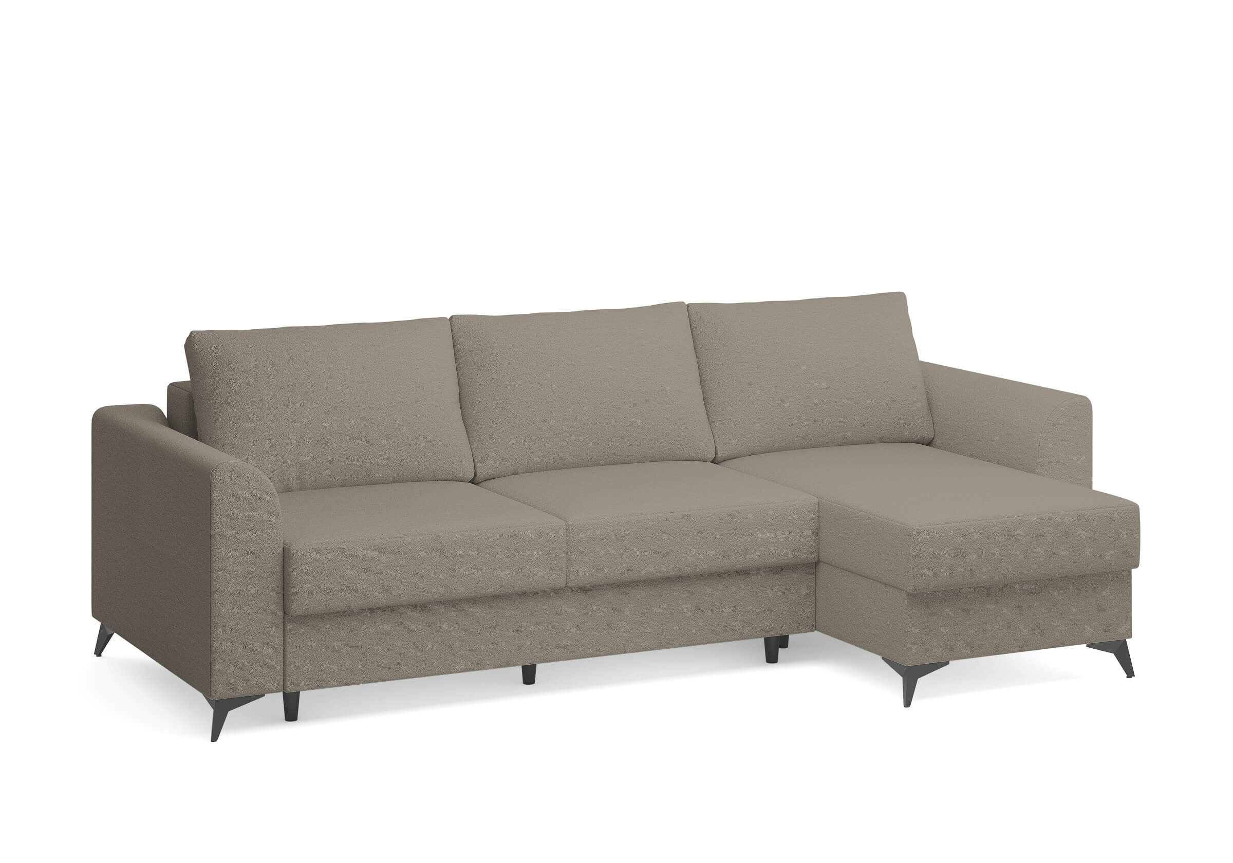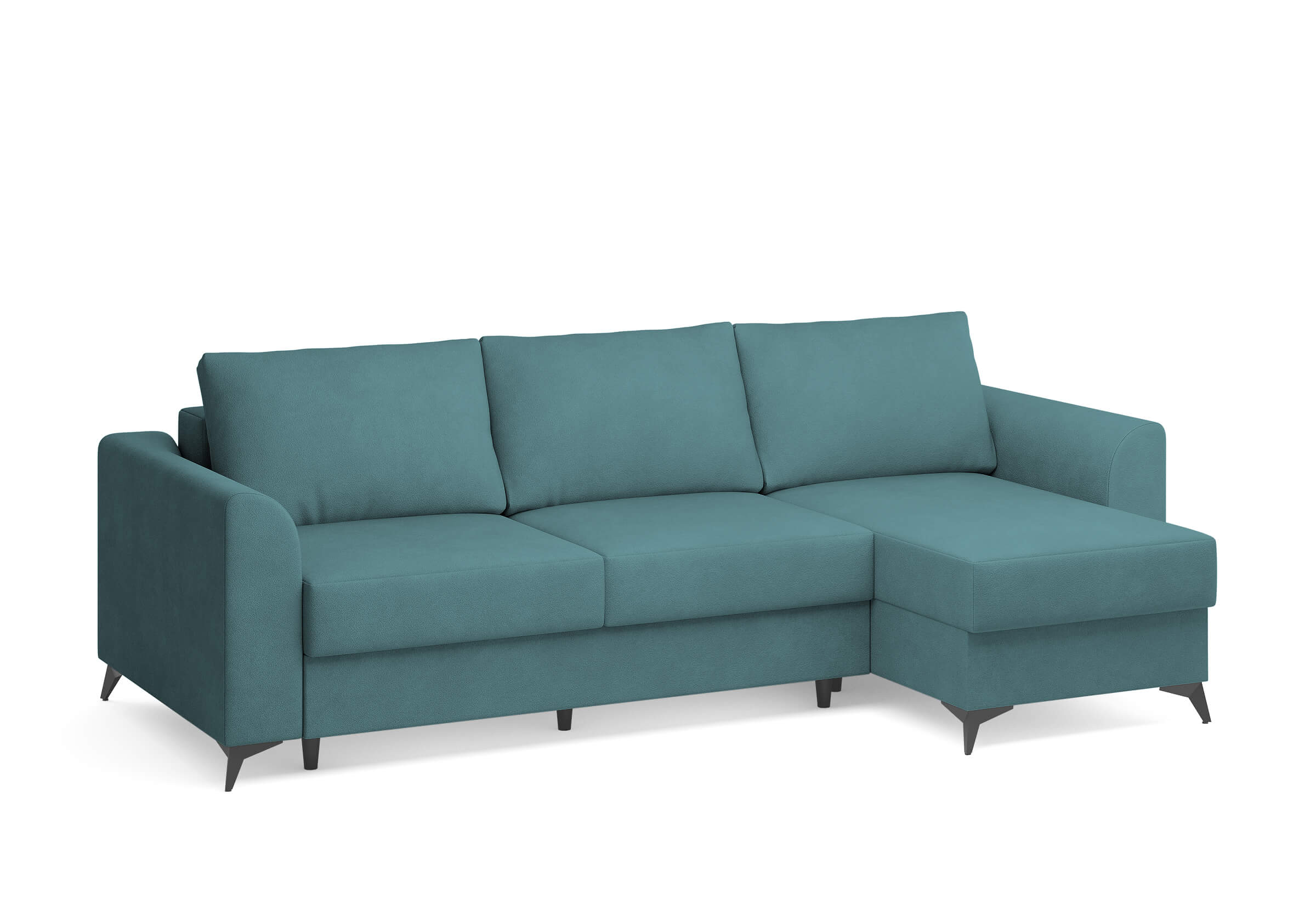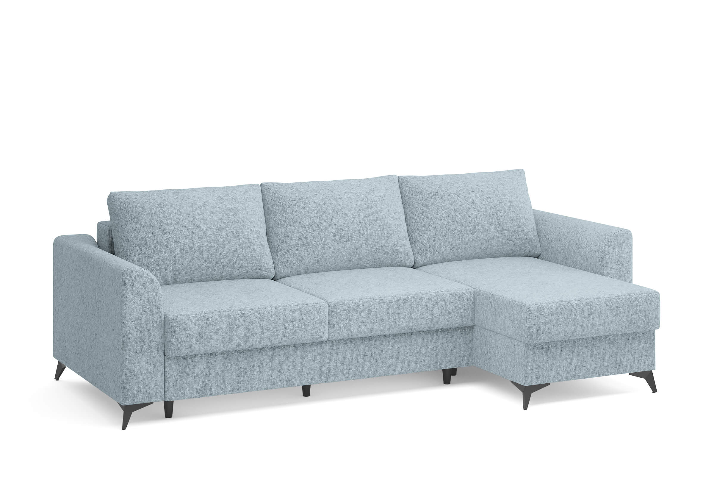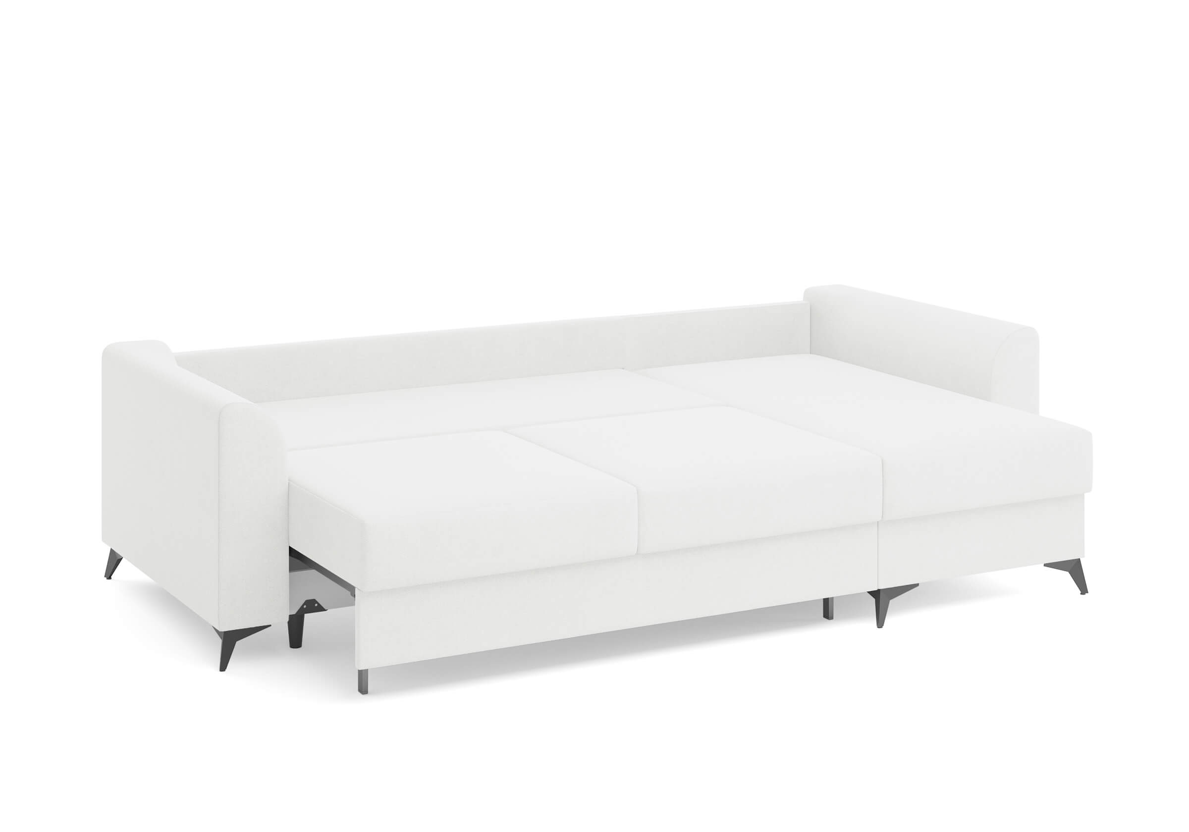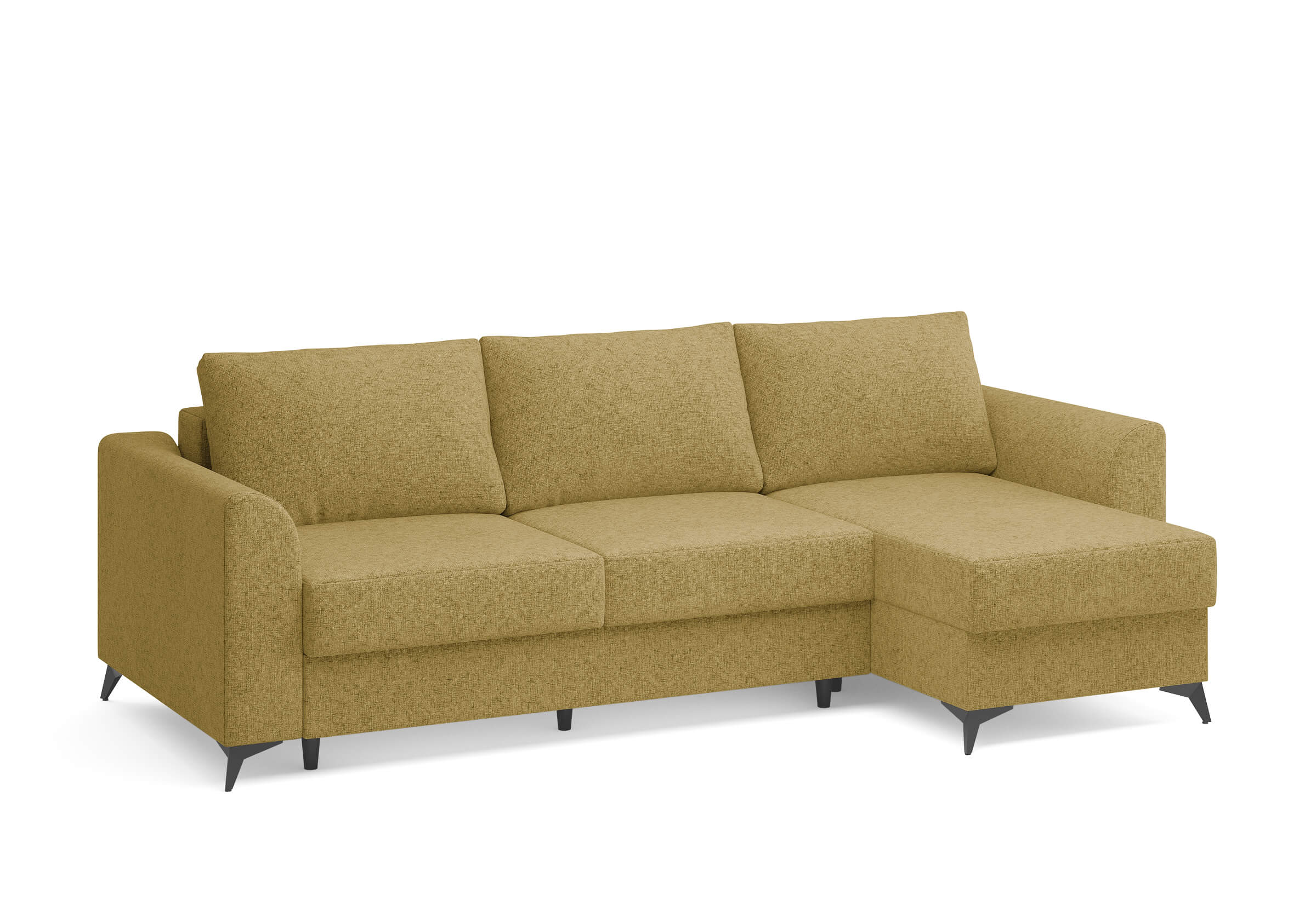 Угловой диван Dario — это сочетание лаконичного дизайна, продуманной эргономики и непревзойденного комфорта. Плавные линии, дизайнерские подлокотники и стильные металлические ножки создают выразительный силуэт, который станет ключевым элементом гостиной. Универсальная конструкция позволяет собрать конфигурацию под ваше пространство — левую или правую. Диван не только красив, но и практичен: независимый пружинный блок в сочетании с высокоэластичной пеной в составе матраса обеспечивает комфортное место для сна и отдыха. Глубина и высота сидений гарантируют удобство в повседневной эксплуатации. Вместительный бельевой короб позволяет эффективно использовать пространство и хранить постельные принадлежности или другие вещи. Практичная обивка и продуманная высота спинки защитят стены, сохраняя безупречный вид вашего интерьера. Размер спального места 150*225