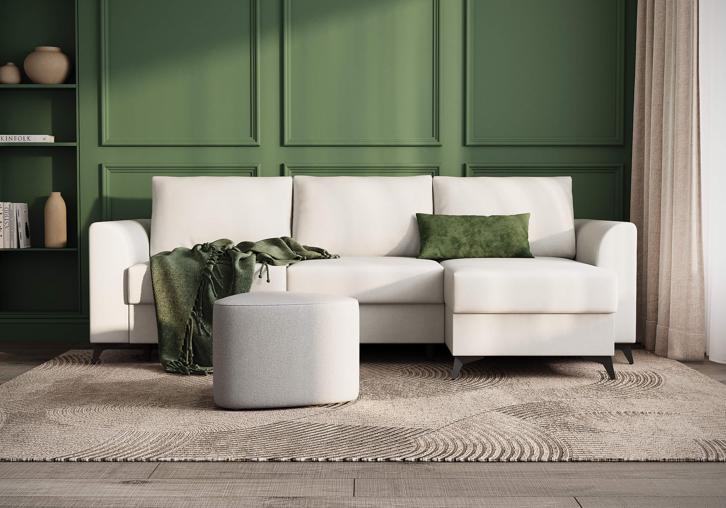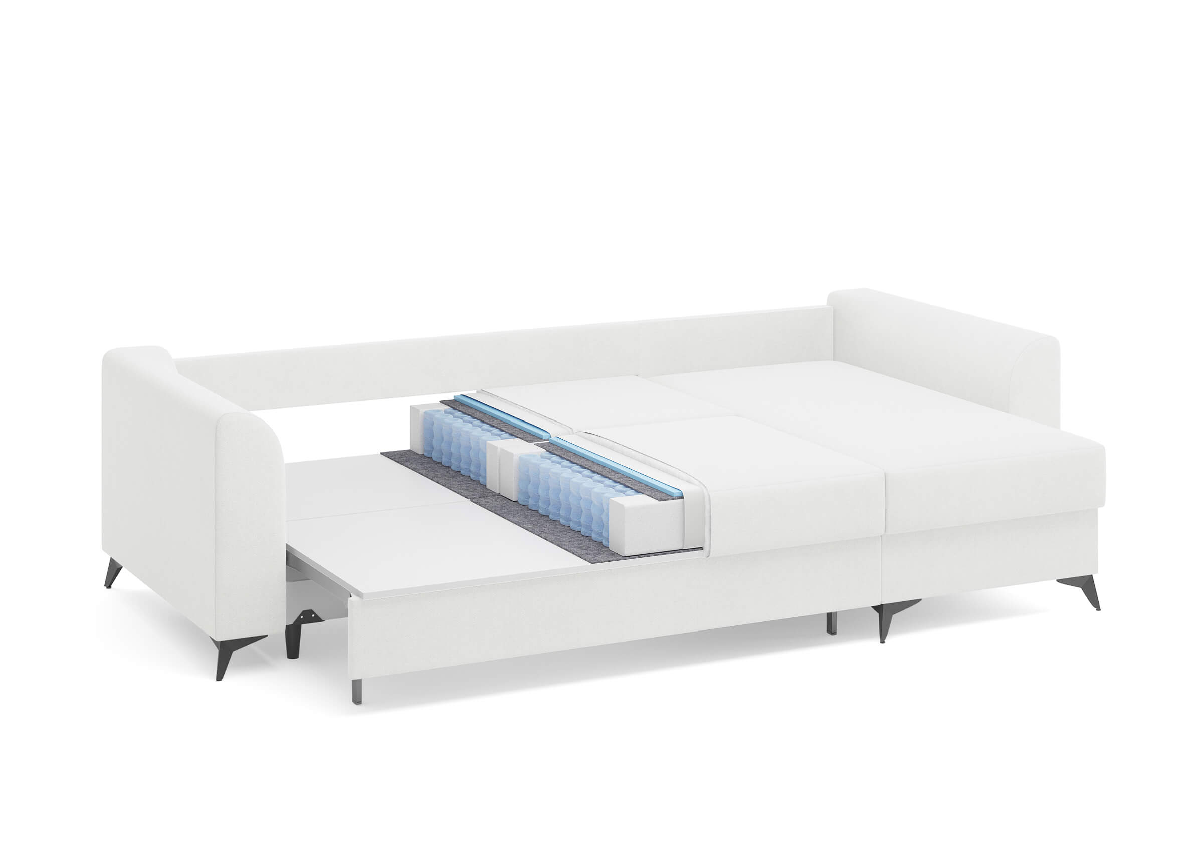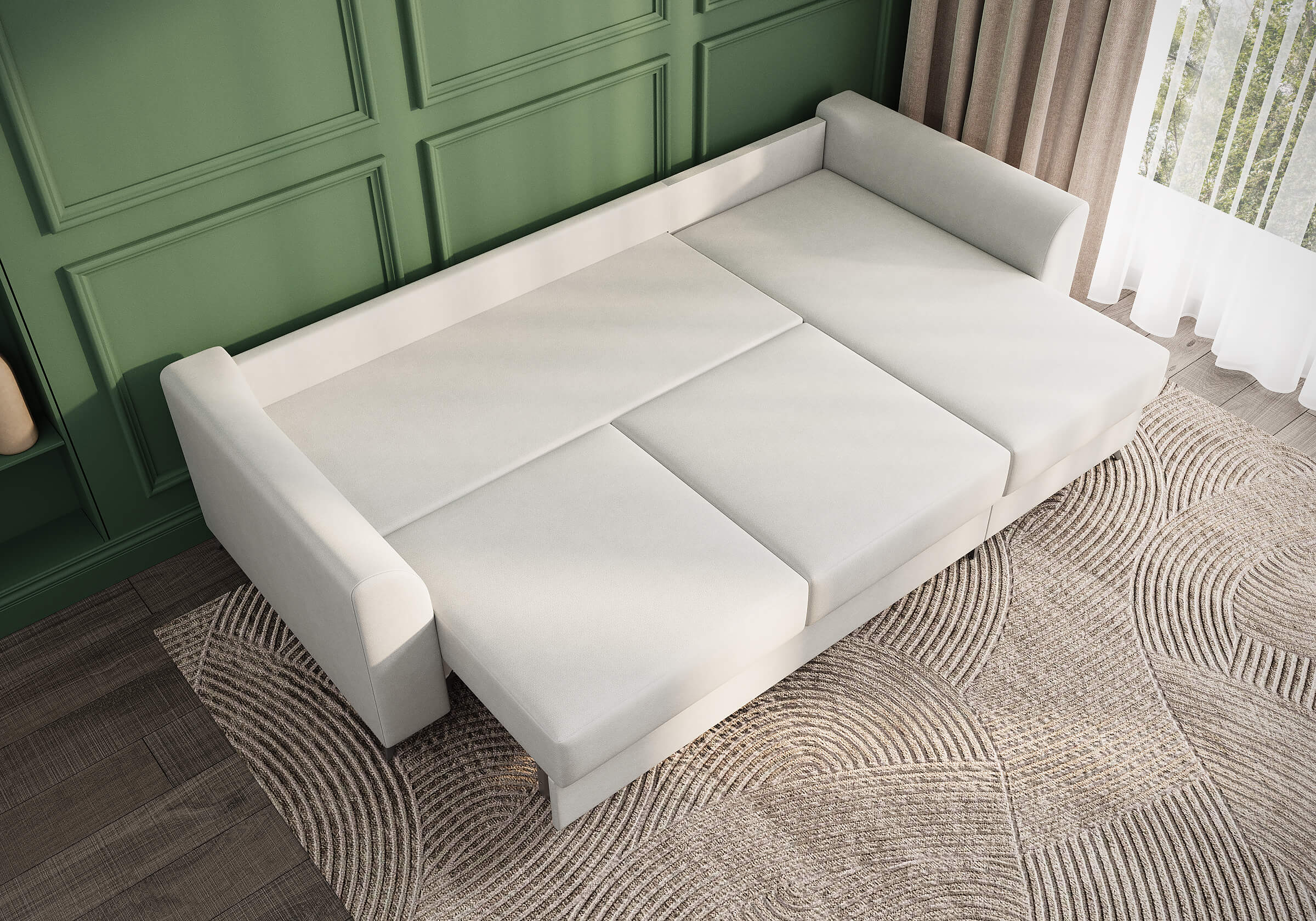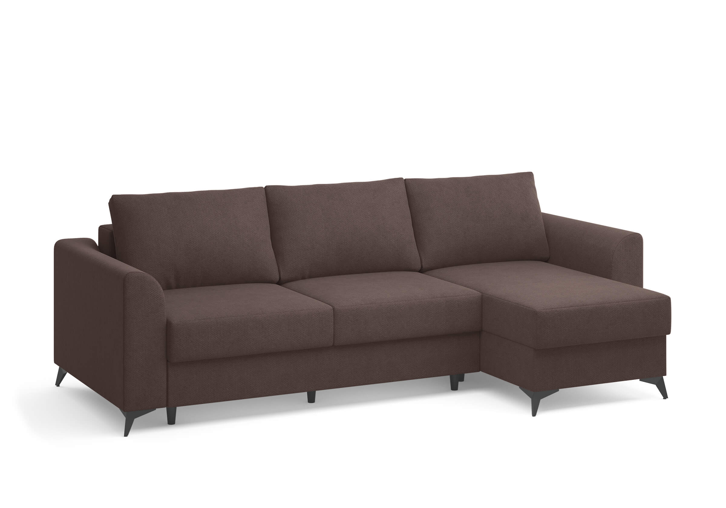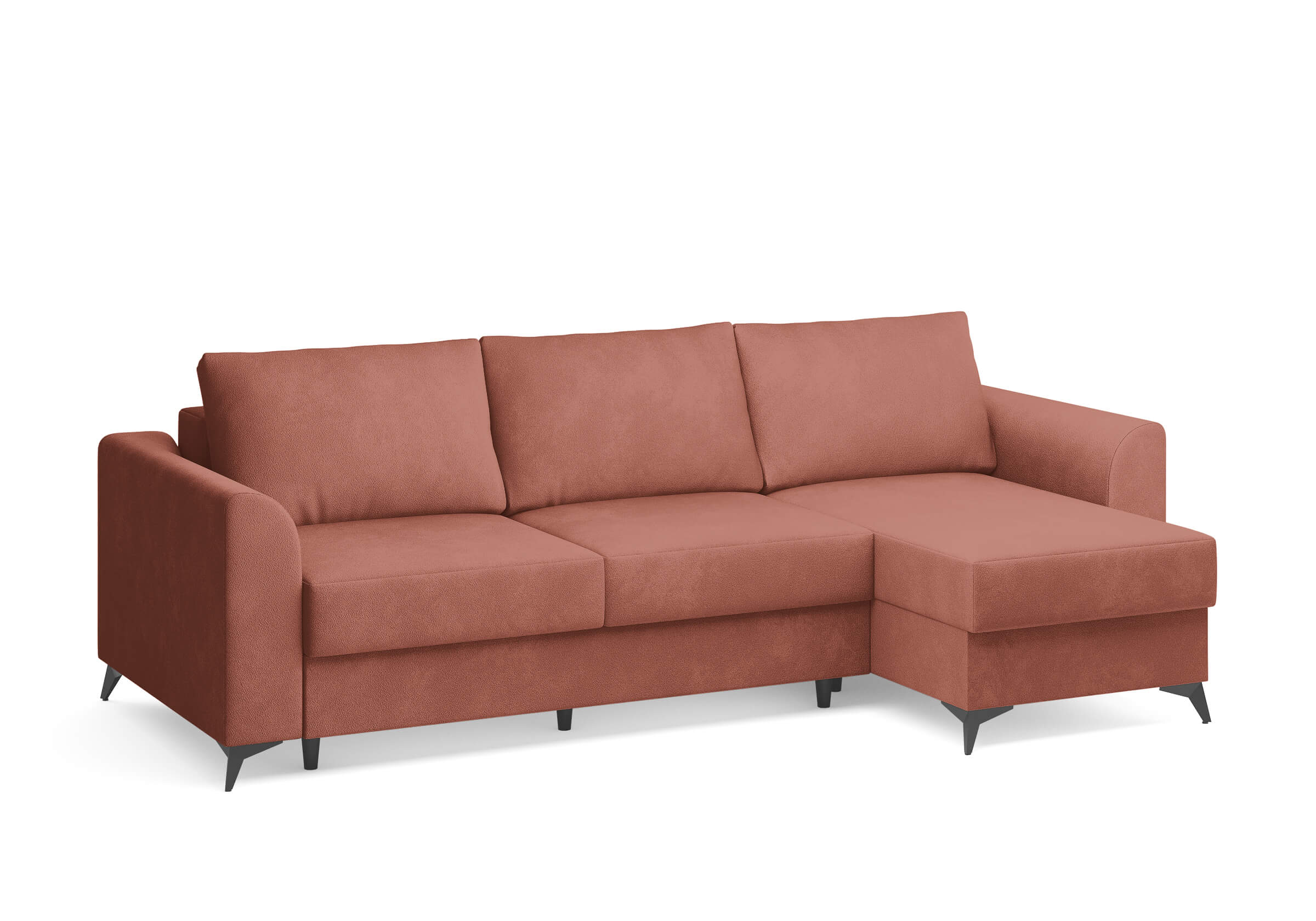 Угловой диван Dario — это сочетание лаконичного дизайна, продуманной эргономики и непревзойденного комфорта. Плавные линии, дизайнерские подлокотники и стильные металлические ножки создают выразительный силуэт, который станет ключевым элементом гостиной. Универсальная конструкция позволяет собрать конфигурацию под ваше пространство — левую или правую. Диван не только красив, но и практичен: независимый пружинный блок в сочетании с высокоэластичной пеной в составе матраса обеспечивает комфортное место для сна и отдыха. Глубина и высота сидений гарантируют удобство в повседневной эксплуатации. Вместительный бельевой короб позволяет эффективно использовать пространство и хранить постельные принадлежности или другие вещи. Практичная обивка и продуманная высота спинки защитят стены, сохраняя безупречный вид вашего интерьера. Размер спального места 150*225
