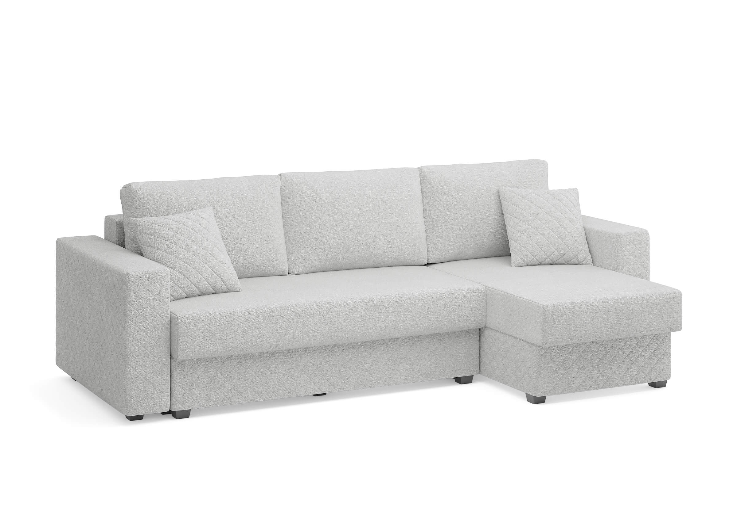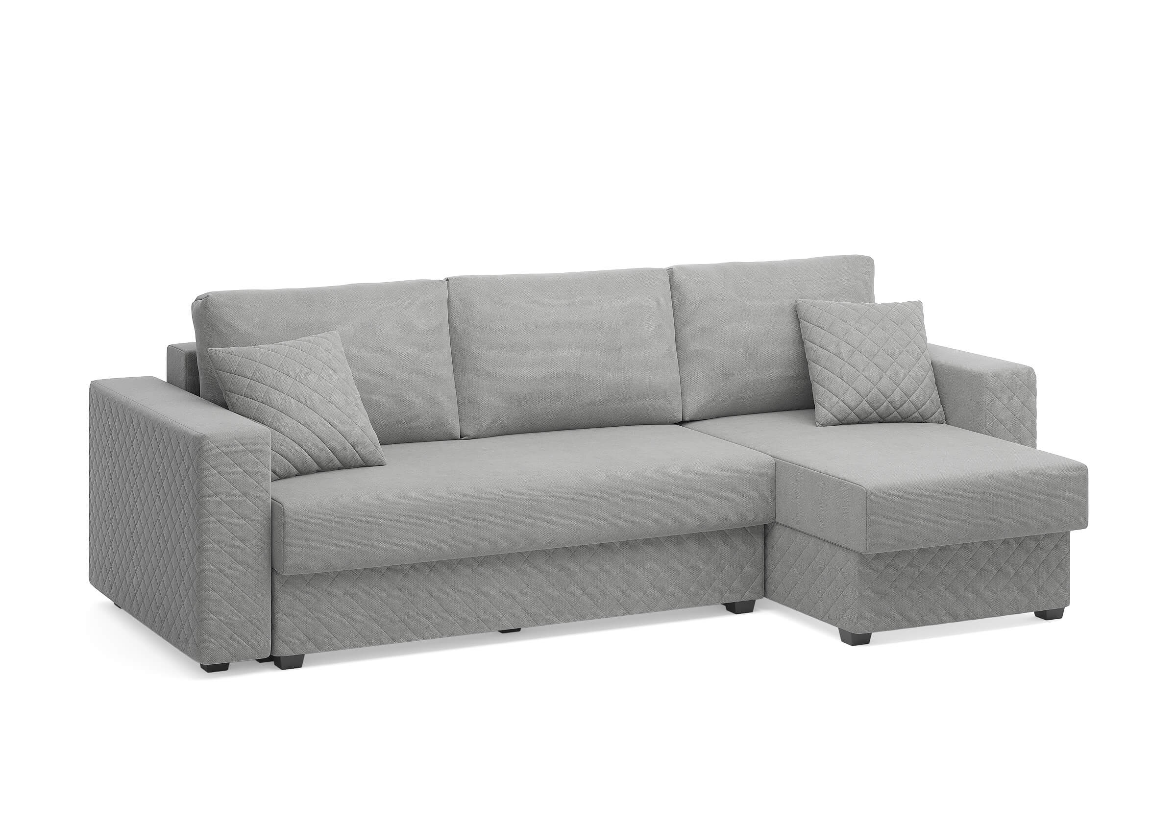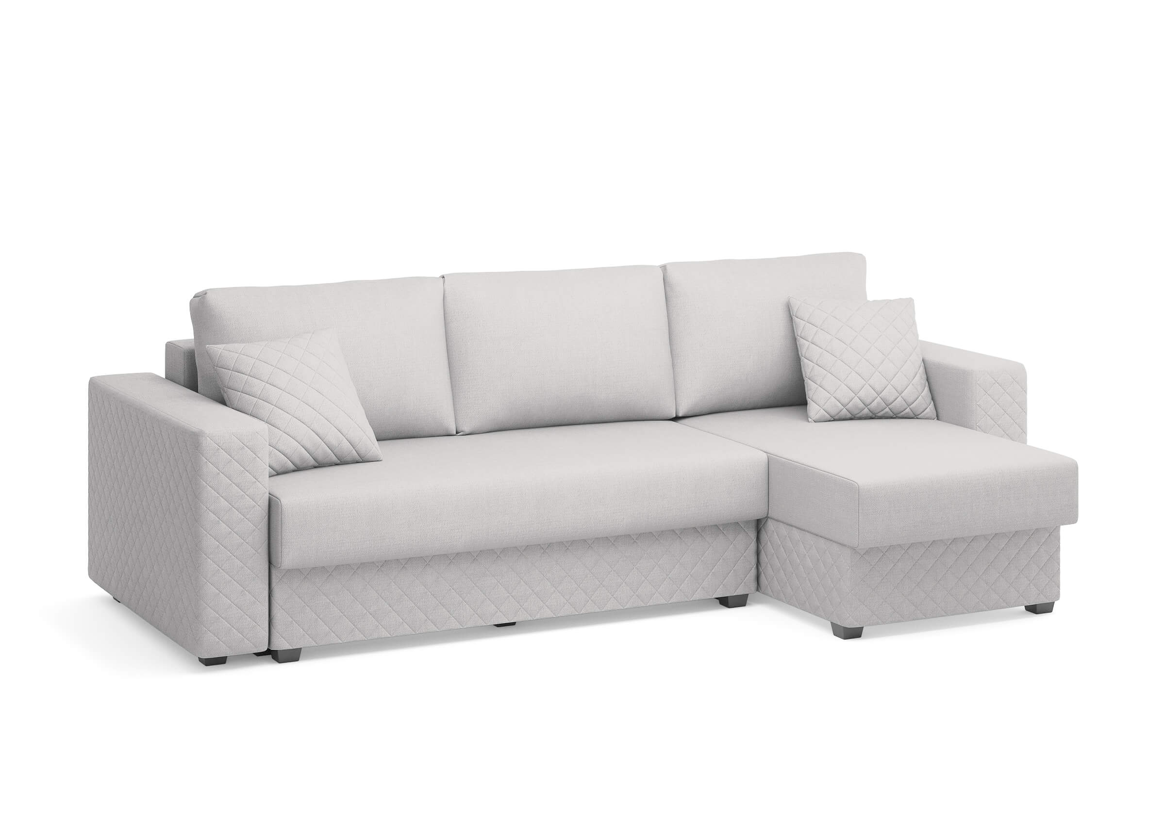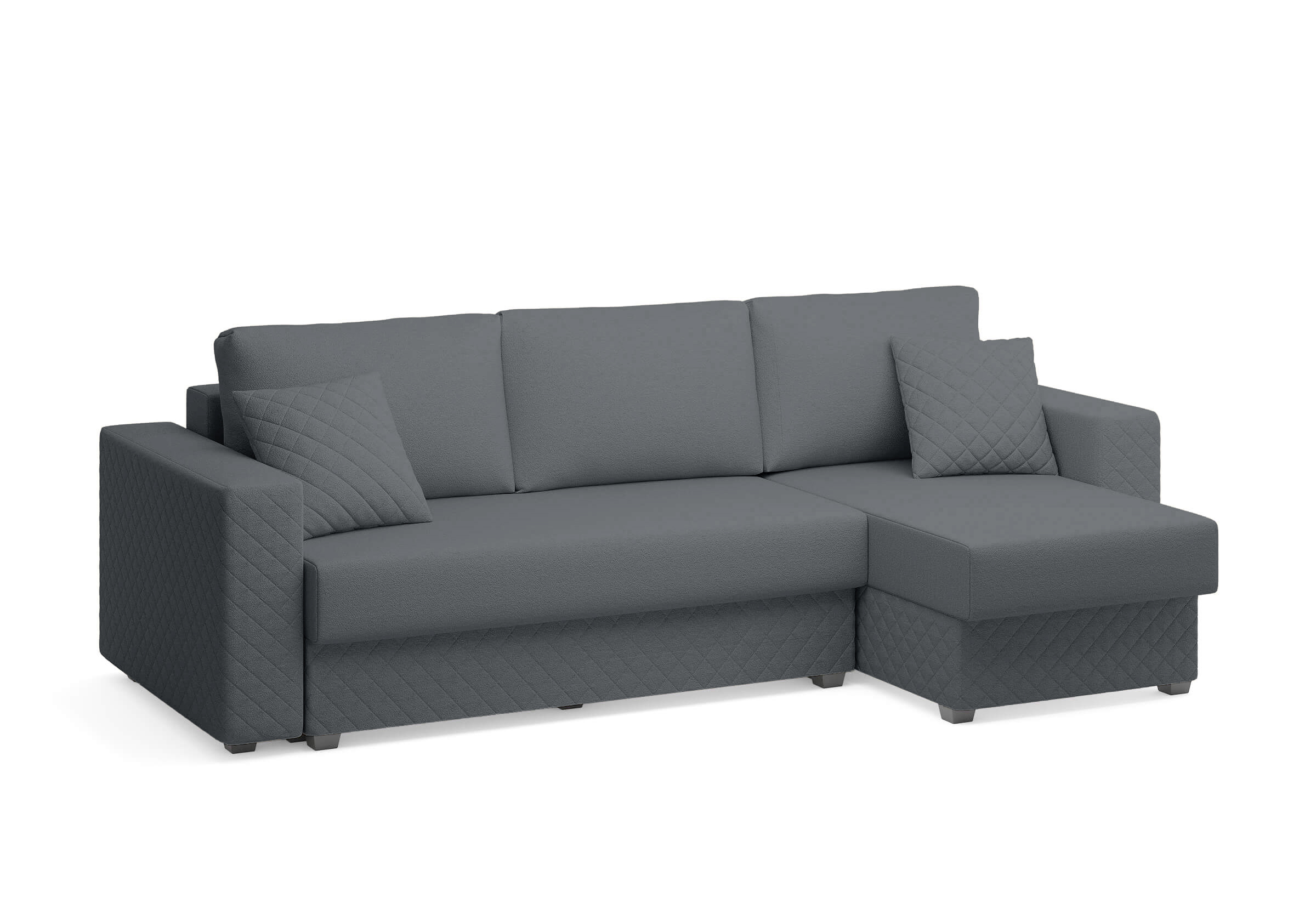 Диван оснащён современным механизмом трансформации пантограф, который обеспечивает лёгкость и удобство в использовании. В его основе лежит ортопедический матрас с независимым пружинным блоком, что гарантирует комфортный отдых и здоровый сон. Удобная глубина и высота сидения способствуют повседневному комфорту, позволяя расслабиться после долгого дня. Декоративная стёжка на подлокотниках и цоколе подчёркивает строгие, геометрические формы дивана, придавая ему стильный и современный вид. Задняя спинка дивана защищает от прикосновения со стеной во время сна, а также предотвращает возможные повреждения и загрязнения стен. В угловой секции (оттоманка) предусмотрено удобное место для хранения, что позволяет рационально использовать пространство. В комплект дивана входят две стёганные декоративные подушки, которые дополняют его внешний вид и обеспечивают комфорт. При сборке вы можете самостоятельно выбрать, с какой стороны будет расположен угол — справа или слева. Размер спального места: 150-225