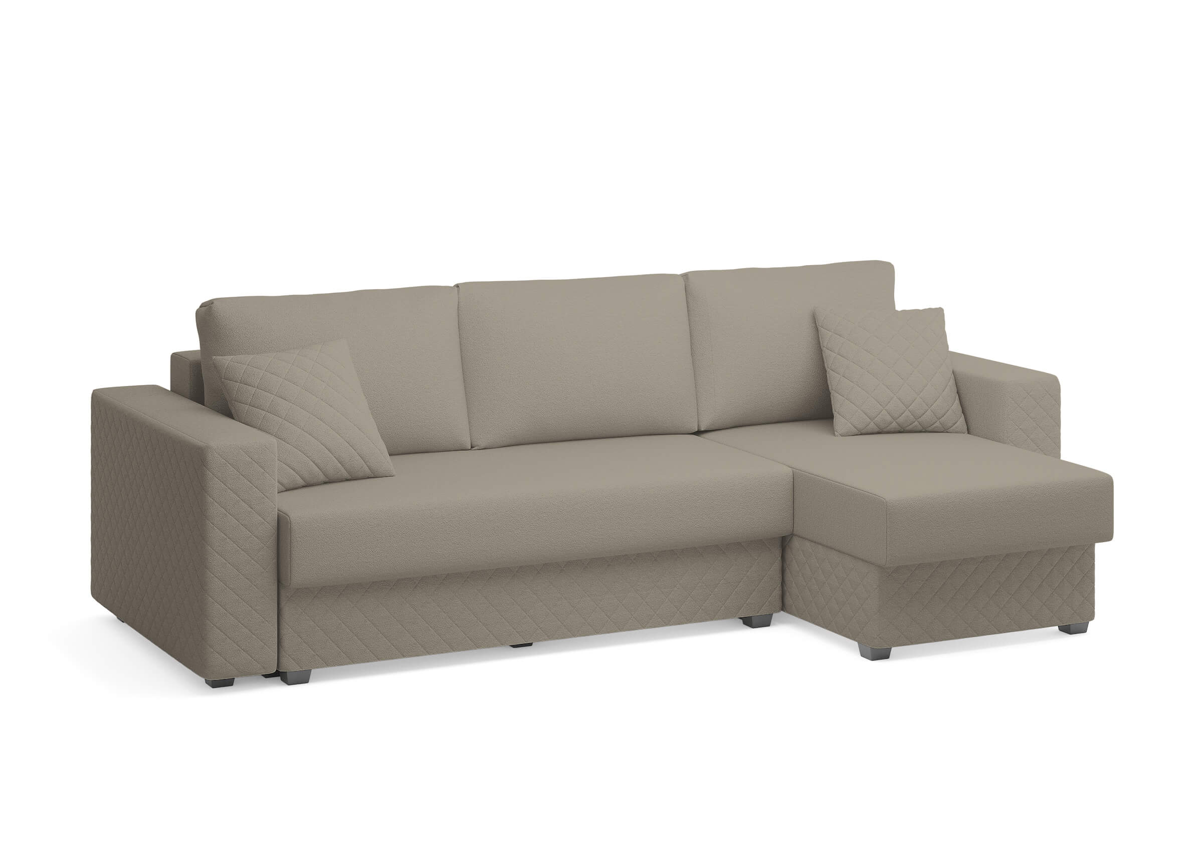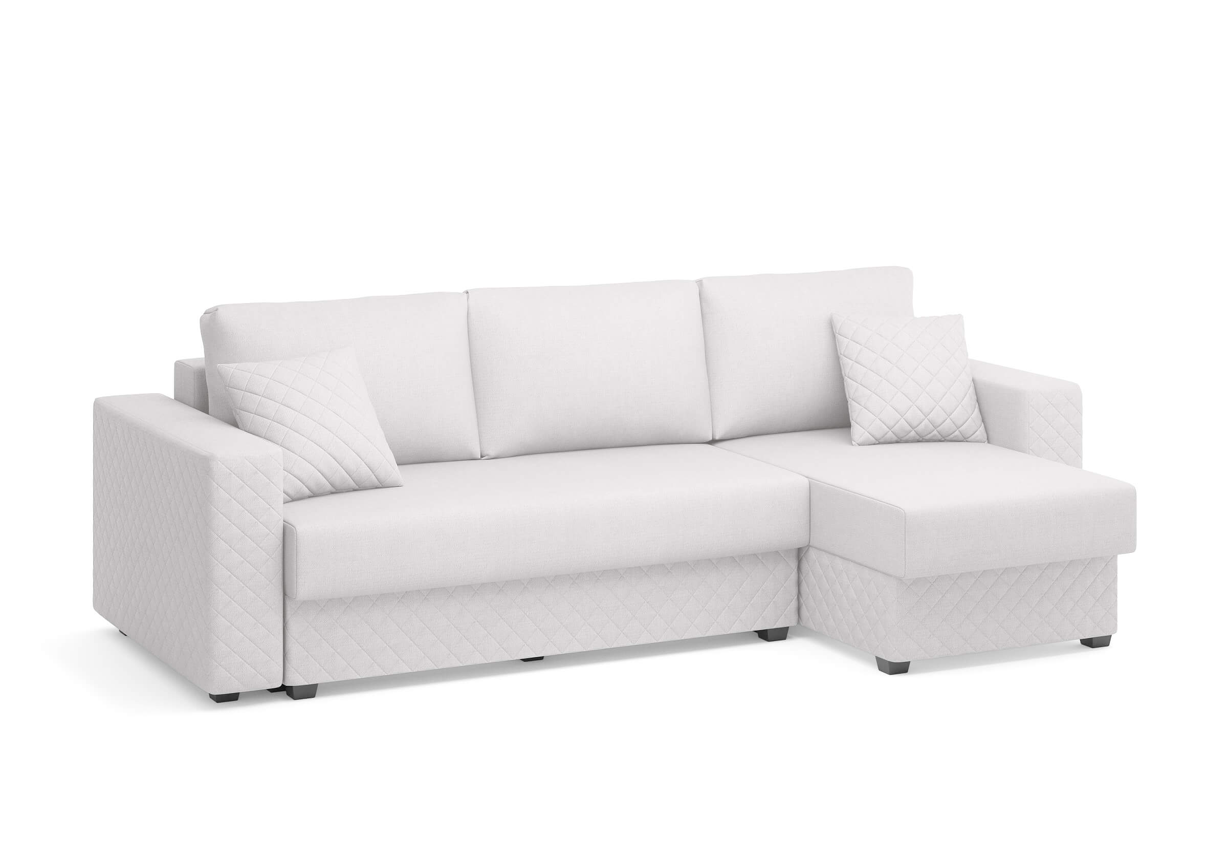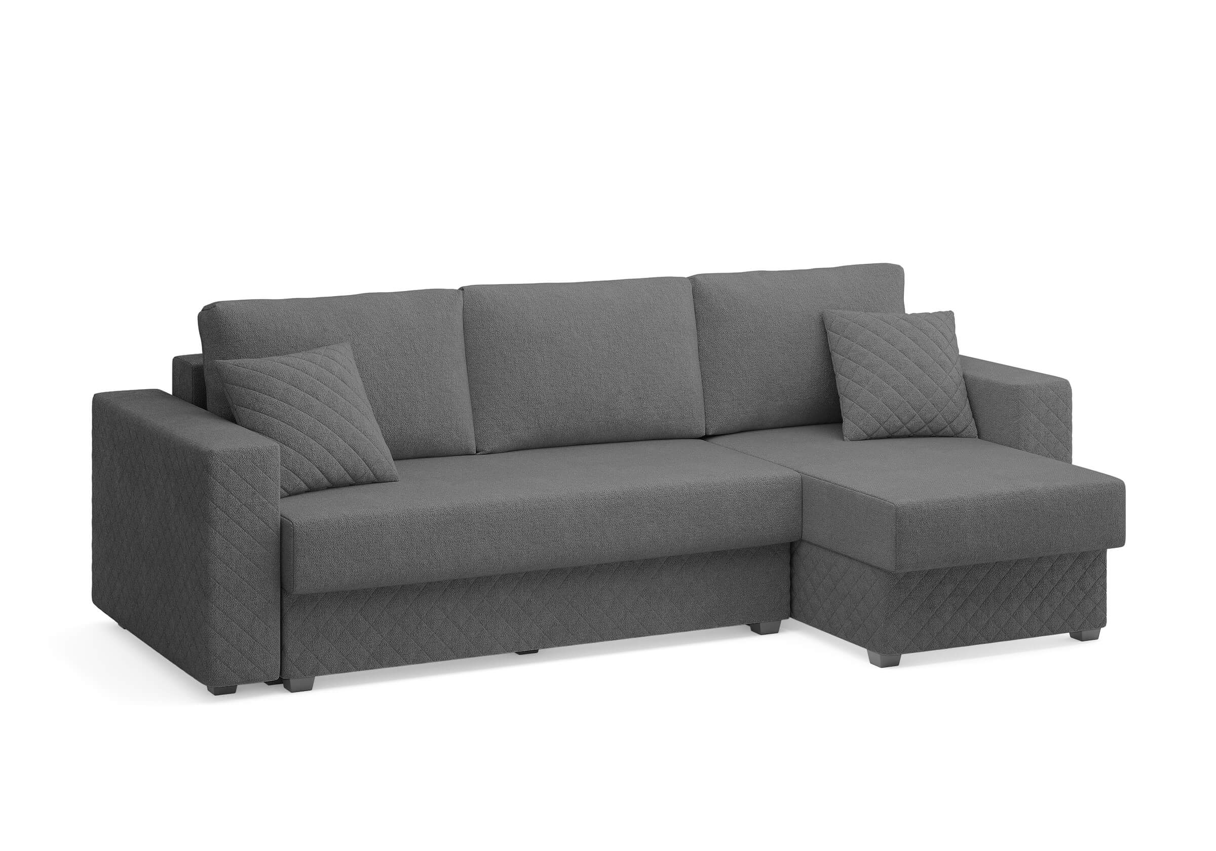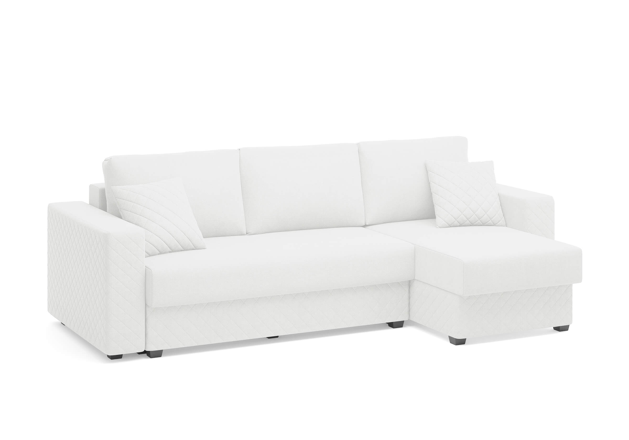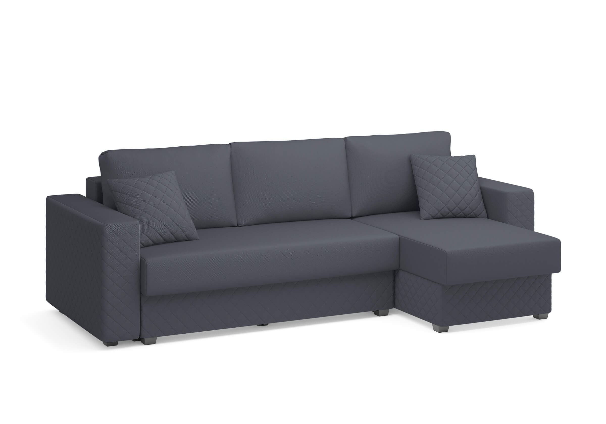 Диван оснащён современным механизмом трансформации пантограф, который обеспечивает лёгкость и удобство в использовании. В его основе лежит ортопедический матрас с независимым пружинным блоком, что гарантирует комфортный отдых и здоровый сон. Удобная глубина и высота сидения способствуют повседневному комфорту, позволяя расслабиться после долгого дня. Декоративная стёжка на подлокотниках и цоколе подчёркивает строгие, геометрические формы дивана, придавая ему стильный и современный вид. Задняя спинка дивана защищает от прикосновения со стеной во время сна, а также предотвращает возможные повреждения и загрязнения стен. В угловой секции (оттоманка) предусмотрено удобное место для хранения, что позволяет рационально использовать пространство. В комплект дивана входят две стёганные декоративные подушки, которые дополняют его внешний вид и обеспечивают комфорт. При сборке вы можете самостоятельно выбрать, с какой стороны будет расположен угол — справа или слева. Размер спального места: 150-225