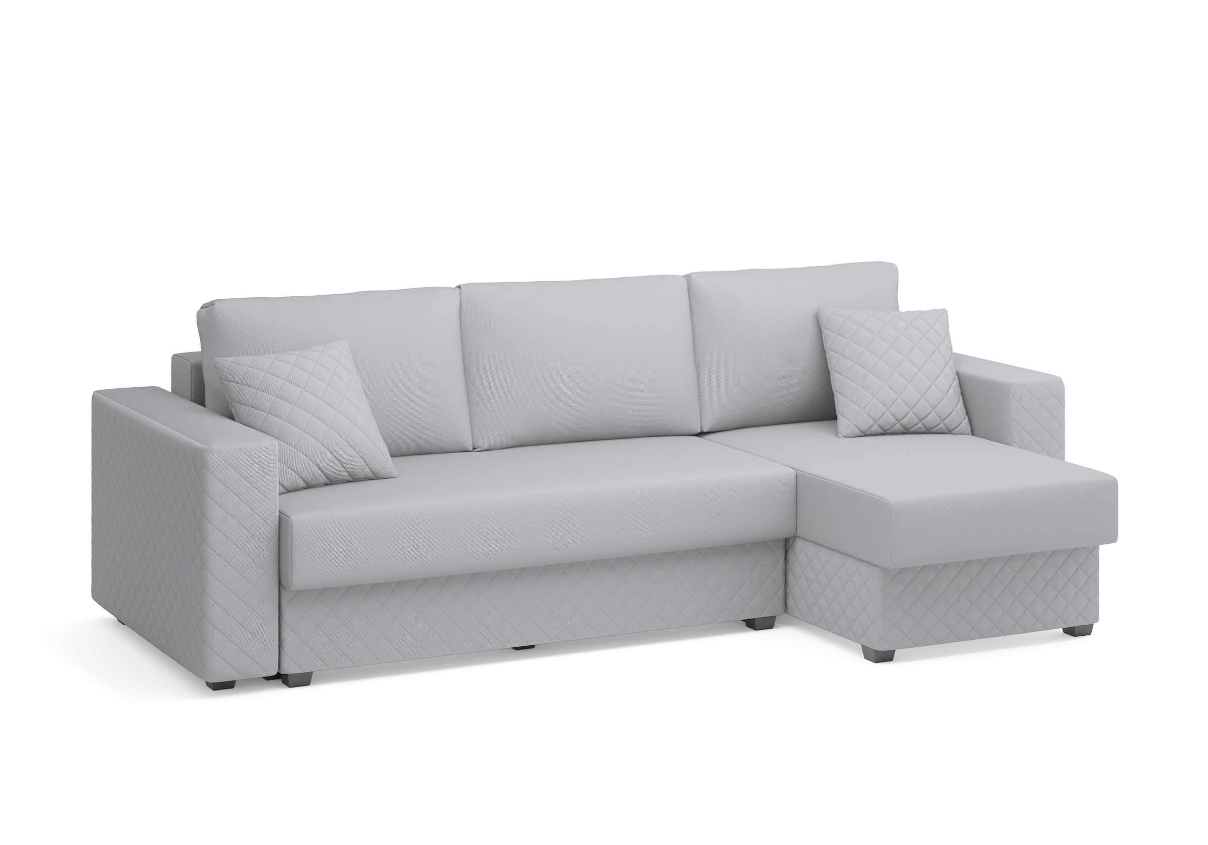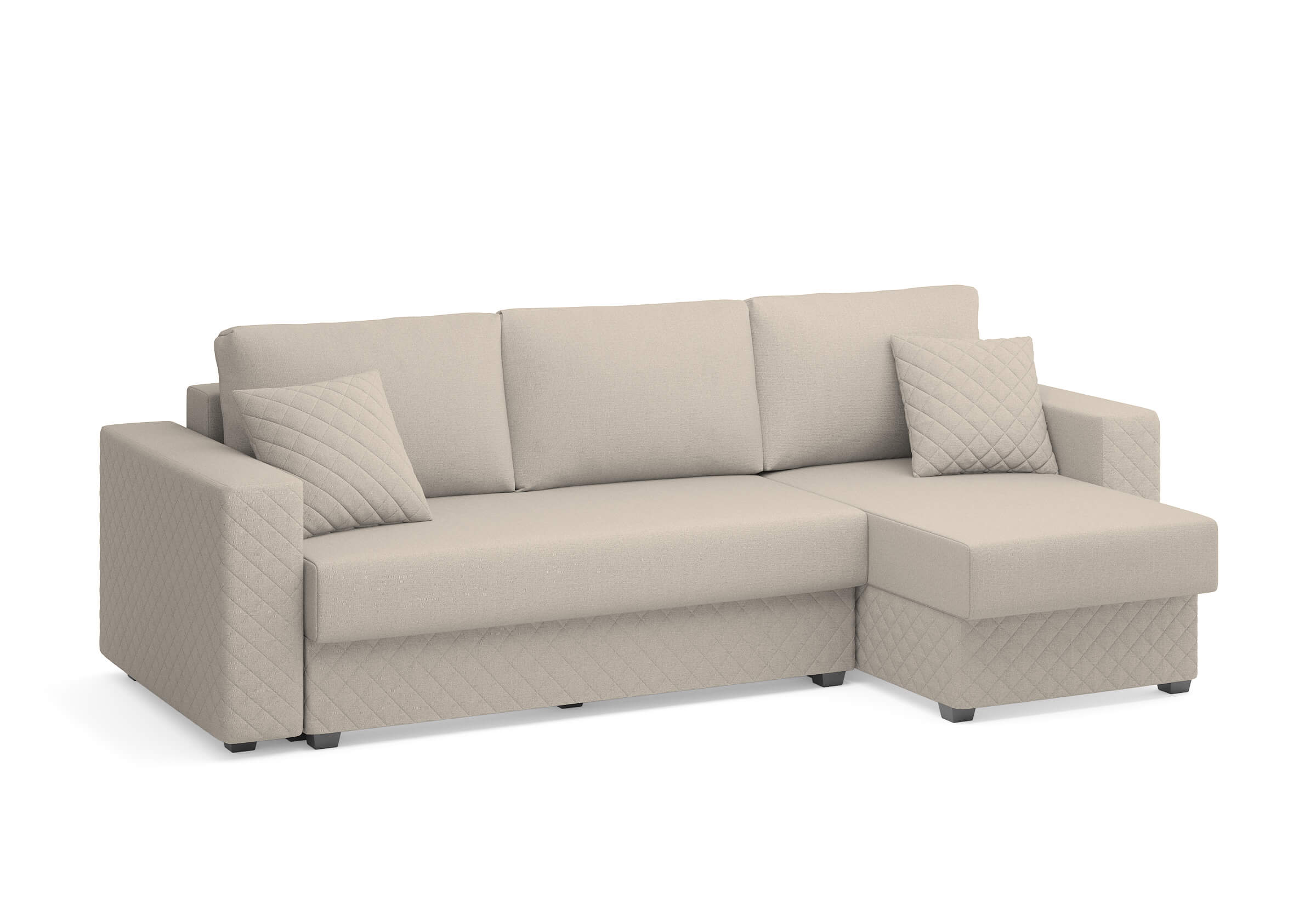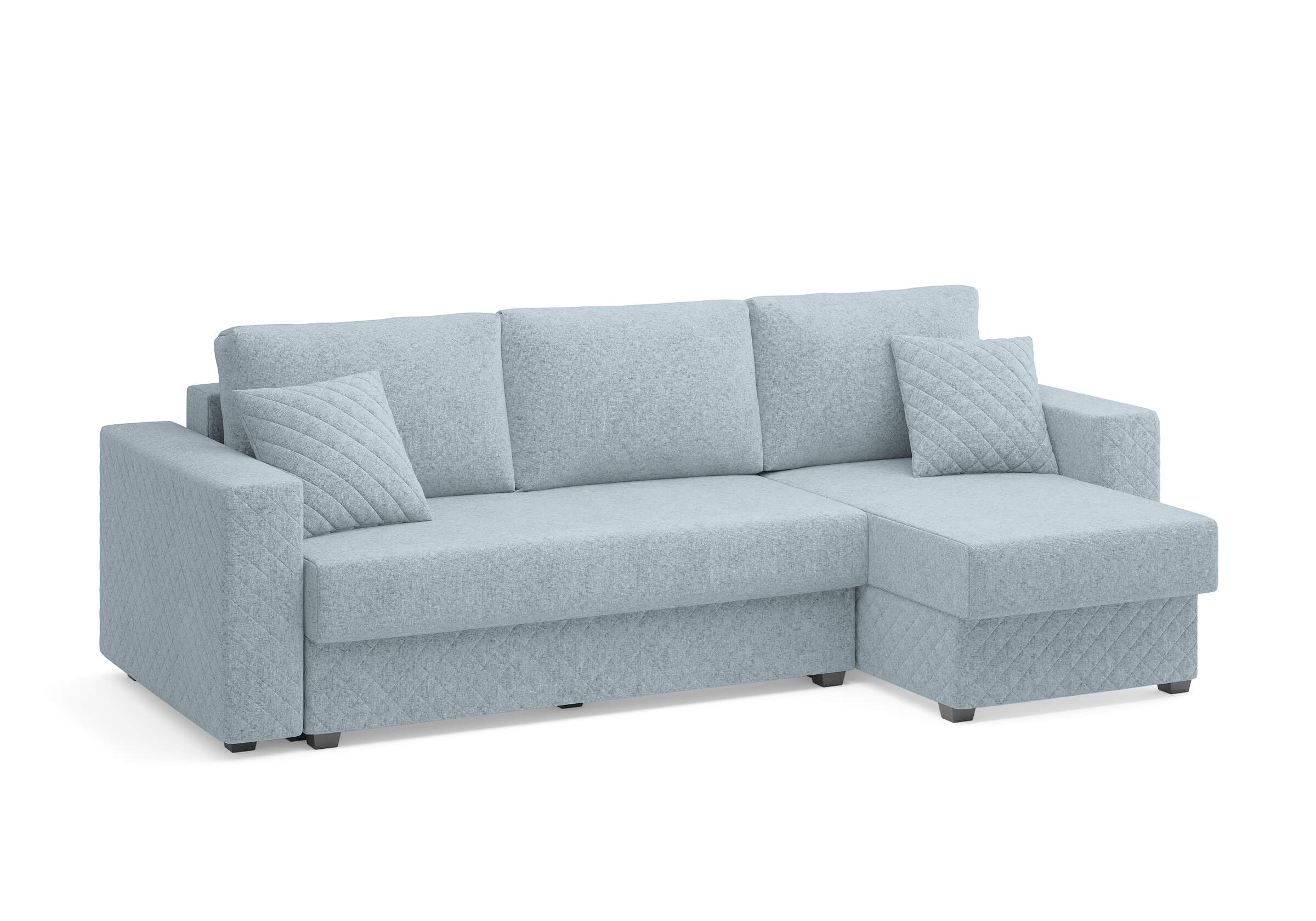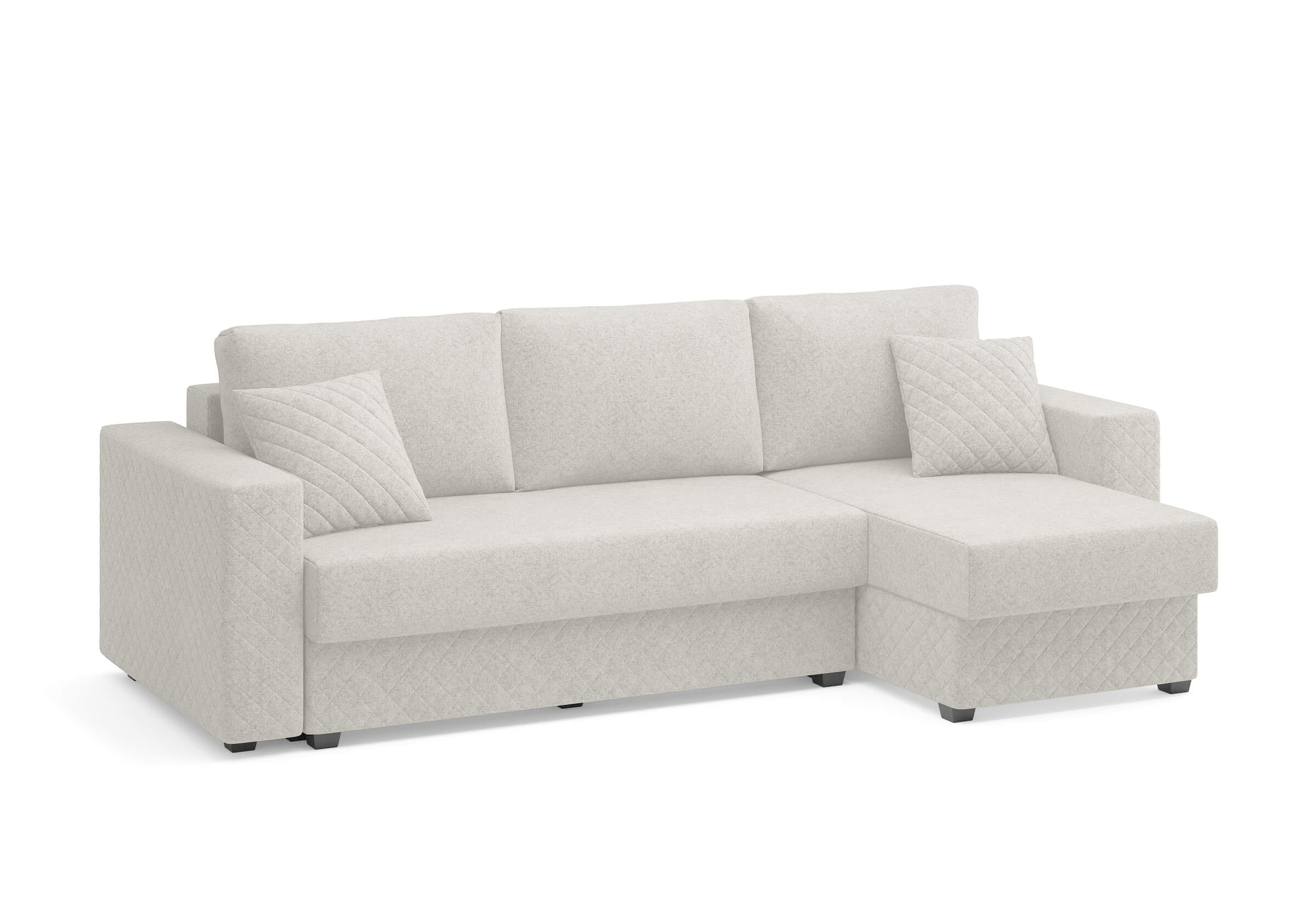 Диван оснащён современным механизмом трансформации пантограф, который обеспечивает лёгкость и удобство в использовании. В его основе лежит ортопедический матрас с независимым пружинным блоком, что гарантирует комфортный отдых и здоровый сон. Удобная глубина и высота сидения способствуют повседневному комфорту, позволяя расслабиться после долгого дня. Декоративная стёжка на подлокотниках и цоколе подчёркивает строгие, геометрические формы дивана, придавая ему стильный и современный вид. Задняя спинка дивана защищает от прикосновения со стеной во время сна, а также предотвращает возможные повреждения и загрязнения стен. В угловой секции (оттоманка) предусмотрено удобное место для хранения, что позволяет рационально использовать пространство. В комплект дивана входят две стёганные декоративные подушки, которые дополняют его внешний вид и обеспечивают комфорт. При сборке вы можете самостоятельно выбрать, с какой стороны будет расположен угол — справа или слева. Размер спального места: 150-225