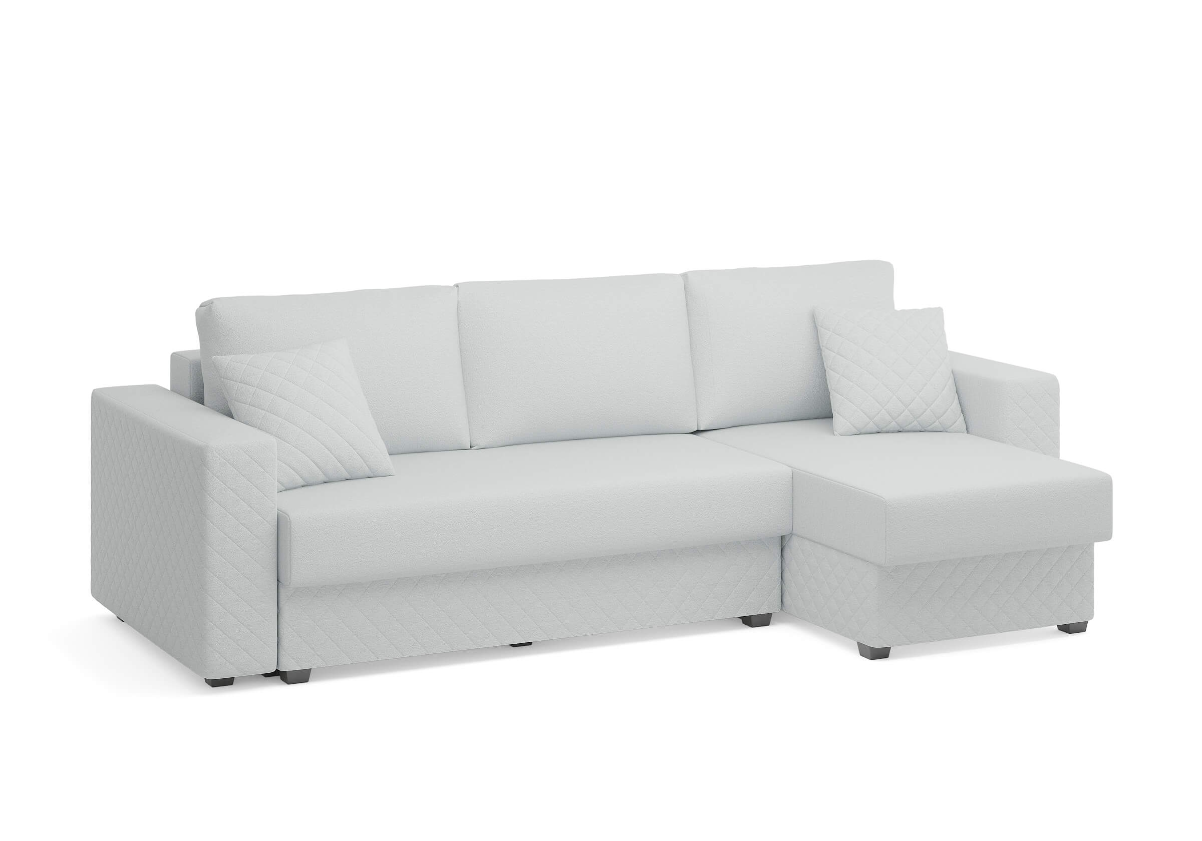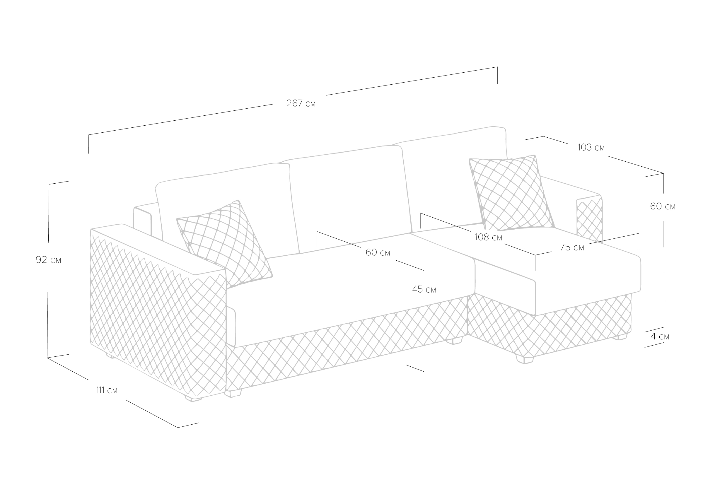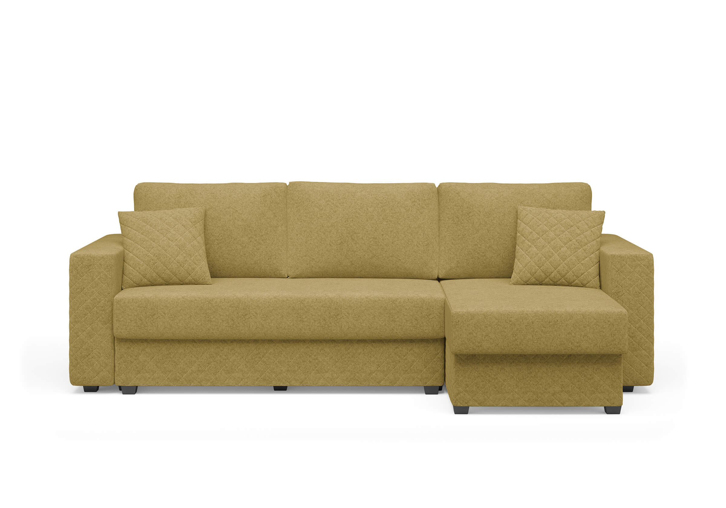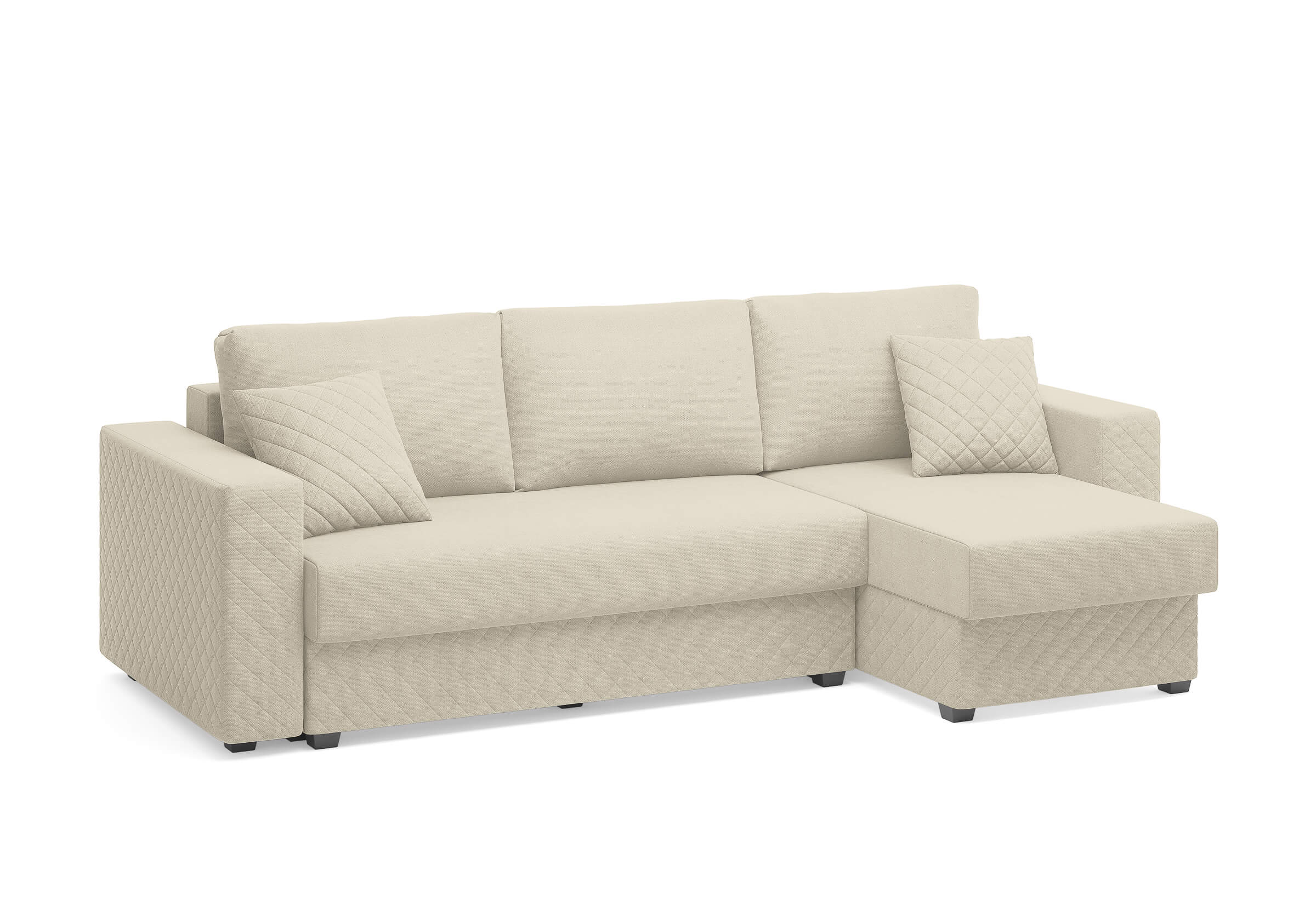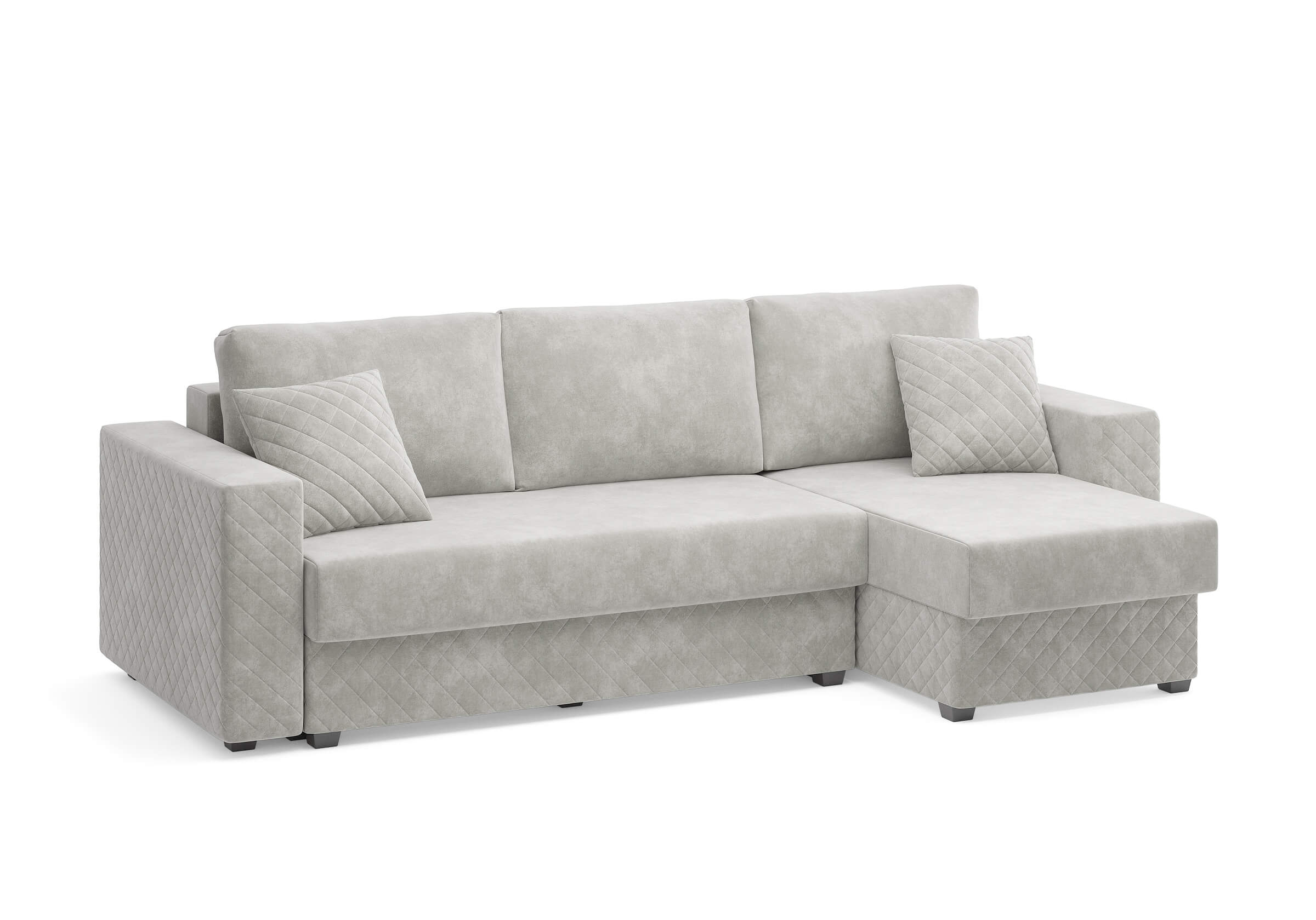 Диван оснащён современным механизмом трансформации пантограф, который обеспечивает лёгкость и удобство в использовании. В его основе лежит ортопедический матрас с независимым пружинным блоком, что гарантирует комфортный отдых и здоровый сон. Удобная глубина и высота сидения способствуют повседневному комфорту, позволяя расслабиться после долгого дня. Декоративная стёжка на подлокотниках и цоколе подчёркивает строгие, геометрические формы дивана, придавая ему стильный и современный вид. Задняя спинка дивана защищает от прикосновения со стеной во время сна, а также предотвращает возможные повреждения и загрязнения стен. В угловой секции (оттоманка) предусмотрено удобное место для хранения, что позволяет рационально использовать пространство. В комплект дивана входят две стёганные декоративные подушки, которые дополняют его внешний вид и обеспечивают комфорт. При сборке вы можете самостоятельно выбрать, с какой стороны будет расположен угол — справа или слева. Размер спального места: 150-225