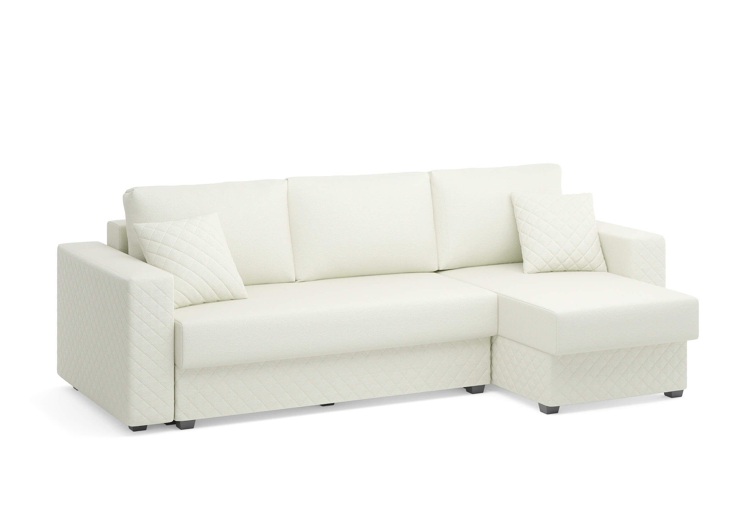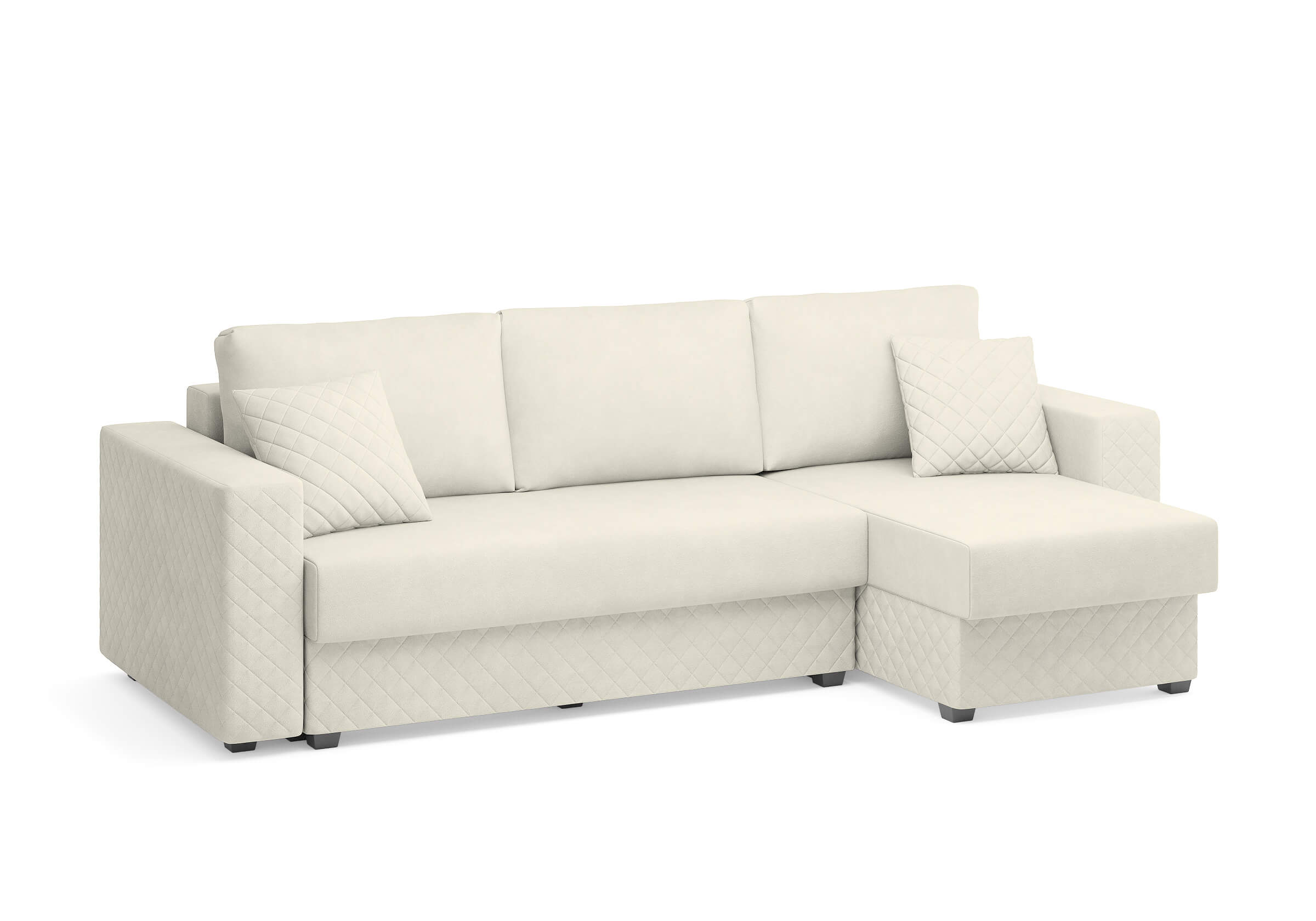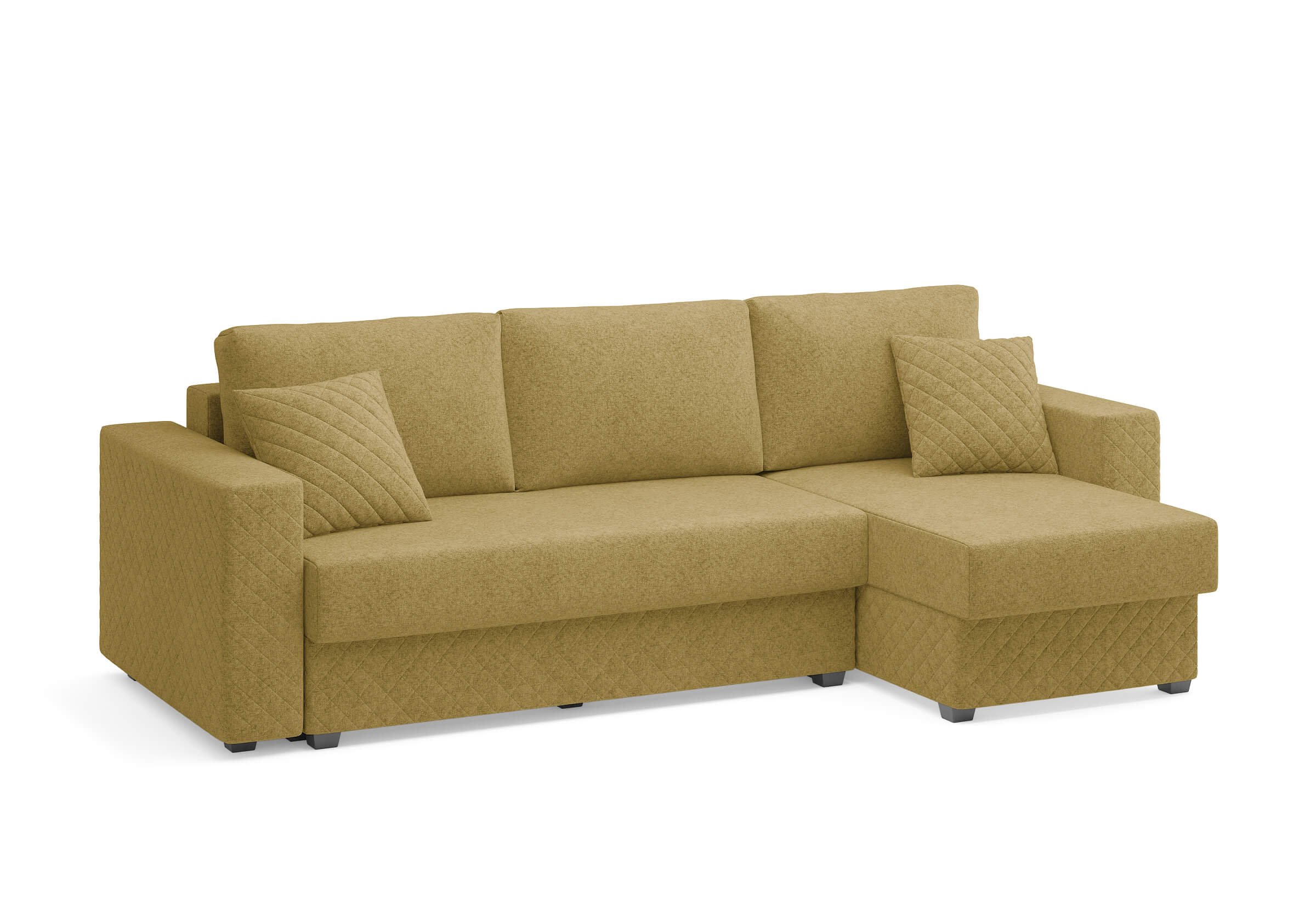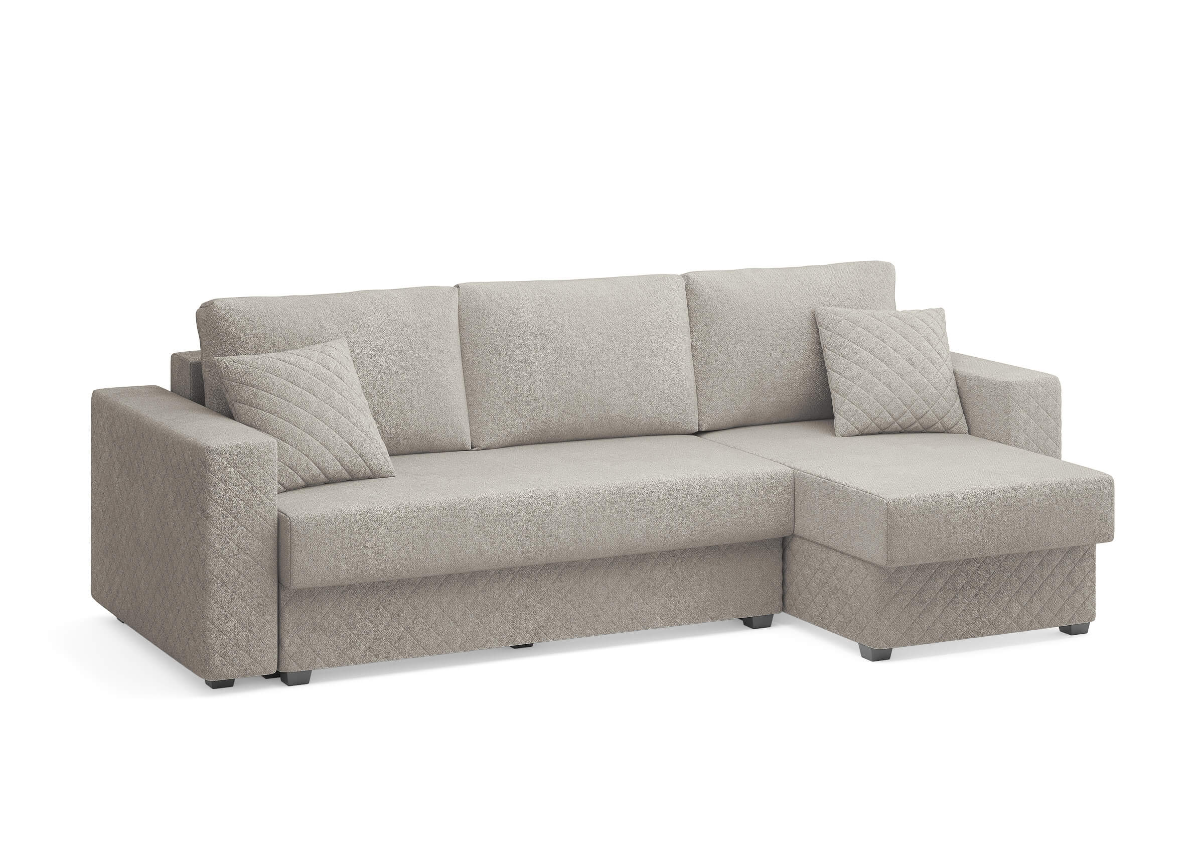 Диван оснащён современным механизмом трансформации пантограф, который обеспечивает лёгкость и удобство в использовании. В его основе лежит ортопедический матрас с независимым пружинным блоком, что гарантирует комфортный отдых и здоровый сон. Удобная глубина и высота сидения способствуют повседневному комфорту, позволяя расслабиться после долгого дня. Декоративная стёжка на подлокотниках и цоколе подчёркивает строгие, геометрические формы дивана, придавая ему стильный и современный вид. Задняя спинка дивана защищает от прикосновения со стеной во время сна, а также предотвращает возможные повреждения и загрязнения стен. В угловой секции (оттоманка) предусмотрено удобное место для хранения, что позволяет рационально использовать пространство. В комплект дивана входят две стёганные декоративные подушки, которые дополняют его внешний вид и обеспечивают комфорт. При сборке вы можете самостоятельно выбрать, с какой стороны будет расположен угол — справа или слева. Размер спального места: 150-225