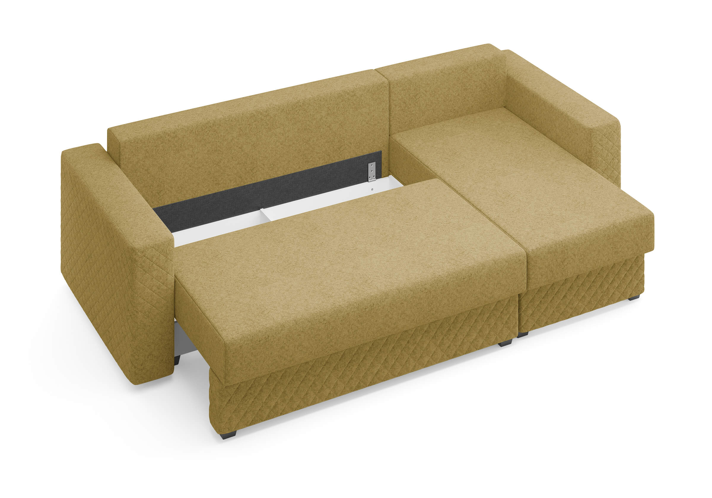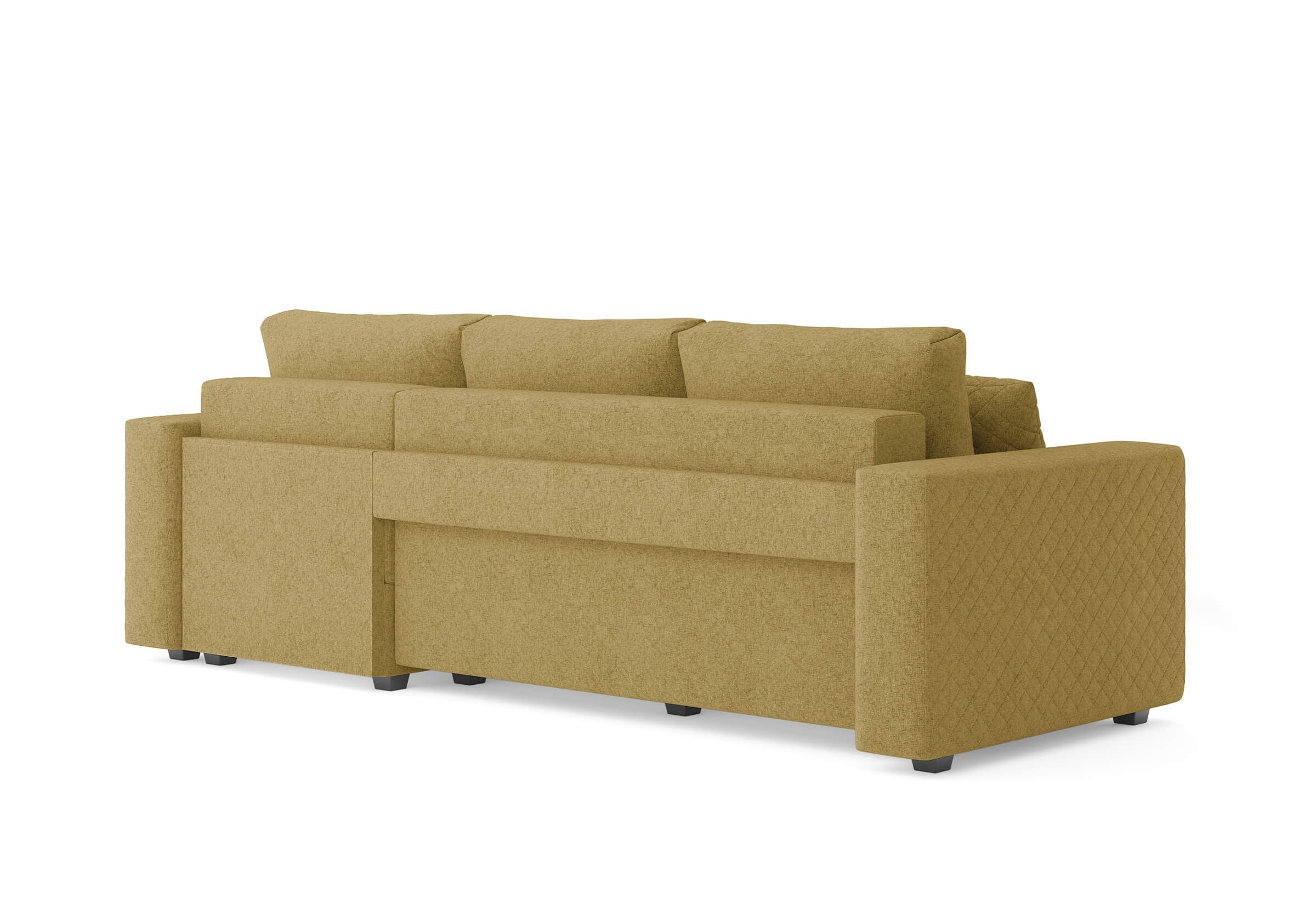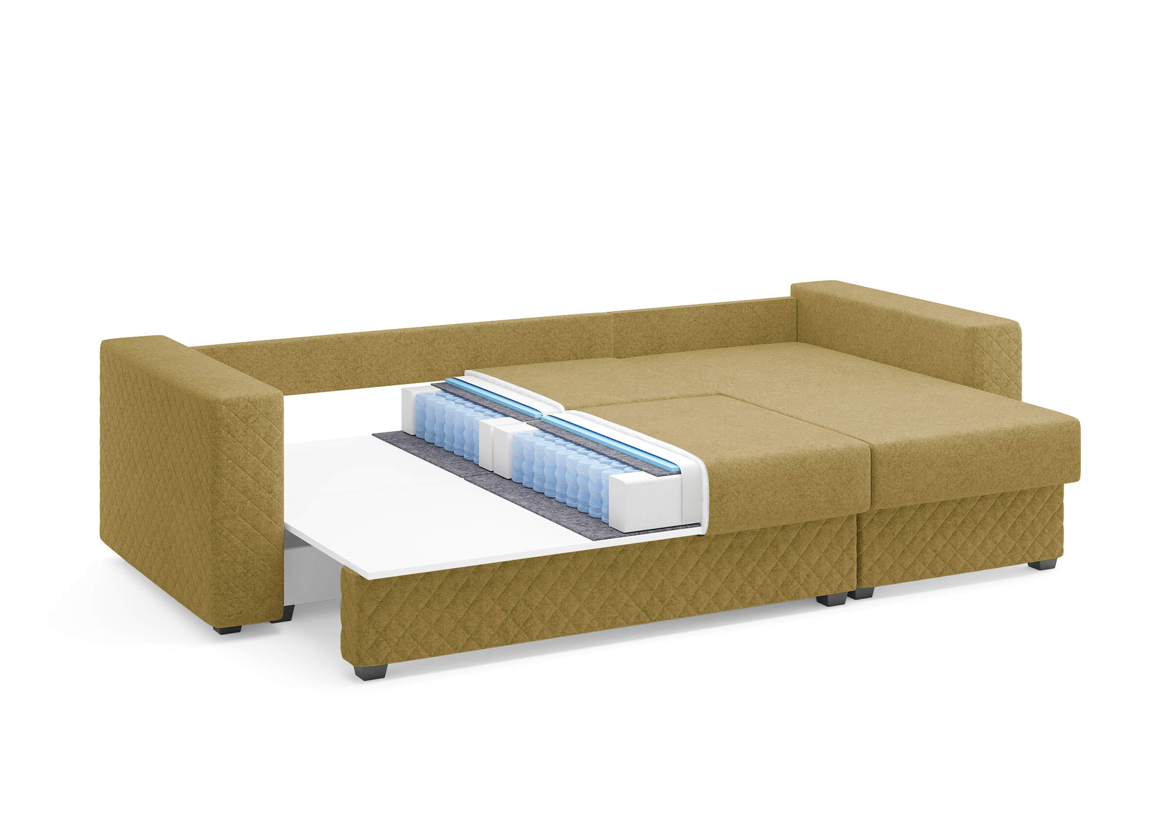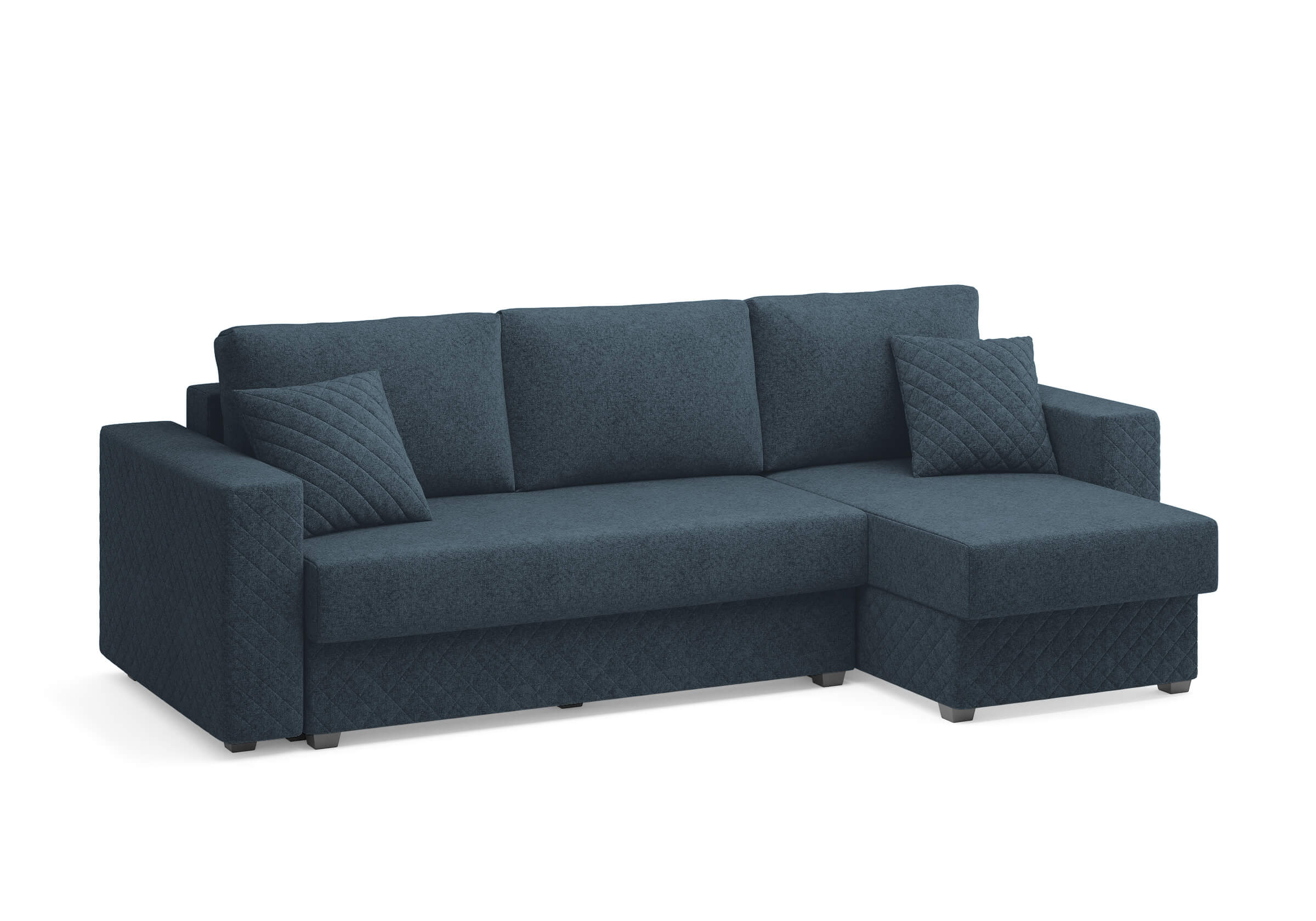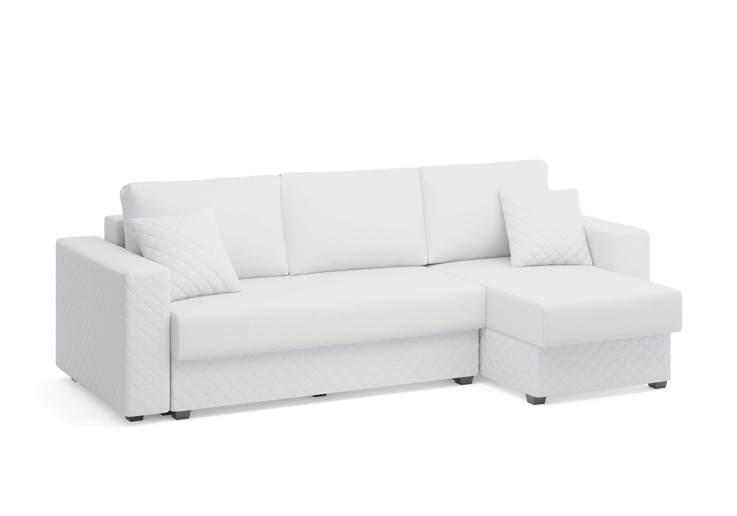 Диван оснащён современным механизмом трансформации пантограф, который обеспечивает лёгкость и удобство в использовании. В его основе лежит ортопедический матрас с независимым пружинным блоком, что гарантирует комфортный отдых и здоровый сон. Удобная глубина и высота сидения способствуют повседневному комфорту, позволяя расслабиться после долгого дня. Декоративная стёжка на подлокотниках и цоколе подчёркивает строгие, геометрические формы дивана, придавая ему стильный и современный вид. Задняя спинка дивана защищает от прикосновения со стеной во время сна, а также предотвращает возможные повреждения и загрязнения стен. В угловой секции (оттоманка) предусмотрено удобное место для хранения, что позволяет рационально использовать пространство. В комплект дивана входят две стёганные декоративные подушки, которые дополняют его внешний вид и обеспечивают комфорт. При сборке вы можете самостоятельно выбрать, с какой стороны будет расположен угол — справа или слева. Размер спального места: 150-225