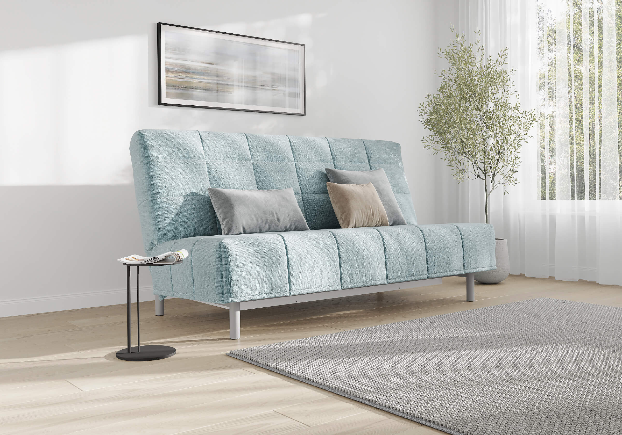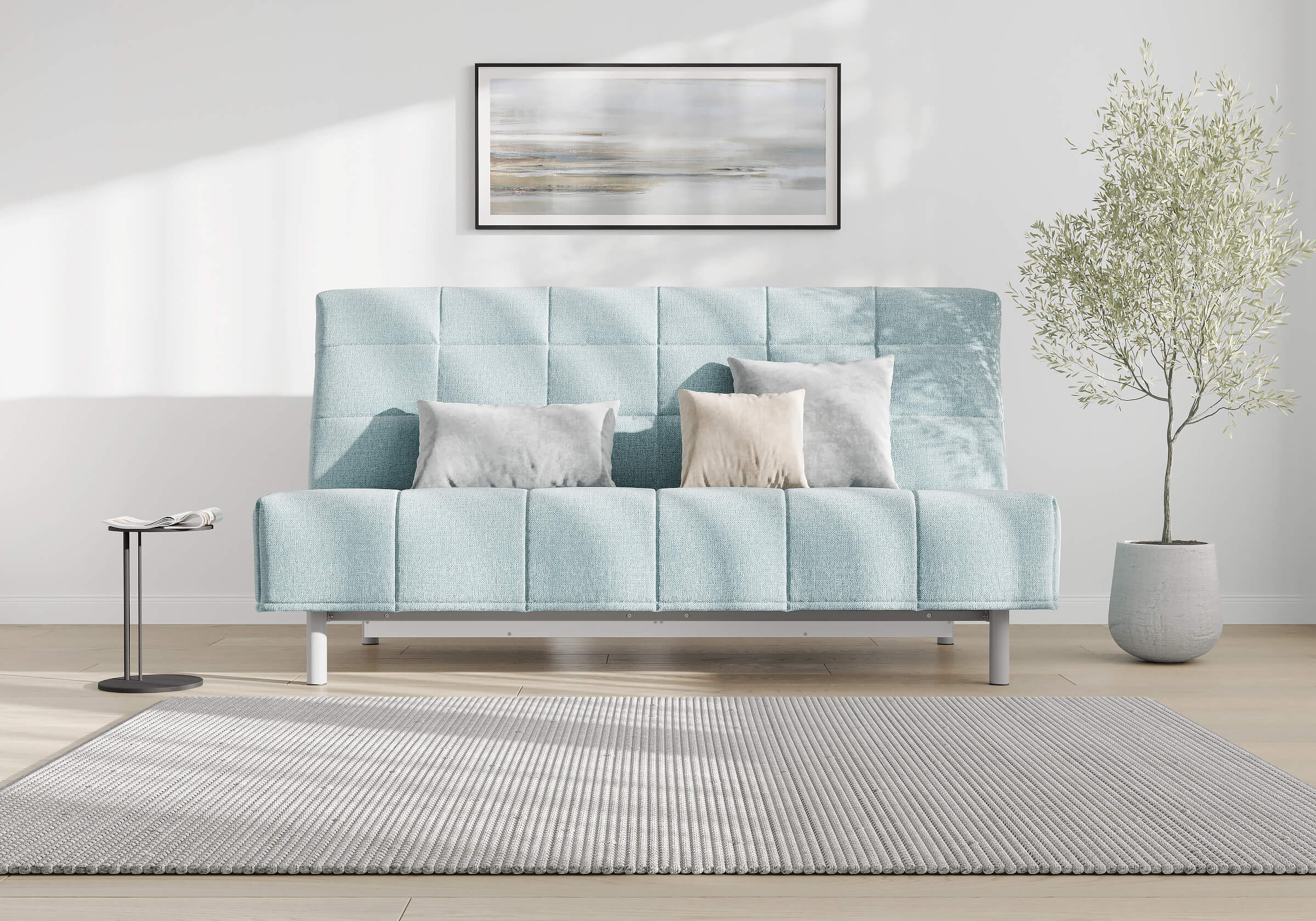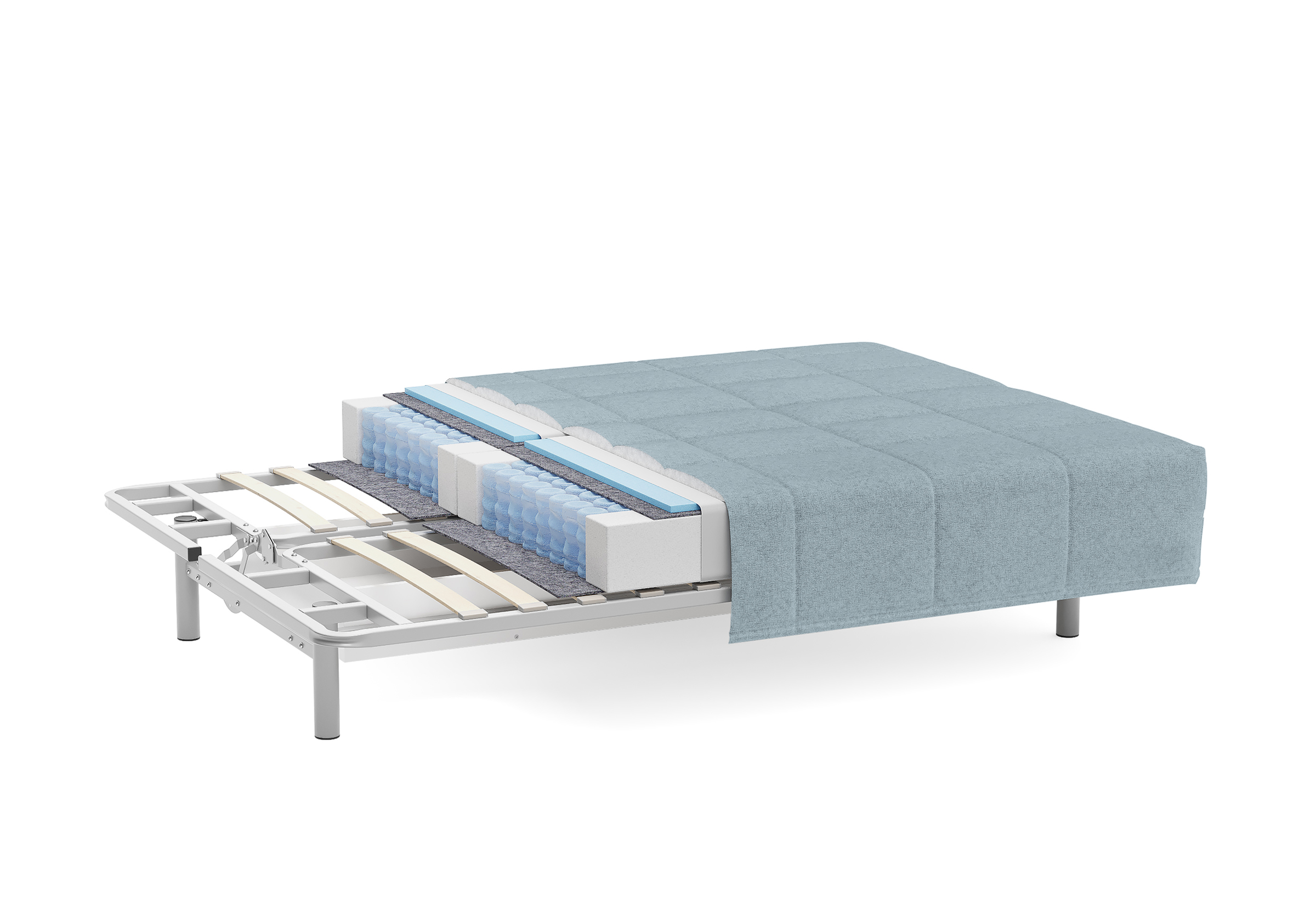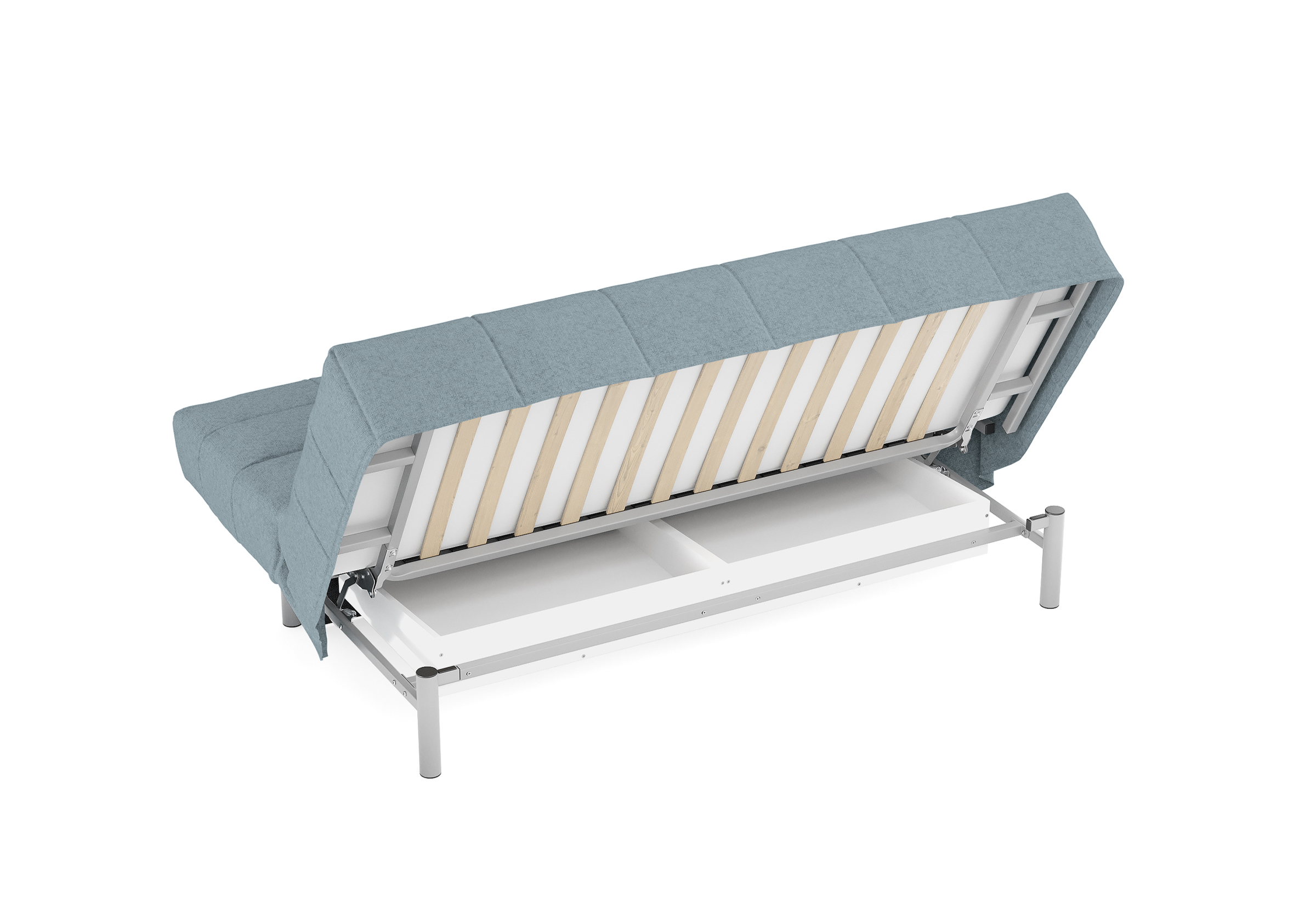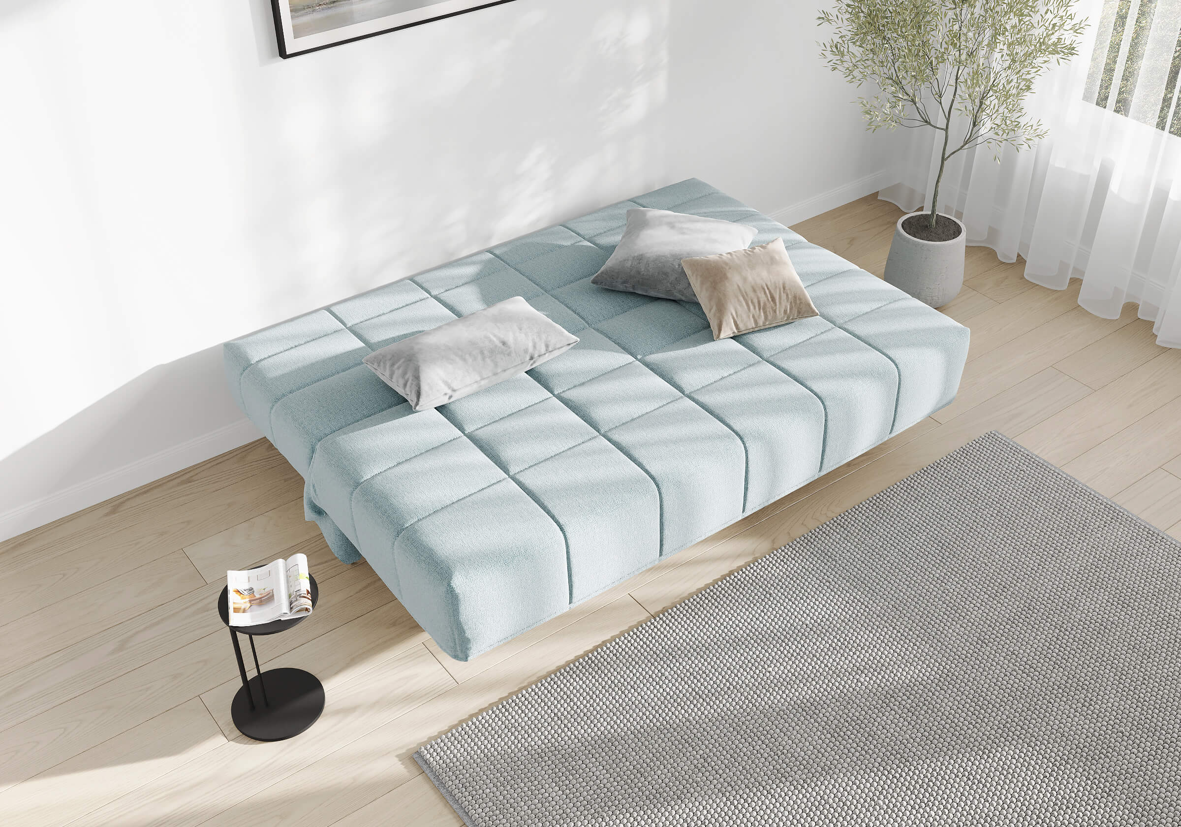 Диван для сна в современном стиле с механизмом трансформации «клик-кляк» и коробом для хранения. Основание дивана металлическое, с ламелями. Матрас анатомический с независимым пружинным блоком. Благодаря съемному чехлу с объемной стежкой в форме квадратов, диван органично впишется в современные интерьеры в стиле минимализм. Благодаря отсутствию подлокотников у дивана минимальные габариты как в сложенном, так и разложенном виде. 3 положения трансформации: диван, кровать, релакс. Диван Liberty box оборудован вместительным коробом для хранения постельного белья или аксессуаров для сна. Опоры металлические, просвет над полом способствует легкой уборке под диваном. Размер спального места: 140-200