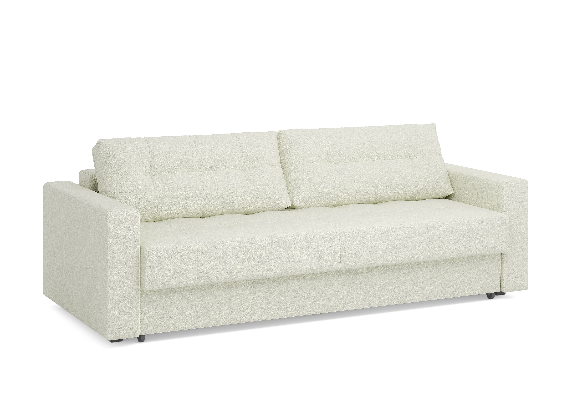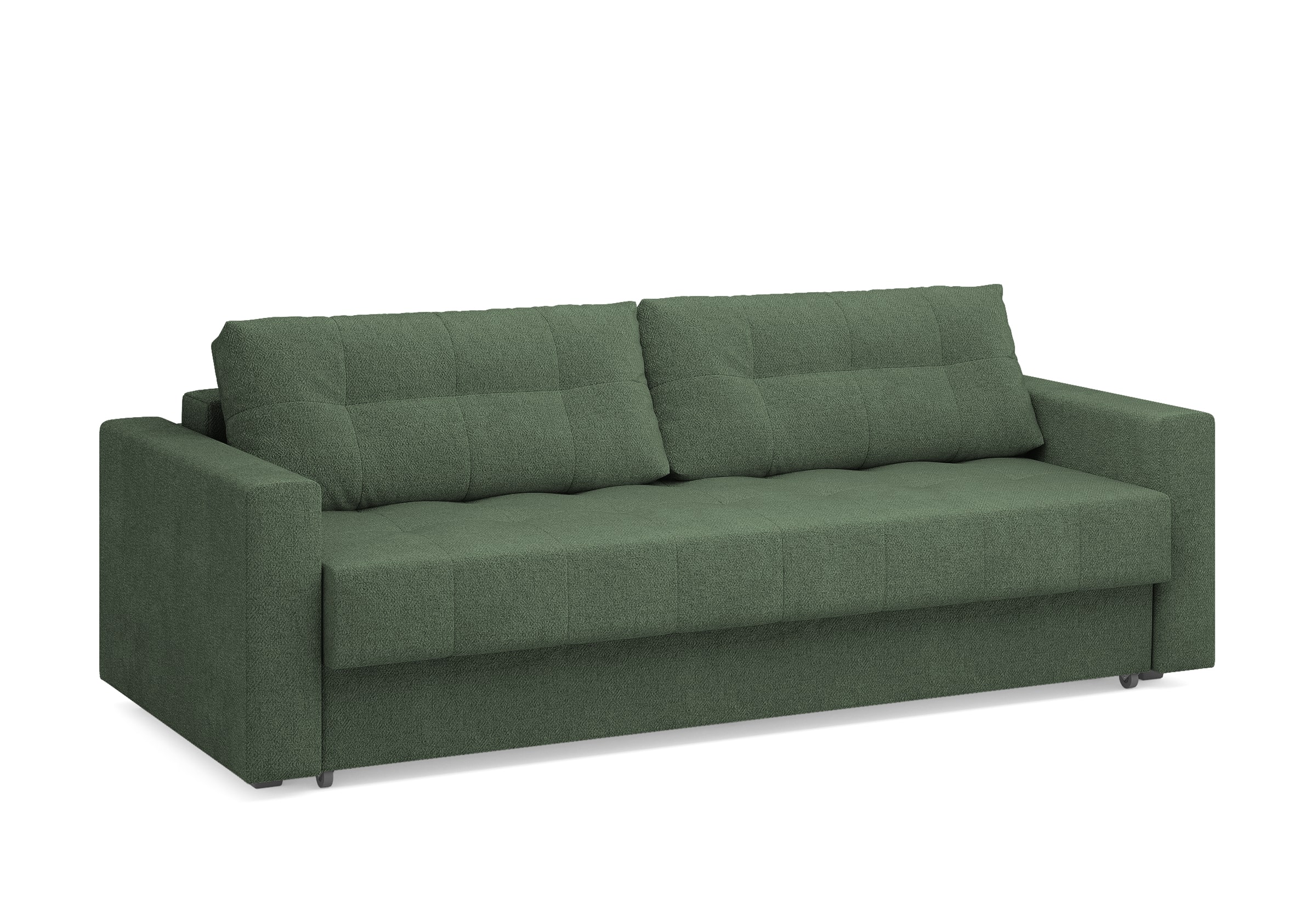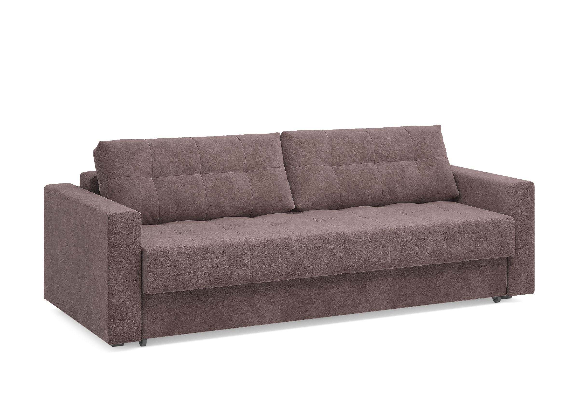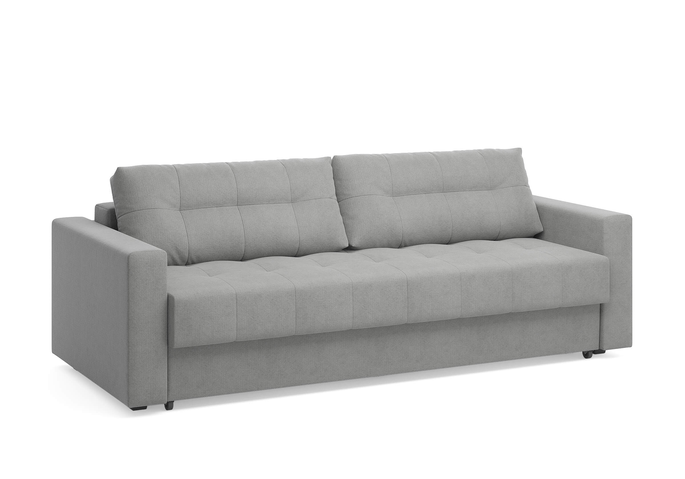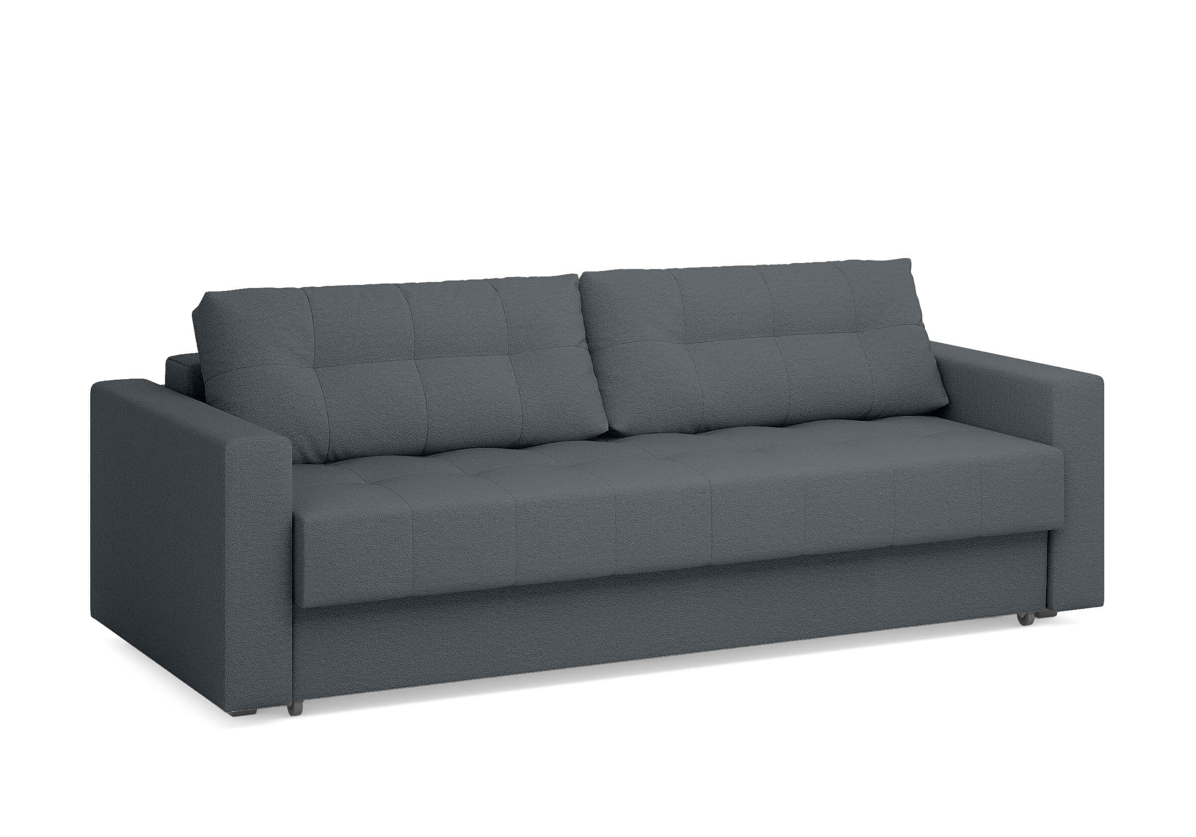 Диван для сна с подлокотниками, механизмом трансформации еврокнижка и коробом для хранения. Благодаря объемной стежке в форме квадратов на сидении и подушках, минимальным по высоте опорам, подлокотникам средней ширины, диван органично впишется в большинство современных интерьеров. Матрас анатомический с независимым пружинным блоком обеспечит комфортное спальное место. В основе мягких подушек – микс наполнителей: поролоновая крошка не дает деформироваться, а синтетическое волокно добавляет комфорт. Размер спального места: 150-200