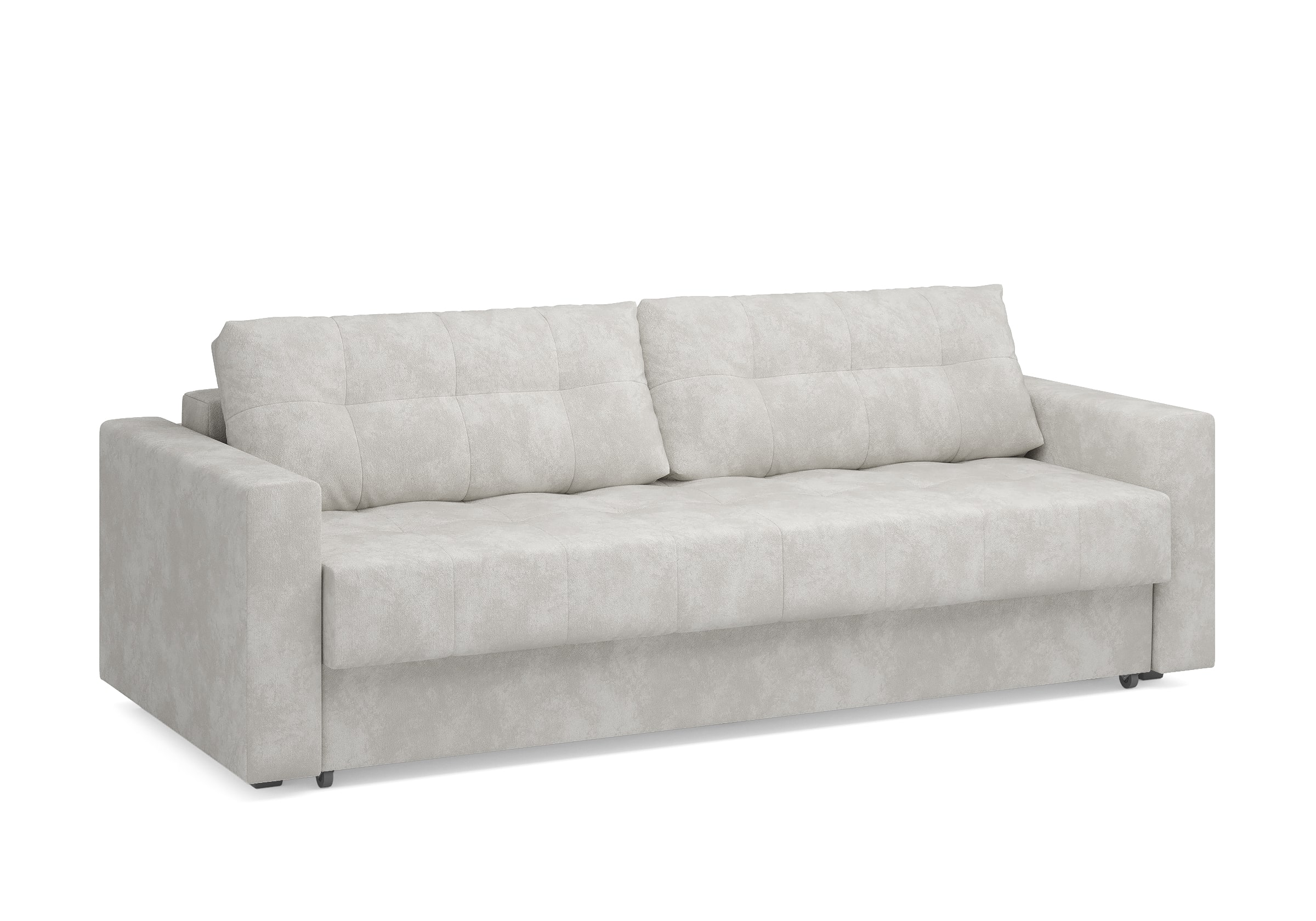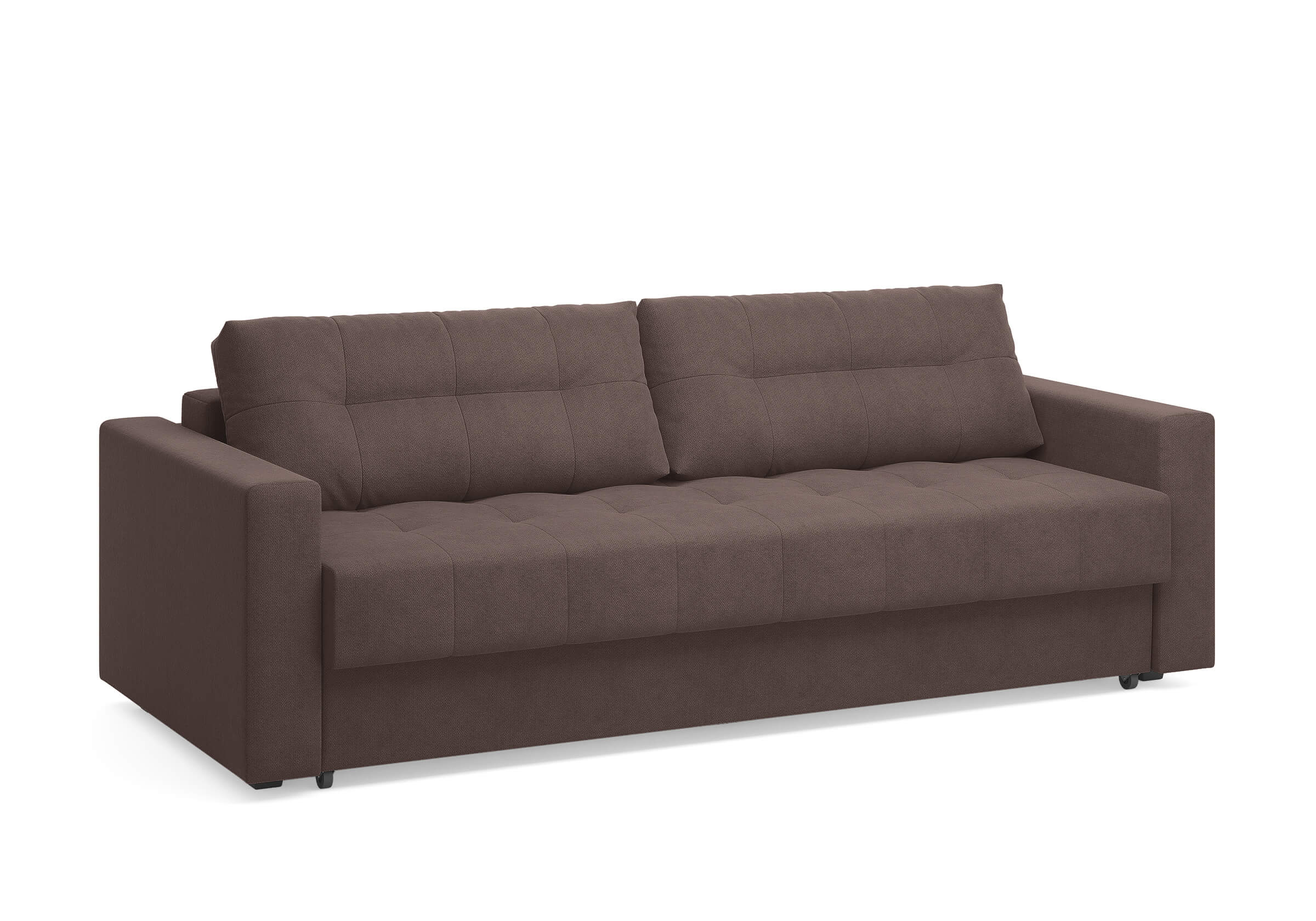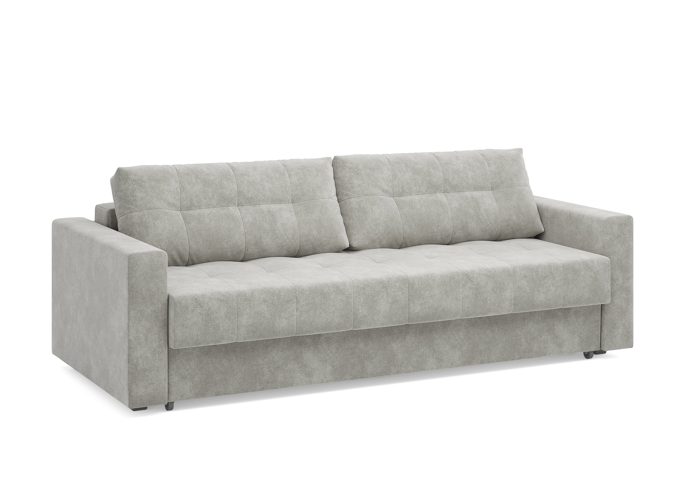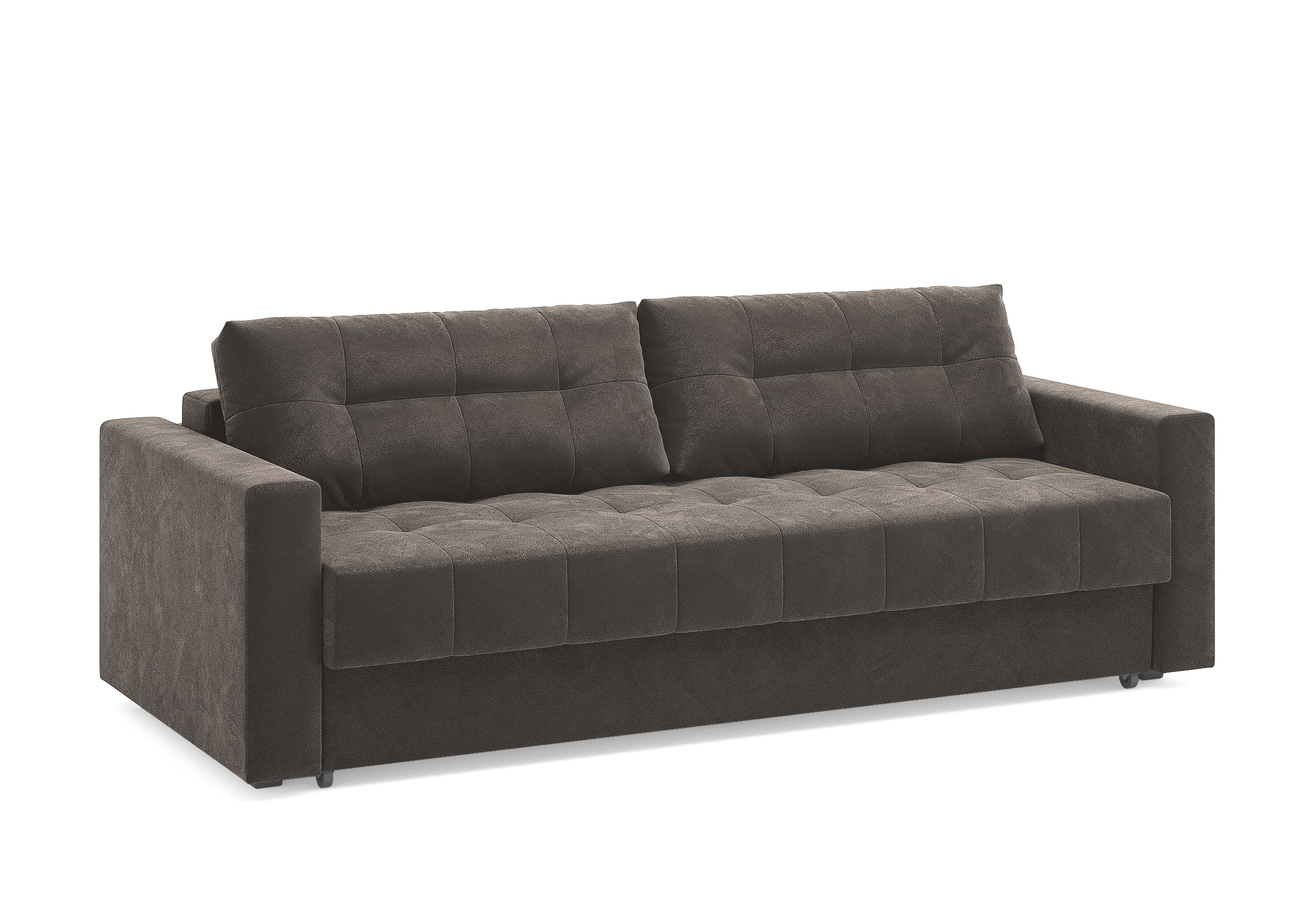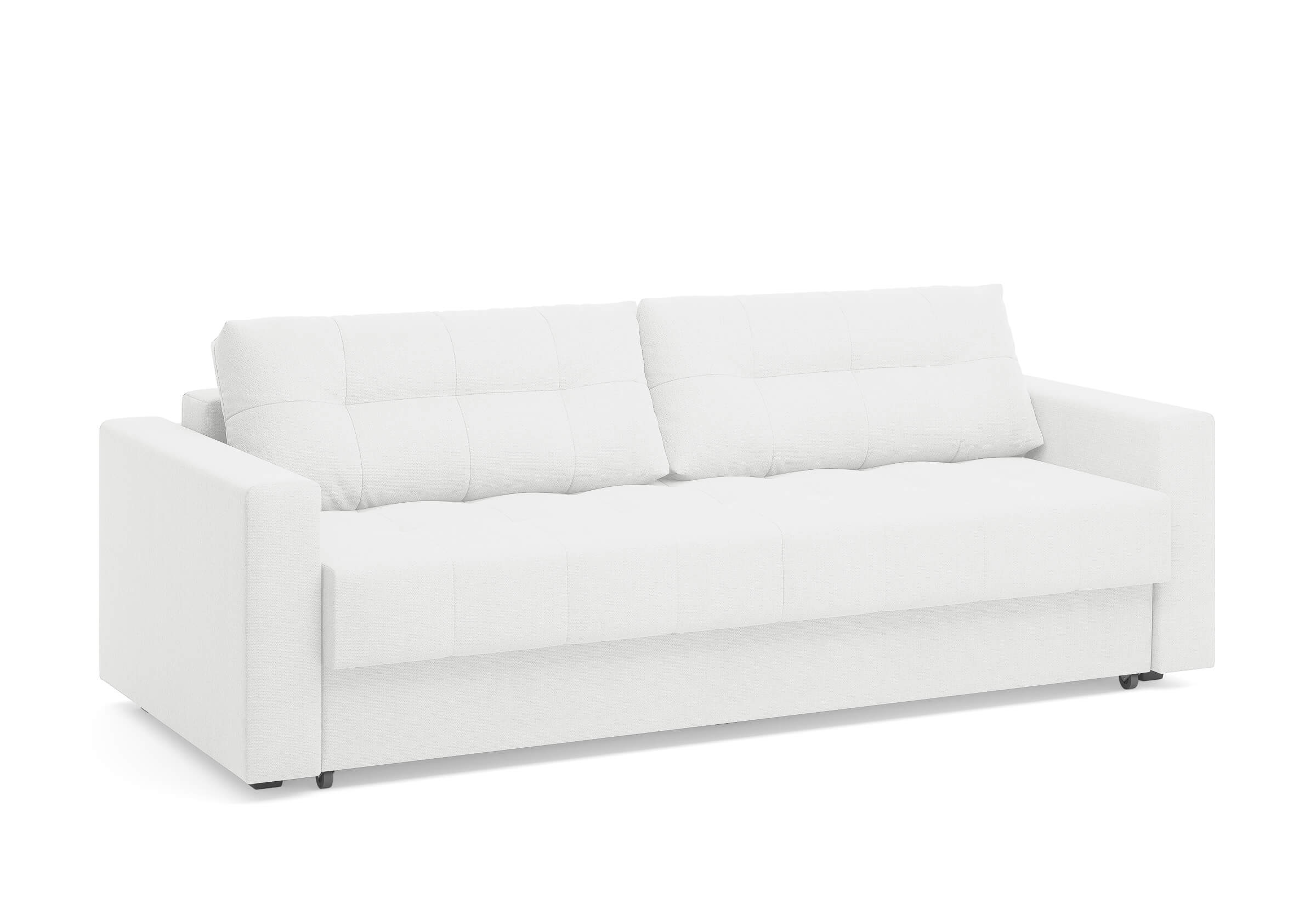 Диван для сна с подлокотниками, механизмом трансформации еврокнижка и коробом для хранения. Благодаря объемной стежке в форме квадратов на сидении и подушках, минимальным по высоте опорам, подлокотникам средней ширины, диван органично впишется в большинство современных интерьеров. Матрас анатомический с независимым пружинным блоком обеспечит комфортное спальное место. В основе мягких подушек – микс наполнителей: поролоновая крошка не дает деформироваться, а синтетическое волокно добавляет комфорт. Размер спального места: 150-200