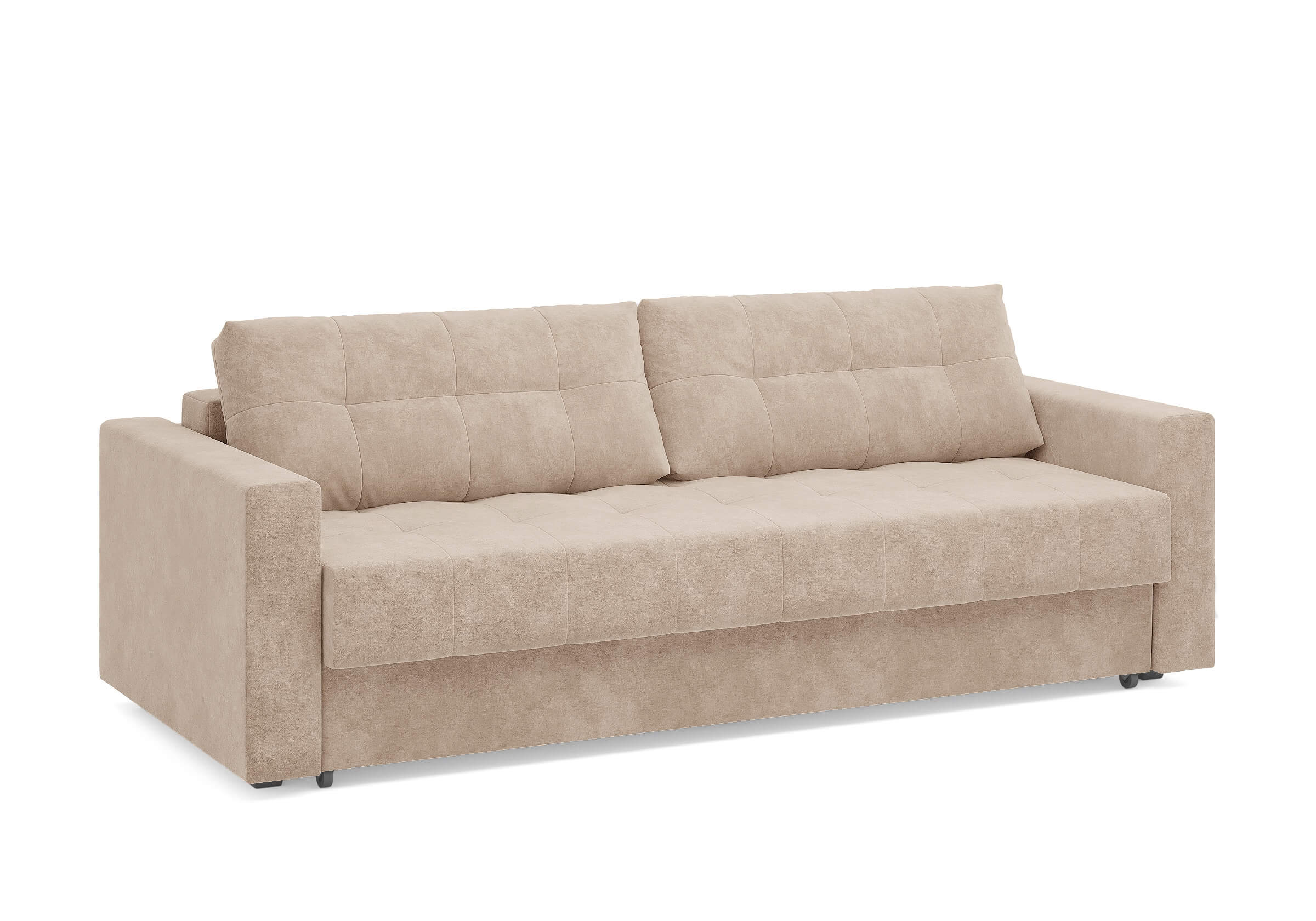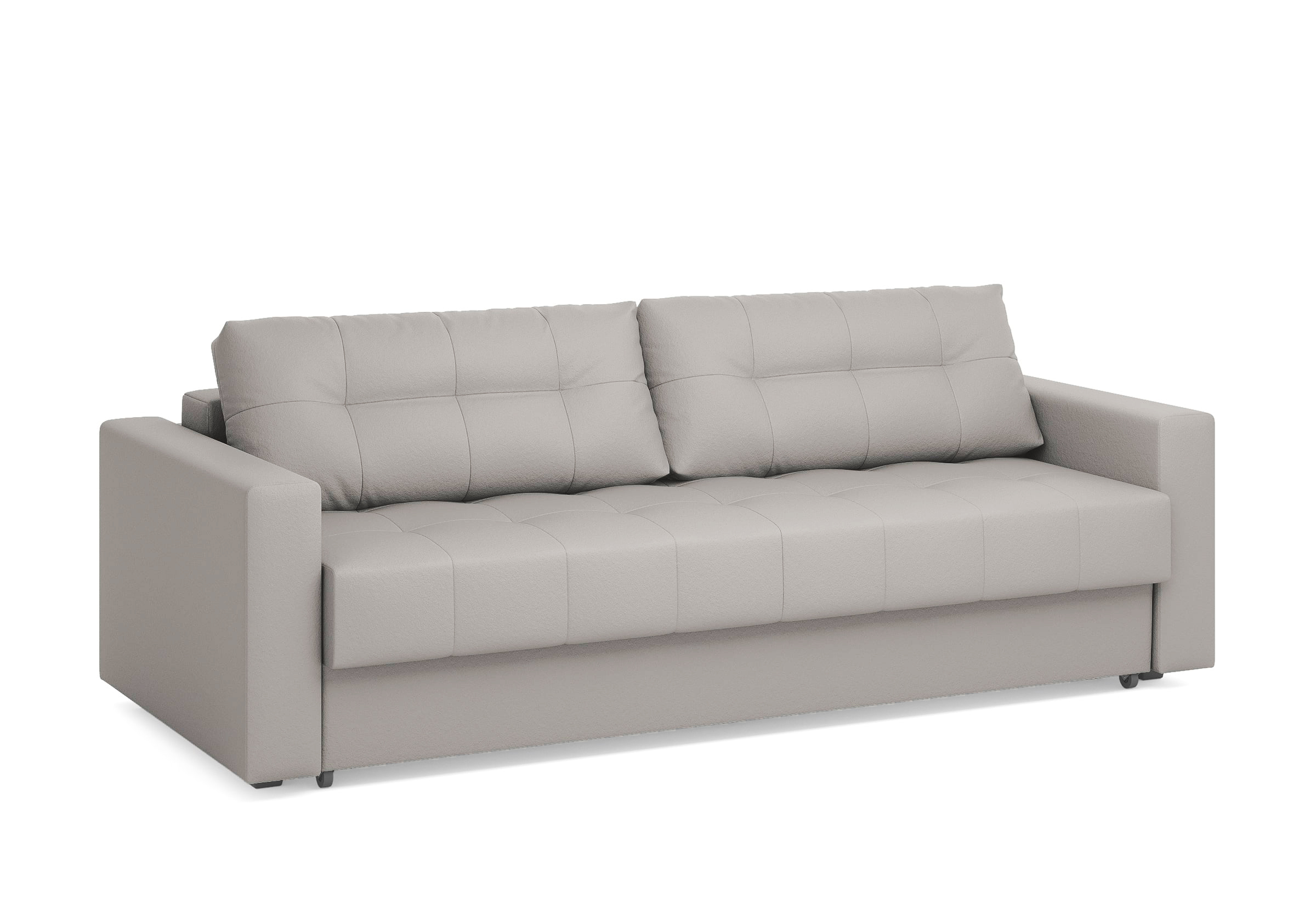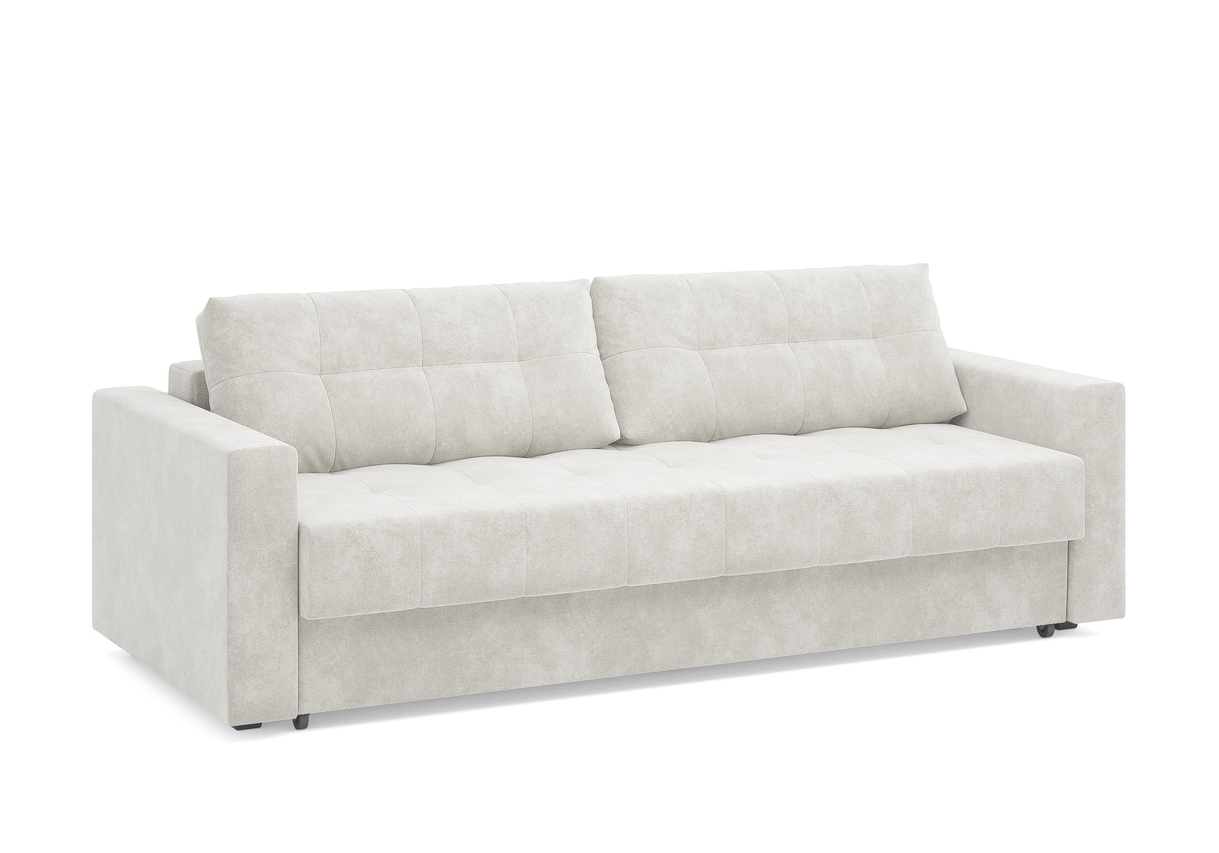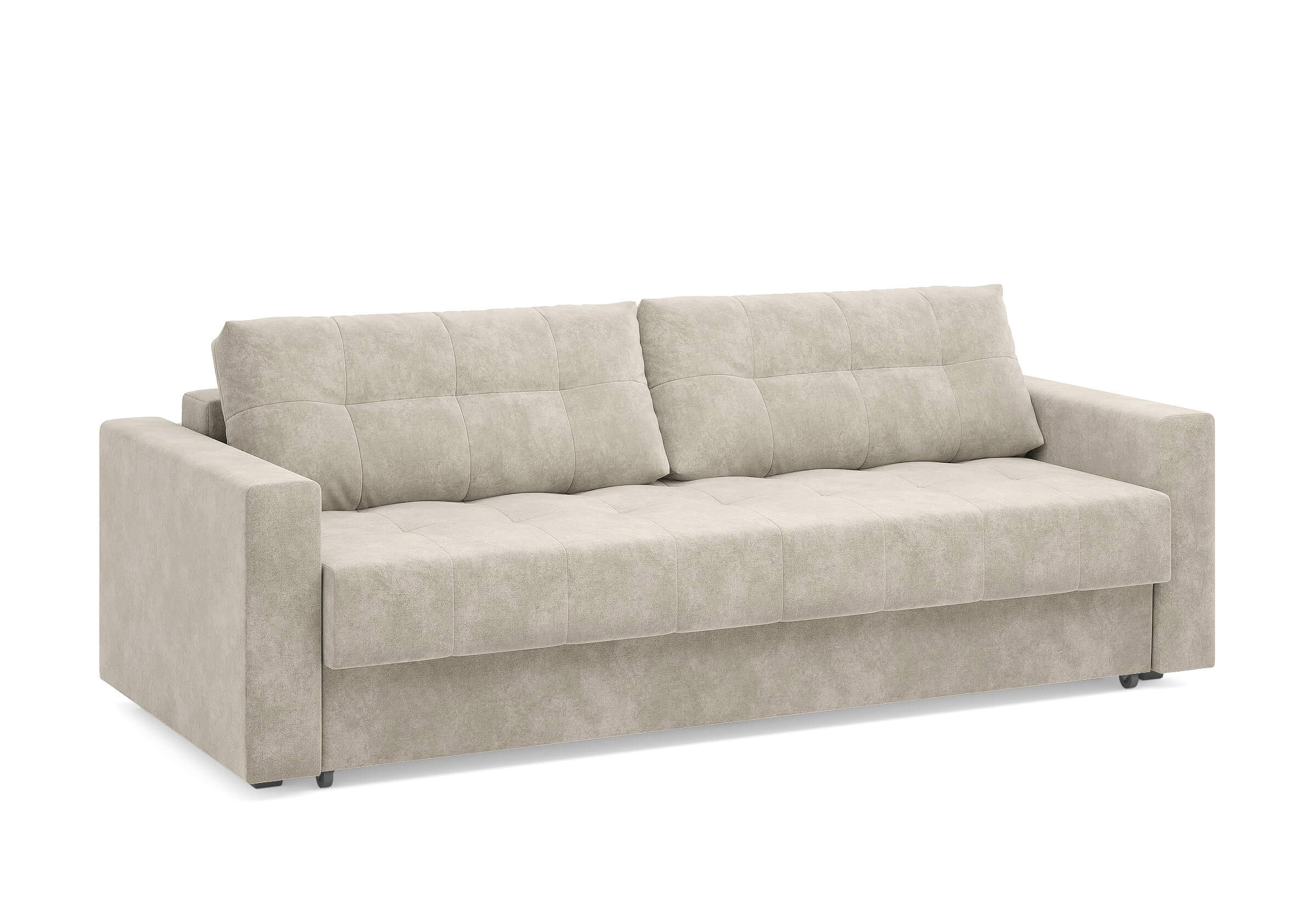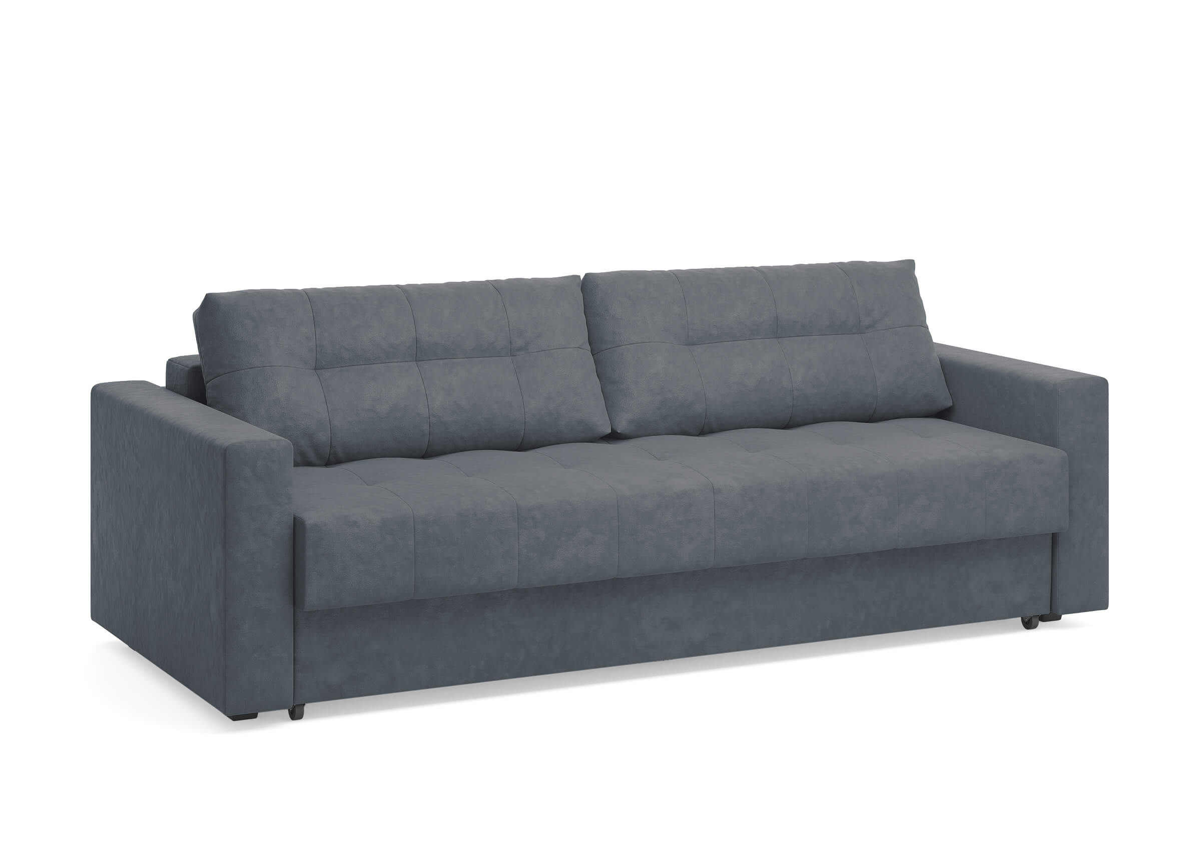 Диван для сна с подлокотниками, механизмом трансформации еврокнижка и коробом для хранения. Благодаря объемной стежке в форме квадратов на сидении и подушках, минимальным по высоте опорам, подлокотникам средней ширины, диван органично впишется в большинство современных интерьеров. Матрас анатомический с независимым пружинным блоком обеспечит комфортное спальное место. В основе мягких подушек – микс наполнителей: поролоновая крошка не дает деформироваться, а синтетическое волокно добавляет комфорт. Размер спального места: 150-200