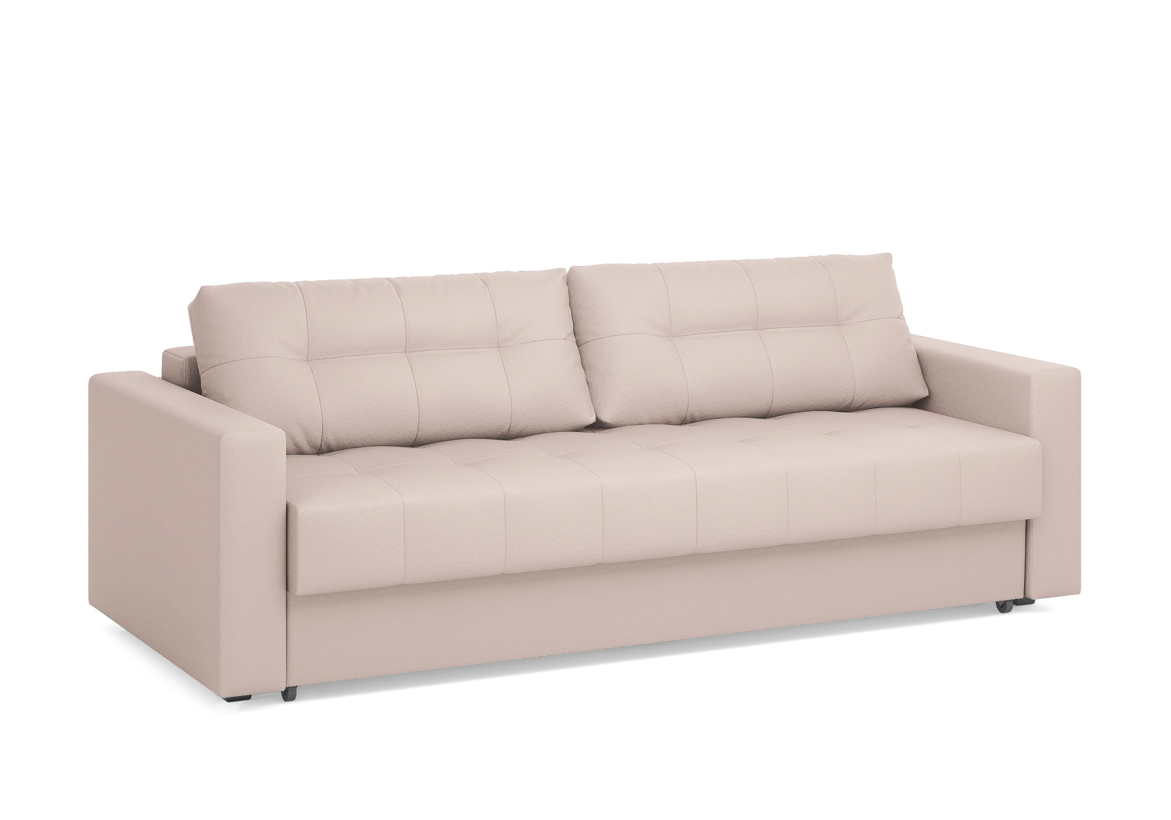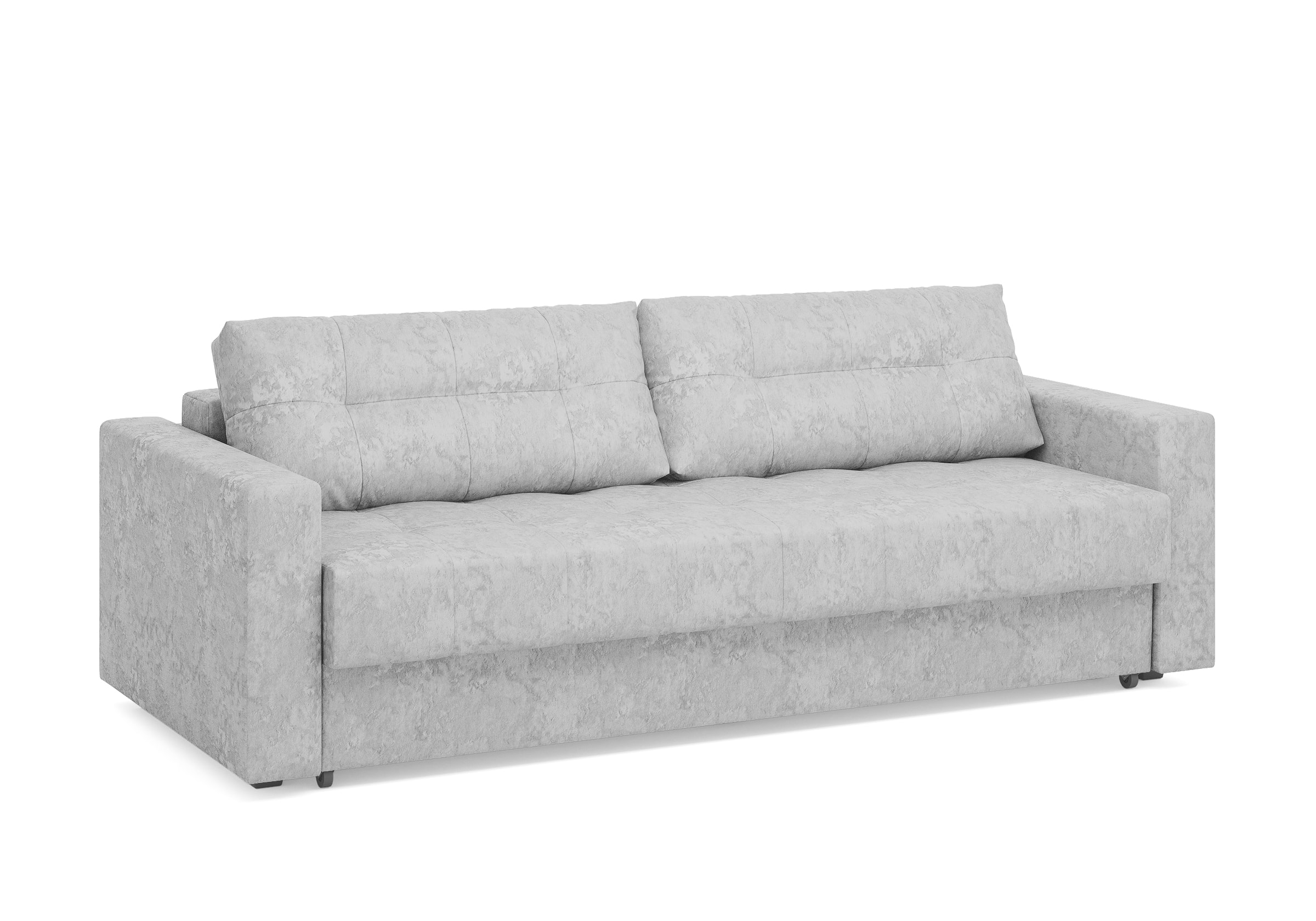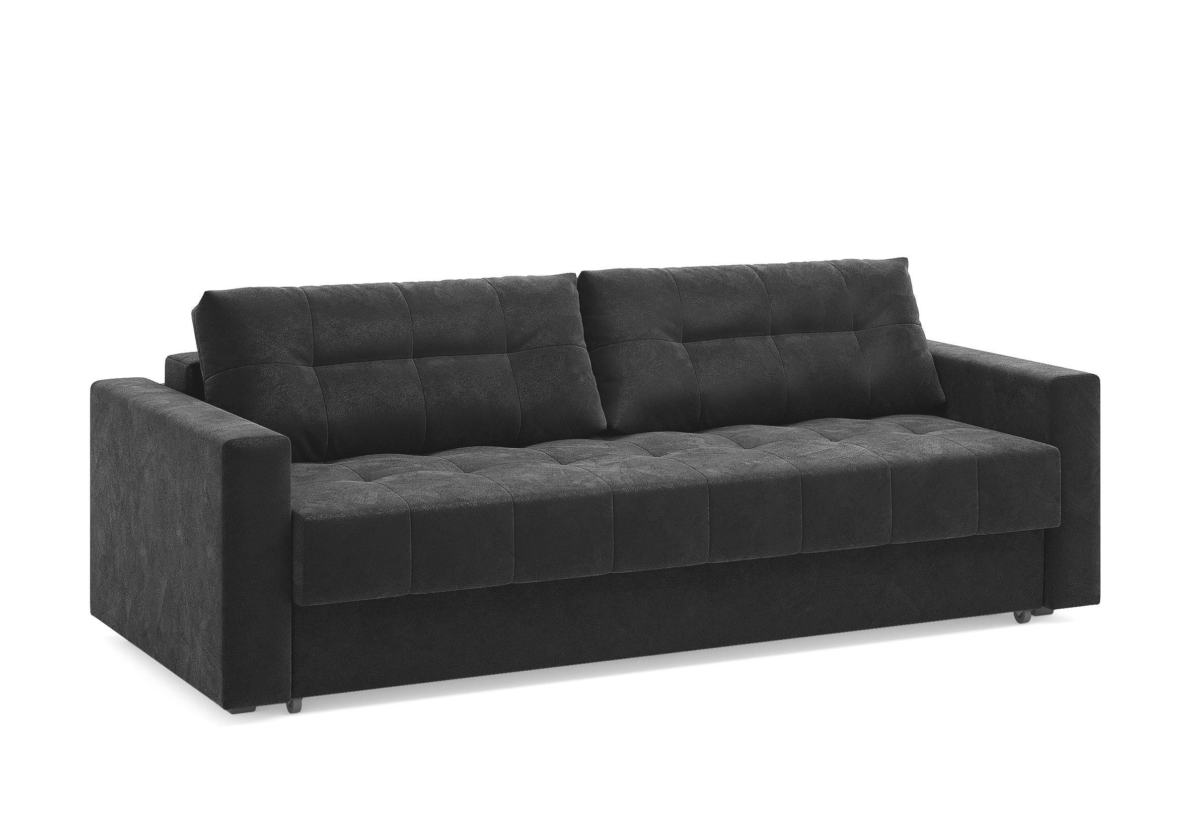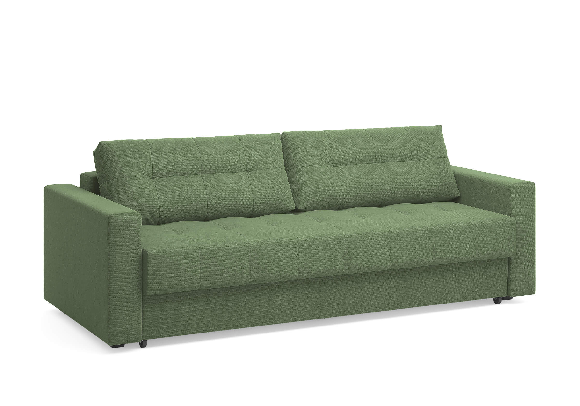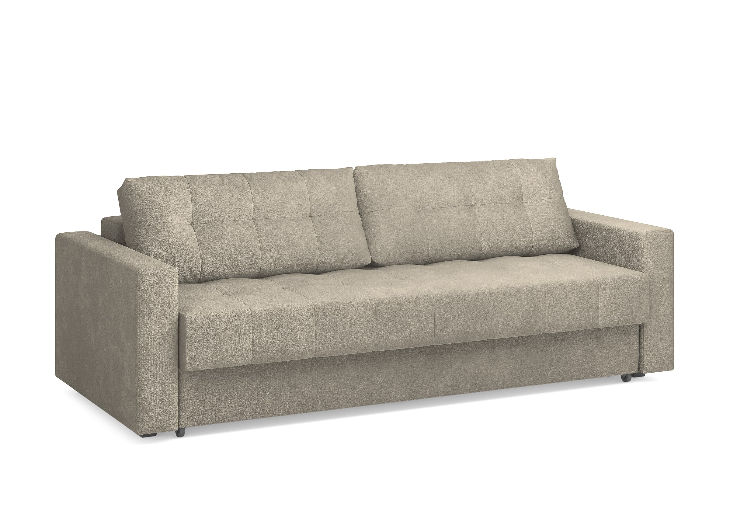 Диван для сна с подлокотниками, механизмом трансформации еврокнижка и коробом для хранения. Благодаря объемной стежке в форме квадратов на сидении и подушках, минимальным по высоте опорам, подлокотникам средней ширины, диван органично впишется в большинство современных интерьеров. Матрас анатомический с независимым пружинным блоком обеспечит комфортное спальное место. В основе мягких подушек – микс наполнителей: поролоновая крошка не дает деформироваться, а синтетическое волокно добавляет комфорт. Размер спального места: 150-200