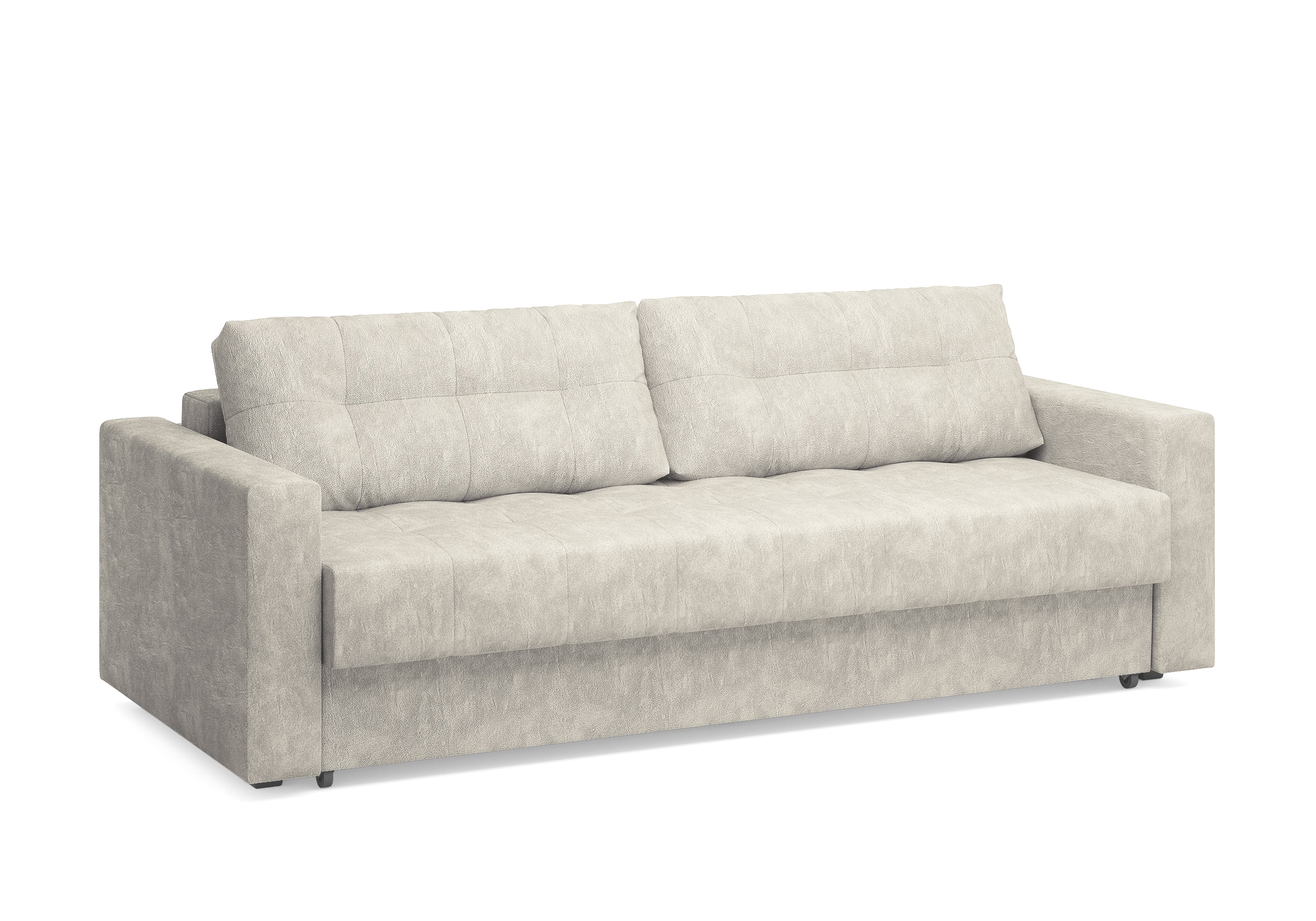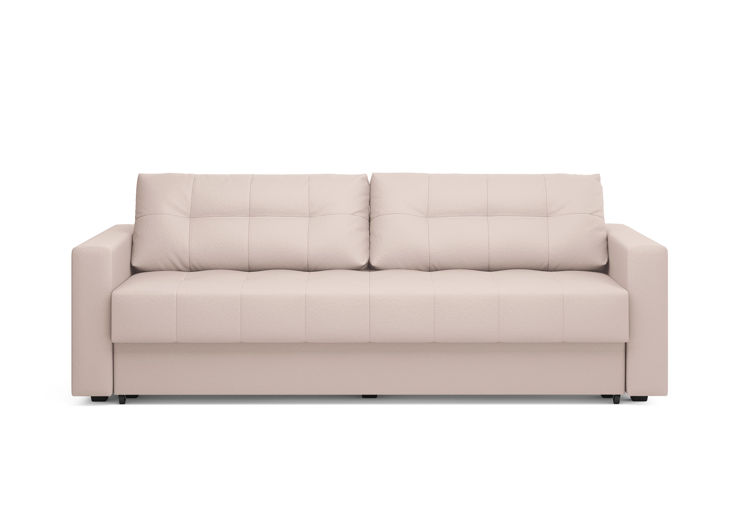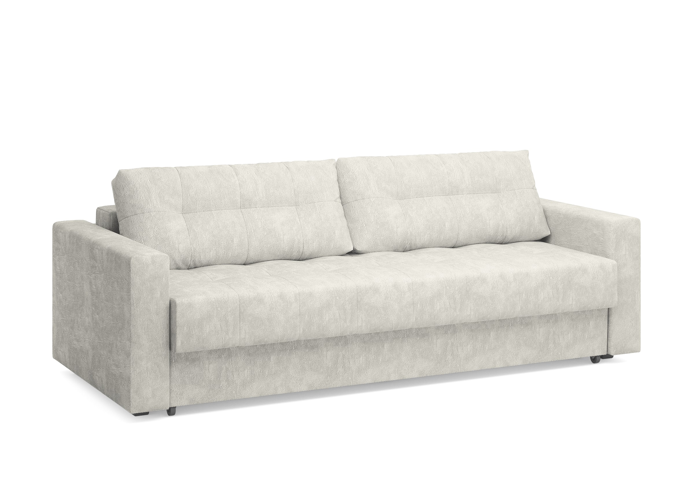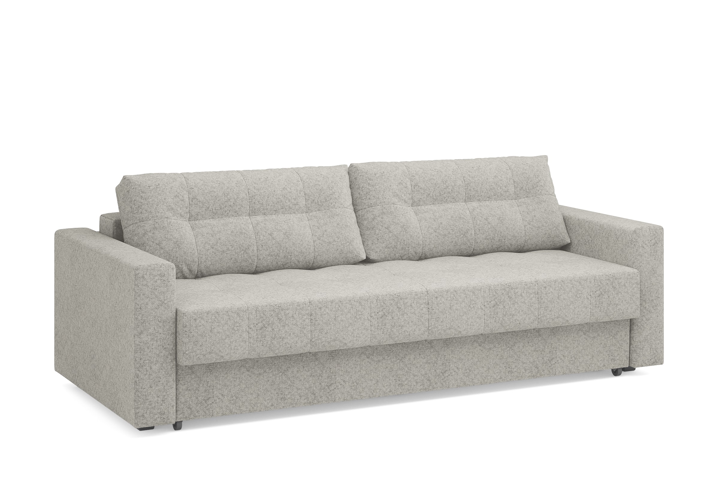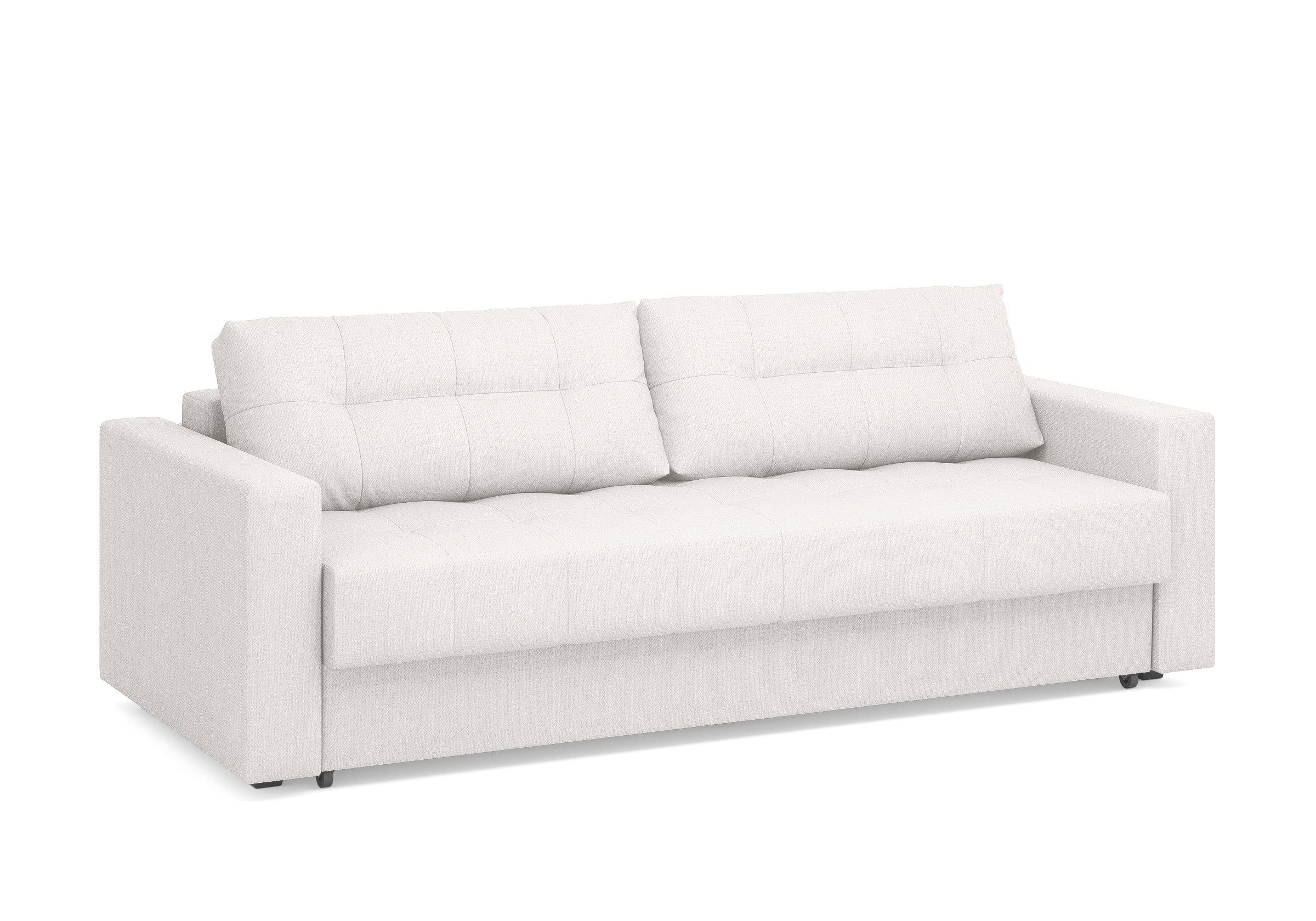Диван для сна с подлокотниками, механизмом трансформации еврокнижка и коробом для хранения. Благодаря объемной стежке в форме квадратов на сидении и подушках, минимальным по высоте опорам, подлокотникам средней ширины, диван органично впишется в большинство современных интерьеров. Матрас анатомический с независимым пружинным блоком обеспечит комфортное спальное место. В основе мягких подушек – микс наполнителей: поролоновая крошка не дает деформироваться, а синтетическое волокно добавляет комфорт. Размер спального места: 150-200