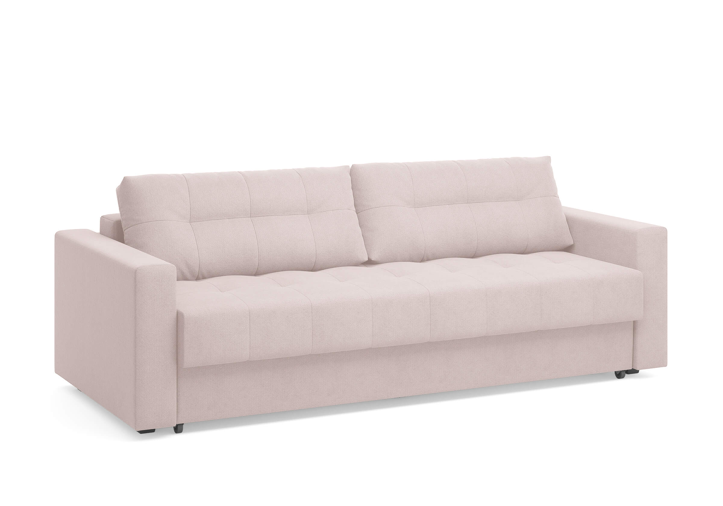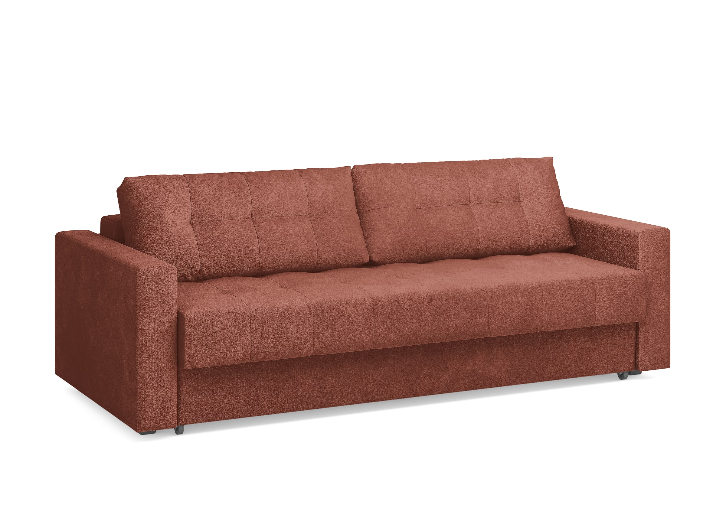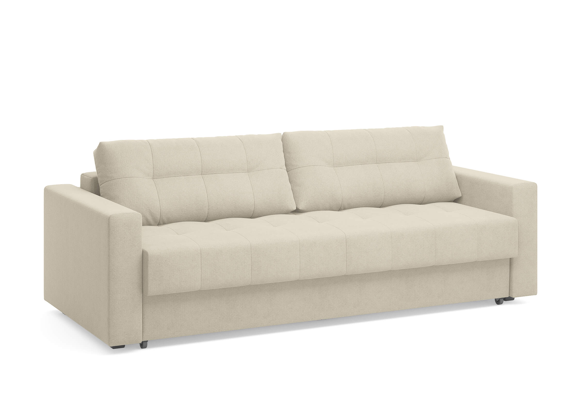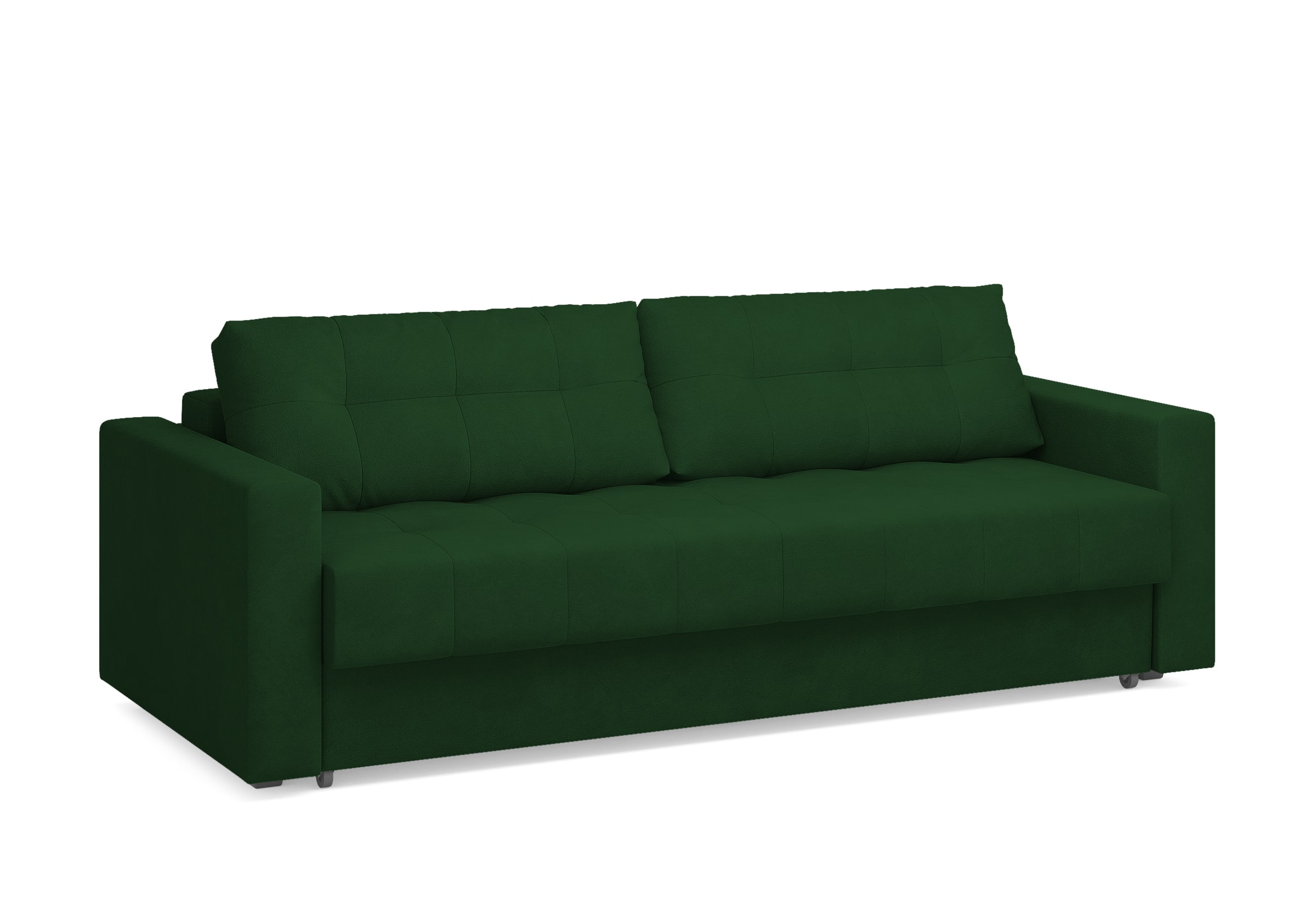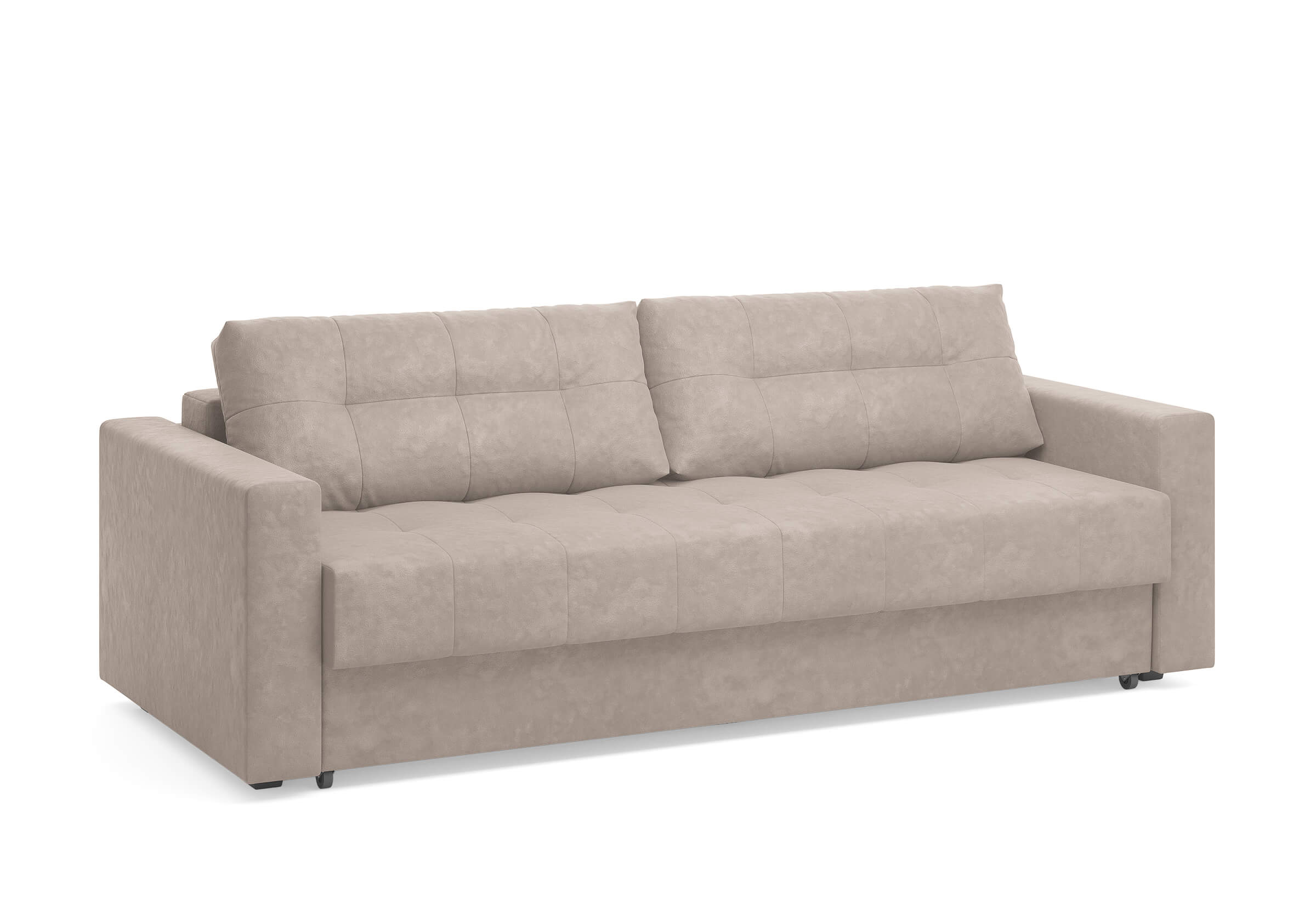 Диван для сна с подлокотниками, механизмом трансформации еврокнижка и коробом для хранения. Благодаря объемной стежке в форме квадратов на сидении и подушках, минимальным по высоте опорам, подлокотникам средней ширины, диван органично впишется в большинство современных интерьеров. Матрас анатомический с независимым пружинным блоком обеспечит комфортное спальное место. В основе мягких подушек – микс наполнителей: поролоновая крошка не дает деформироваться, а синтетическое волокно добавляет комфорт. Размер спального места: 150-200