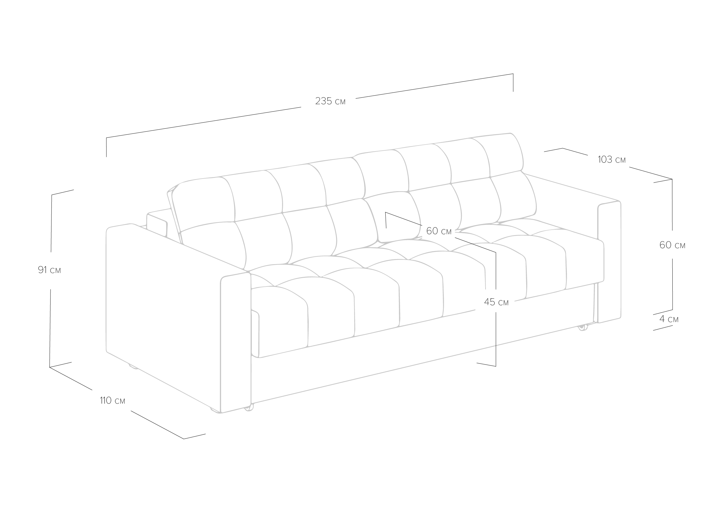 | Габариты | 235 × 110 × 91 см |