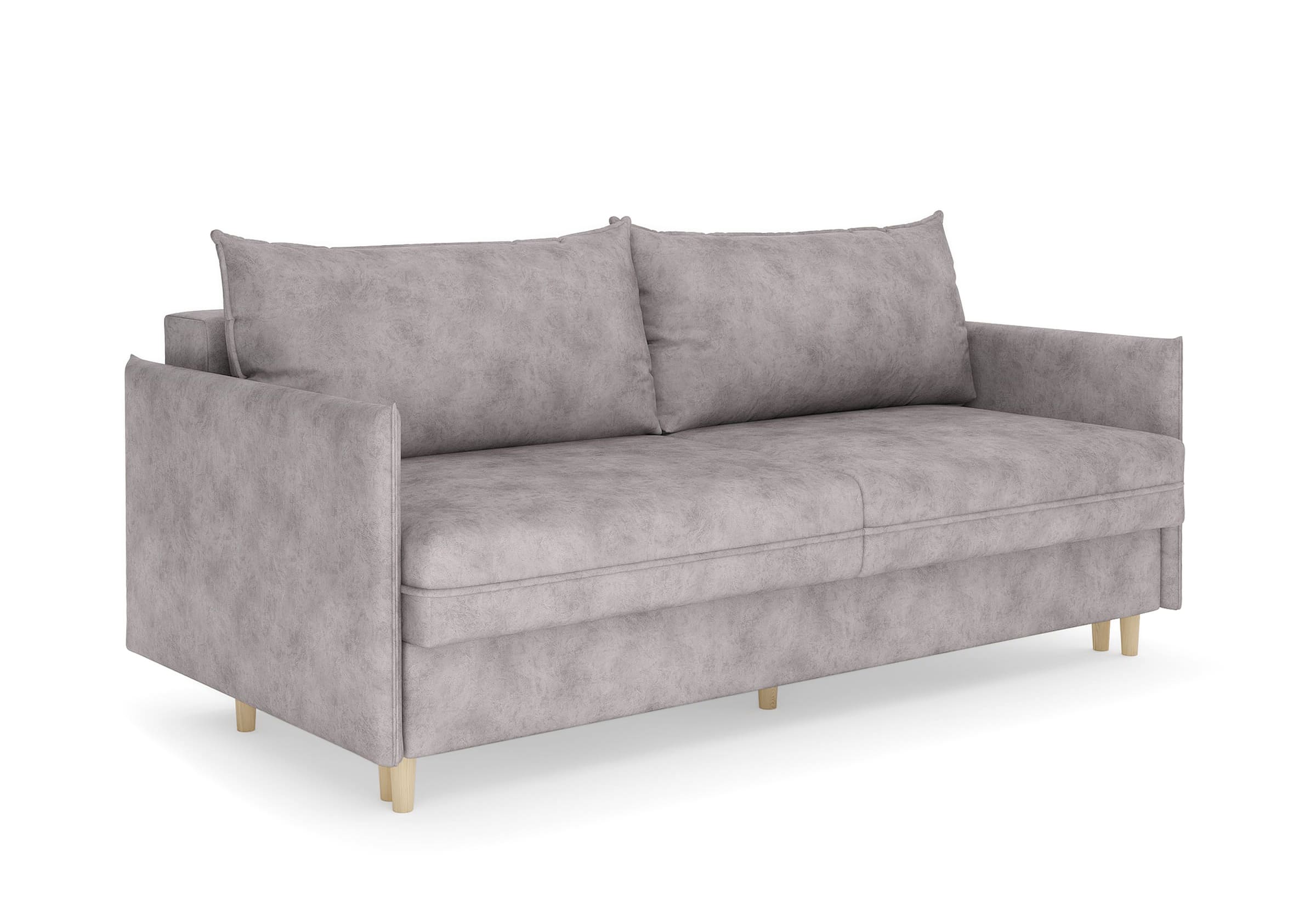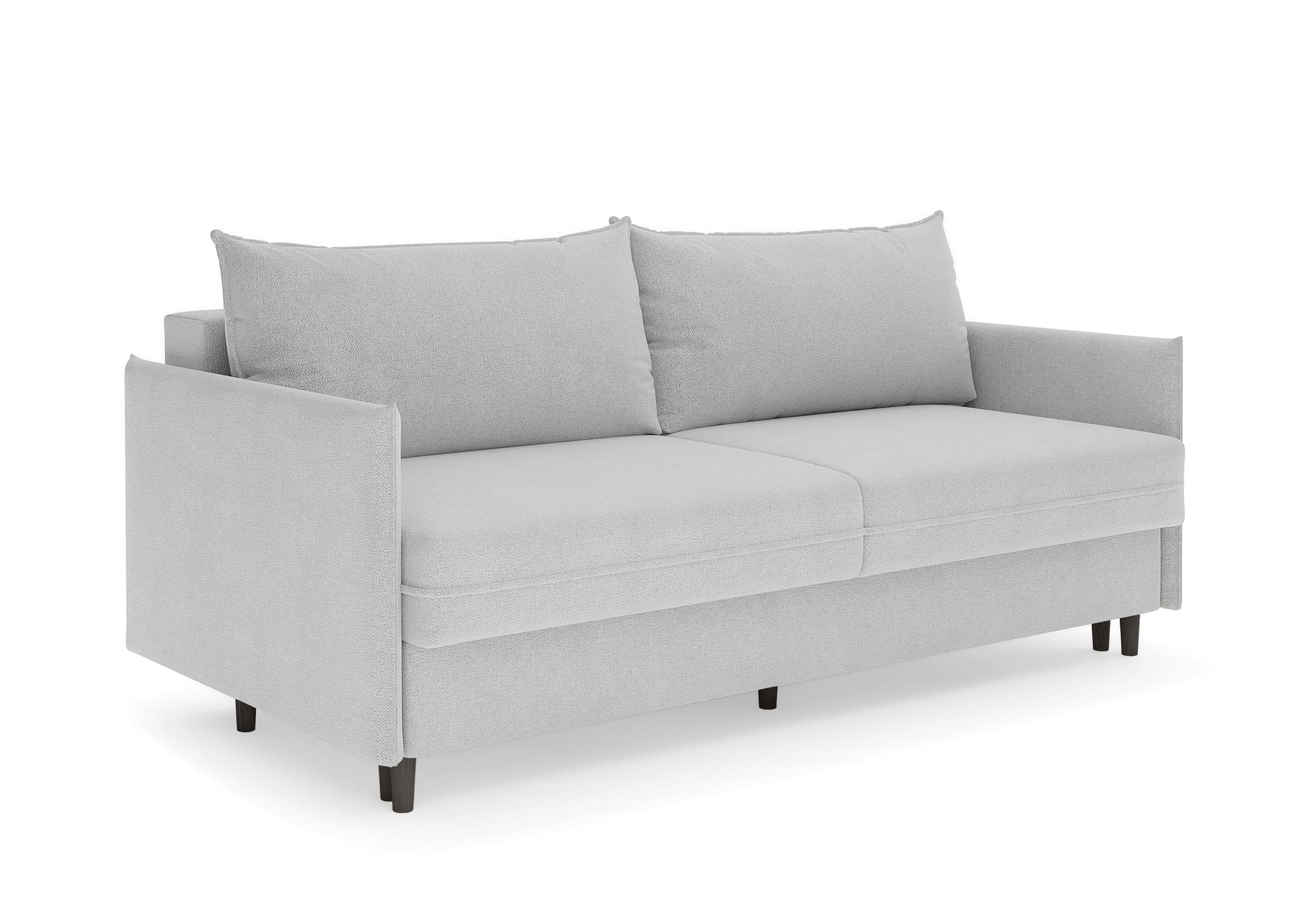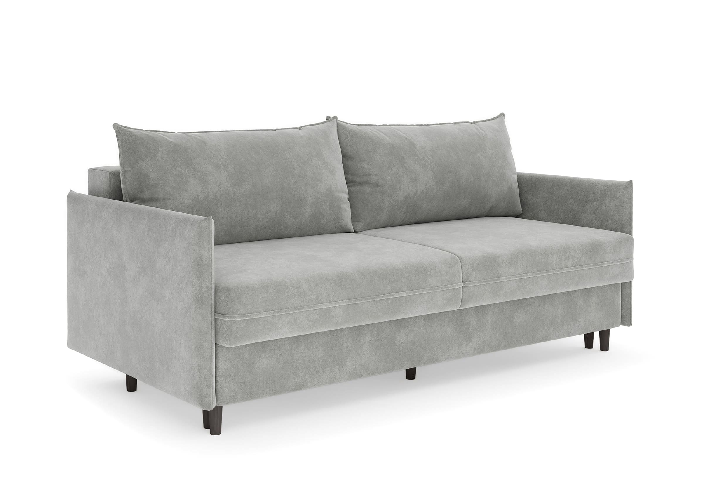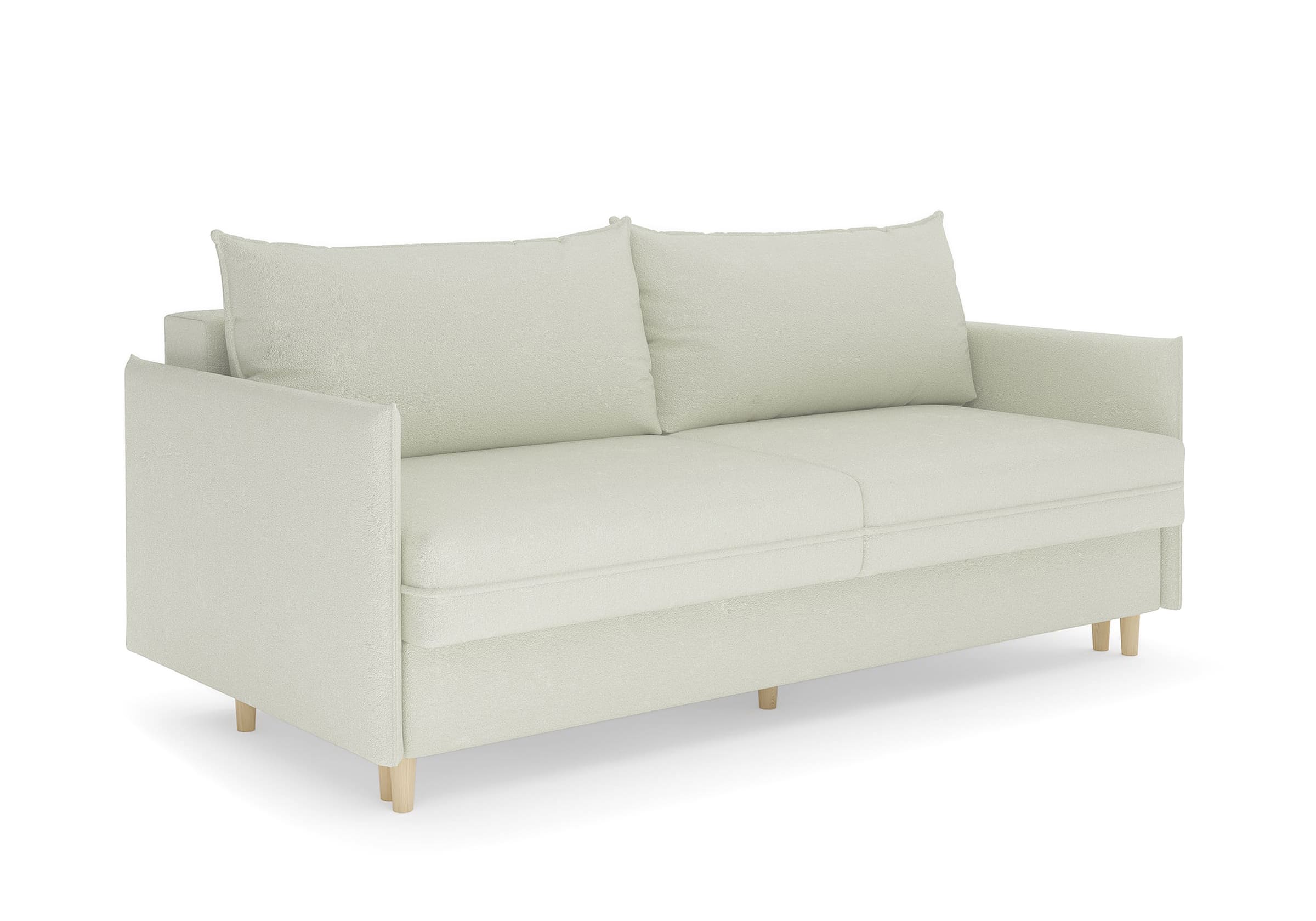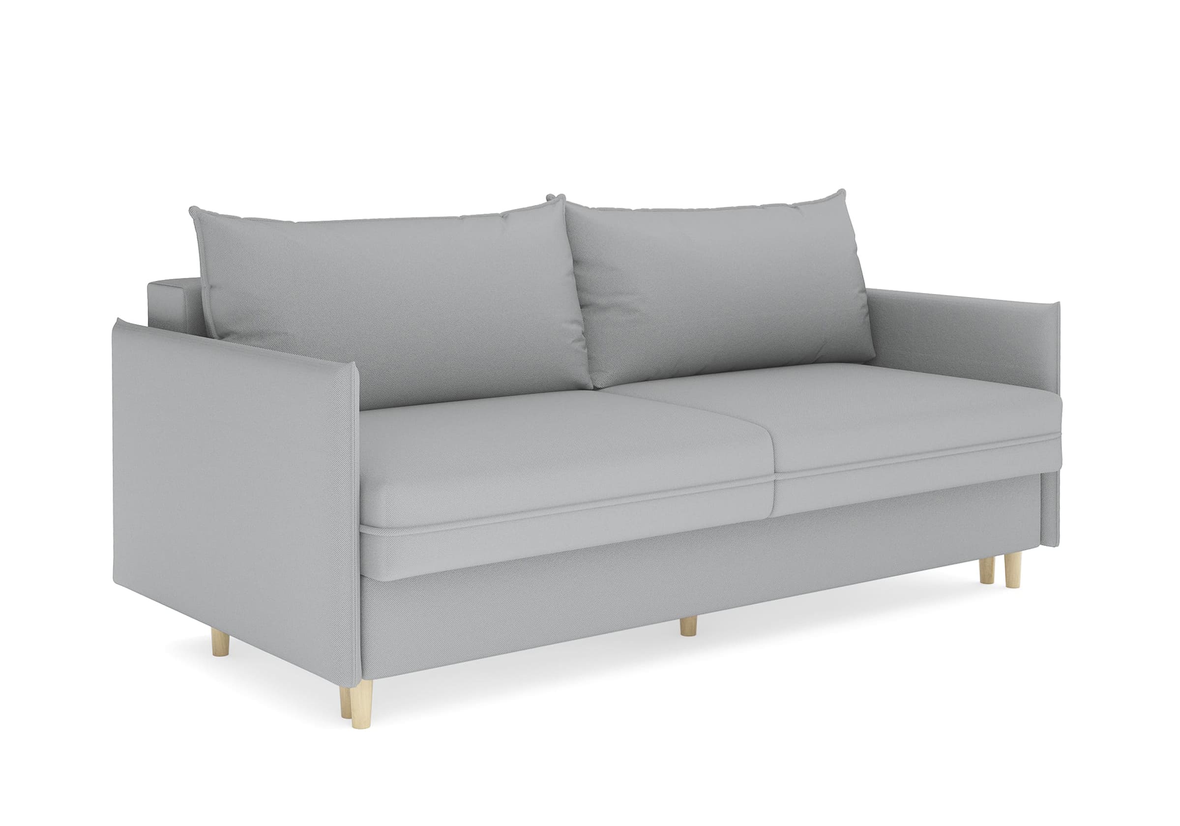 Диван для сна в скандинавском стиле с механизмом трансформации пантограф и коробом для хранения. Модель без броского декора, с прямыми линиями. Благодаря декоративному канту на сидении, подлокотниках и подушках, а также опорам из натурального массива Rain органично впишется в современные интерьеры в скандинавском стиле. У дивана анатомический матрас с блоком независимых пружин, жесткость средняя. Тонкие подлокотники делают диван негабаритным в длину. Комфортная глубина и высота сиденья обеспечит ежедневный комфорт. Задняя спинка предотвращает загрязнение и повреждение стены. В основе мягких подушек – микс наполнителей: поролоновая крошка не дает деформироваться, а синтетическое волокно добавляет комфорт. Опоры деревянные, два цвета на выбор. Просвет над полом способствует легкой уборке под диваном, в том числе роботом-пылесосом.. Размер сального места: 150-200