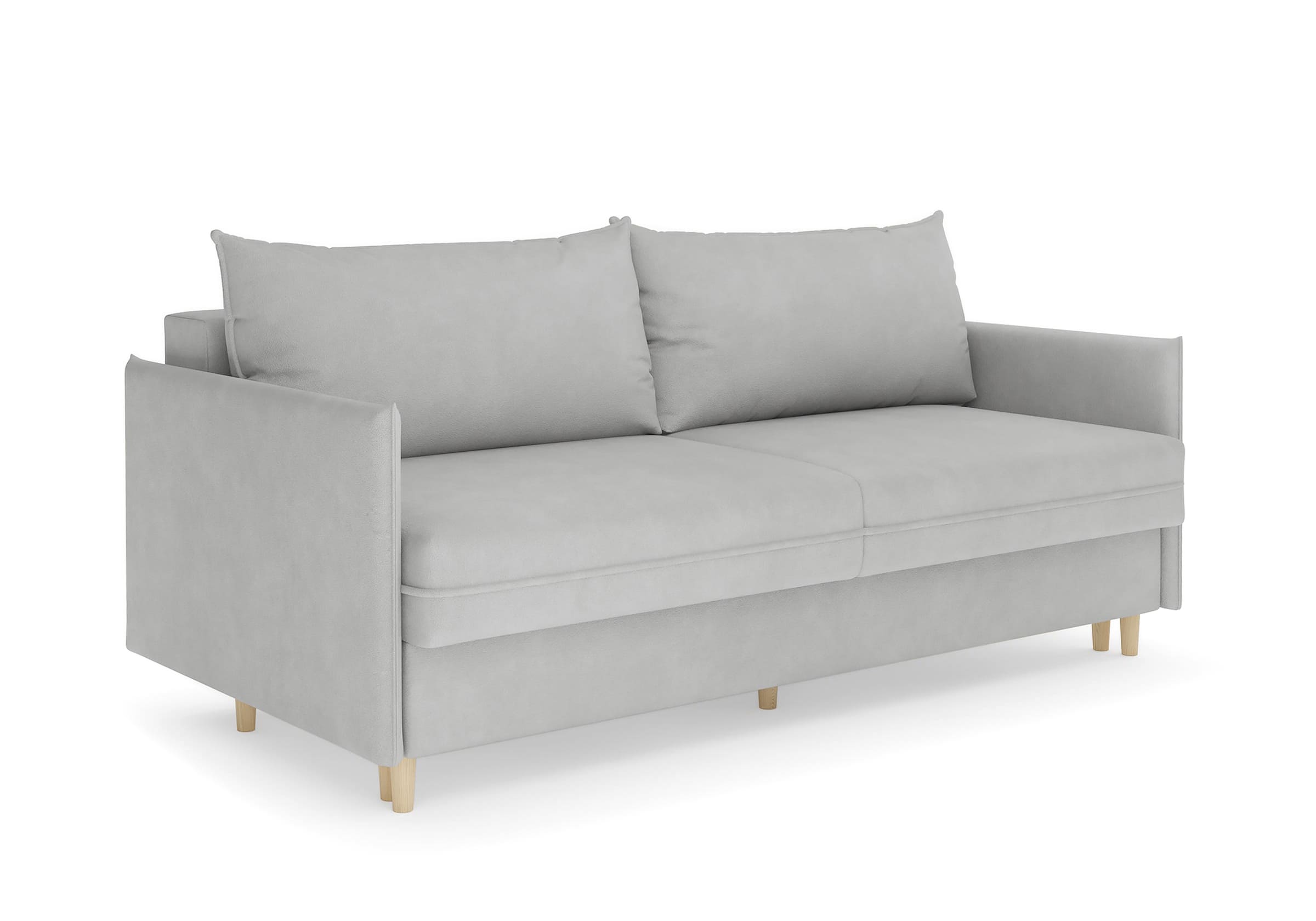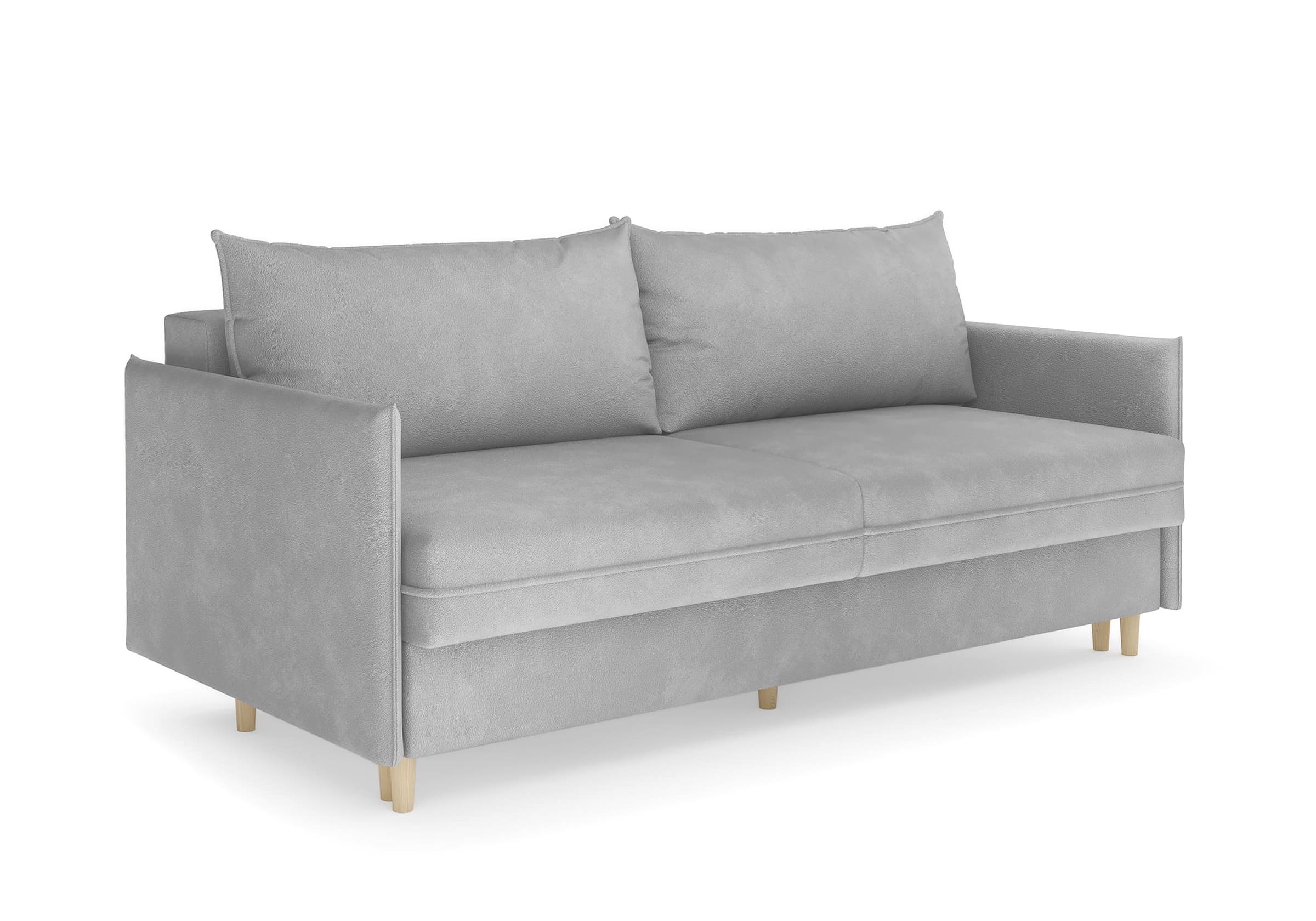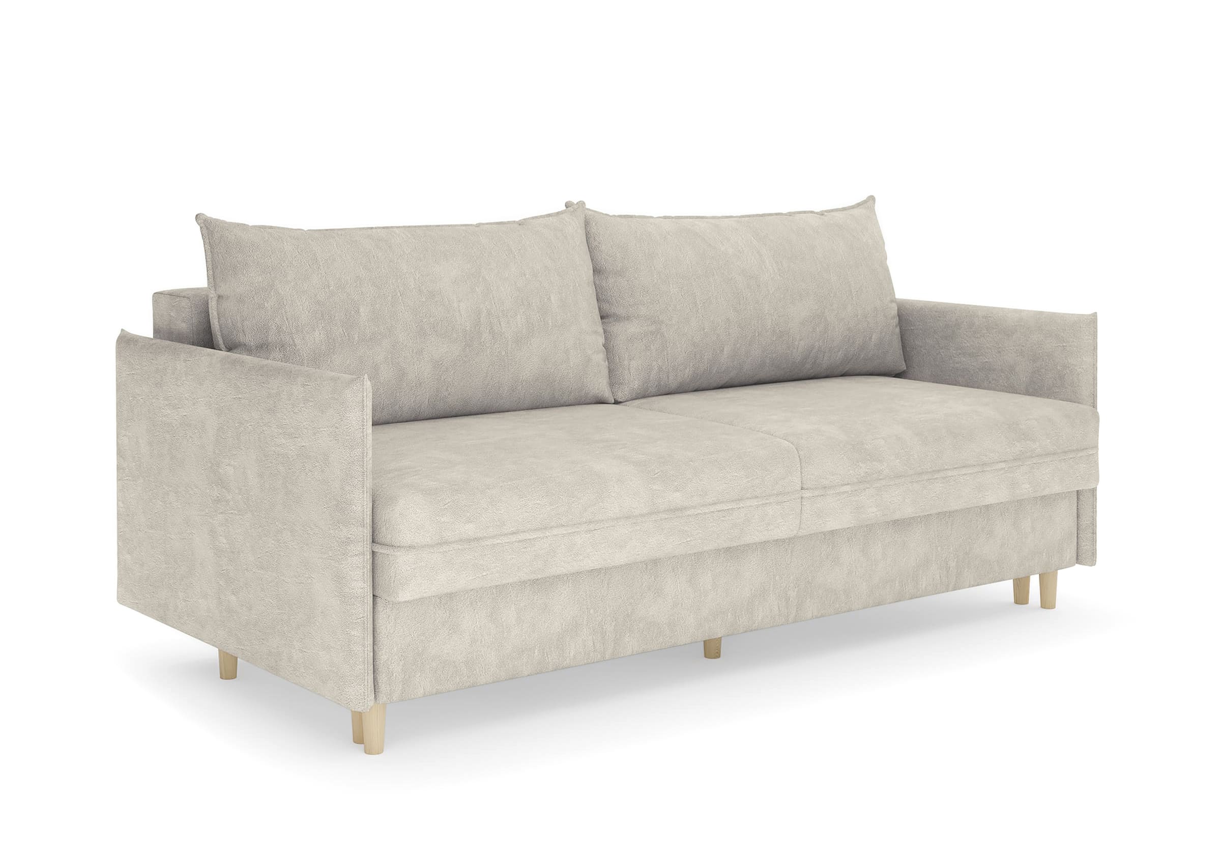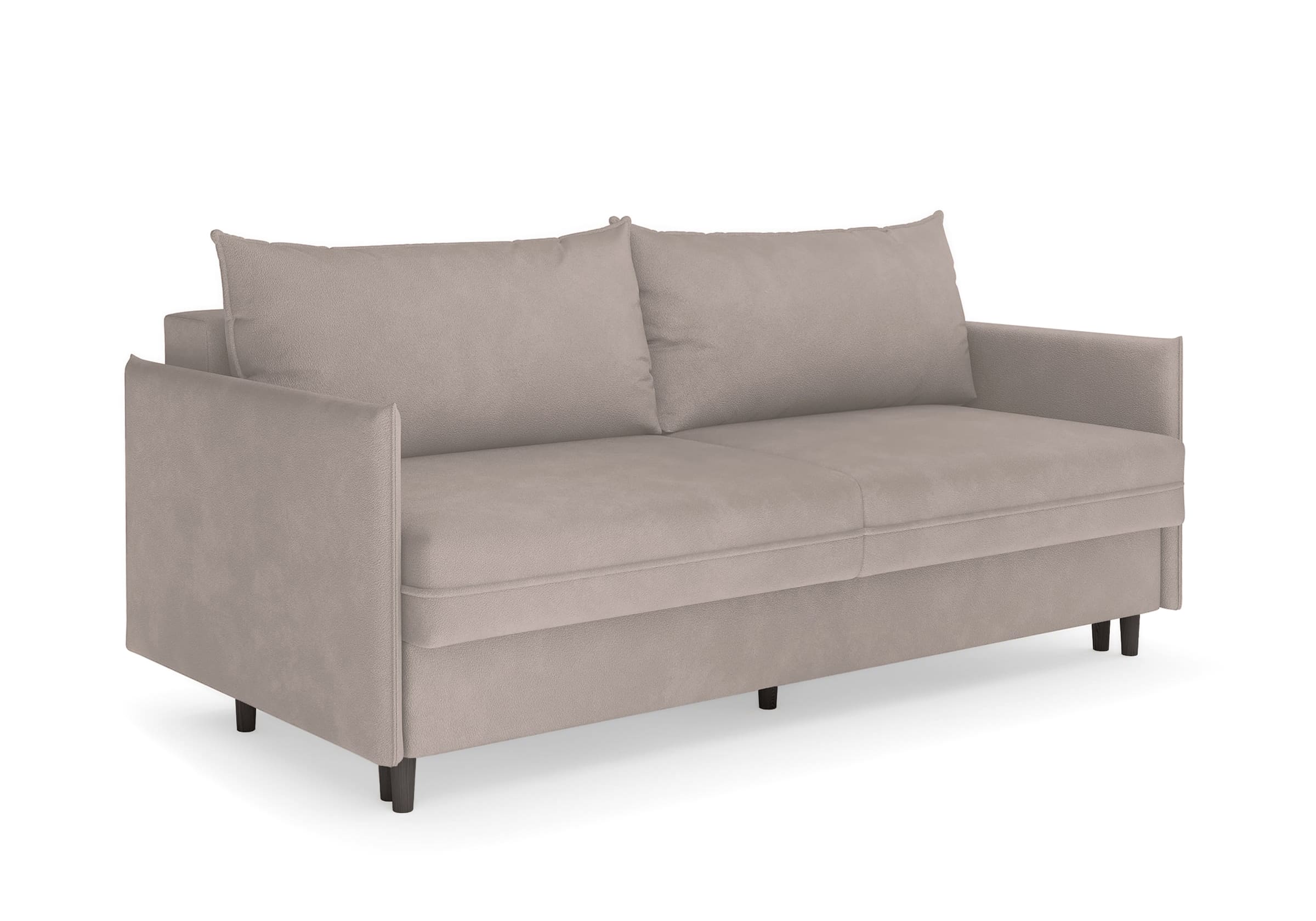 Диван для сна в скандинавском стиле с механизмом трансформации пантограф и коробом для хранения. Модель без броского декора, с прямыми линиями. Благодаря декоративному канту на сидении, подлокотниках и подушках, а также опорам из натурального массива Rain органично впишется в современные интерьеры в скандинавском стиле. У дивана анатомический матрас с блоком независимых пружин, жесткость средняя. Тонкие подлокотники делают диван негабаритным в длину. Комфортная глубина и высота сиденья обеспечит ежедневный комфорт. Задняя спинка предотвращает загрязнение и повреждение стены. В основе мягких подушек – микс наполнителей: поролоновая крошка не дает деформироваться, а синтетическое волокно добавляет комфорт. Опоры деревянные, два цвета на выбор. Просвет над полом способствует легкой уборке под диваном, в том числе роботом-пылесосом.. Размер сального места: 150-200