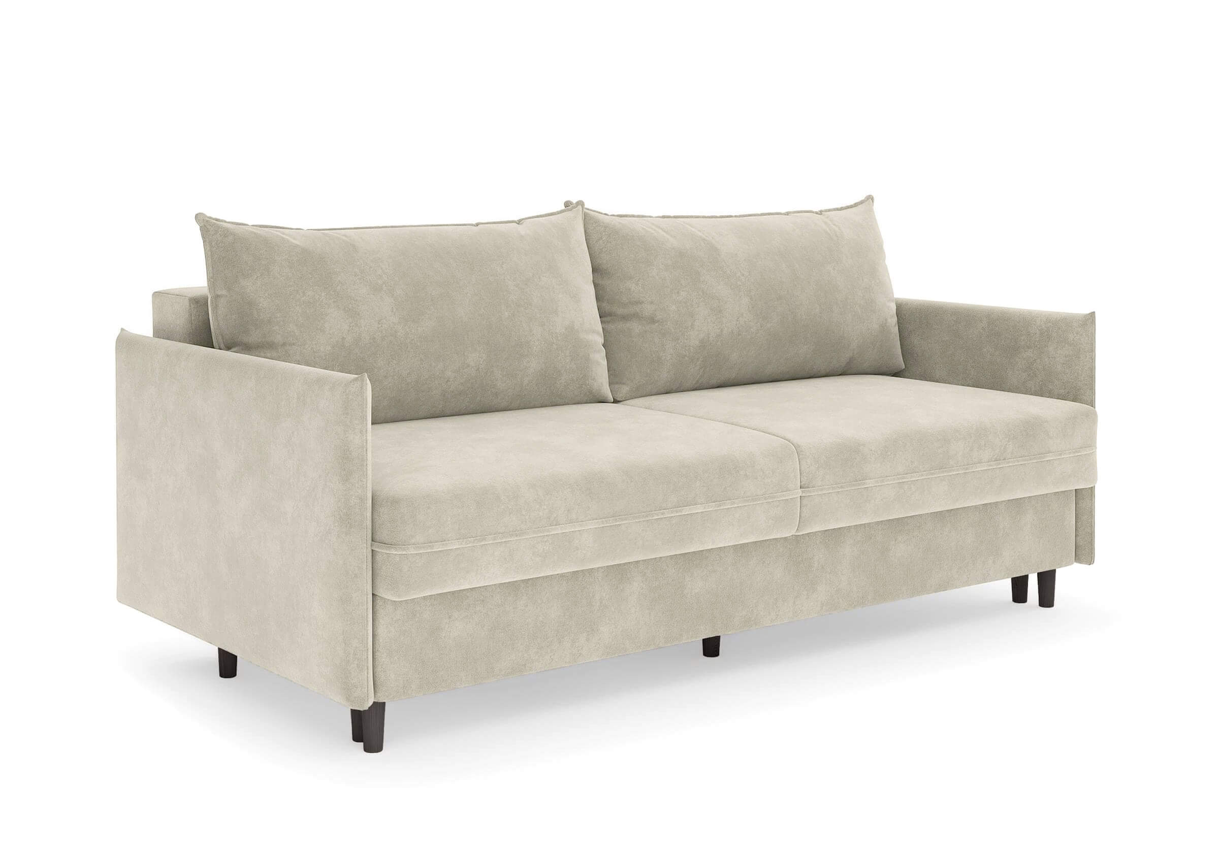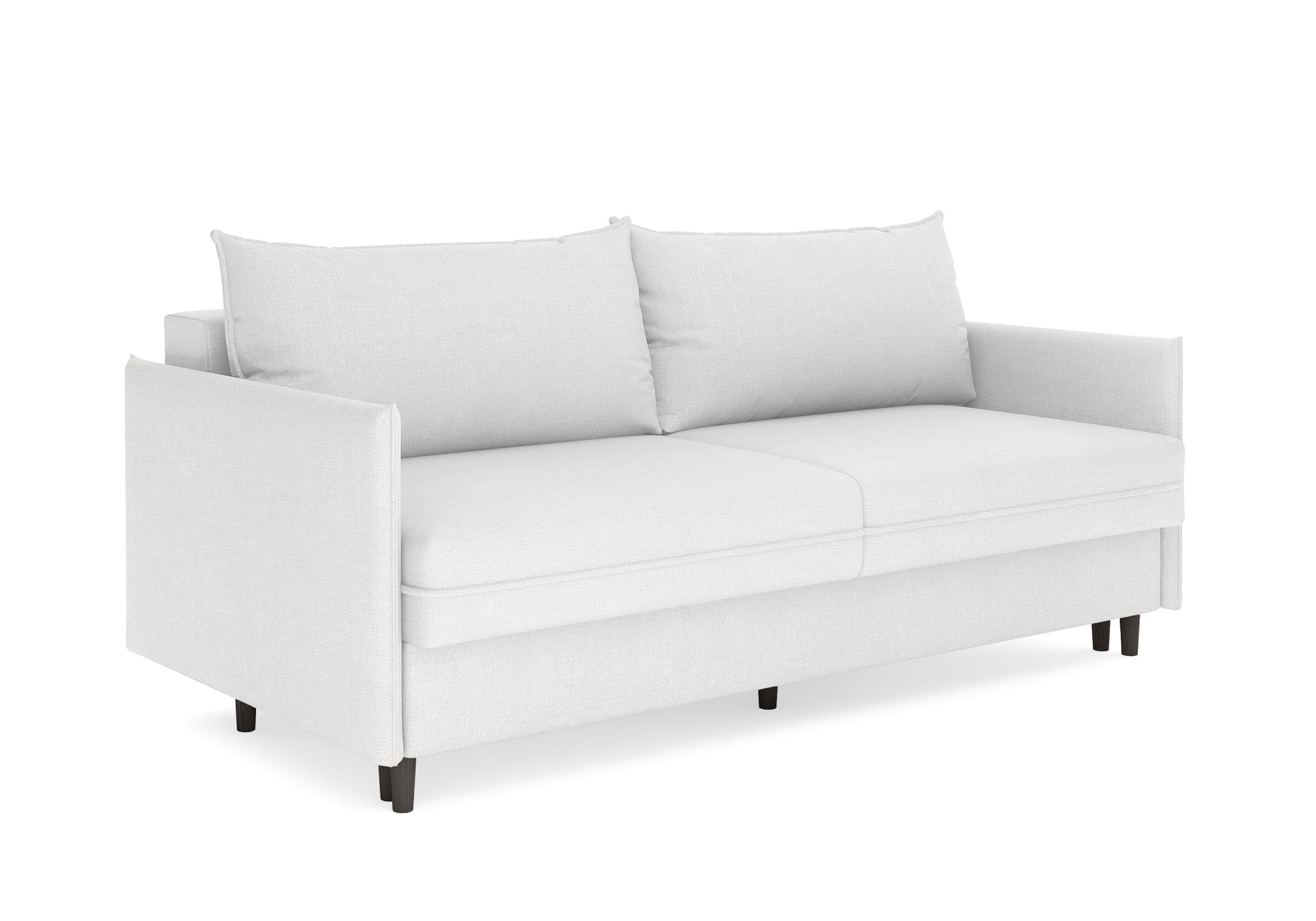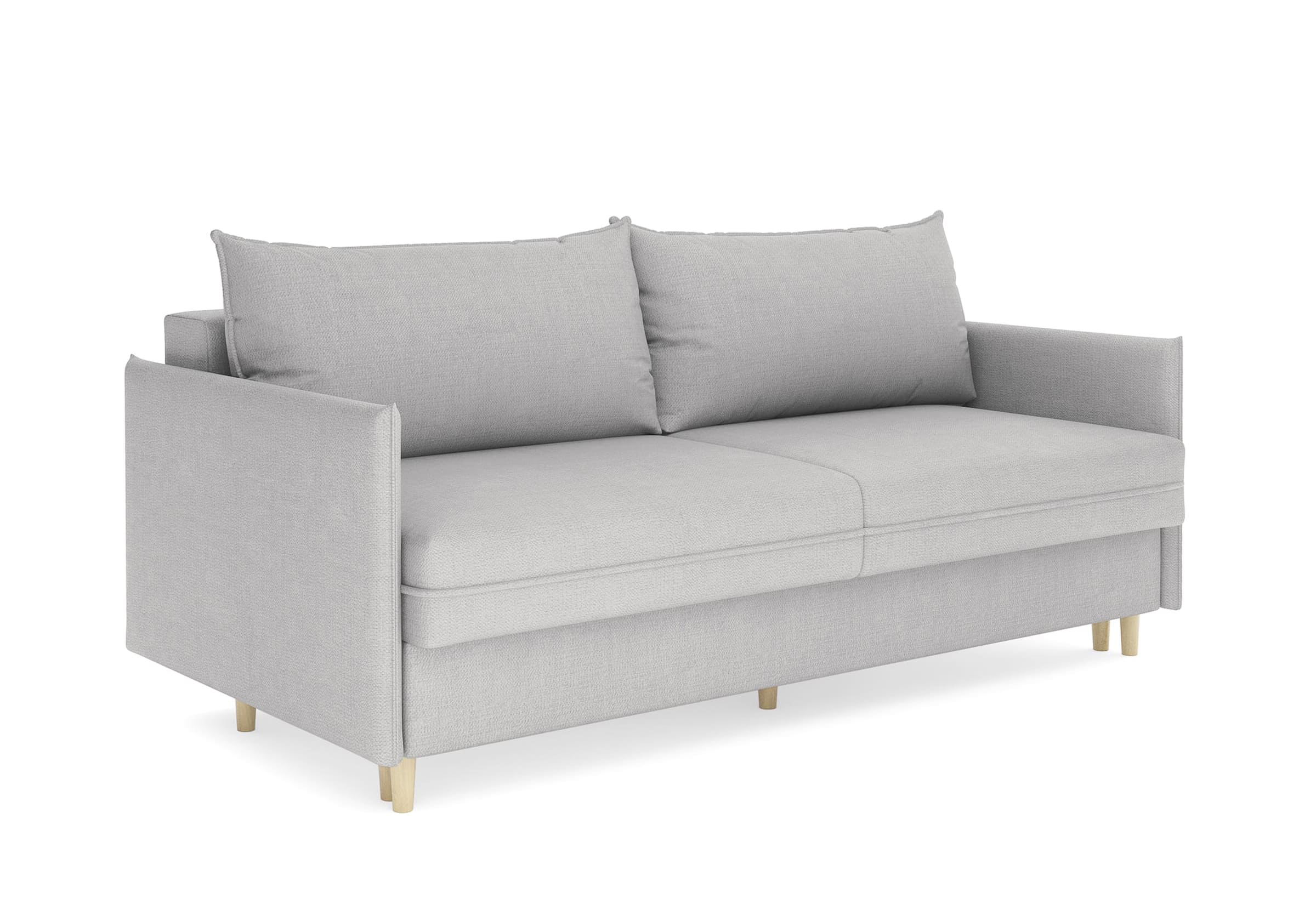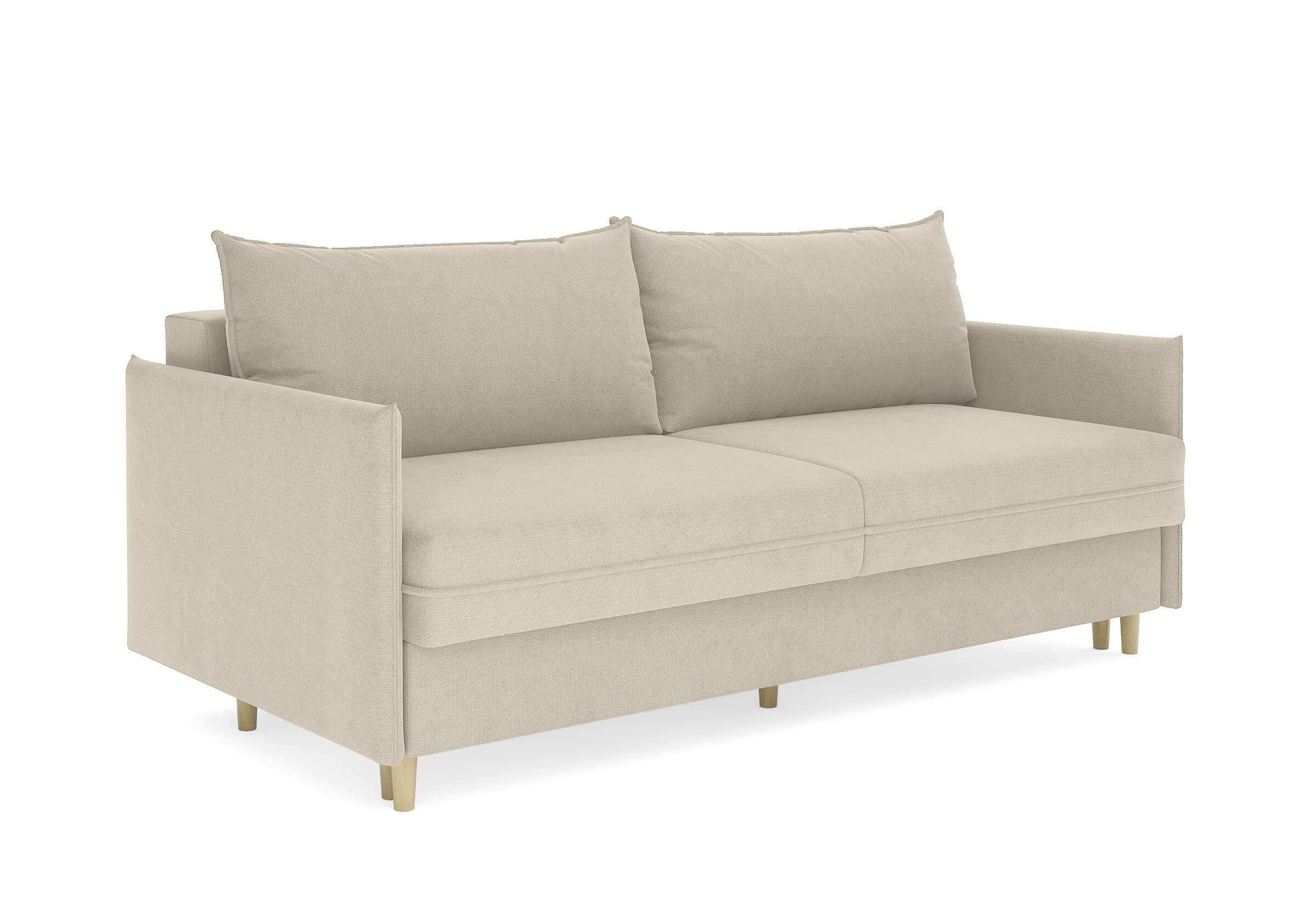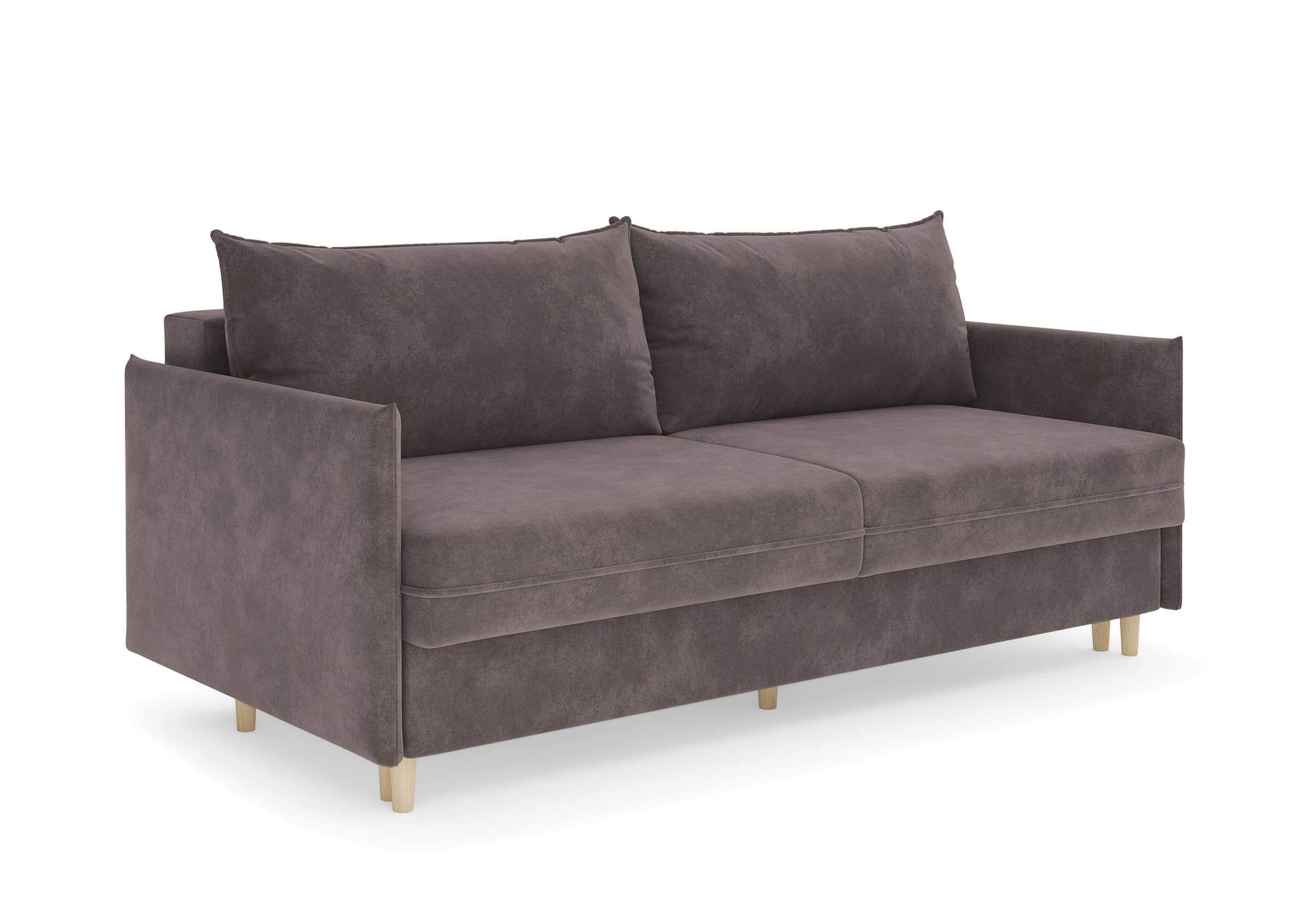 Диван для сна в скандинавском стиле с механизмом трансформации пантограф и коробом для хранения. Модель без броского декора, с прямыми линиями. Благодаря декоративному канту на сидении, подлокотниках и подушках, а также опорам из натурального массива Rain органично впишется в современные интерьеры в скандинавском стиле. У дивана анатомический матрас с блоком независимых пружин, жесткость средняя. Тонкие подлокотники делают диван негабаритным в длину. Комфортная глубина и высота сиденья обеспечит ежедневный комфорт. Задняя спинка предотвращает загрязнение и повреждение стены. В основе мягких подушек – микс наполнителей: поролоновая крошка не дает деформироваться, а синтетическое волокно добавляет комфорт. Опоры деревянные, два цвета на выбор. Просвет над полом способствует легкой уборке под диваном, в том числе роботом-пылесосом.. Размер сального места: 150-200