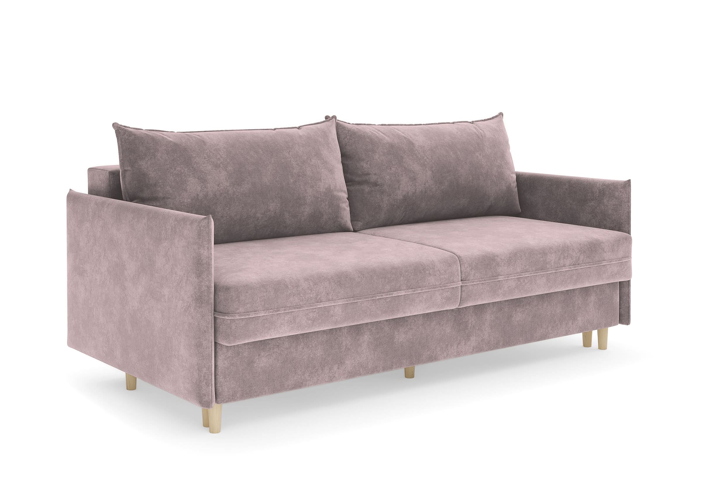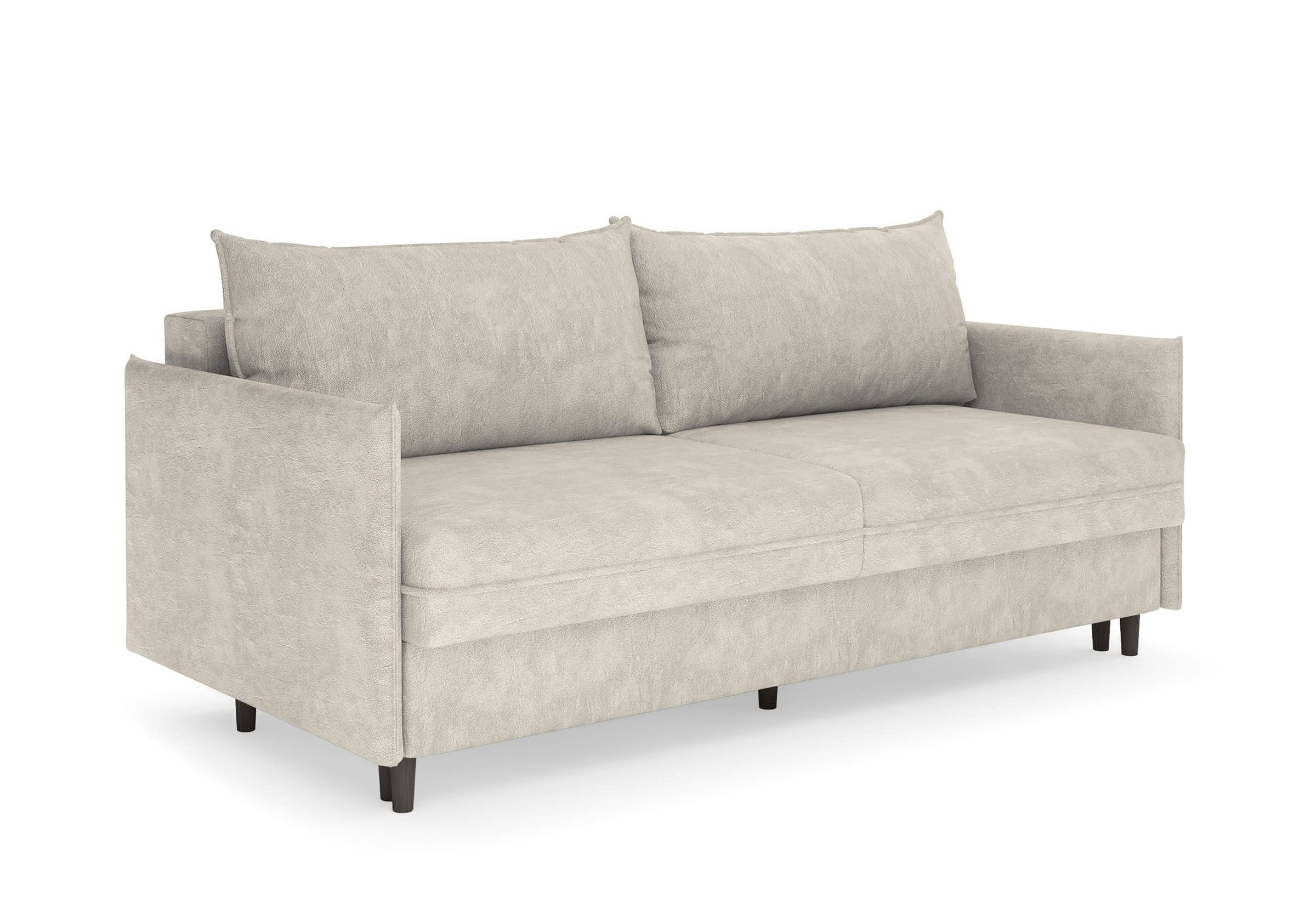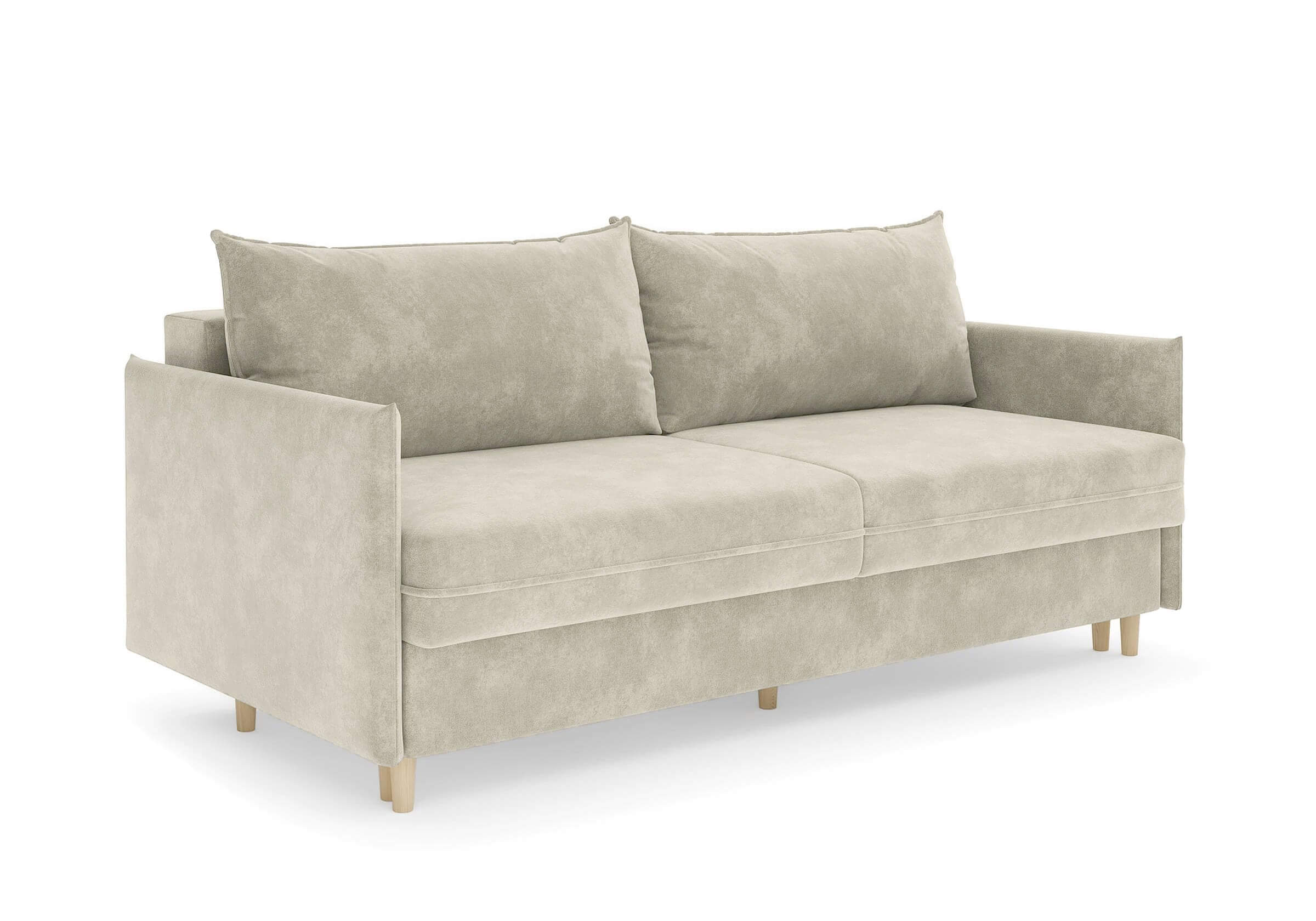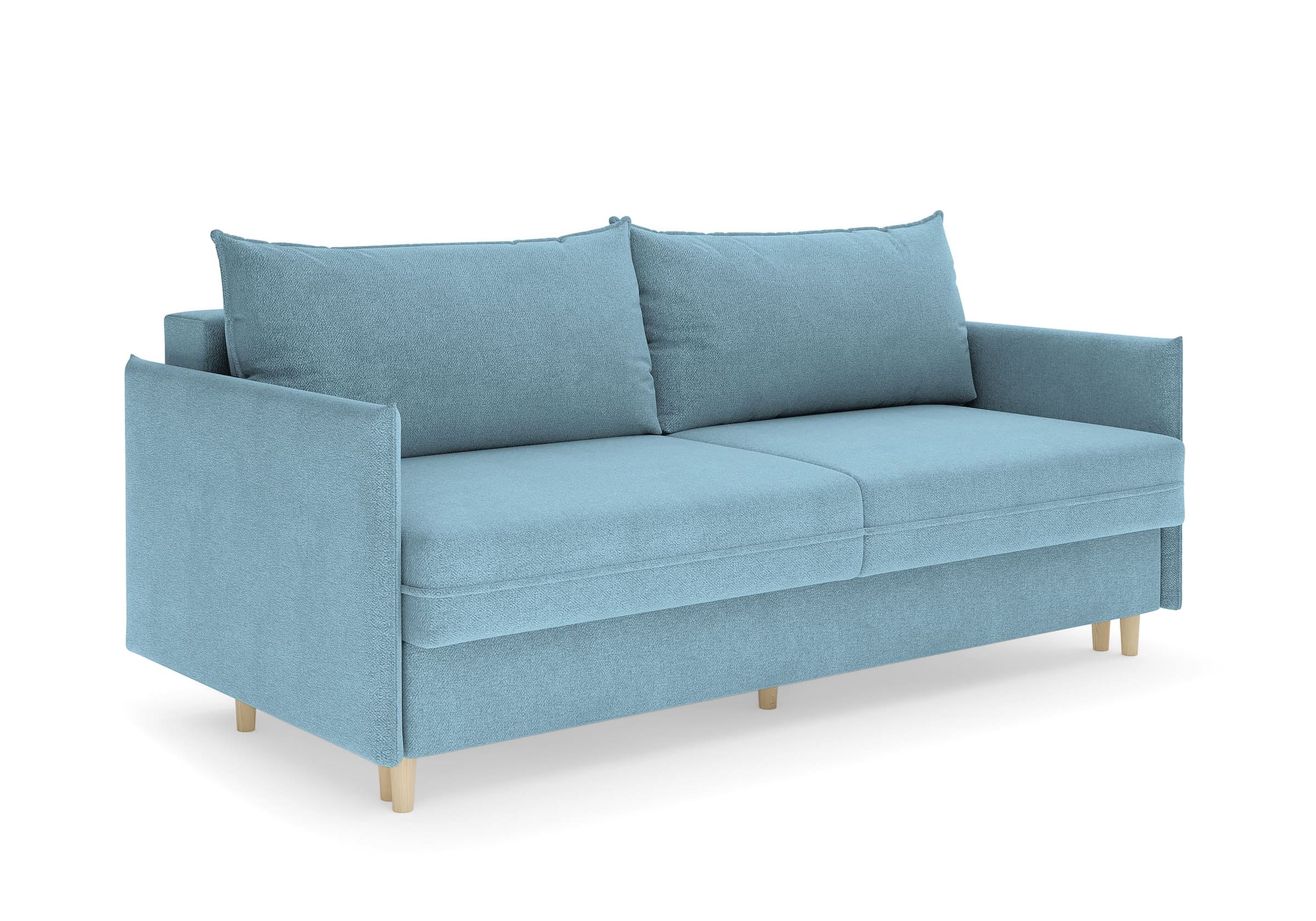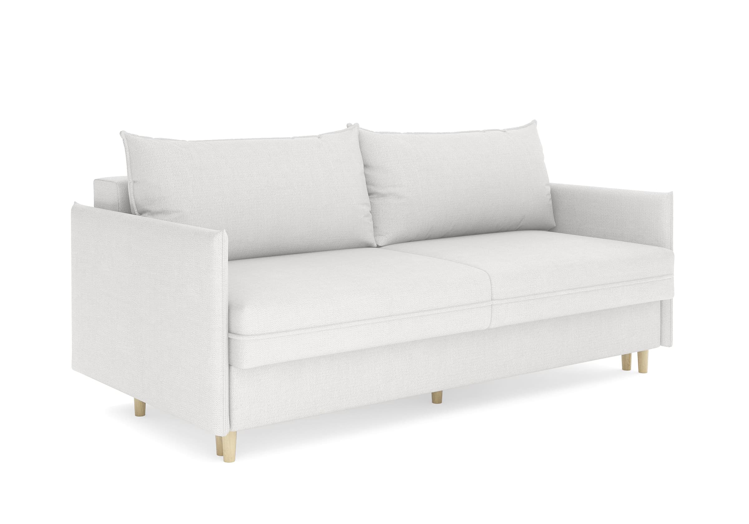 Диван для сна в скандинавском стиле с механизмом трансформации пантограф и коробом для хранения. Модель без броского декора, с прямыми линиями. Благодаря декоративному канту на сидении, подлокотниках и подушках, а также опорам из натурального массива Rain органично впишется в современные интерьеры в скандинавском стиле. У дивана анатомический матрас с блоком независимых пружин, жесткость средняя. Тонкие подлокотники делают диван негабаритным в длину. Комфортная глубина и высота сиденья обеспечит ежедневный комфорт. Задняя спинка предотвращает загрязнение и повреждение стены. В основе мягких подушек – микс наполнителей: поролоновая крошка не дает деформироваться, а синтетическое волокно добавляет комфорт. Опоры деревянные, два цвета на выбор. Просвет над полом способствует легкой уборке под диваном, в том числе роботом-пылесосом.. Размер сального места: 150-200