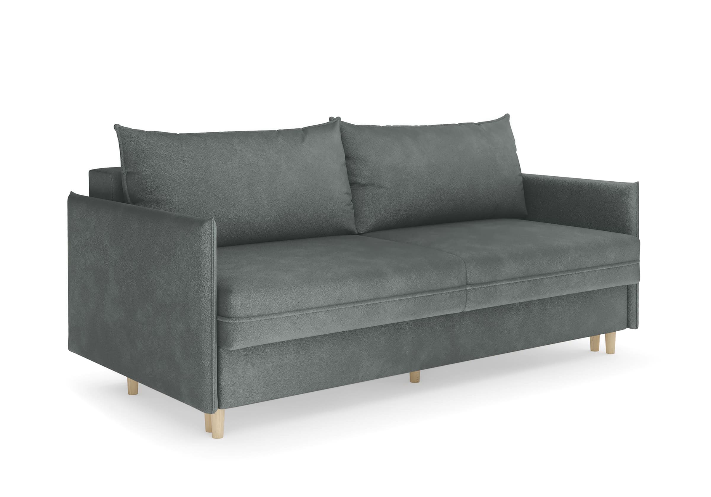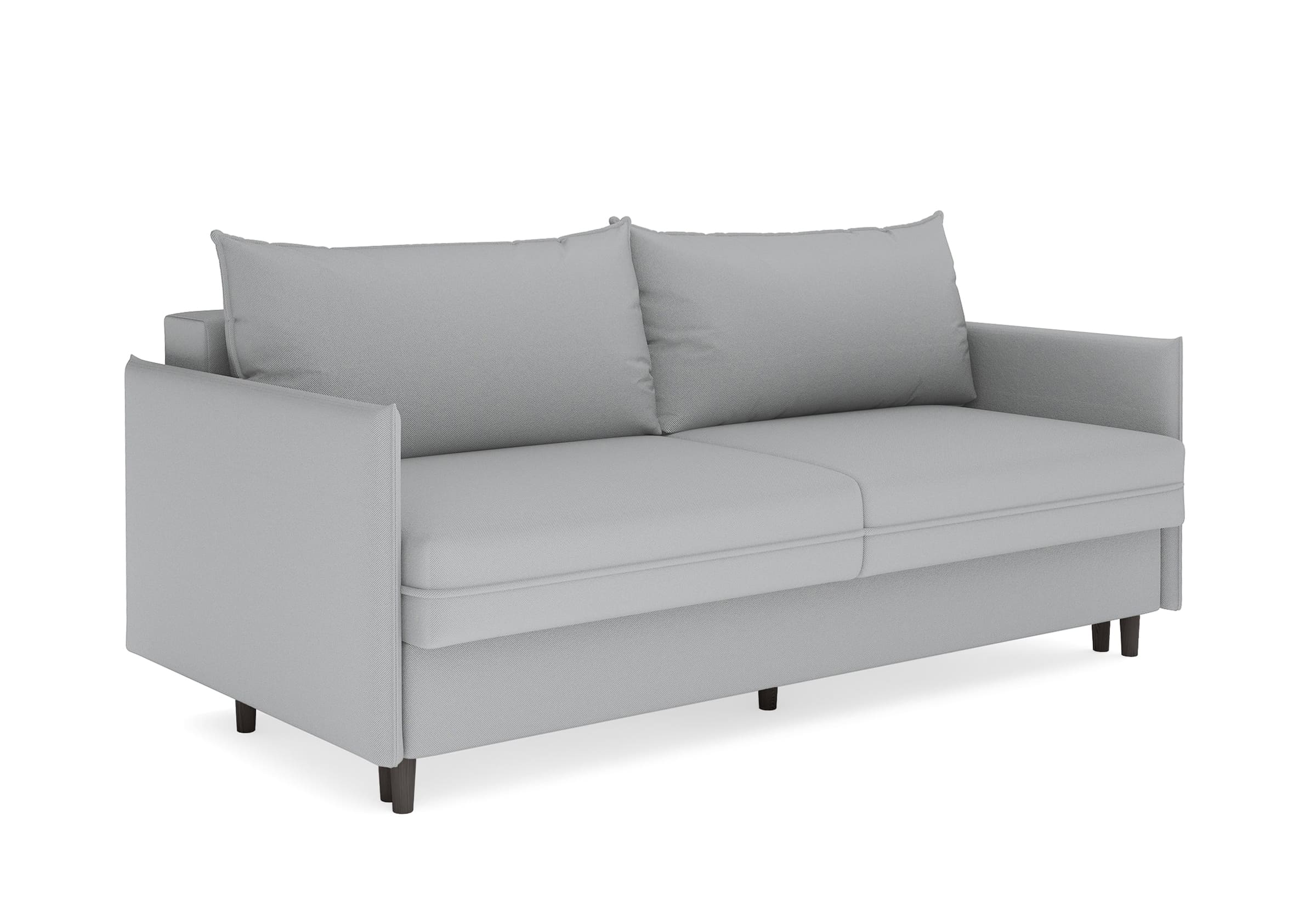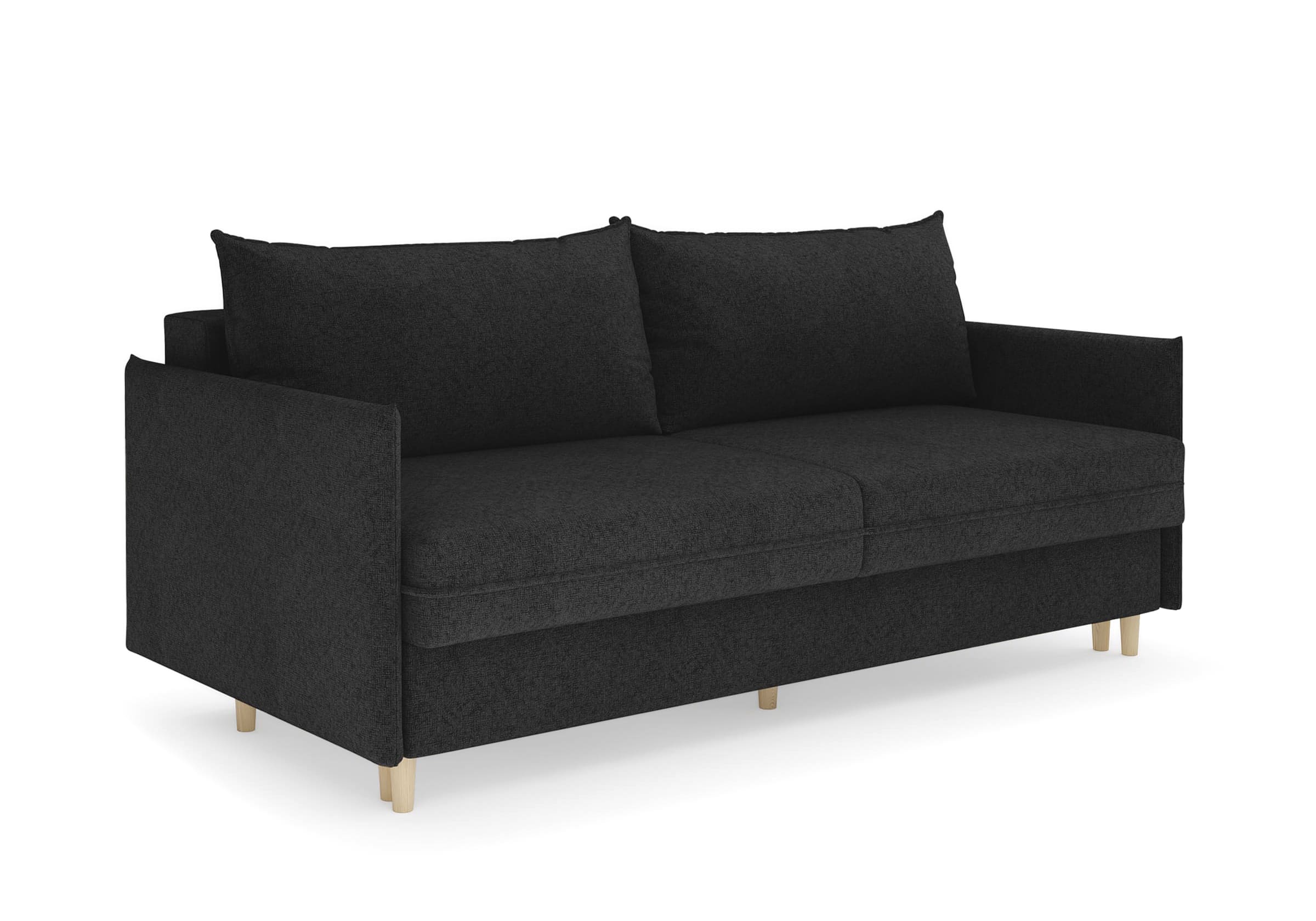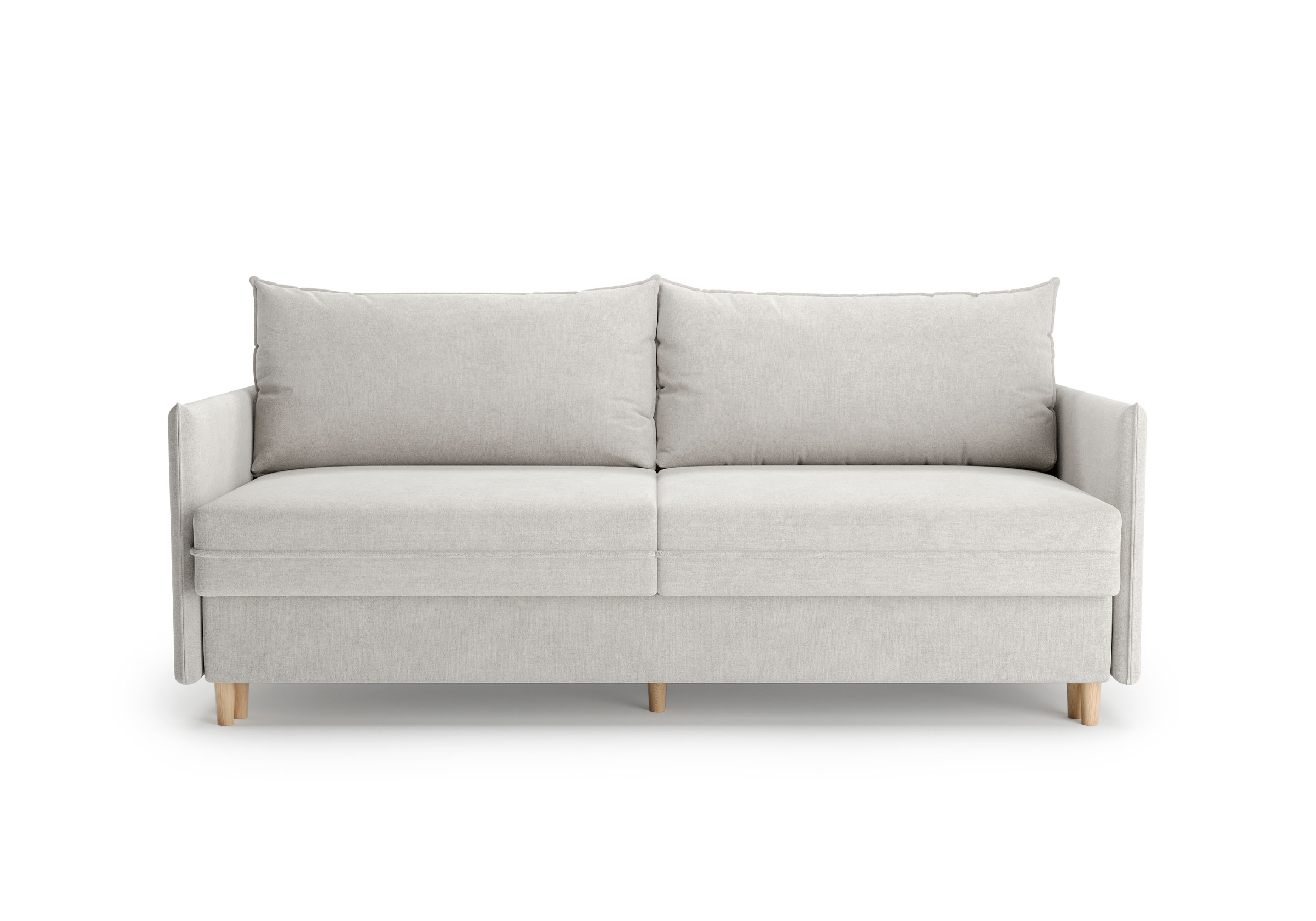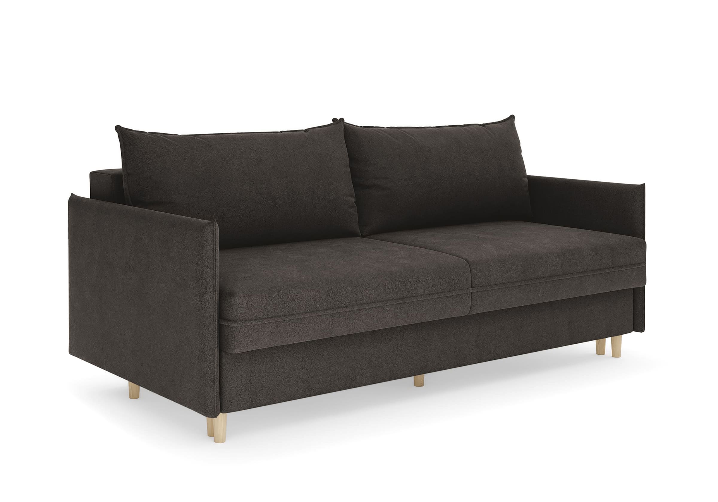 Диван для сна в скандинавском стиле с механизмом трансформации пантограф и коробом для хранения. Модель без броского декора, с прямыми линиями. Благодаря декоративному канту на сидении, подлокотниках и подушках, а также опорам из натурального массива Rain органично впишется в современные интерьеры в скандинавском стиле. У дивана анатомический матрас с блоком независимых пружин, жесткость средняя. Тонкие подлокотники делают диван негабаритным в длину. Комфортная глубина и высота сиденья обеспечит ежедневный комфорт. Задняя спинка предотвращает загрязнение и повреждение стены. В основе мягких подушек – микс наполнителей: поролоновая крошка не дает деформироваться, а синтетическое волокно добавляет комфорт. Опоры деревянные, два цвета на выбор. Просвет над полом способствует легкой уборке под диваном, в том числе роботом-пылесосом.. Размер сального места: 150-200