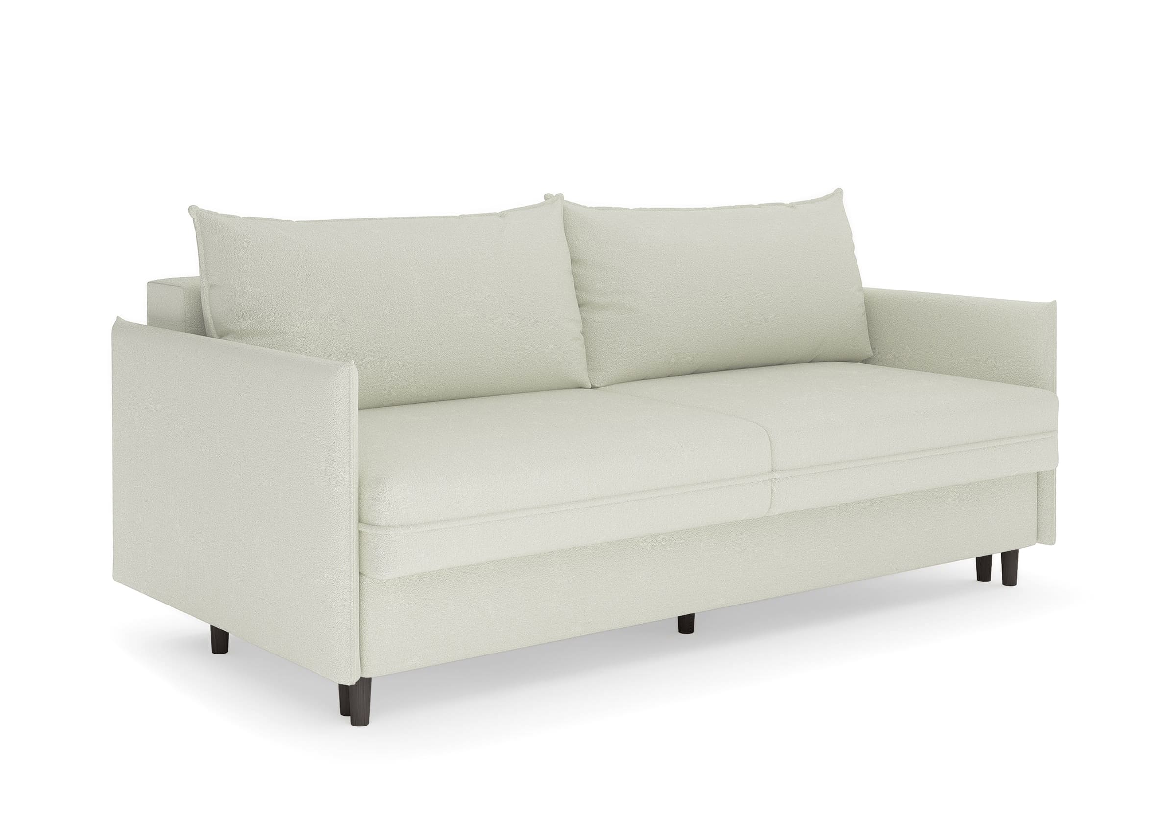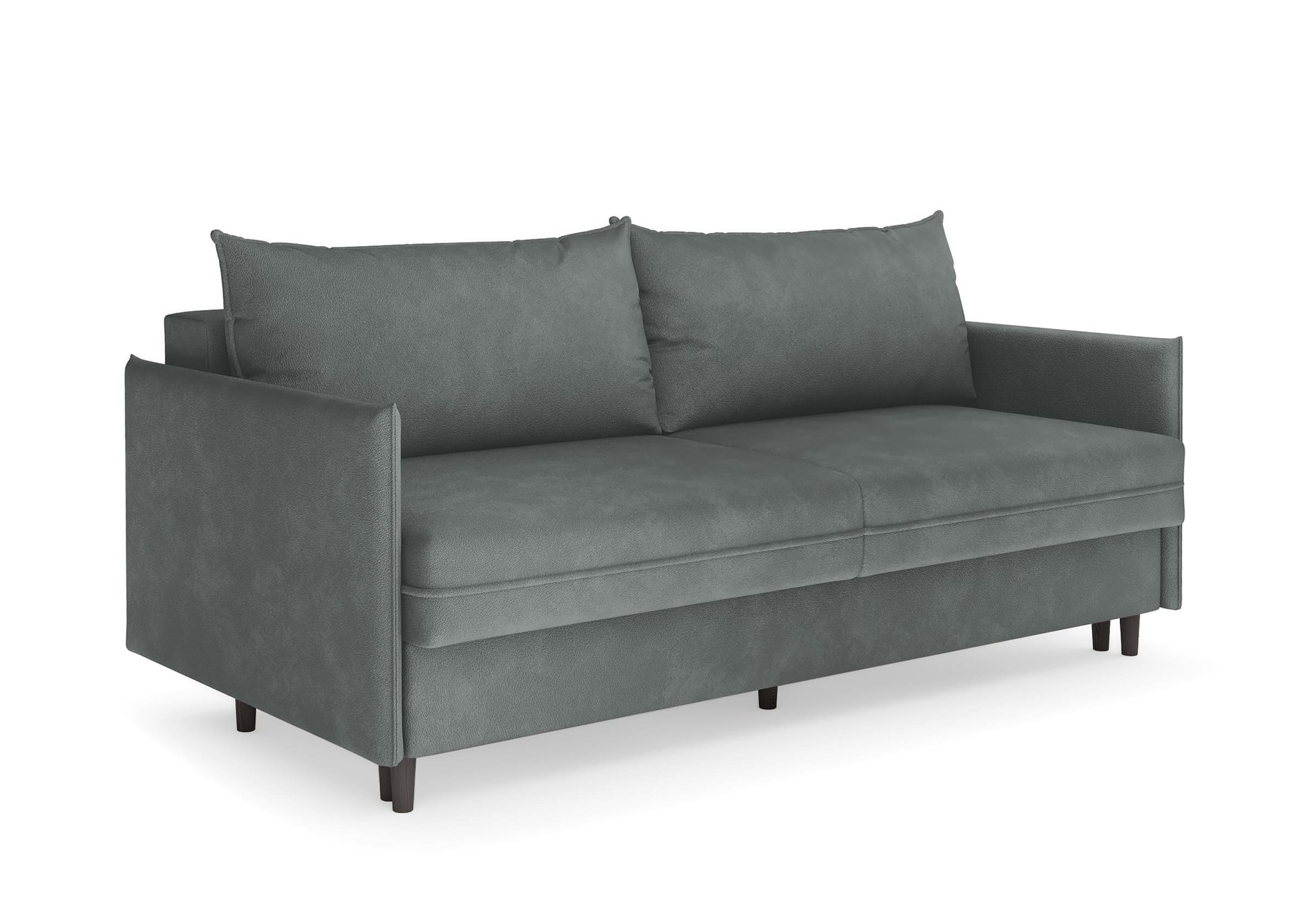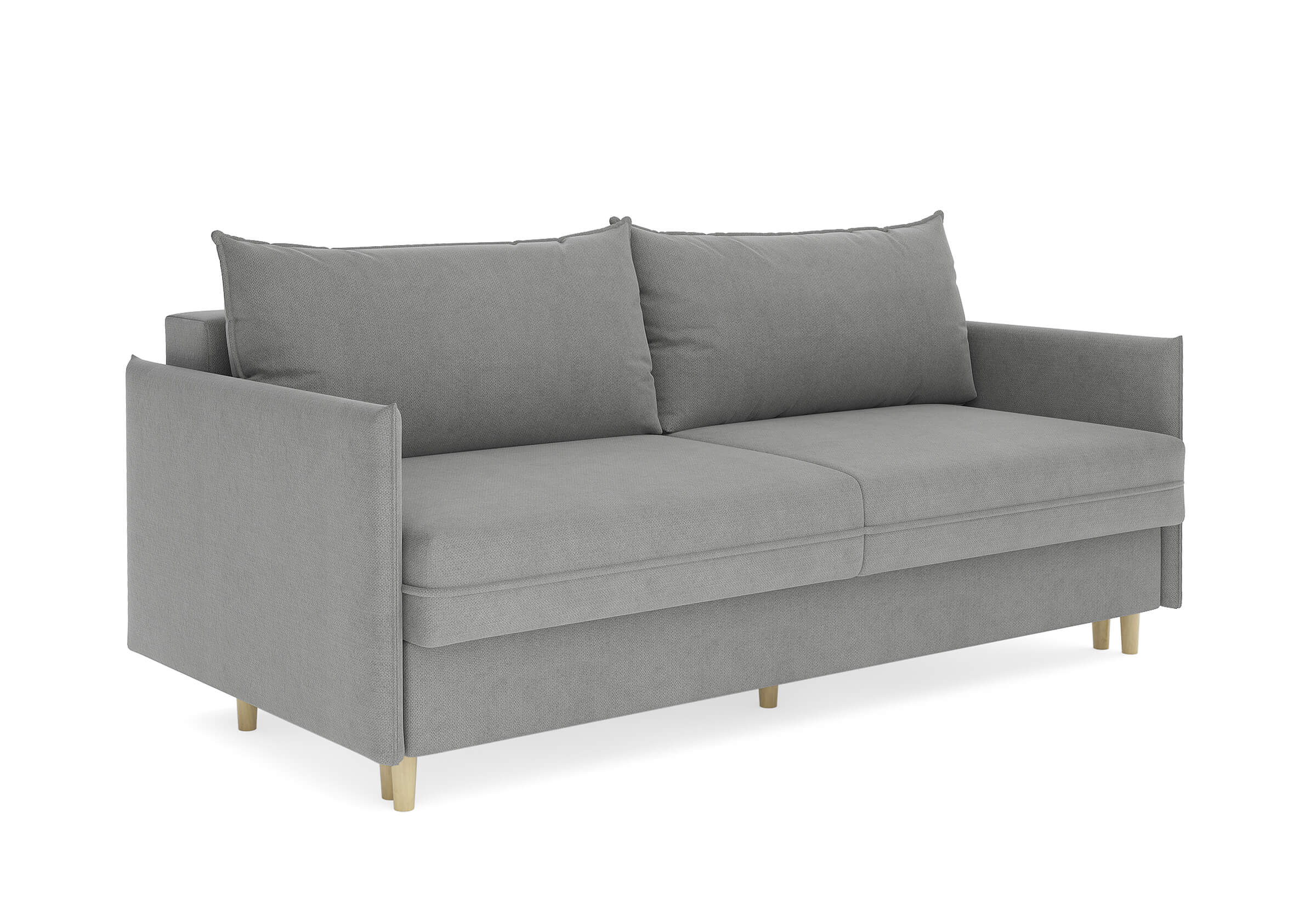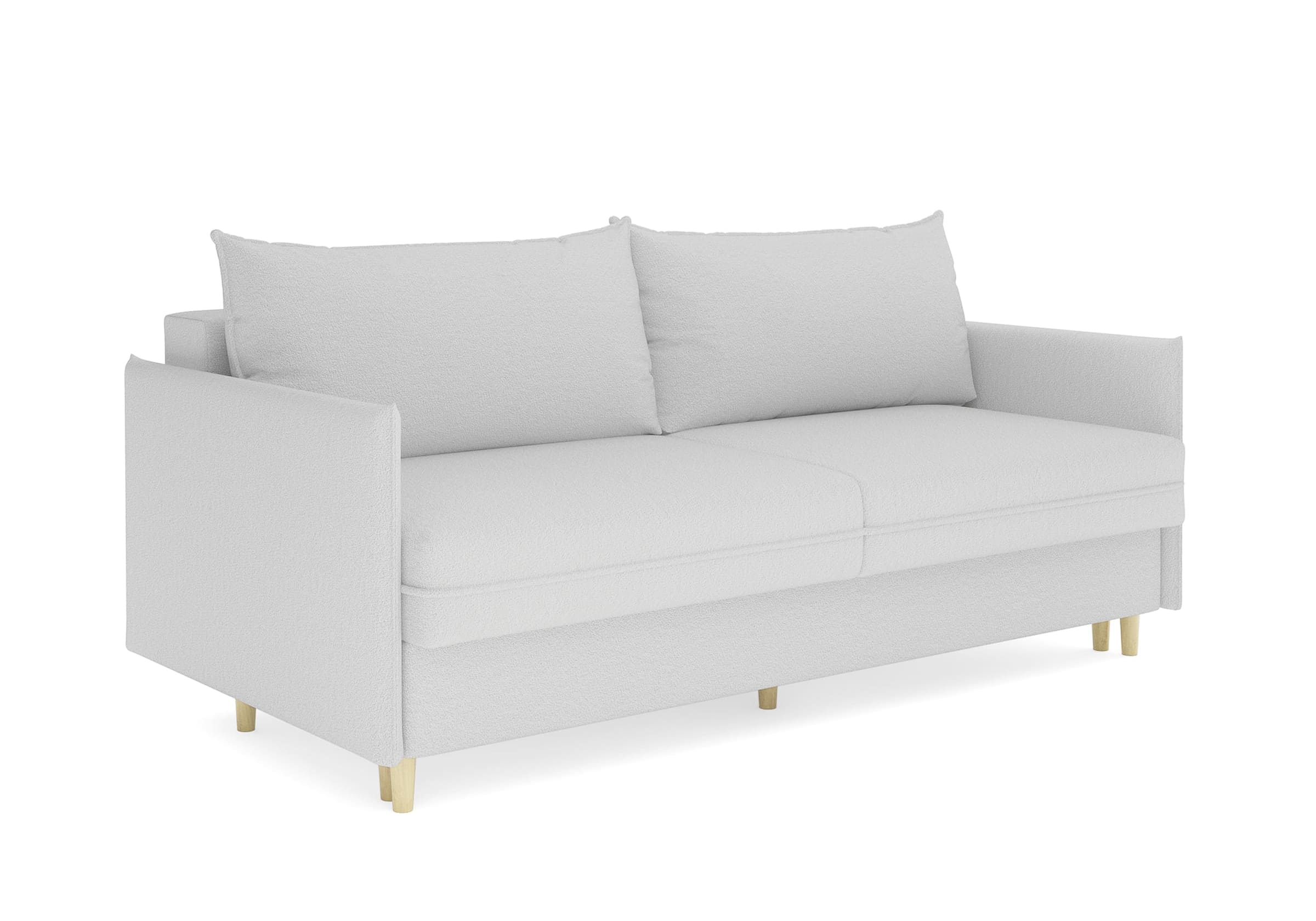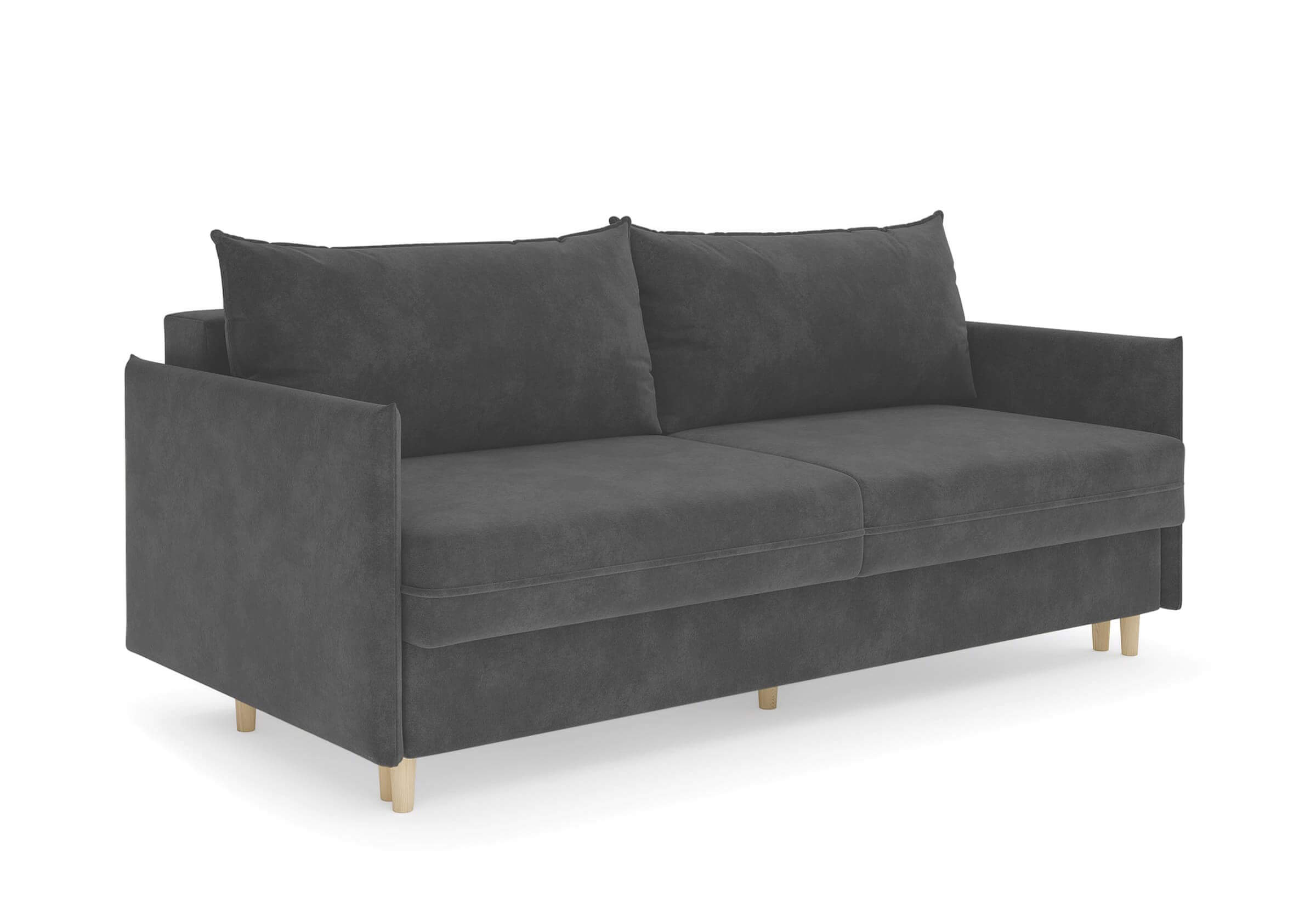 Диван для сна в скандинавском стиле с механизмом трансформации пантограф и коробом для хранения. Модель без броского декора, с прямыми линиями. Благодаря декоративному канту на сидении, подлокотниках и подушках, а также опорам из натурального массива Rain органично впишется в современные интерьеры в скандинавском стиле. У дивана анатомический матрас с блоком независимых пружин, жесткость средняя. Тонкие подлокотники делают диван негабаритным в длину. Комфортная глубина и высота сиденья обеспечит ежедневный комфорт. Задняя спинка предотвращает загрязнение и повреждение стены. В основе мягких подушек – микс наполнителей: поролоновая крошка не дает деформироваться, а синтетическое волокно добавляет комфорт. Опоры деревянные, два цвета на выбор. Просвет над полом способствует легкой уборке под диваном, в том числе роботом-пылесосом.. Размер сального места: 150-200