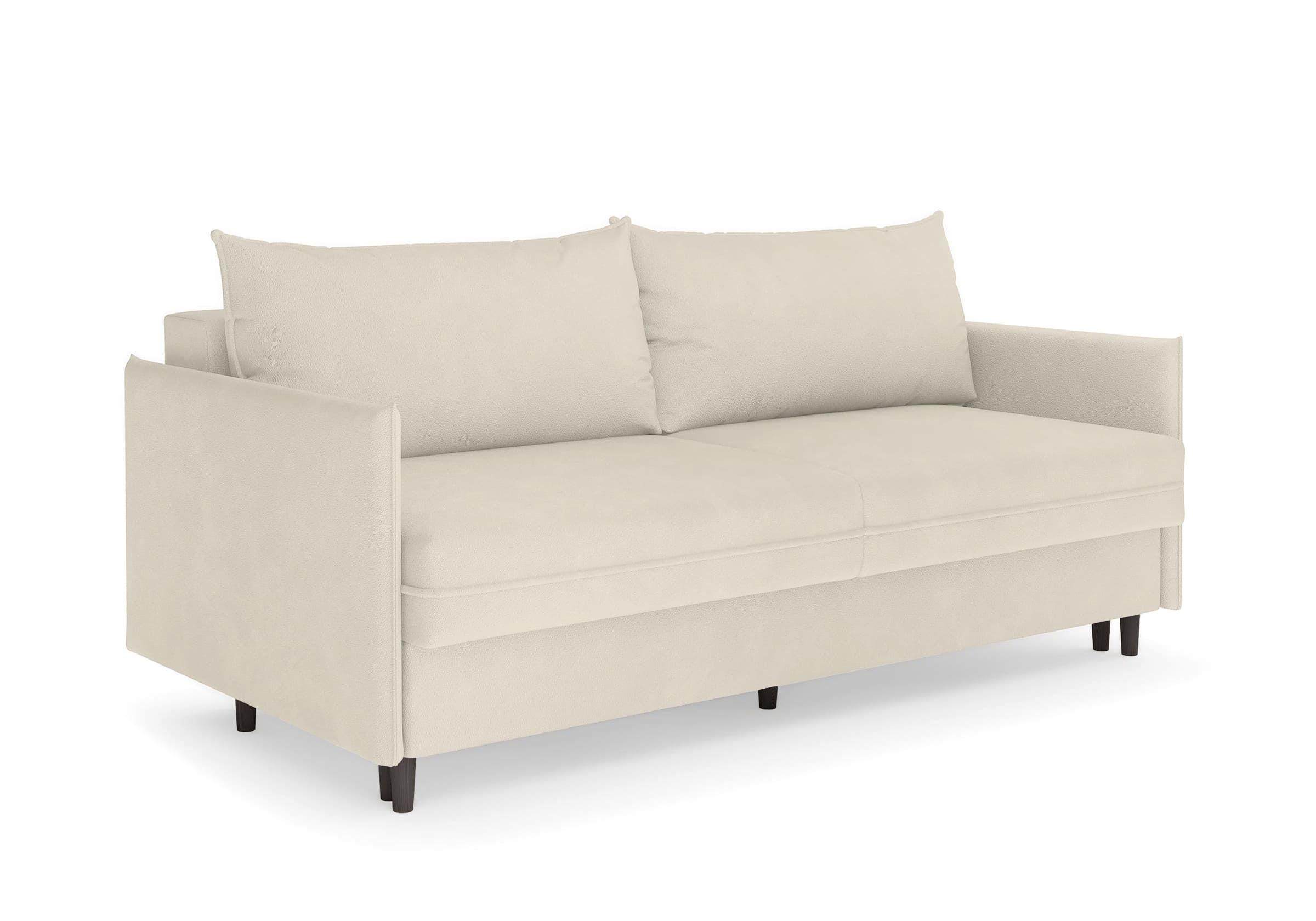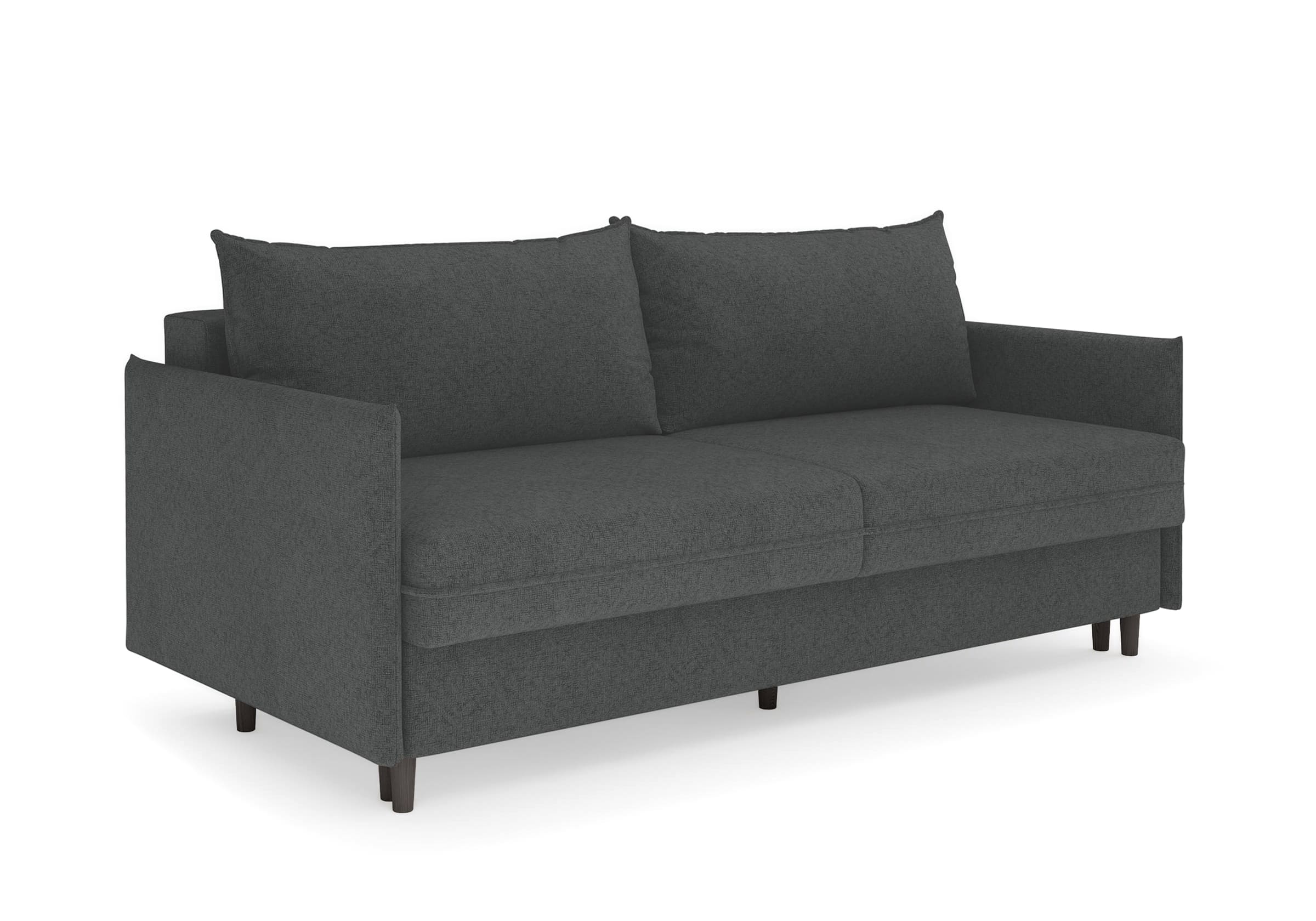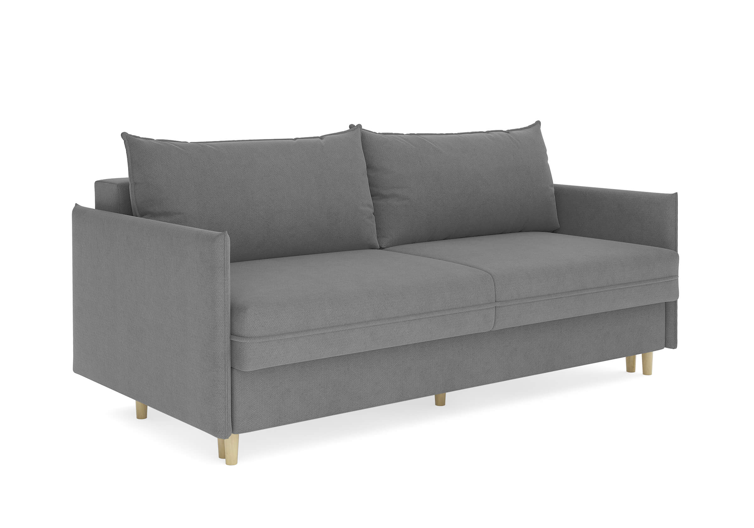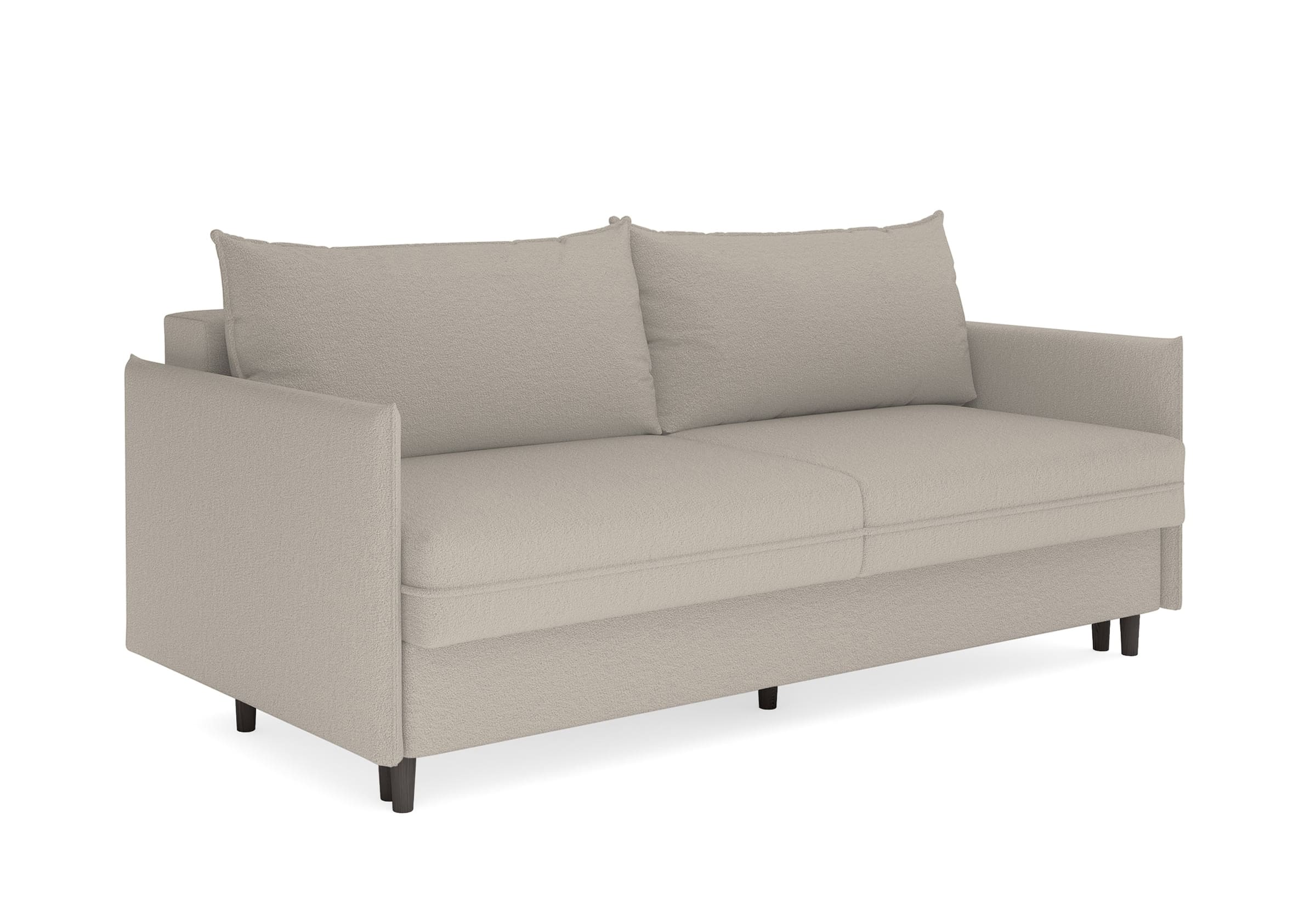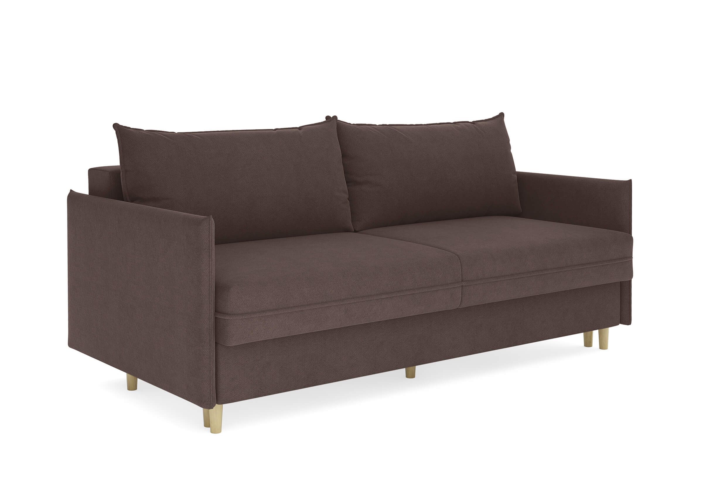 Диван для сна в скандинавском стиле с механизмом трансформации пантограф и коробом для хранения. Модель без броского декора, с прямыми линиями. Благодаря декоративному канту на сидении, подлокотниках и подушках, а также опорам из натурального массива Rain органично впишется в современные интерьеры в скандинавском стиле. У дивана анатомический матрас с блоком независимых пружин, жесткость средняя. Тонкие подлокотники делают диван негабаритным в длину. Комфортная глубина и высота сиденья обеспечит ежедневный комфорт. Задняя спинка предотвращает загрязнение и повреждение стены. В основе мягких подушек – микс наполнителей: поролоновая крошка не дает деформироваться, а синтетическое волокно добавляет комфорт. Опоры деревянные, два цвета на выбор. Просвет над полом способствует легкой уборке под диваном, в том числе роботом-пылесосом.. Размер сального места: 150-200