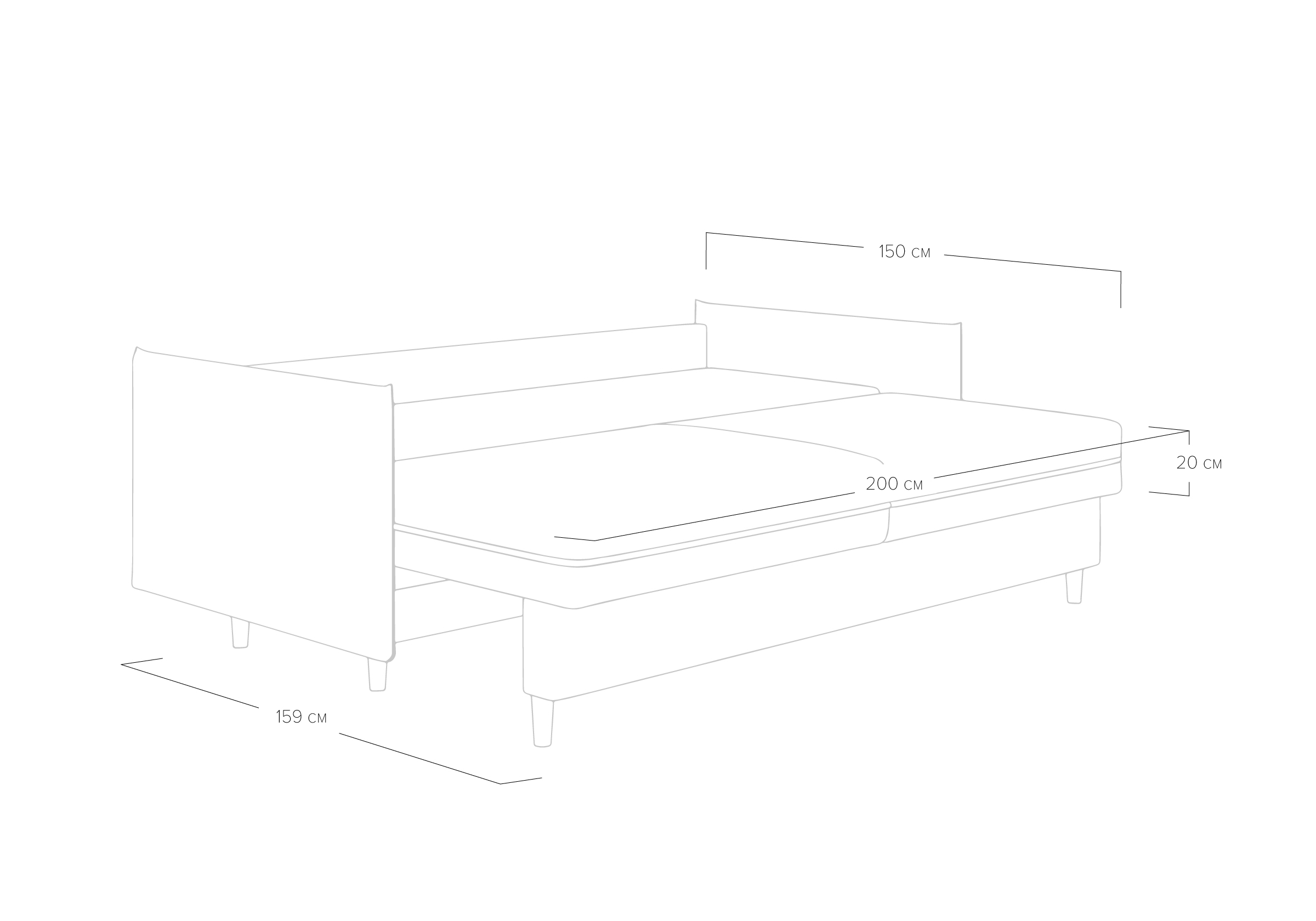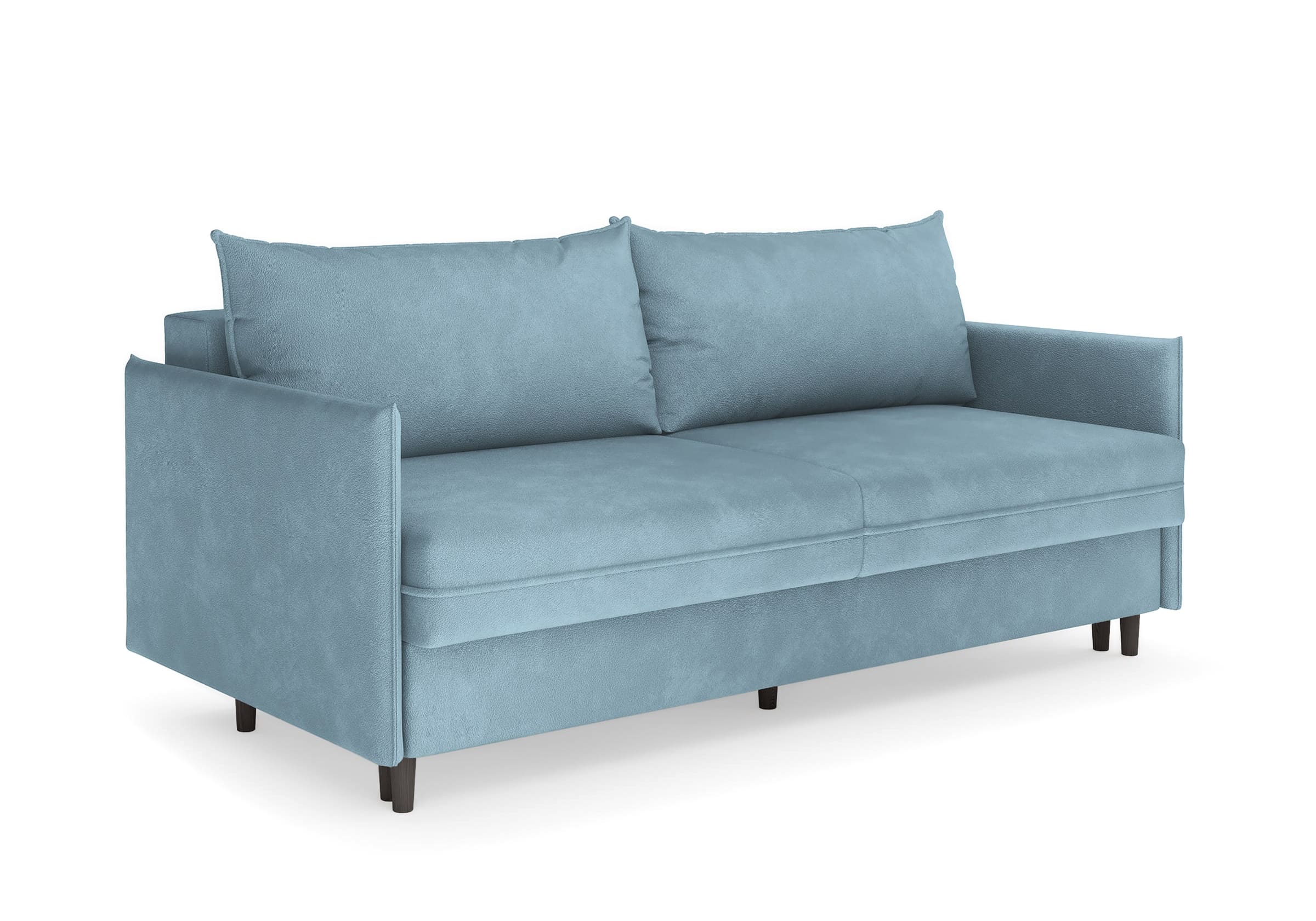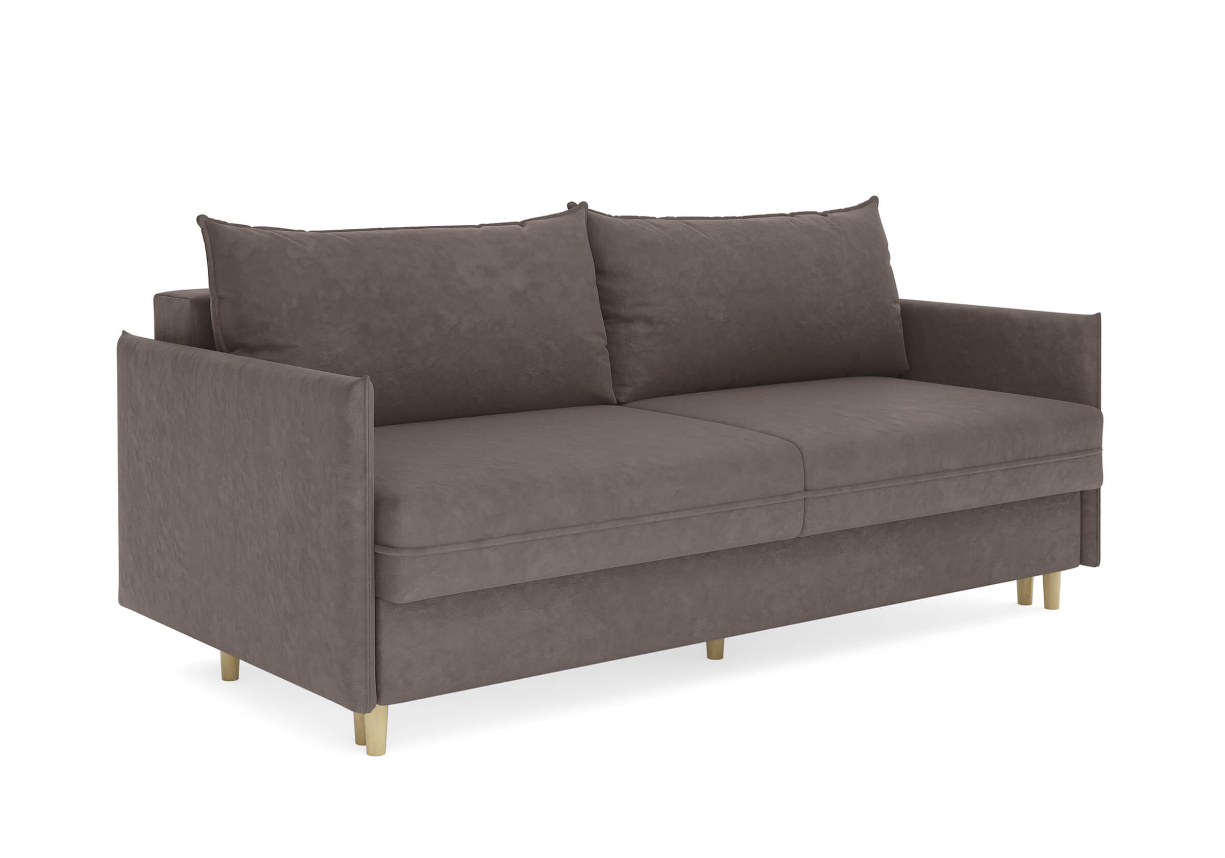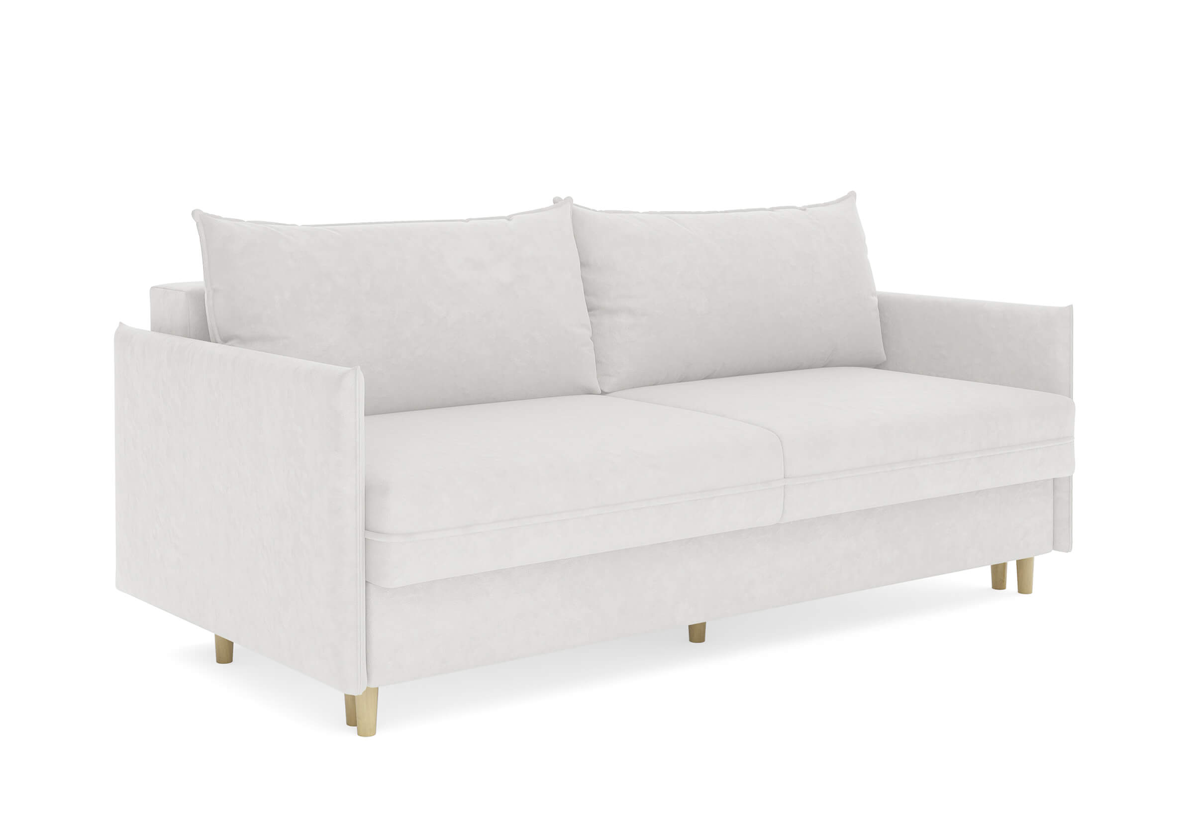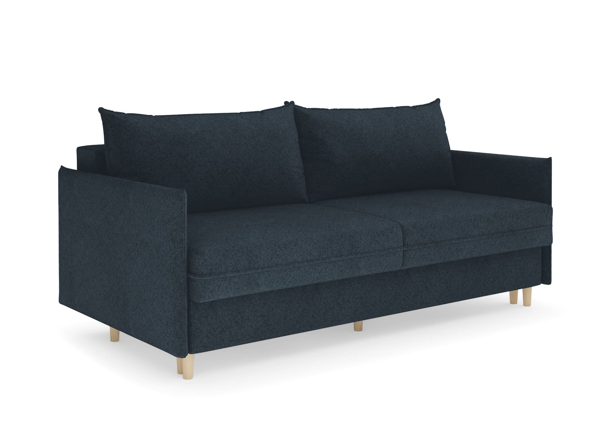 Диван для сна в скандинавском стиле с механизмом трансформации пантограф и коробом для хранения. Модель без броского декора, с прямыми линиями. Благодаря декоративному канту на сидении, подлокотниках и подушках, а также опорам из натурального массива Rain органично впишется в современные интерьеры в скандинавском стиле. У дивана анатомический матрас с блоком независимых пружин, жесткость средняя. Тонкие подлокотники делают диван негабаритным в длину. Комфортная глубина и высота сиденья обеспечит ежедневный комфорт. Задняя спинка предотвращает загрязнение и повреждение стены. В основе мягких подушек – микс наполнителей: поролоновая крошка не дает деформироваться, а синтетическое волокно добавляет комфорт. Опоры деревянные, два цвета на выбор. Просвет над полом способствует легкой уборке под диваном, в том числе роботом-пылесосом.. Размер сального места: 150-200