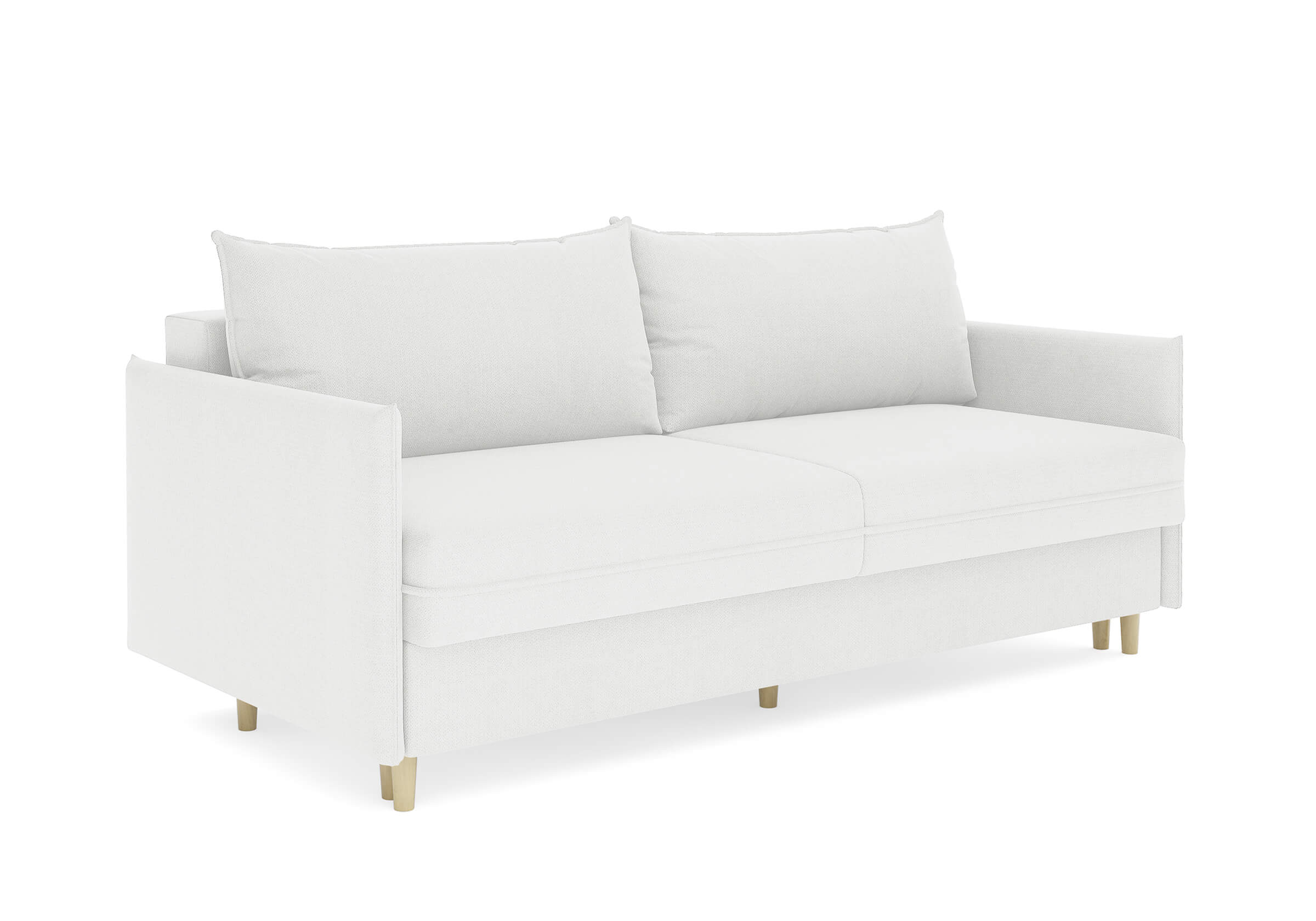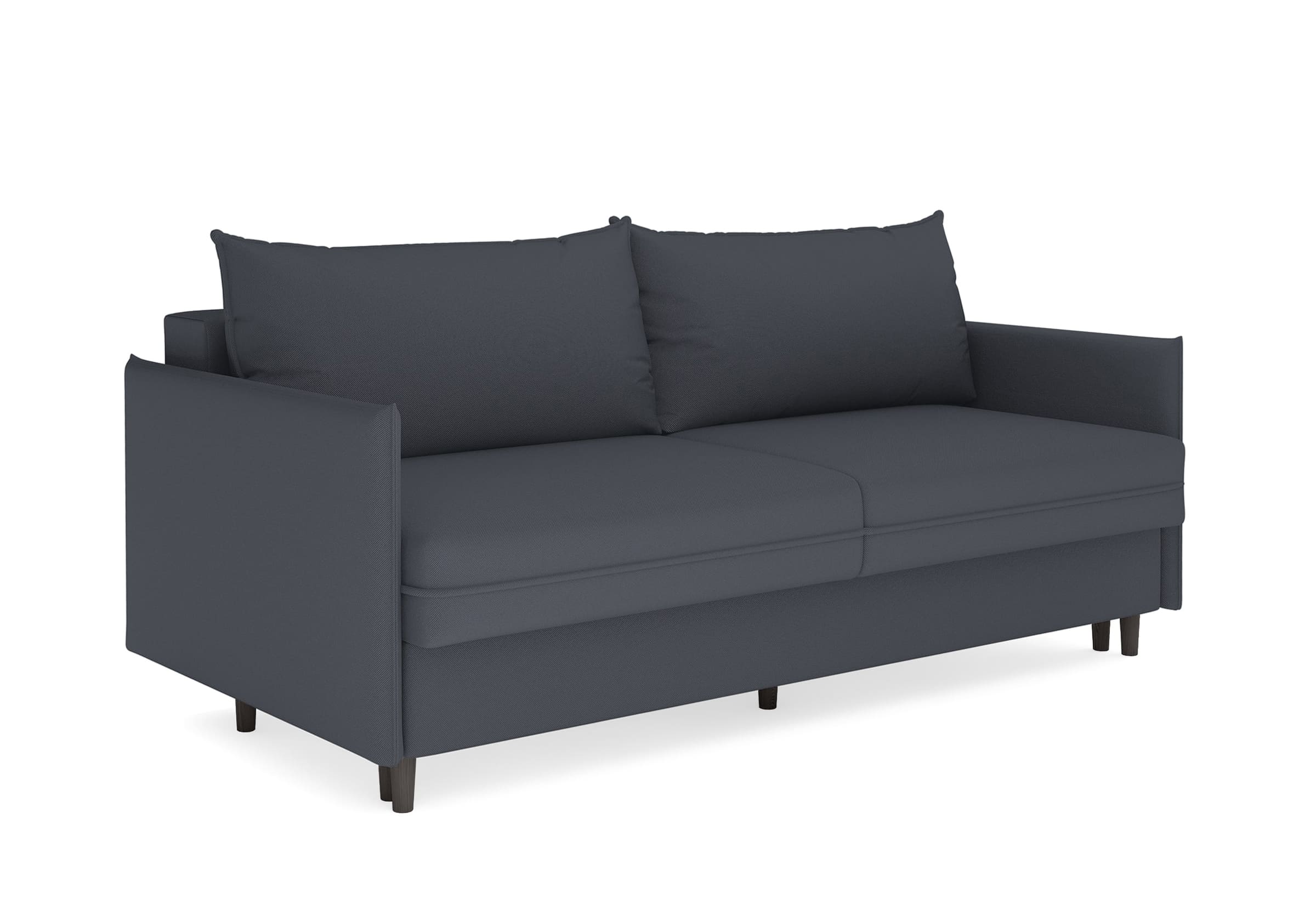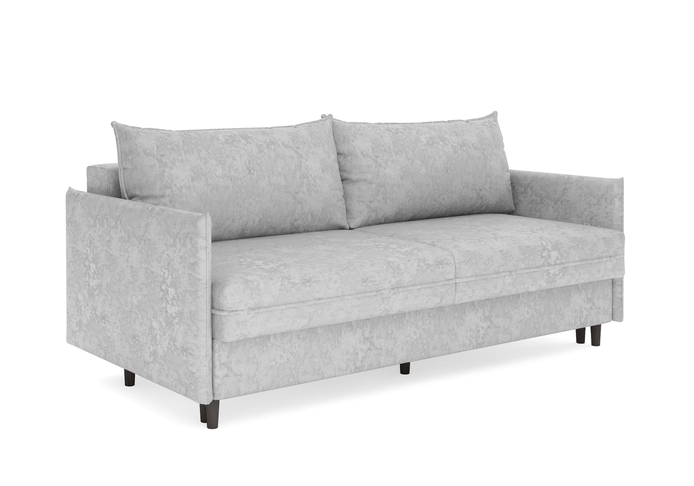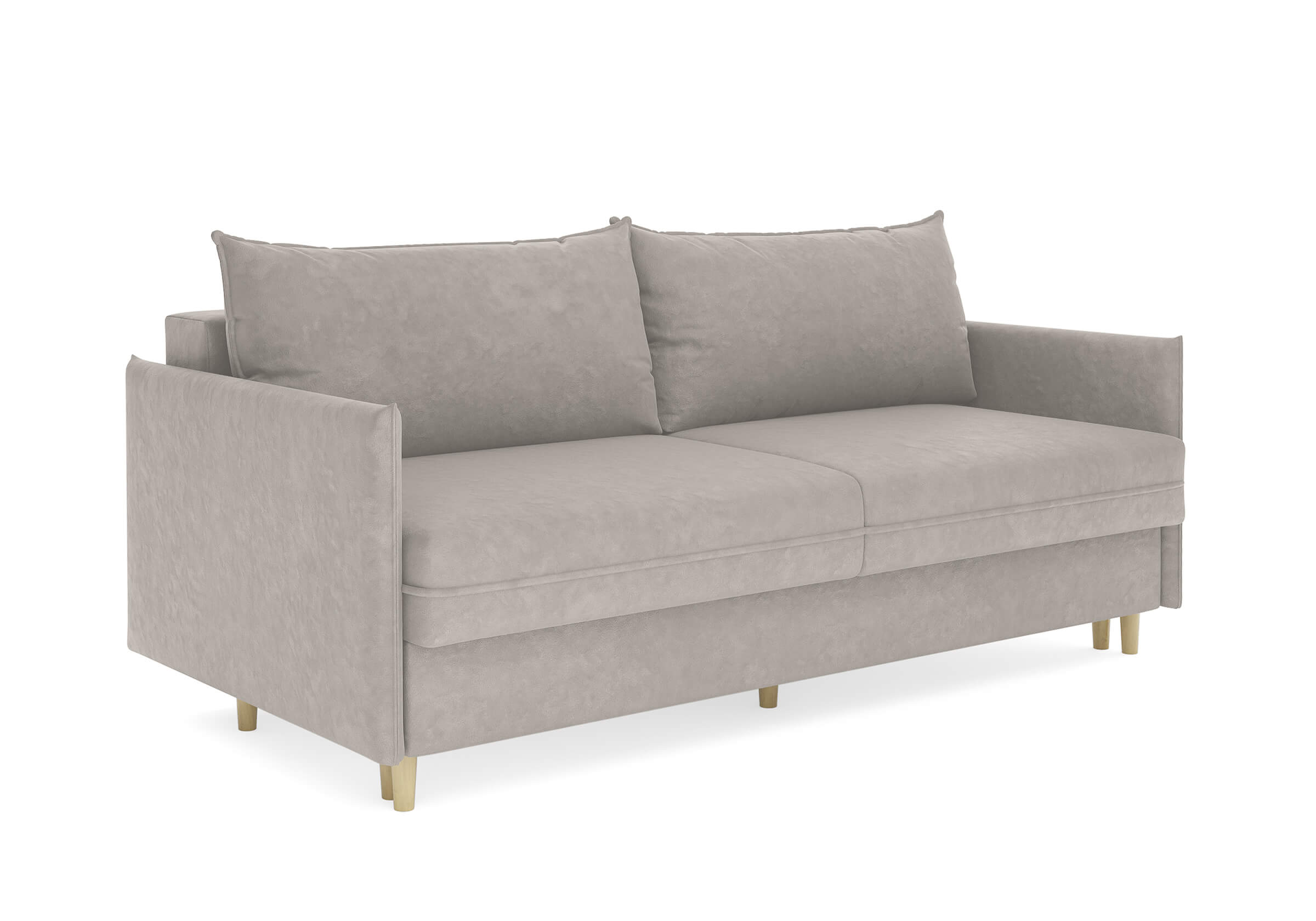 Диван для сна в скандинавском стиле с механизмом трансформации пантограф и коробом для хранения. Модель без броского декора, с прямыми линиями. Благодаря декоративному канту на сидении, подлокотниках и подушках, а также опорам из натурального массива Rain органично впишется в современные интерьеры в скандинавском стиле. У дивана анатомический матрас с блоком независимых пружин, жесткость средняя. Тонкие подлокотники делают диван негабаритным в длину. Комфортная глубина и высота сиденья обеспечит ежедневный комфорт. Задняя спинка предотвращает загрязнение и повреждение стены. В основе мягких подушек – микс наполнителей: поролоновая крошка не дает деформироваться, а синтетическое волокно добавляет комфорт. Опоры деревянные, два цвета на выбор. Просвет над полом способствует легкой уборке под диваном, в том числе роботом-пылесосом.. Размер сального места: 150-200