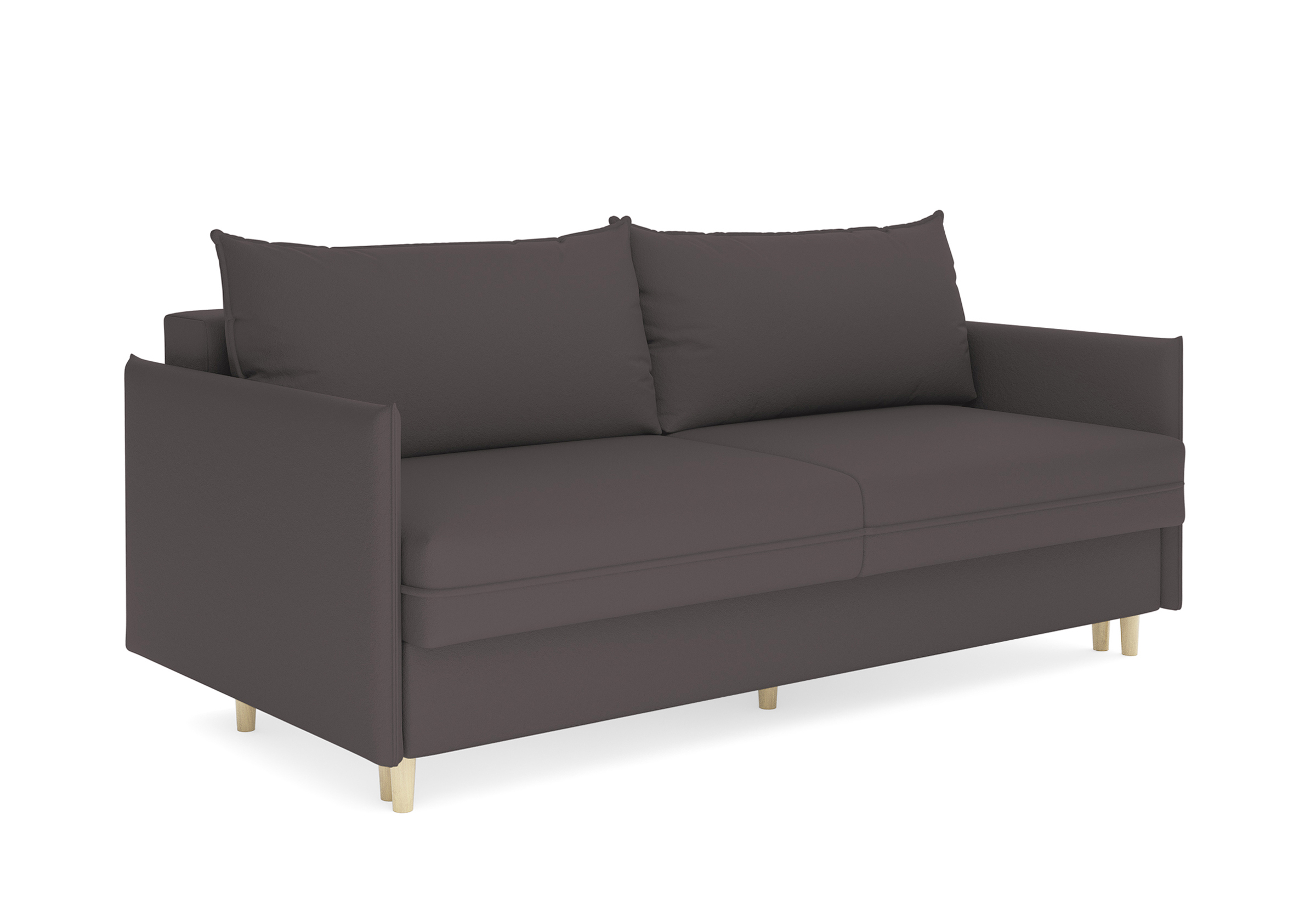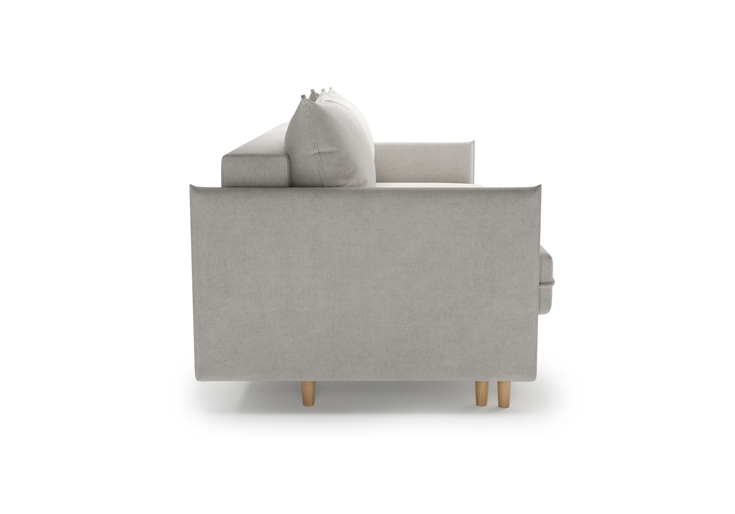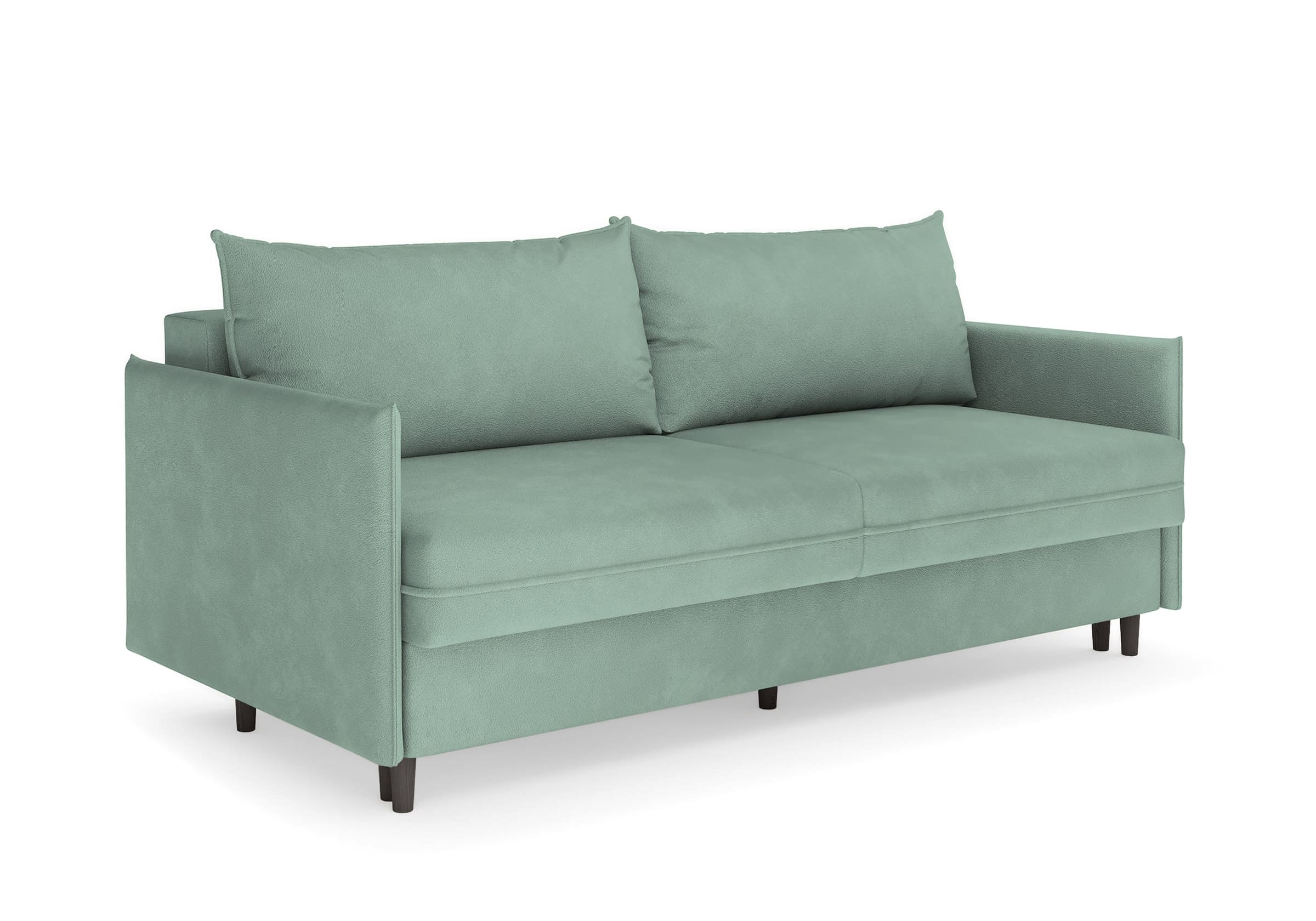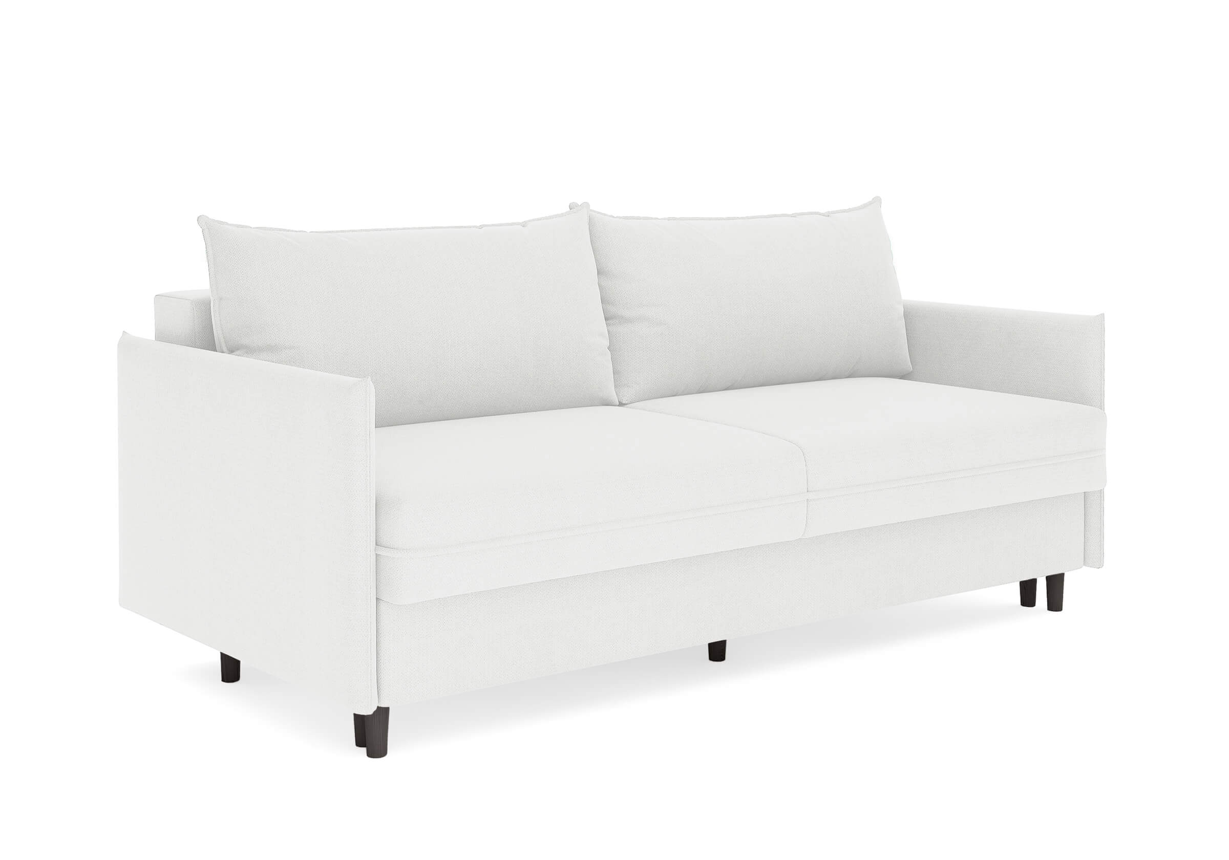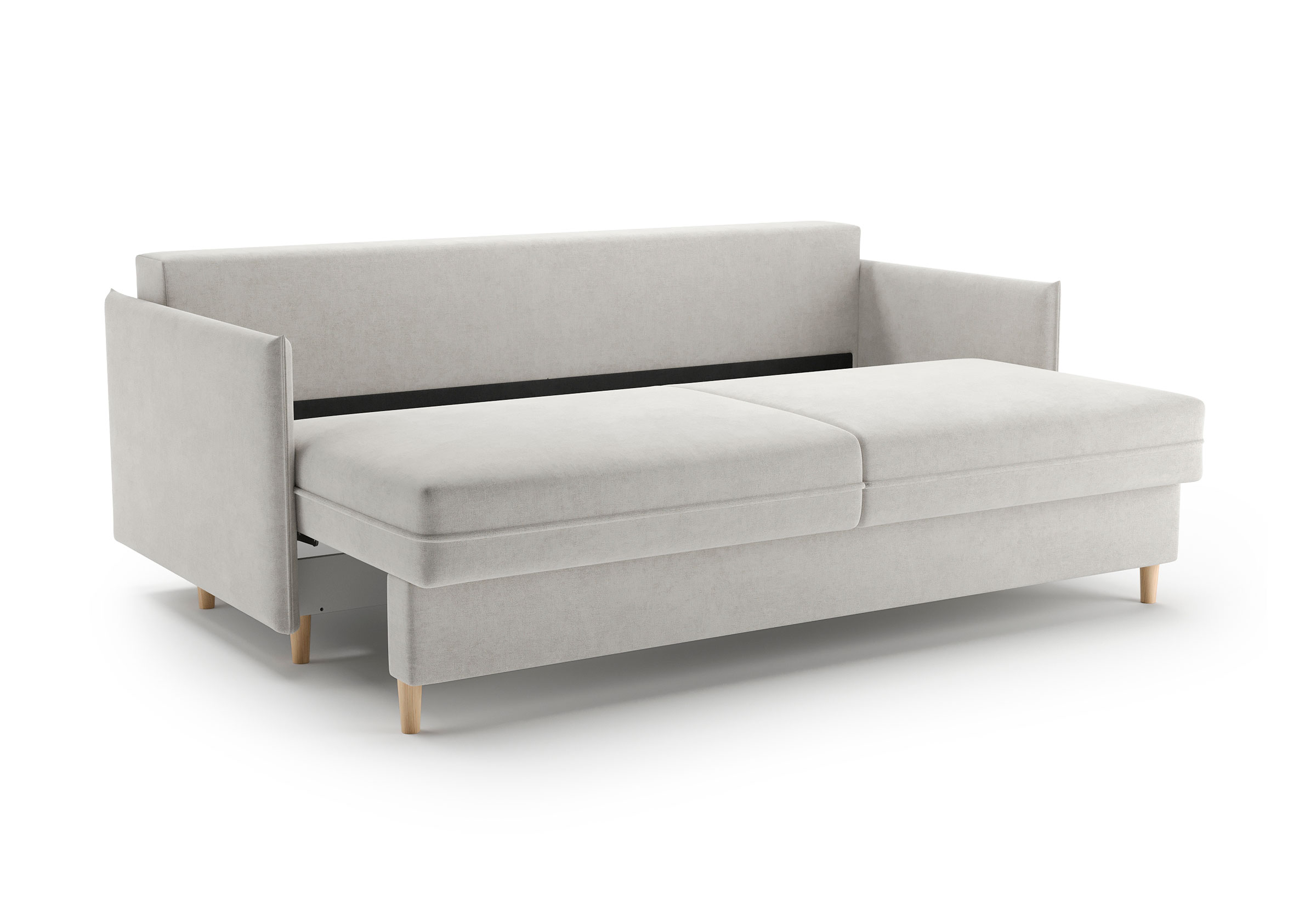 Диван для сна в скандинавском стиле с механизмом трансформации пантограф и коробом для хранения. Модель без броского декора, с прямыми линиями. Благодаря декоративному канту на сидении, подлокотниках и подушках, а также опорам из натурального массива Rain органично впишется в современные интерьеры в скандинавском стиле. У дивана анатомический матрас с блоком независимых пружин, жесткость средняя. Тонкие подлокотники делают диван негабаритным в длину. Комфортная глубина и высота сиденья обеспечит ежедневный комфорт. Задняя спинка предотвращает загрязнение и повреждение стены. В основе мягких подушек – микс наполнителей: поролоновая крошка не дает деформироваться, а синтетическое волокно добавляет комфорт. Опоры деревянные, два цвета на выбор. Просвет над полом способствует легкой уборке под диваном, в том числе роботом-пылесосом.. Размер сального места: 150-200