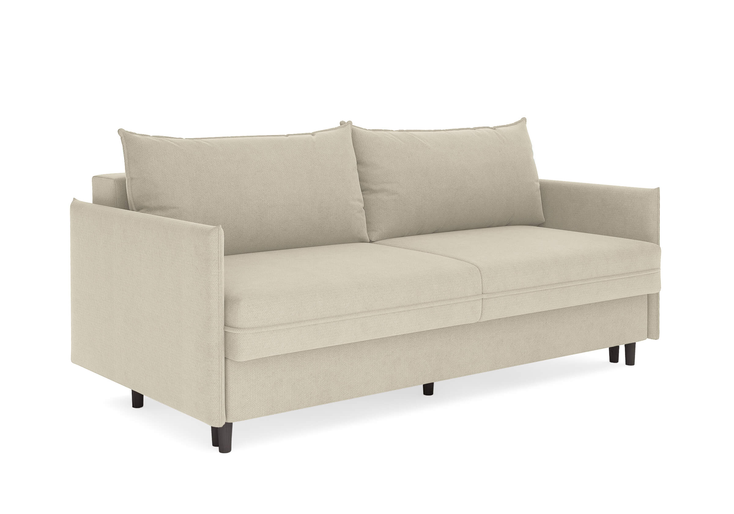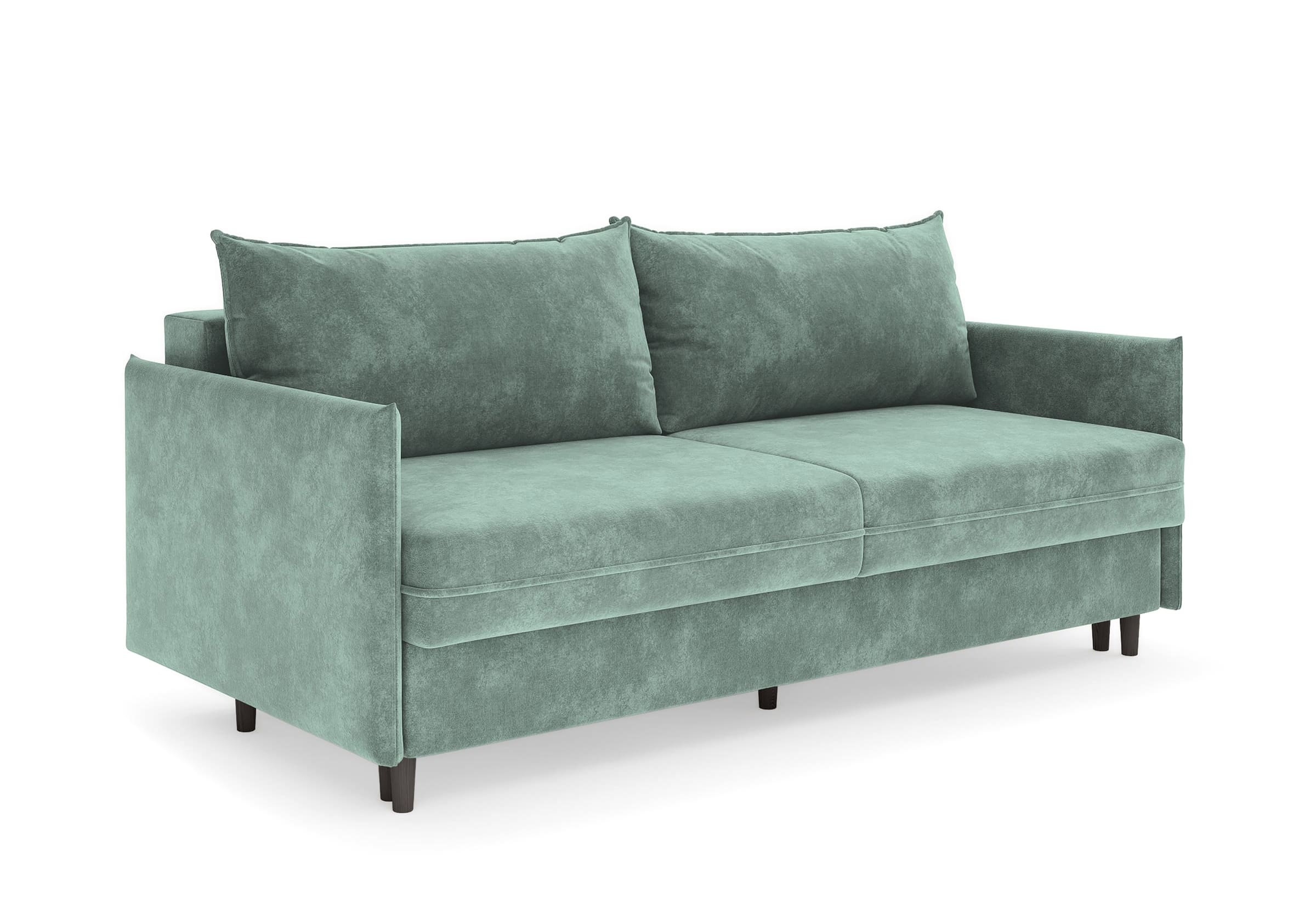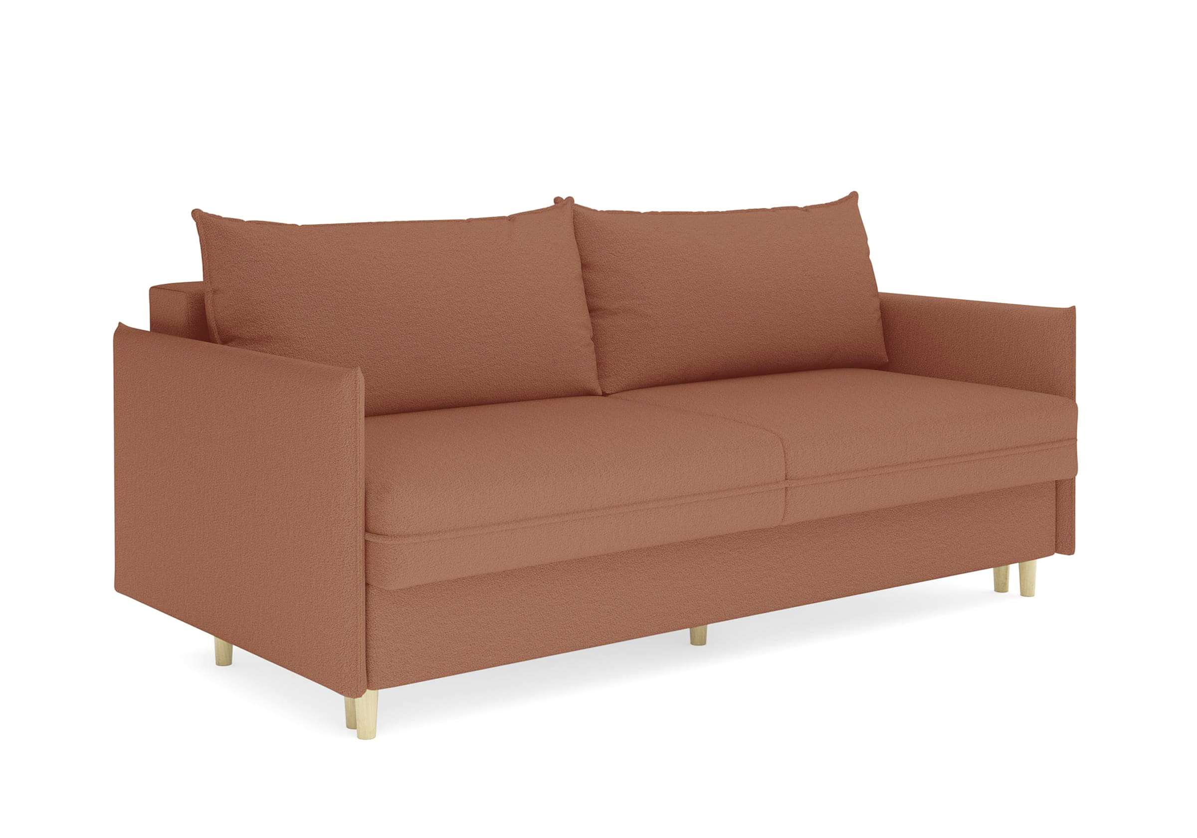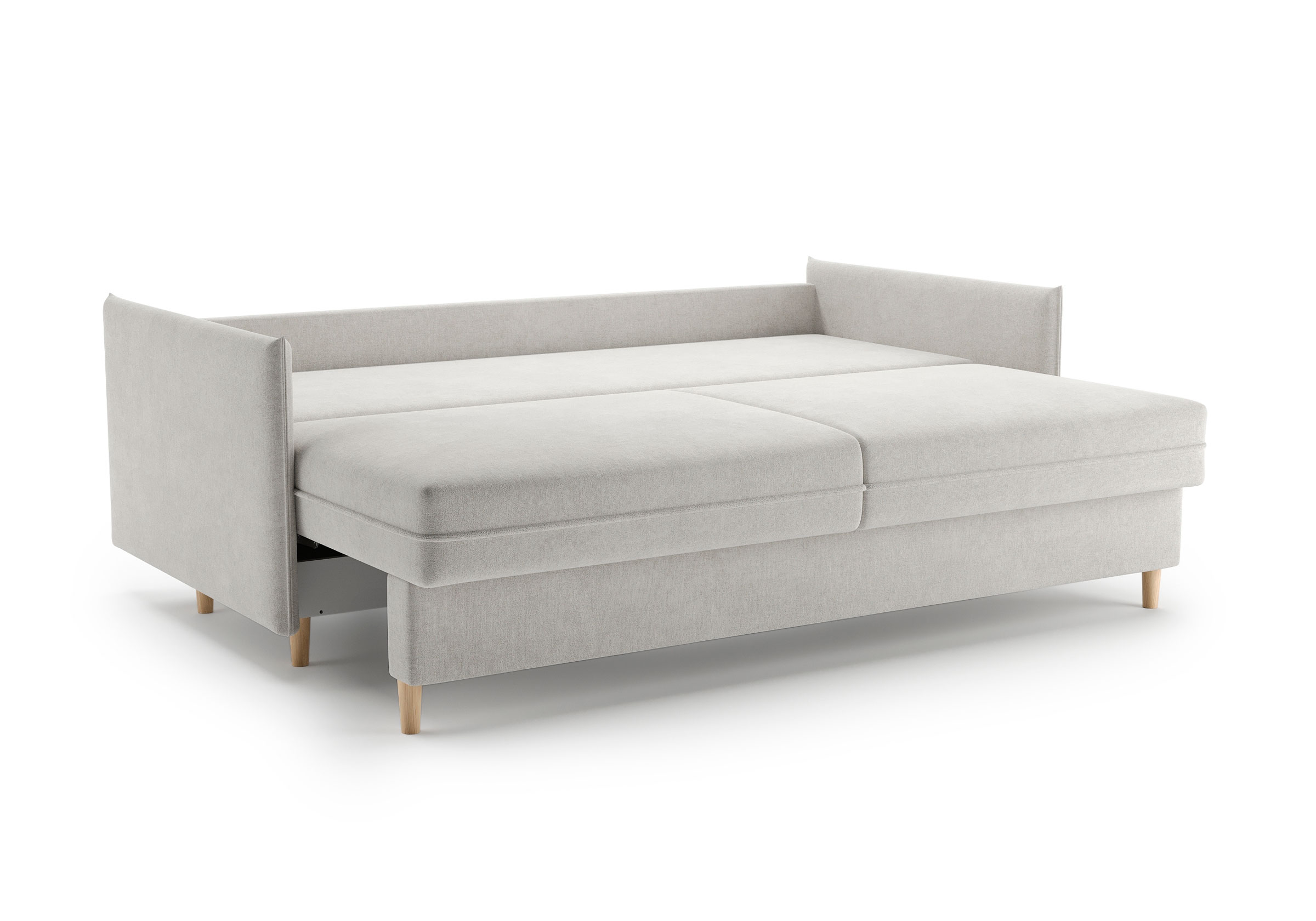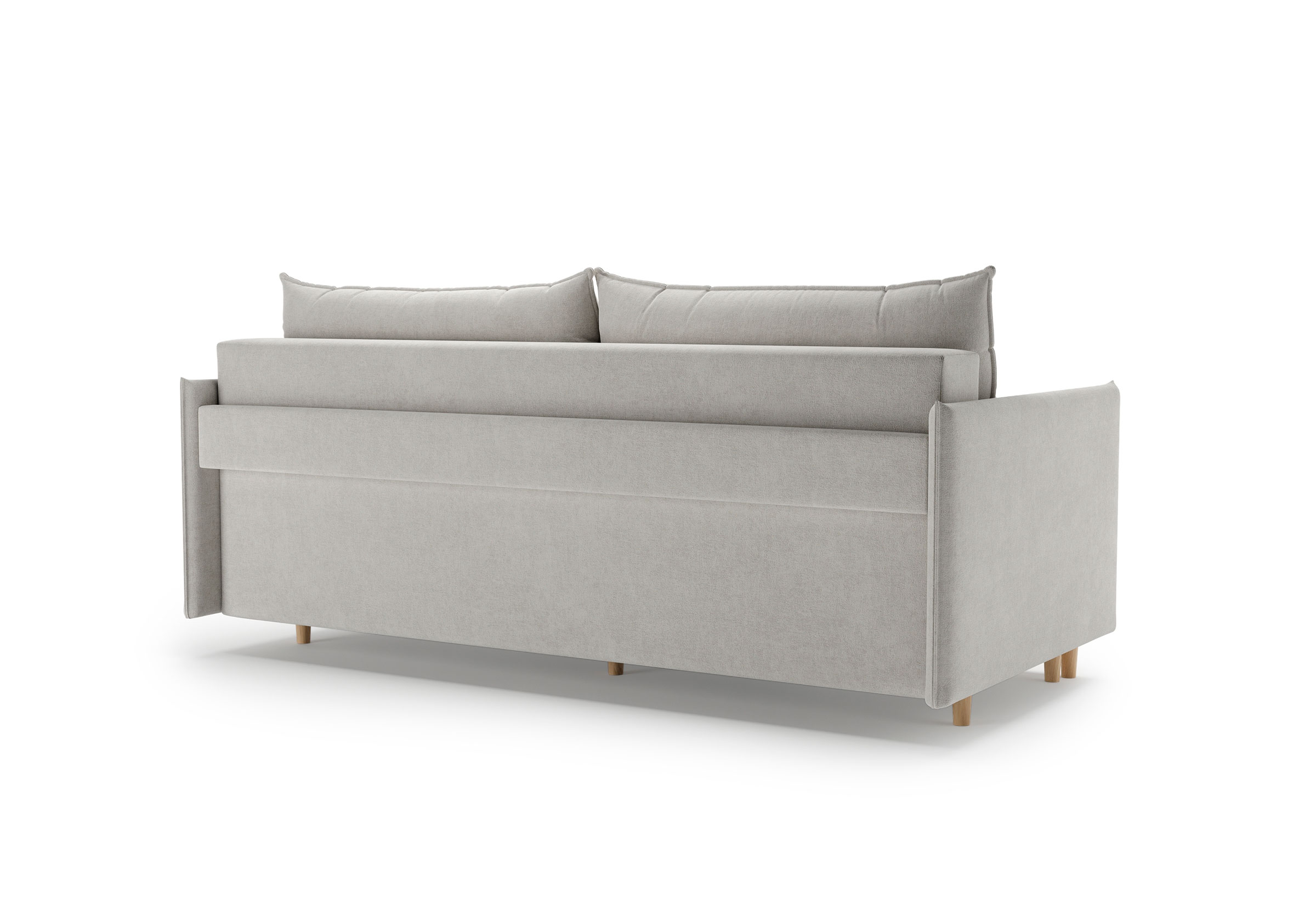 Диван для сна в скандинавском стиле с механизмом трансформации пантограф и коробом для хранения. Модель без броского декора, с прямыми линиями. Благодаря декоративному канту на сидении, подлокотниках и подушках, а также опорам из натурального массива Rain органично впишется в современные интерьеры в скандинавском стиле. У дивана анатомический матрас с блоком независимых пружин, жесткость средняя. Тонкие подлокотники делают диван негабаритным в длину. Комфортная глубина и высота сиденья обеспечит ежедневный комфорт. Задняя спинка предотвращает загрязнение и повреждение стены. В основе мягких подушек – микс наполнителей: поролоновая крошка не дает деформироваться, а синтетическое волокно добавляет комфорт. Опоры деревянные, два цвета на выбор. Просвет над полом способствует легкой уборке под диваном, в том числе роботом-пылесосом.. Размер сального места: 150-200