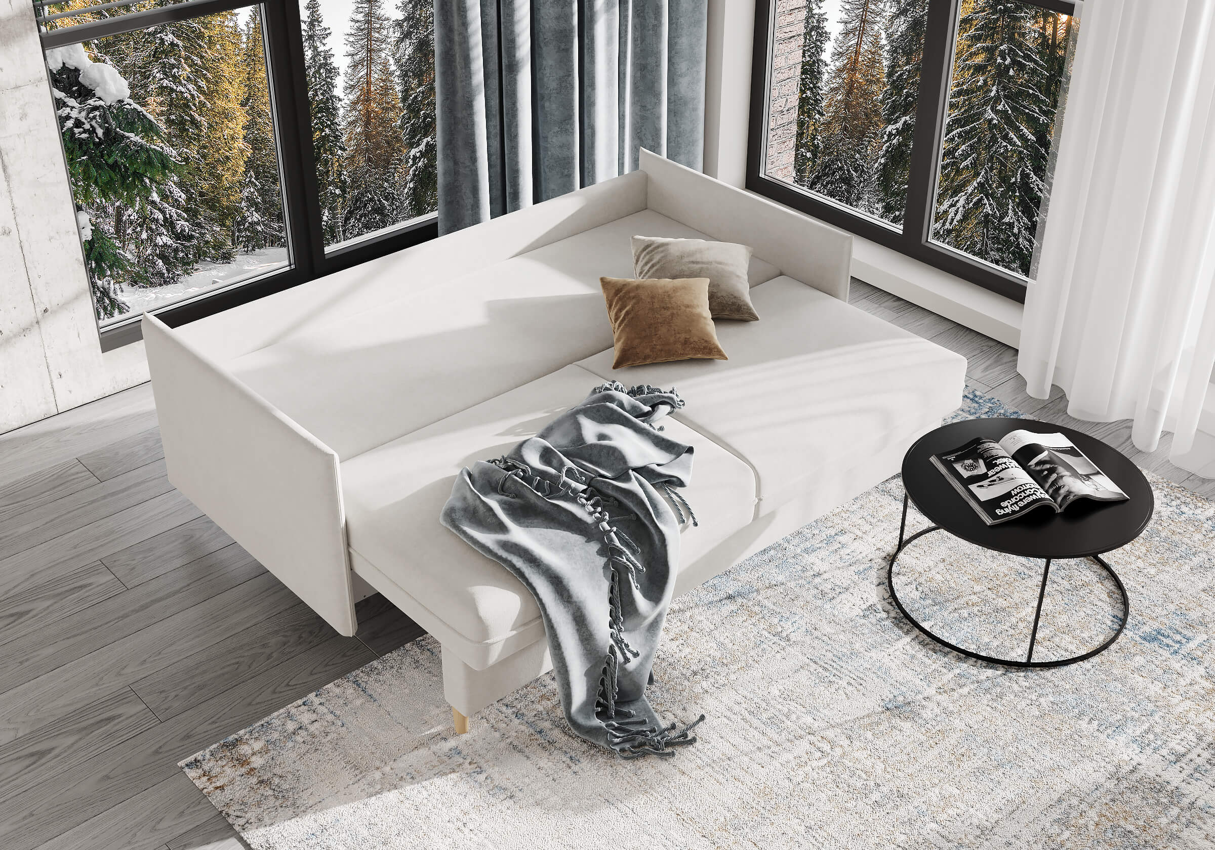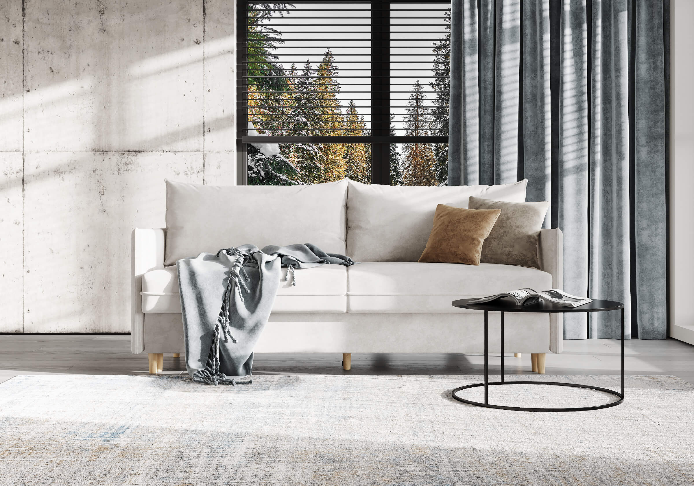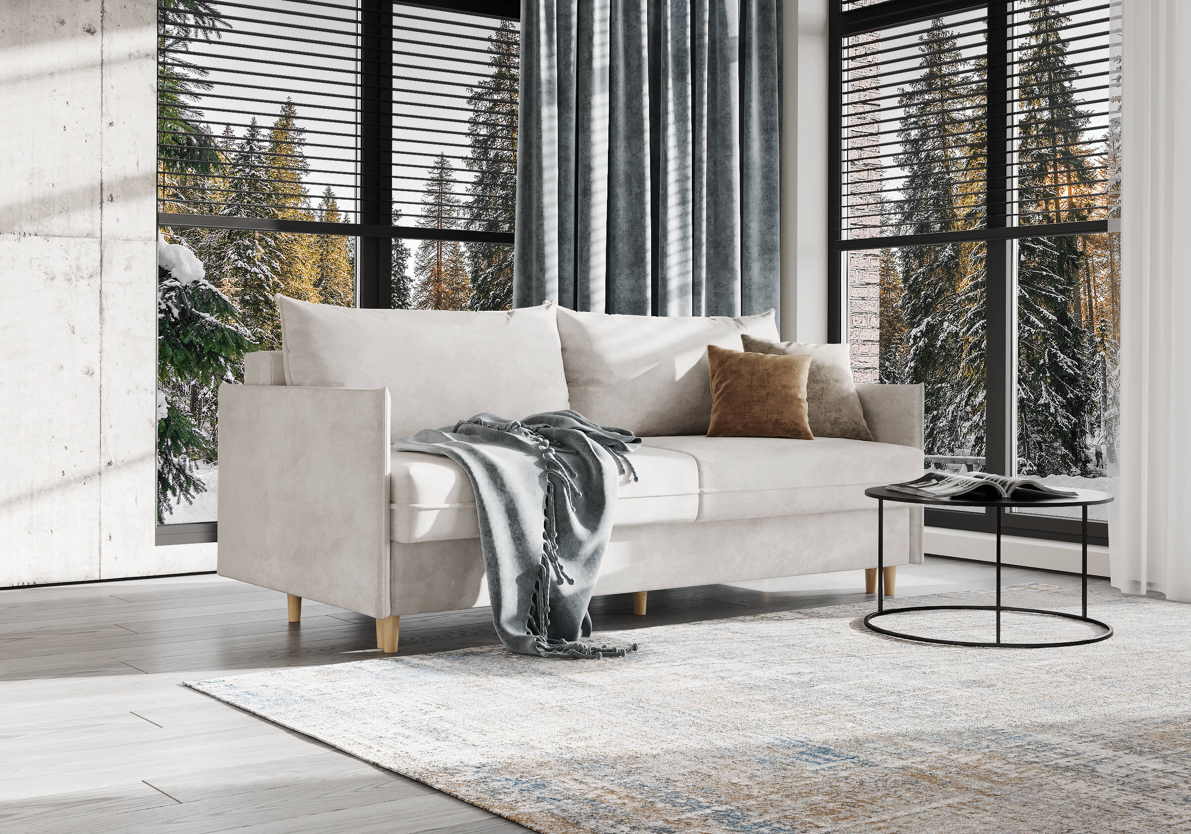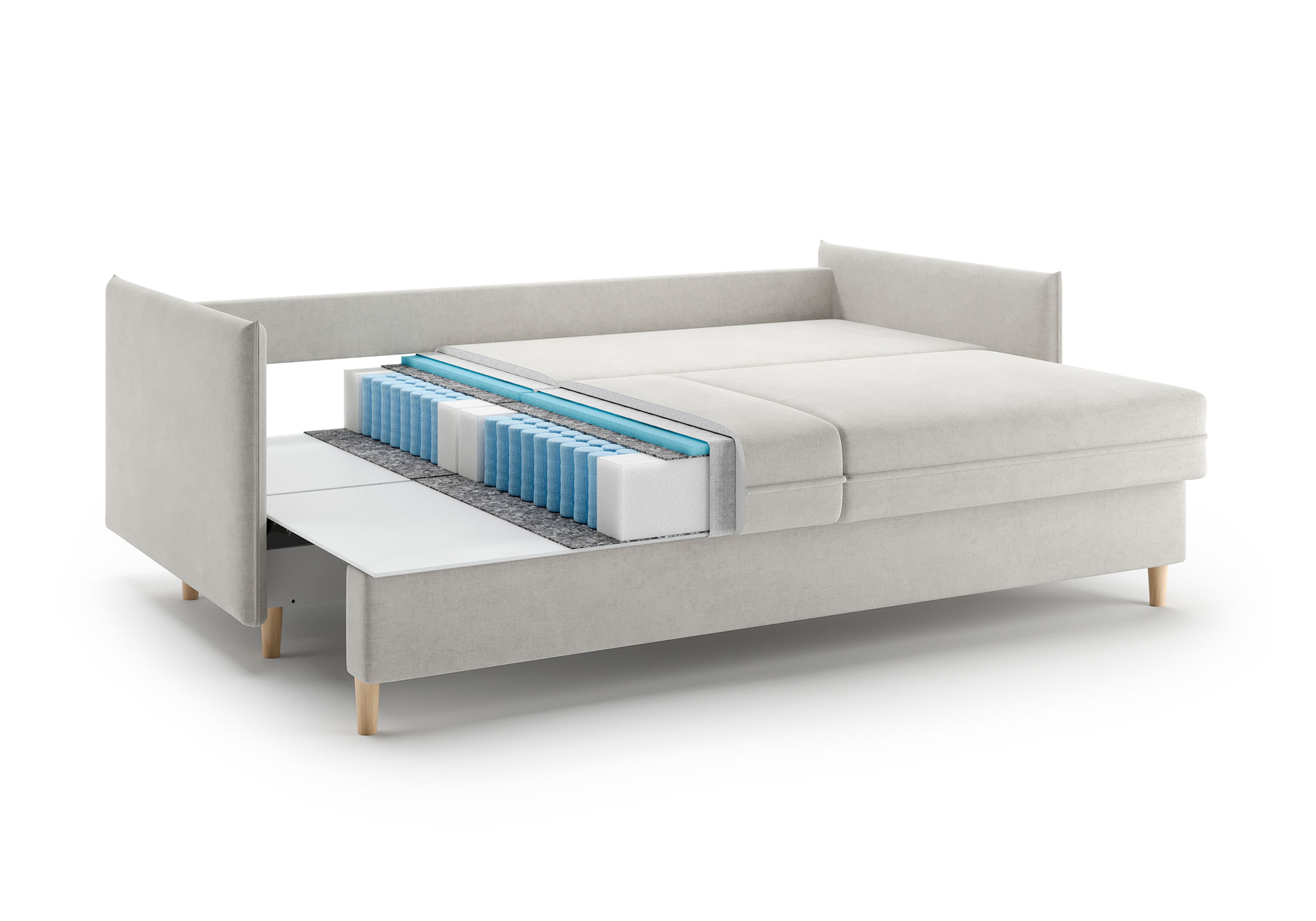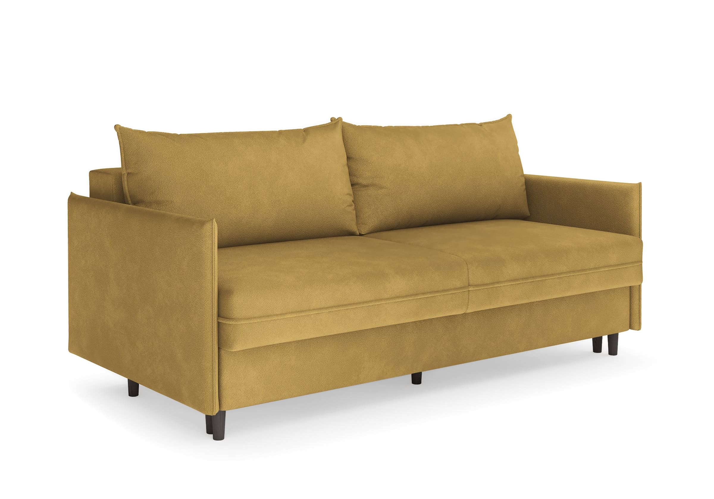 Диван для сна в скандинавском стиле с механизмом трансформации пантограф и коробом для хранения. Модель без броского декора, с прямыми линиями. Благодаря декоративному канту на сидении, подлокотниках и подушках, а также опорам из натурального массива Rain органично впишется в современные интерьеры в скандинавском стиле. У дивана анатомический матрас с блоком независимых пружин, жесткость средняя. Тонкие подлокотники делают диван негабаритным в длину. Комфортная глубина и высота сиденья обеспечит ежедневный комфорт. Задняя спинка предотвращает загрязнение и повреждение стены. В основе мягких подушек – микс наполнителей: поролоновая крошка не дает деформироваться, а синтетическое волокно добавляет комфорт. Опоры деревянные, два цвета на выбор. Просвет над полом способствует легкой уборке под диваном, в том числе роботом-пылесосом.. Размер сального места: 150-200