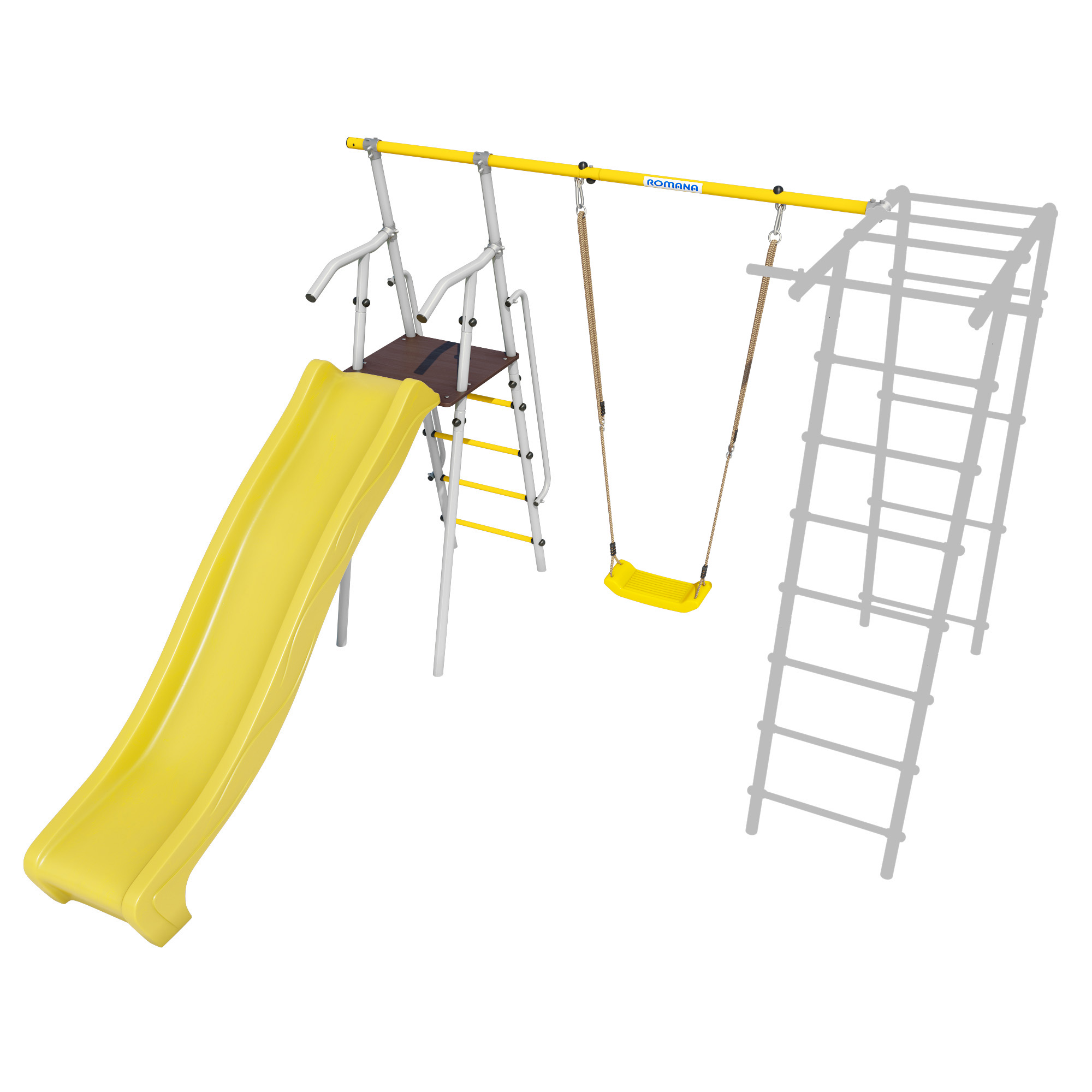 Дополнительный комплект с горкой к дачному комплексу ROMANA *только для высоты балки качелей 2050 мм. (цепные качели) (желтый/серый)