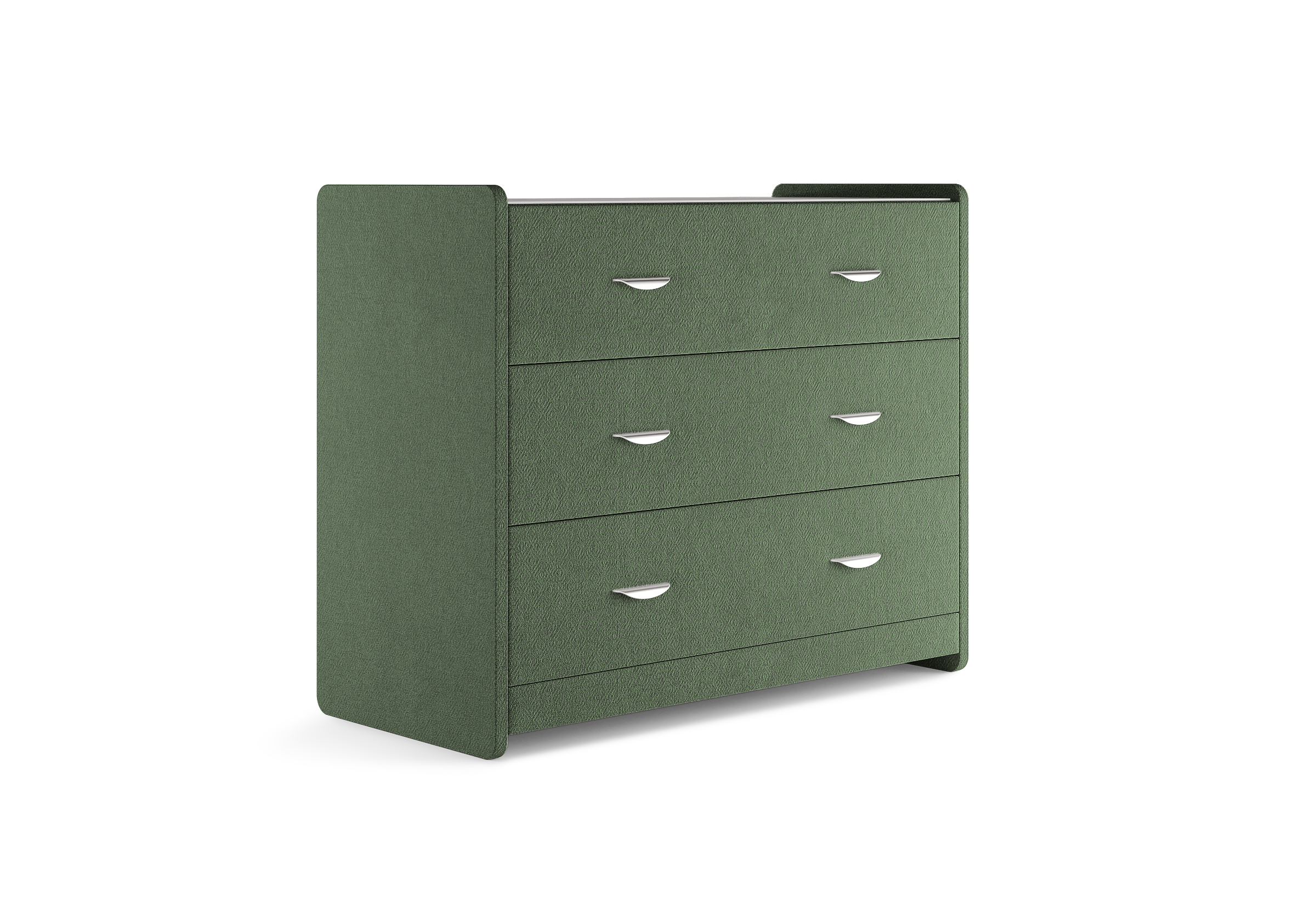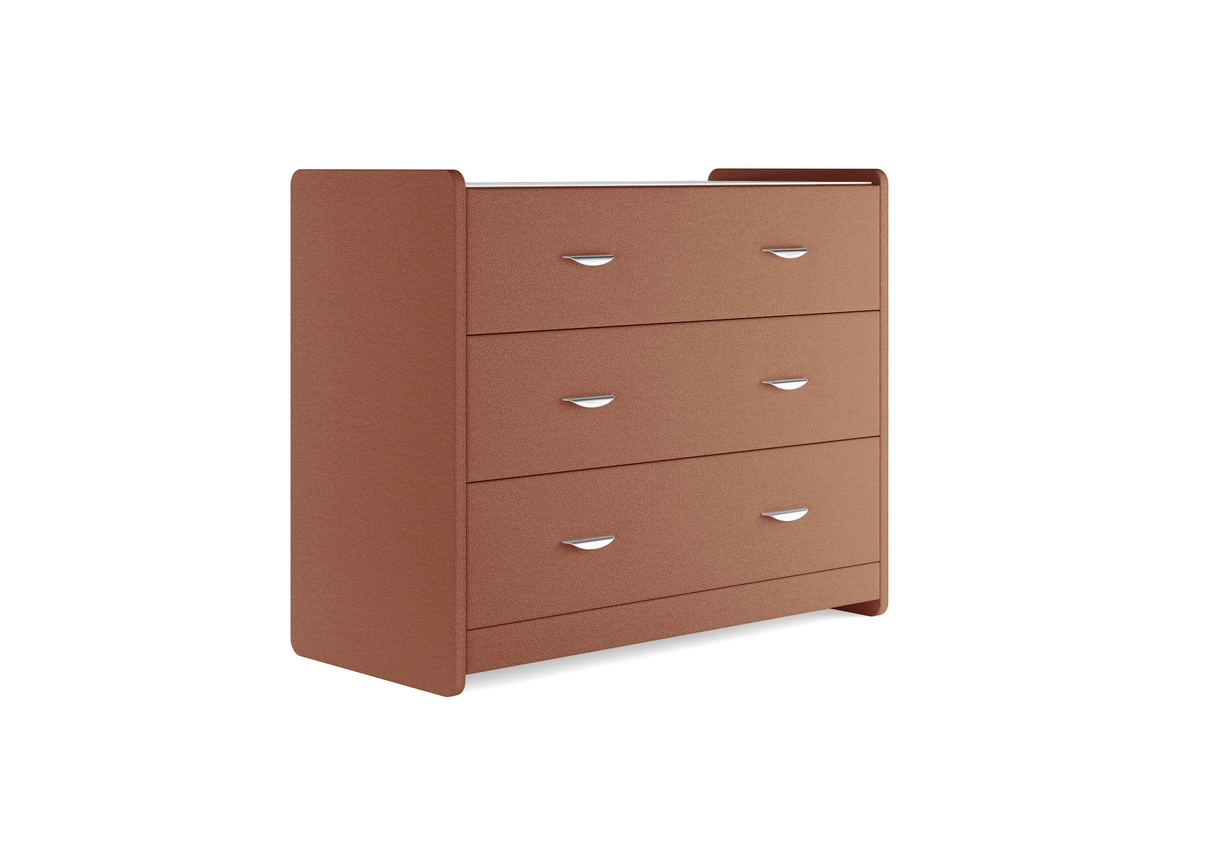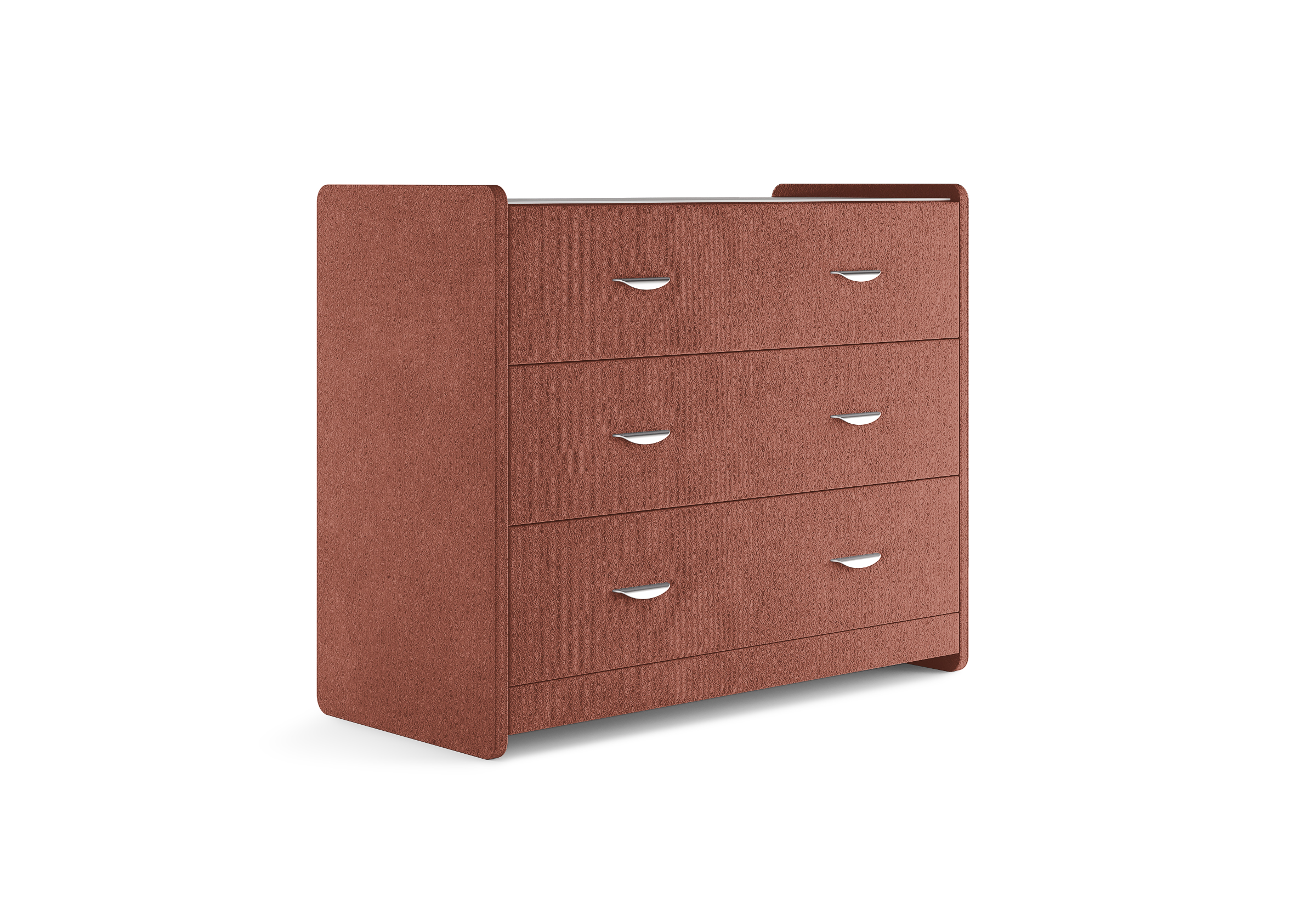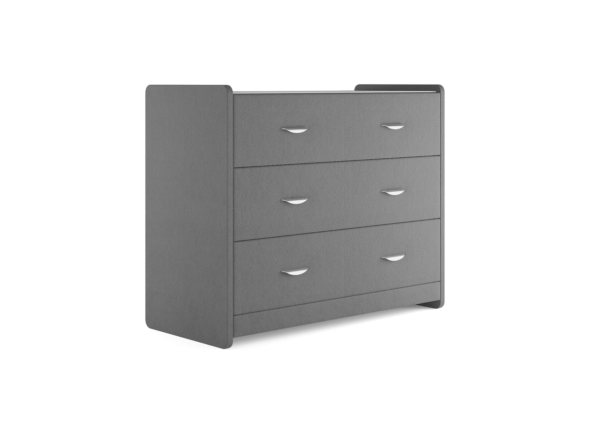 Современный и элегантный комод отличается повышенным удобством. Фасад ящиков и стенки комода покрыты обивочным материалом и выполняются в 43 вариантах цветового исполнения. Для удобства использования и продления срока эксплуатации, рекомендуется использовать стеклянную накладку. Накладка используется в качестве столешницы для тумбы и защищает ее от повреждений и загрязнений.