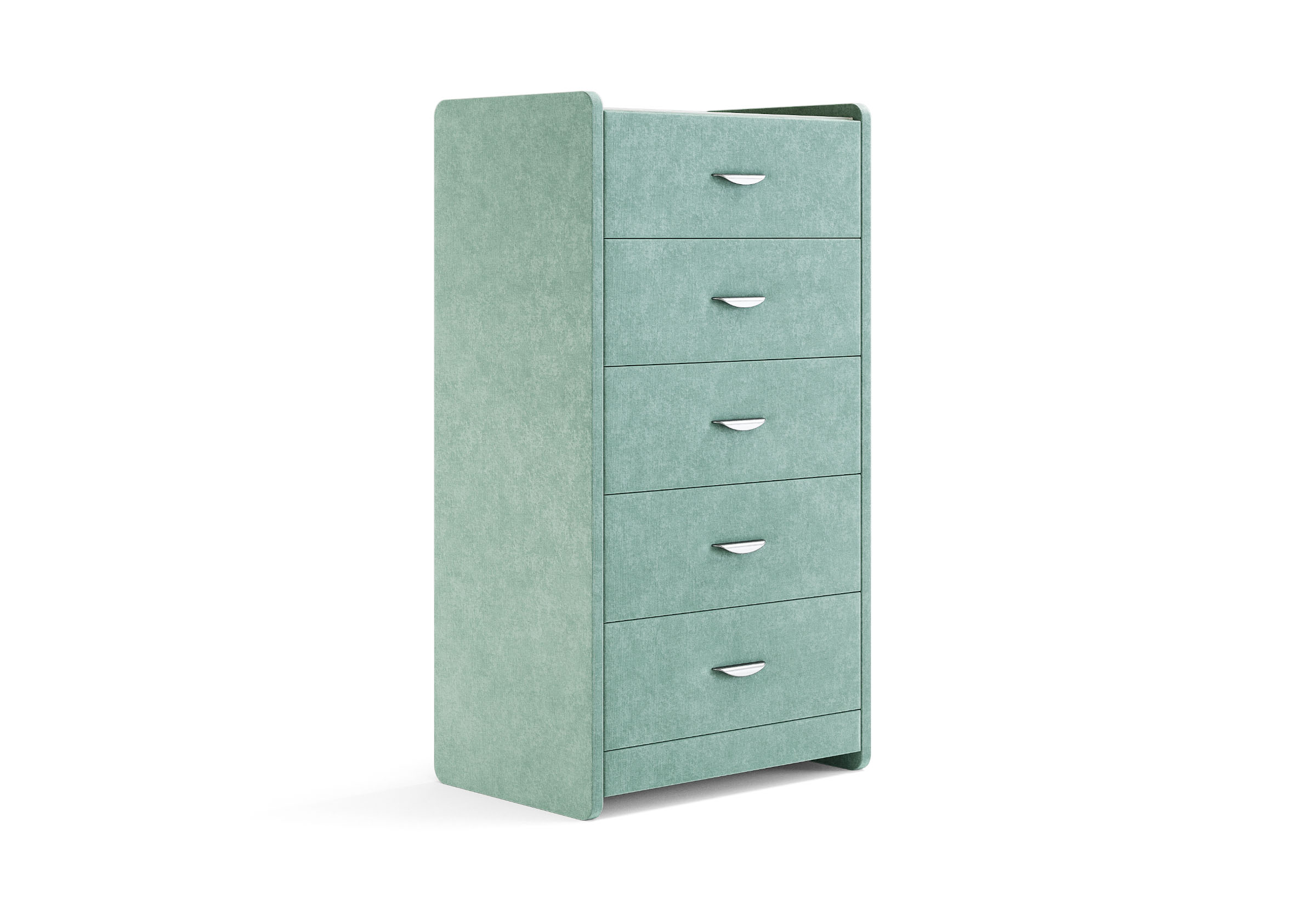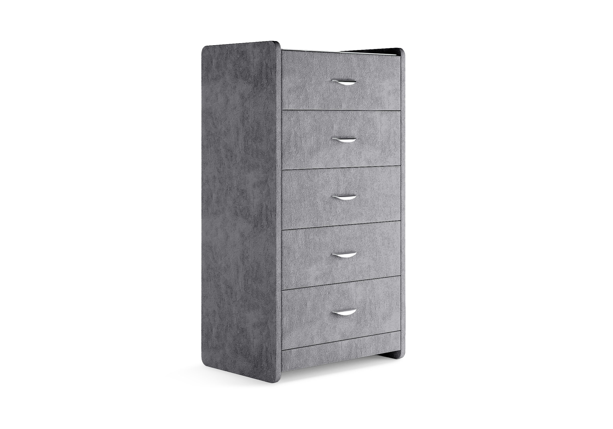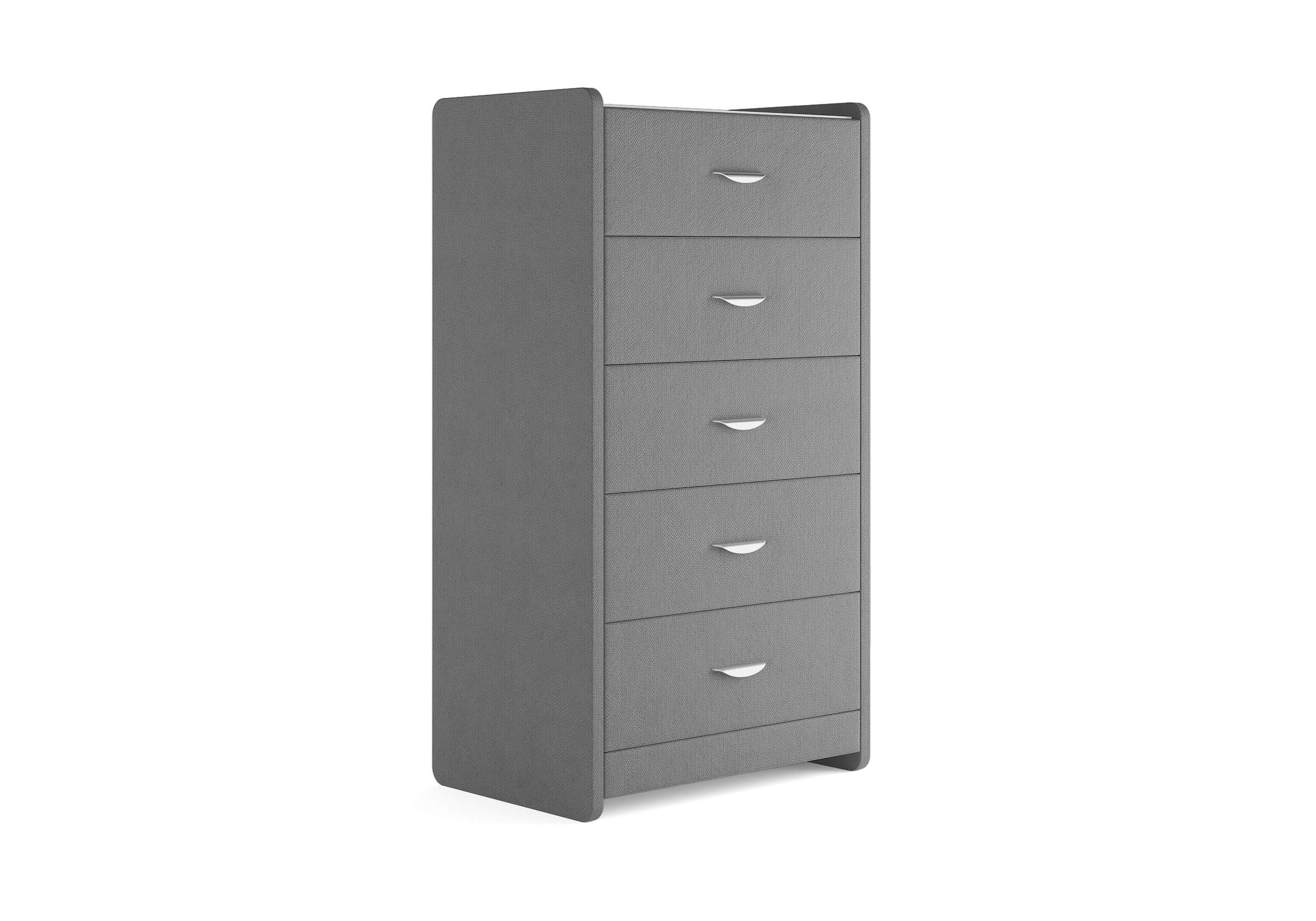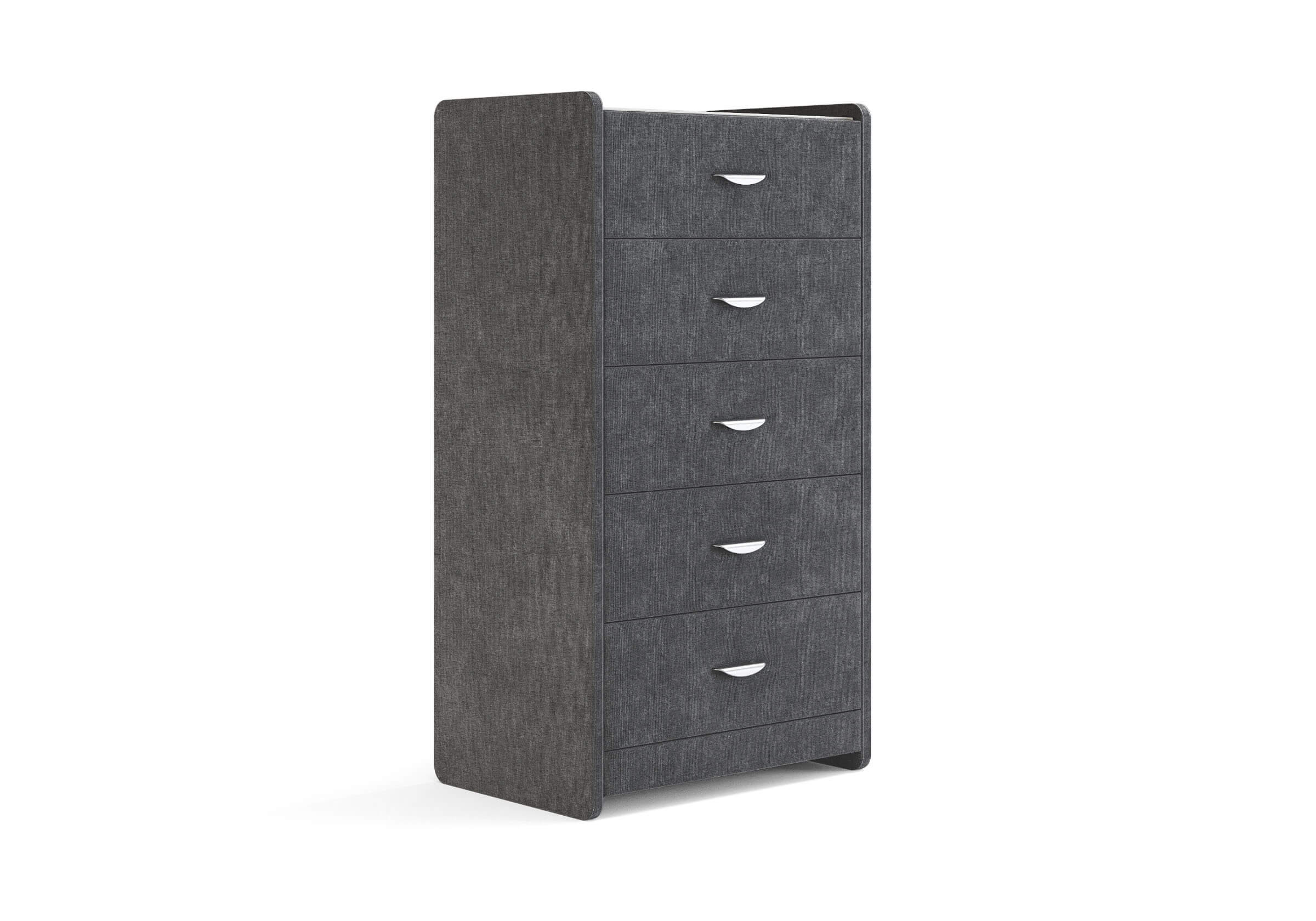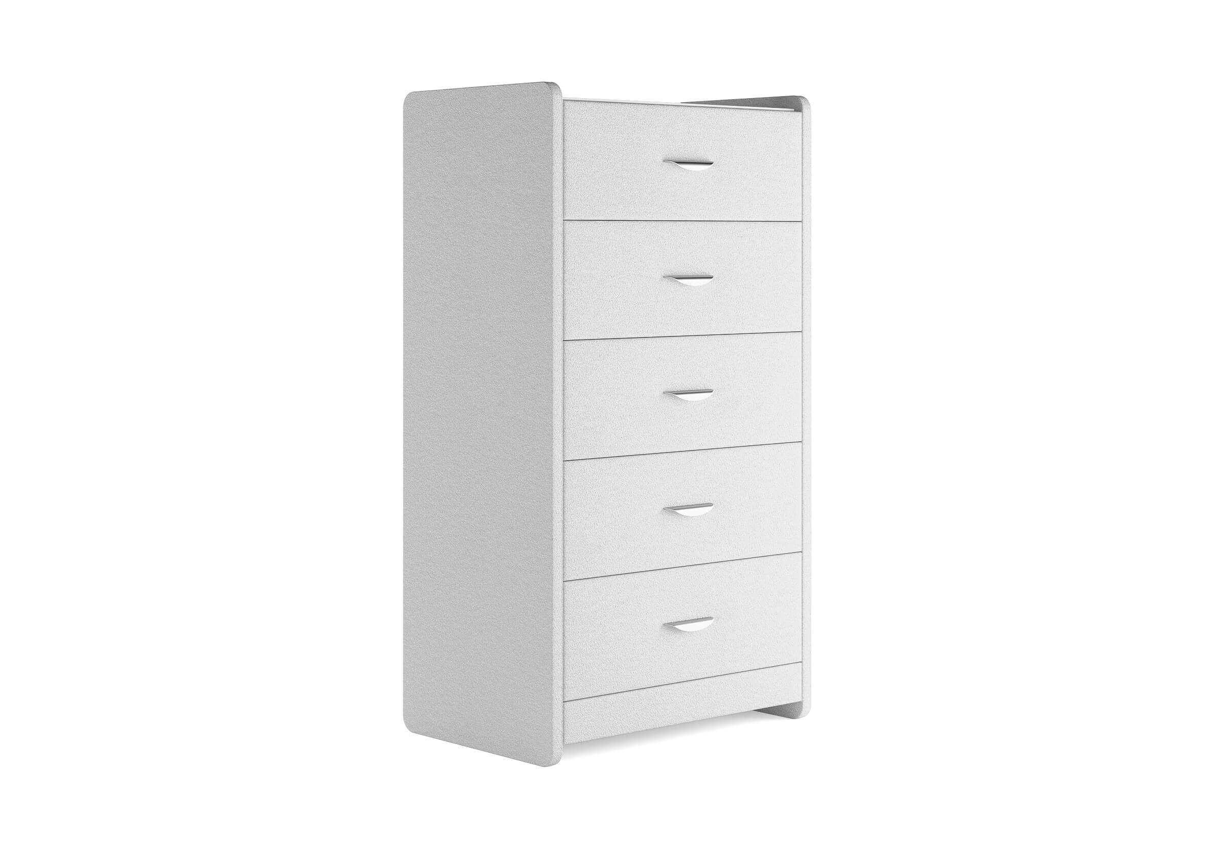 Комод с 5 ящиками сдержанного дизайна дополнит любой интерьер и сделает его более функциональным. Каркас комода и фасад ящиков покрыты обивочным материалом и выполняется в 43 вариантах цветового исполнения. Для удобства использования и продления срока эксплуатации, рекомендуется использовать стеклянную накладку. Накладка используется в качестве столешницы для тумбы и защищает ее от повреждений и загрязнений.