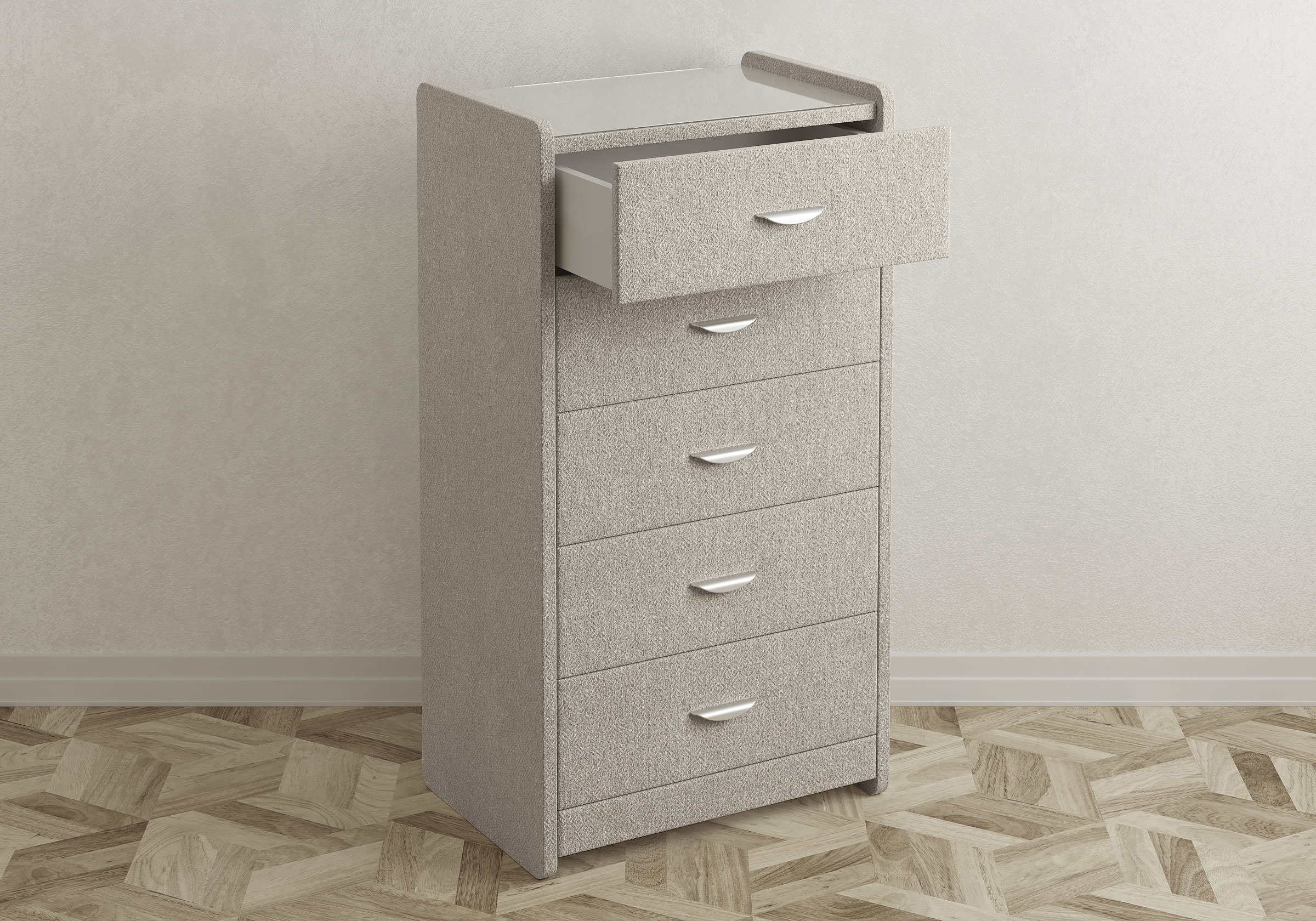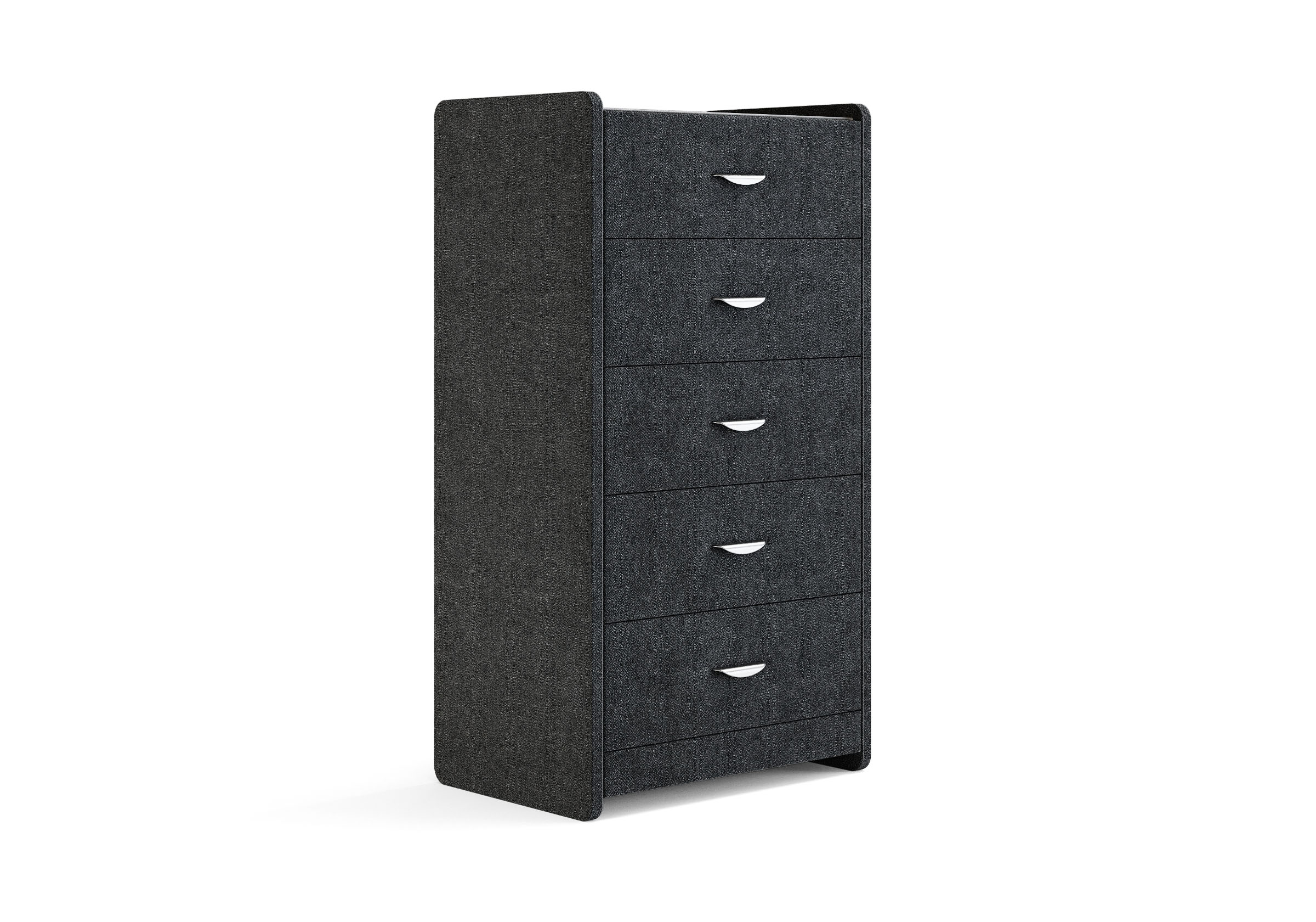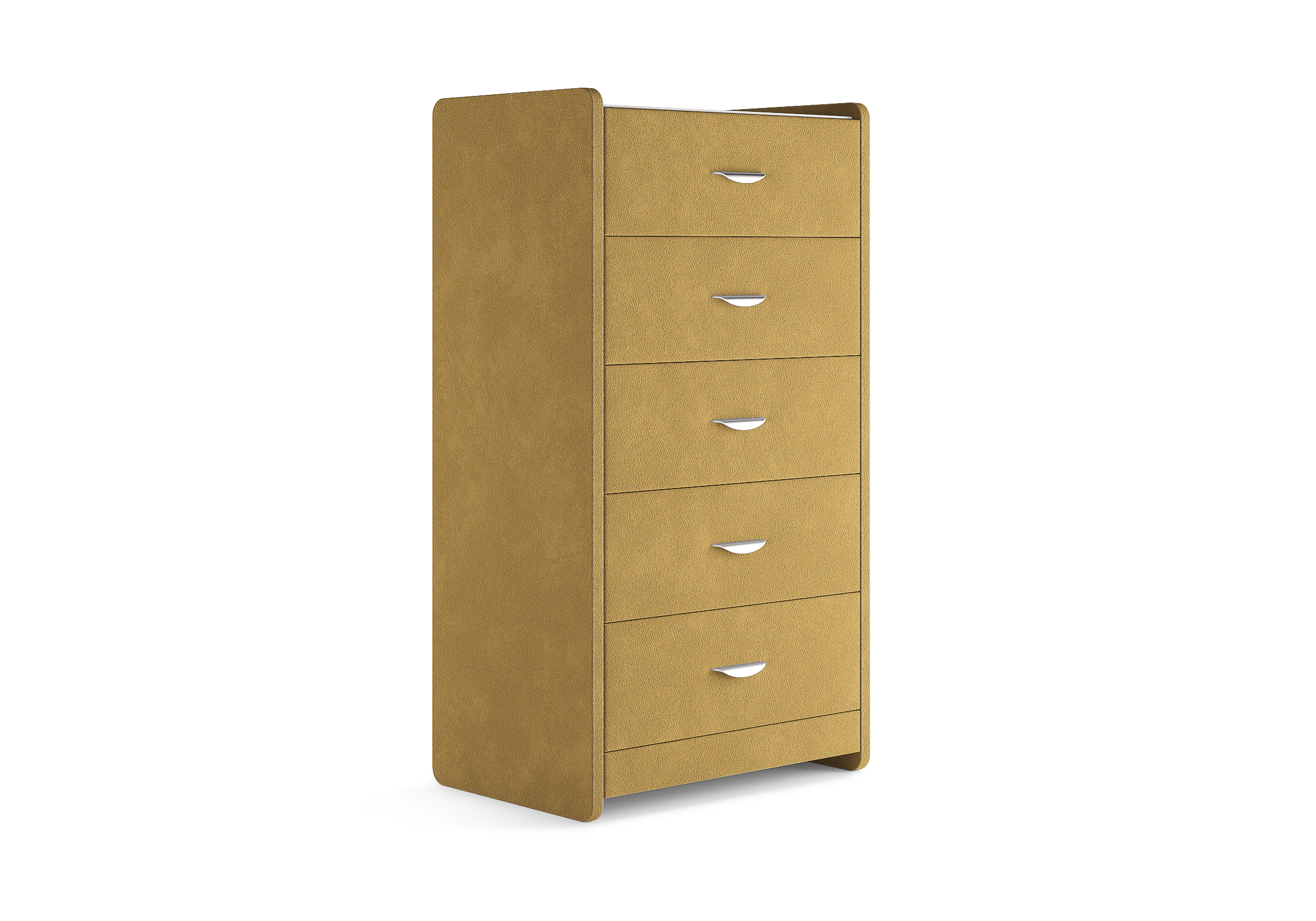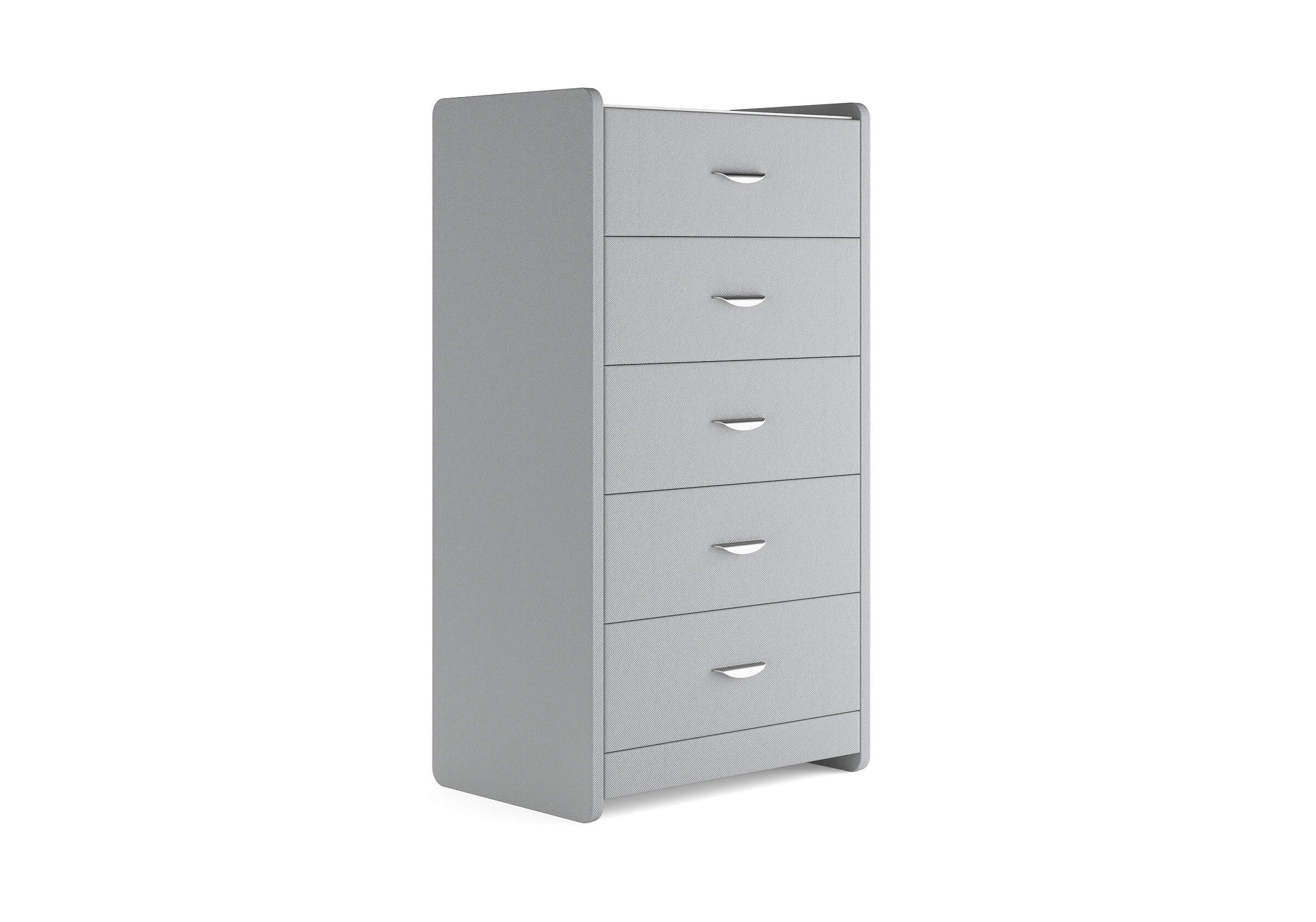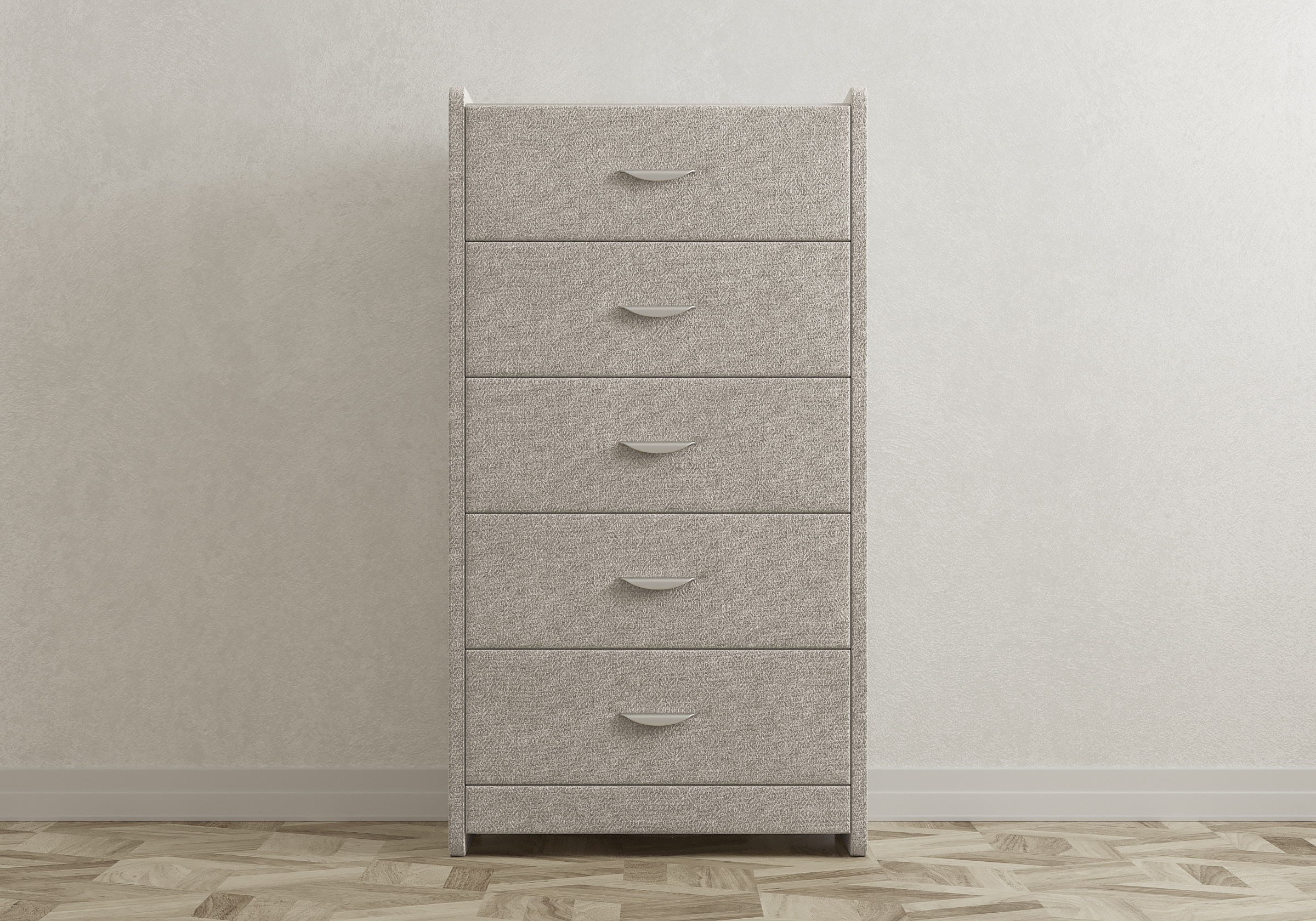 Комод с 5 ящиками сдержанного дизайна дополнит любой интерьер и сделает его более функциональным. Каркас комода и фасад ящиков покрыты обивочным материалом и выполняется в 43 вариантах цветового исполнения. Для удобства использования и продления срока эксплуатации, рекомендуется использовать стеклянную накладку. Накладка используется в качестве столешницы для тумбы и защищает ее от повреждений и загрязнений.