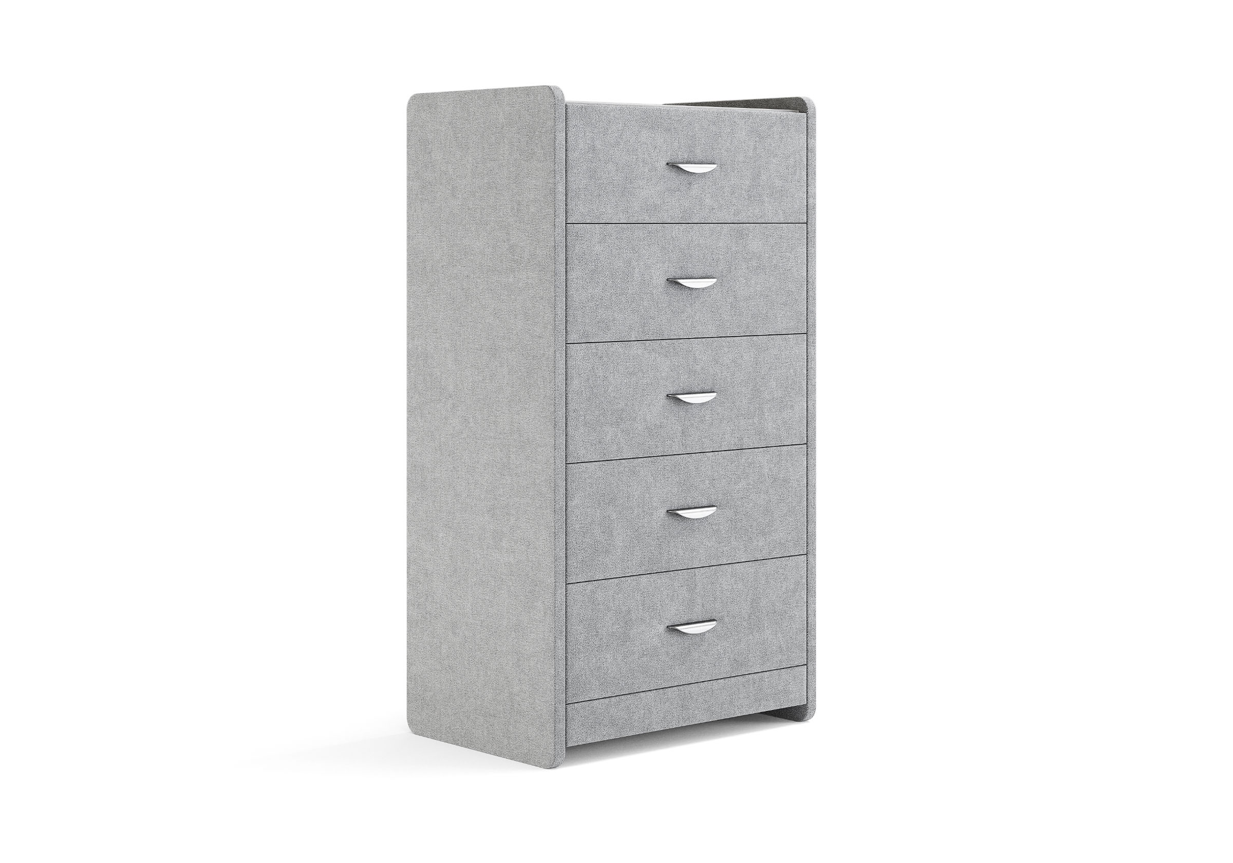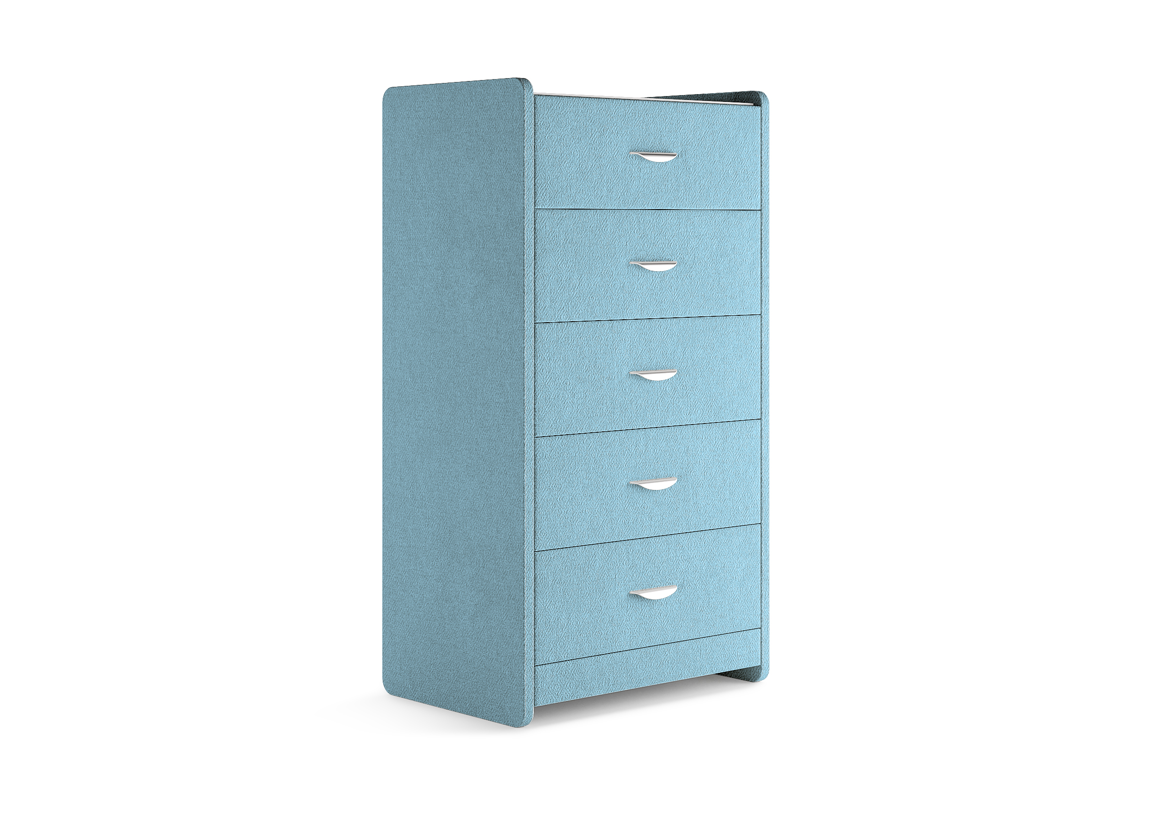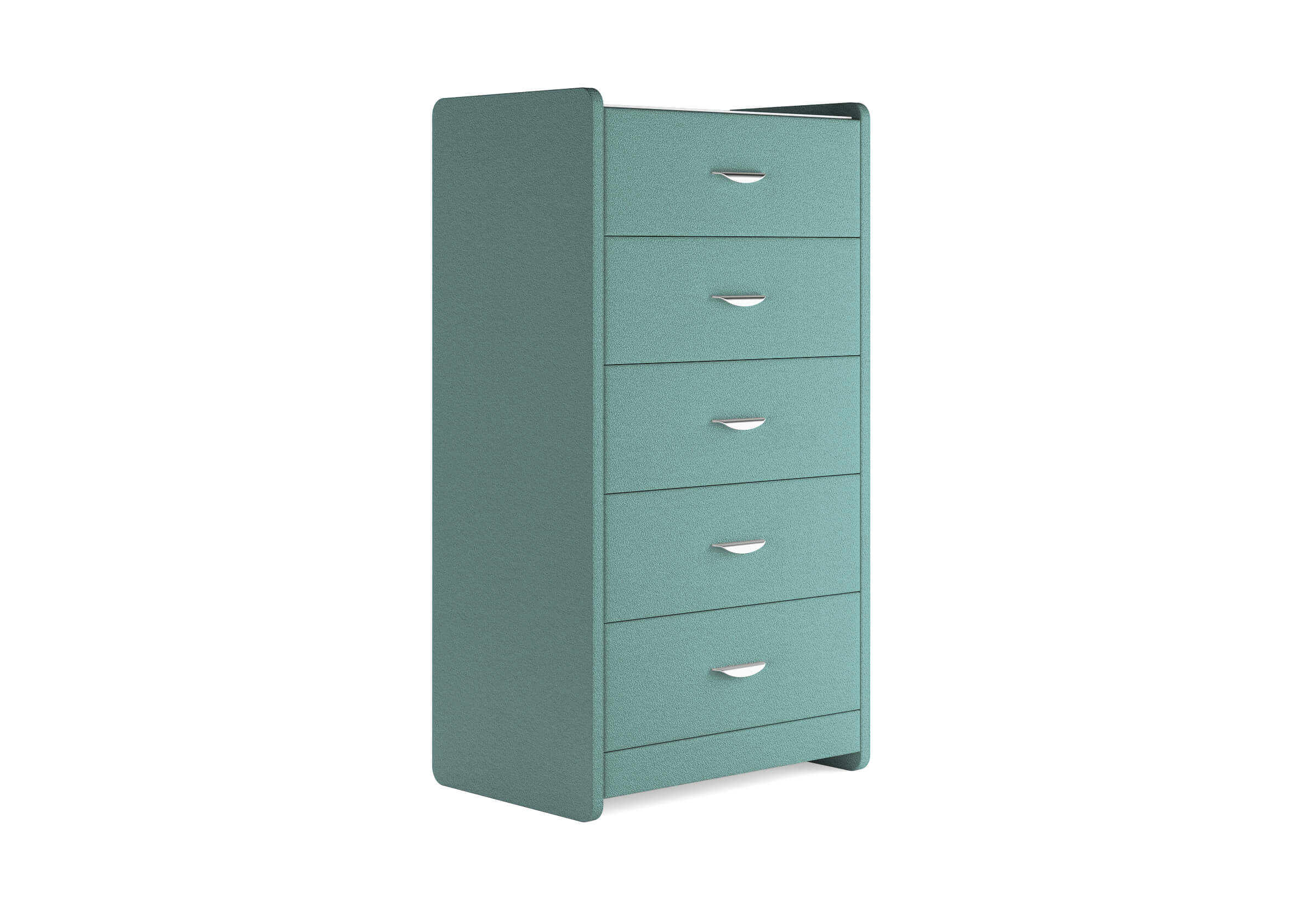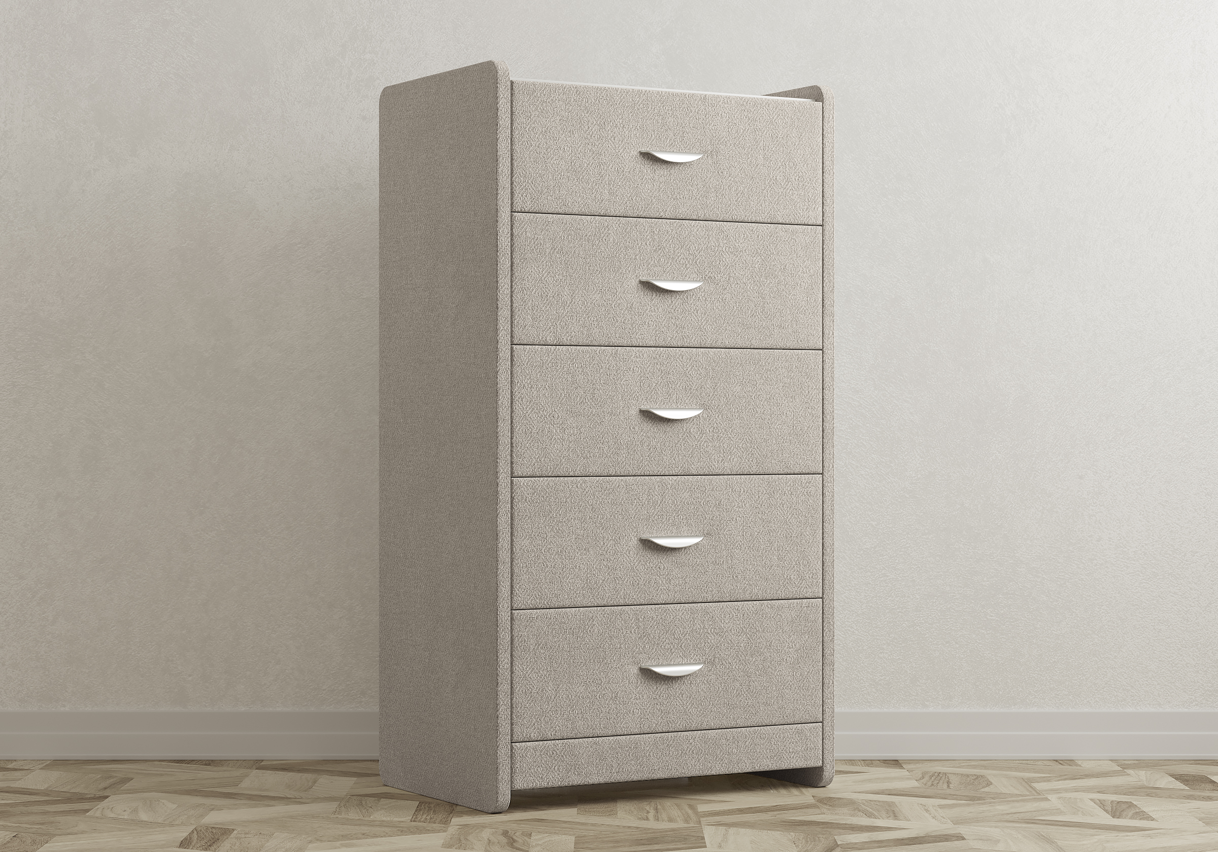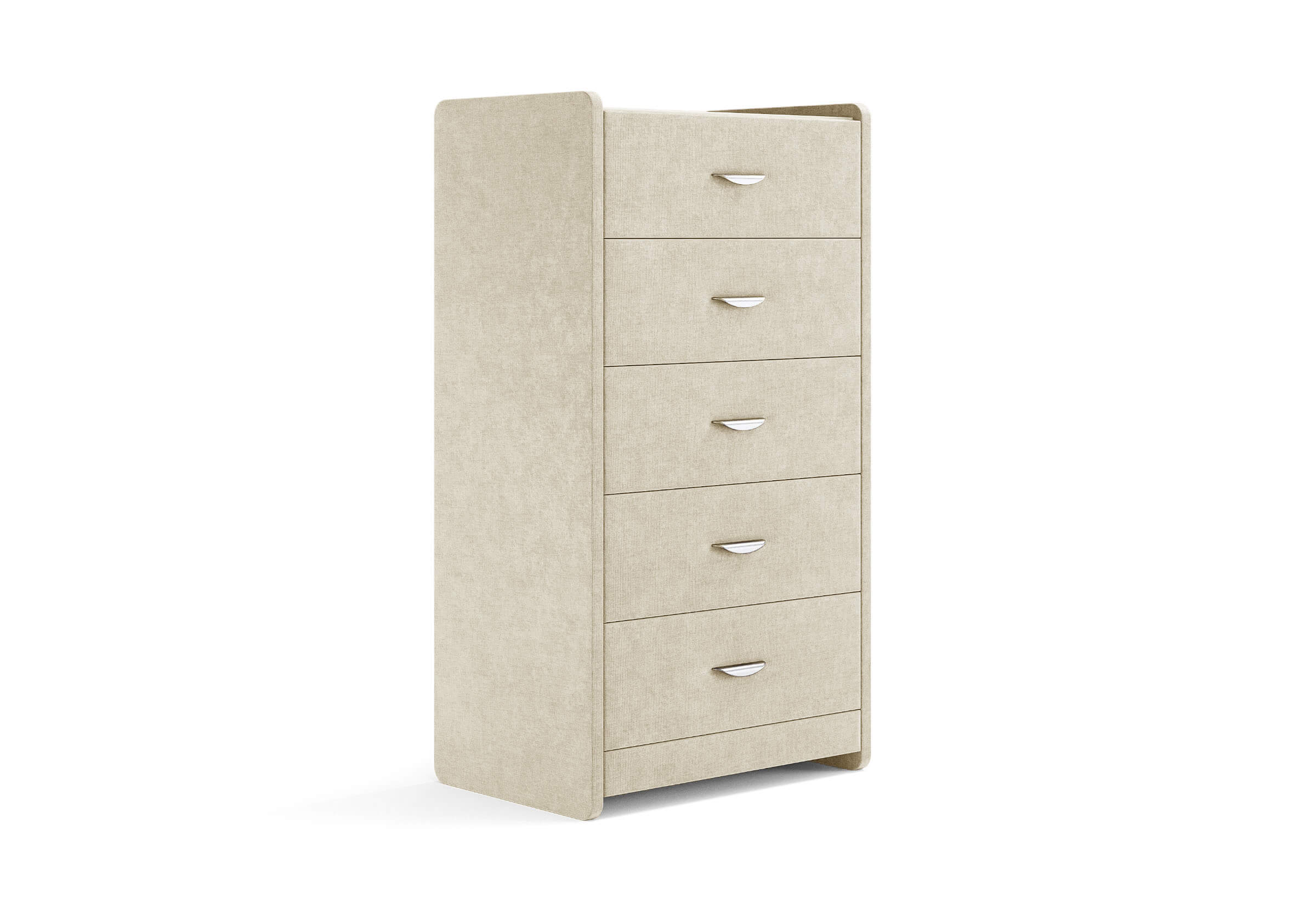 Комод с 5 ящиками сдержанного дизайна дополнит любой интерьер и сделает его более функциональным. Каркас комода и фасад ящиков покрыты обивочным материалом и выполняется в 43 вариантах цветового исполнения. Для удобства использования и продления срока эксплуатации, рекомендуется использовать стеклянную накладку. Накладка используется в качестве столешницы для тумбы и защищает ее от повреждений и загрязнений.
