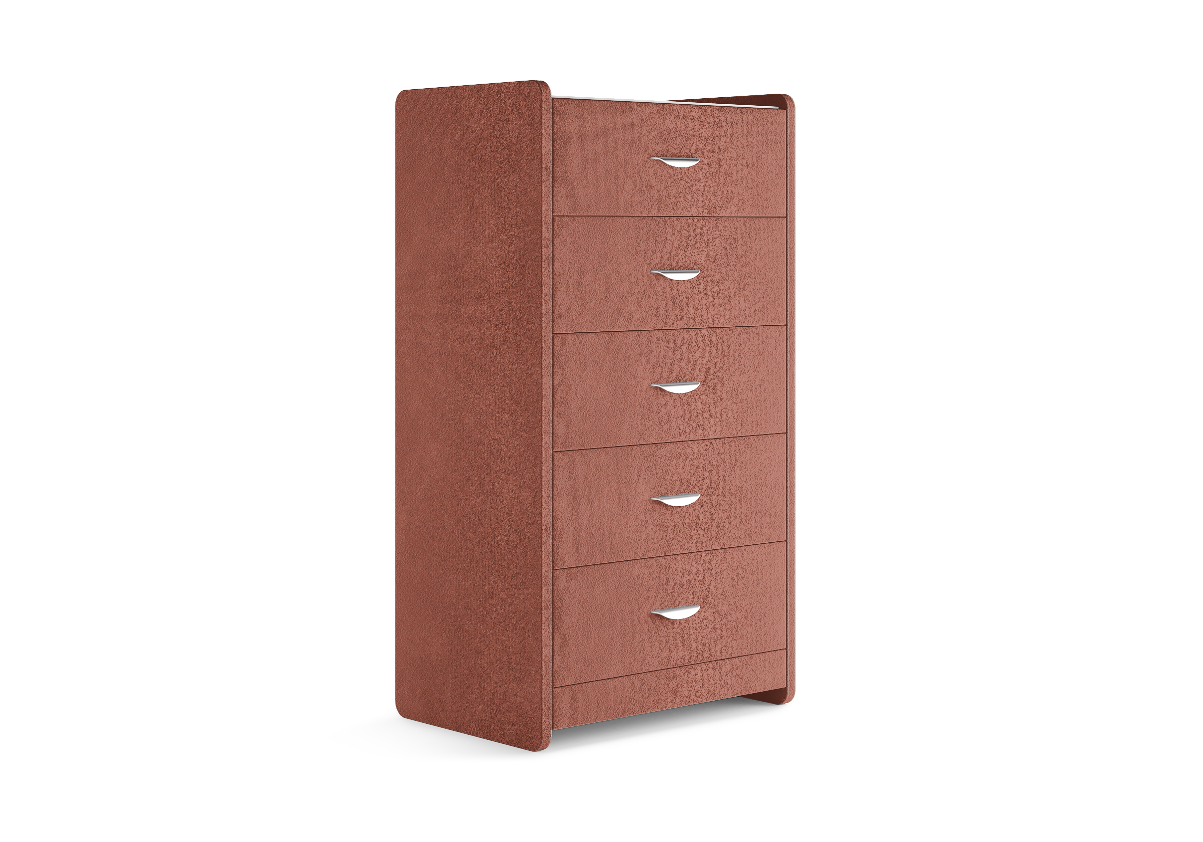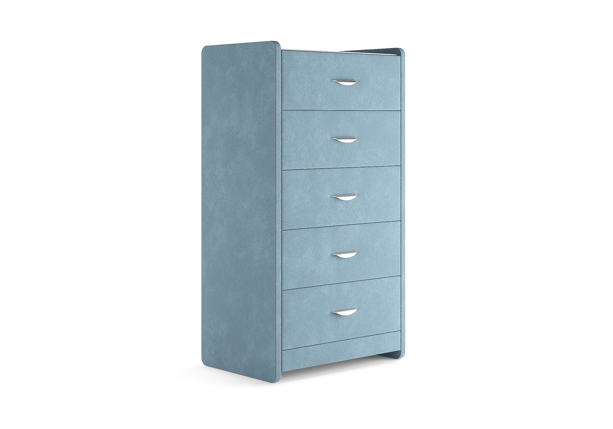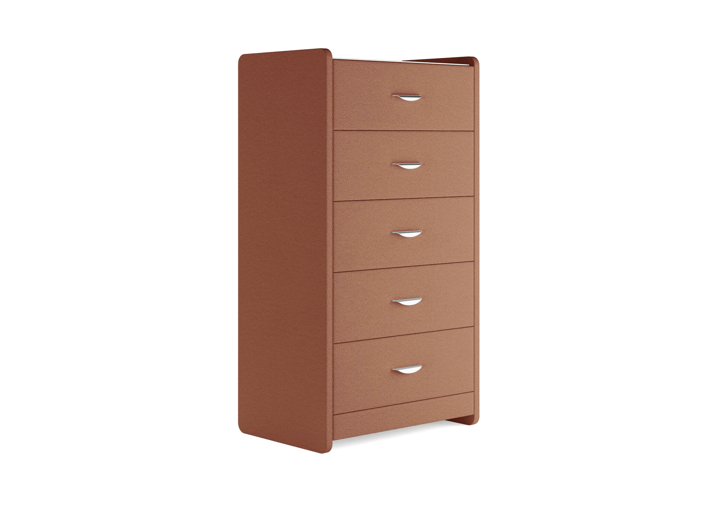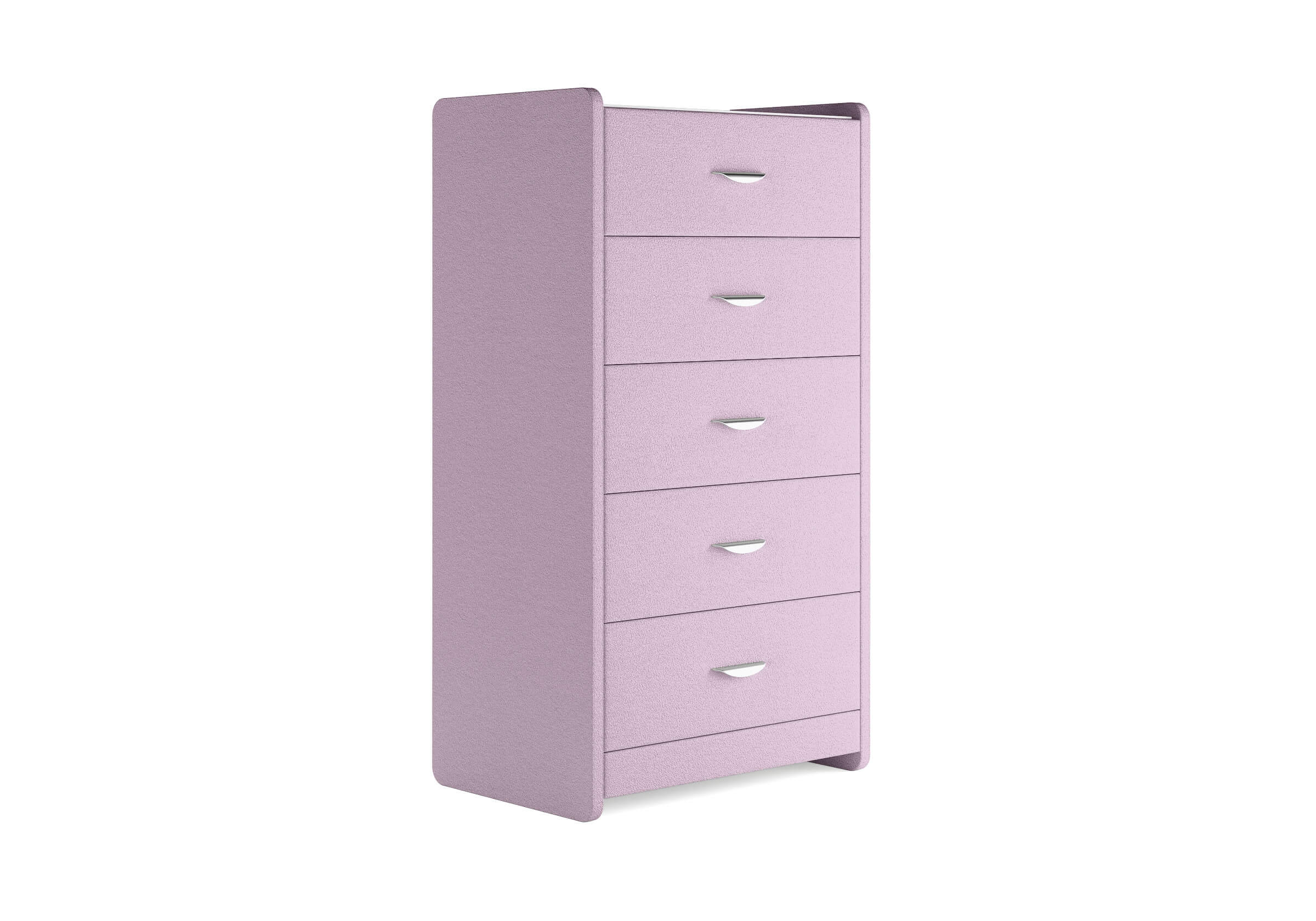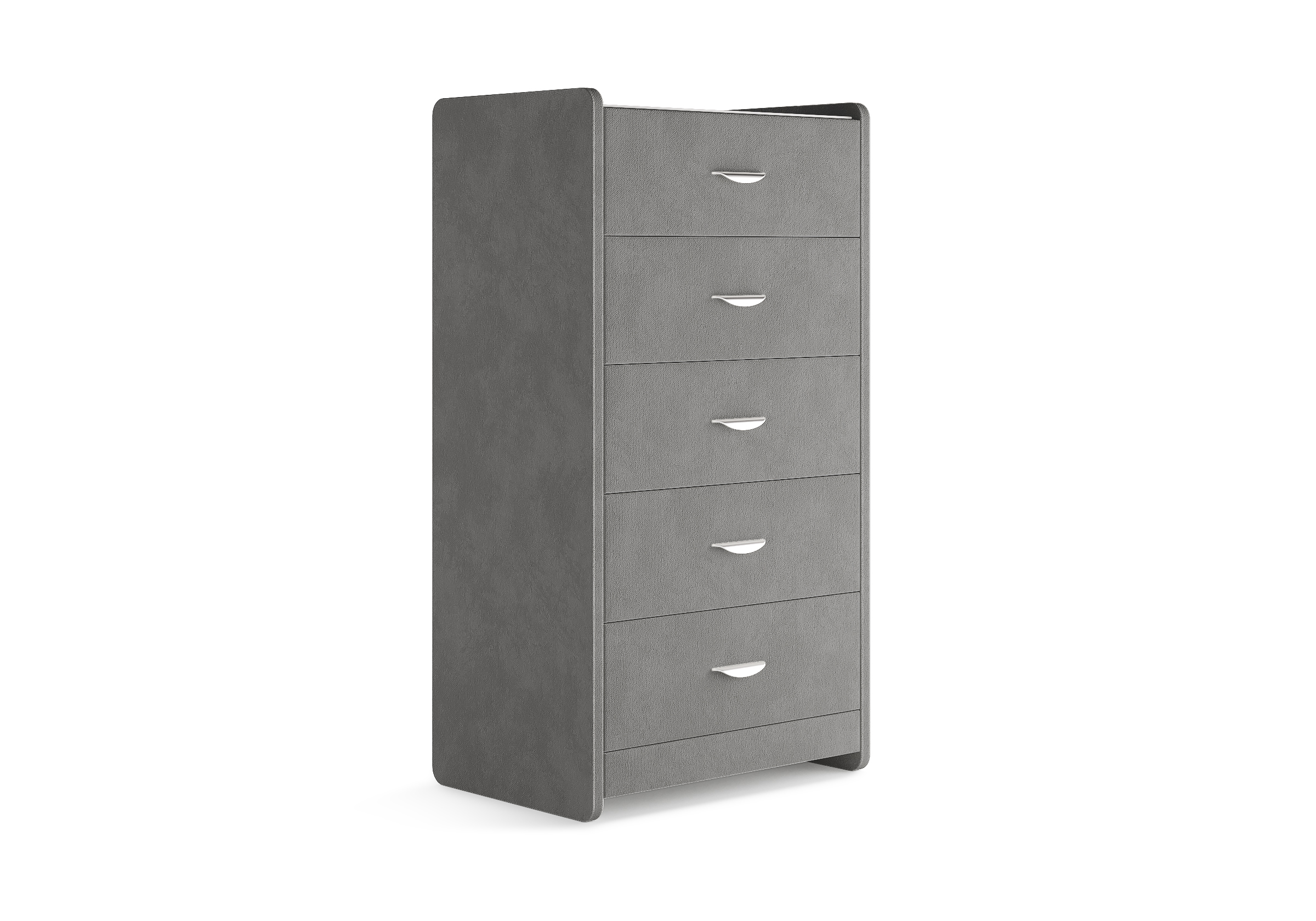 Комод с 5 ящиками сдержанного дизайна дополнит любой интерьер и сделает его более функциональным. Каркас комода и фасад ящиков покрыты обивочным материалом и выполняется в 43 вариантах цветового исполнения. Для удобства использования и продления срока эксплуатации, рекомендуется использовать стеклянную накладку. Накладка используется в качестве столешницы для тумбы и защищает ее от повреждений и загрязнений.