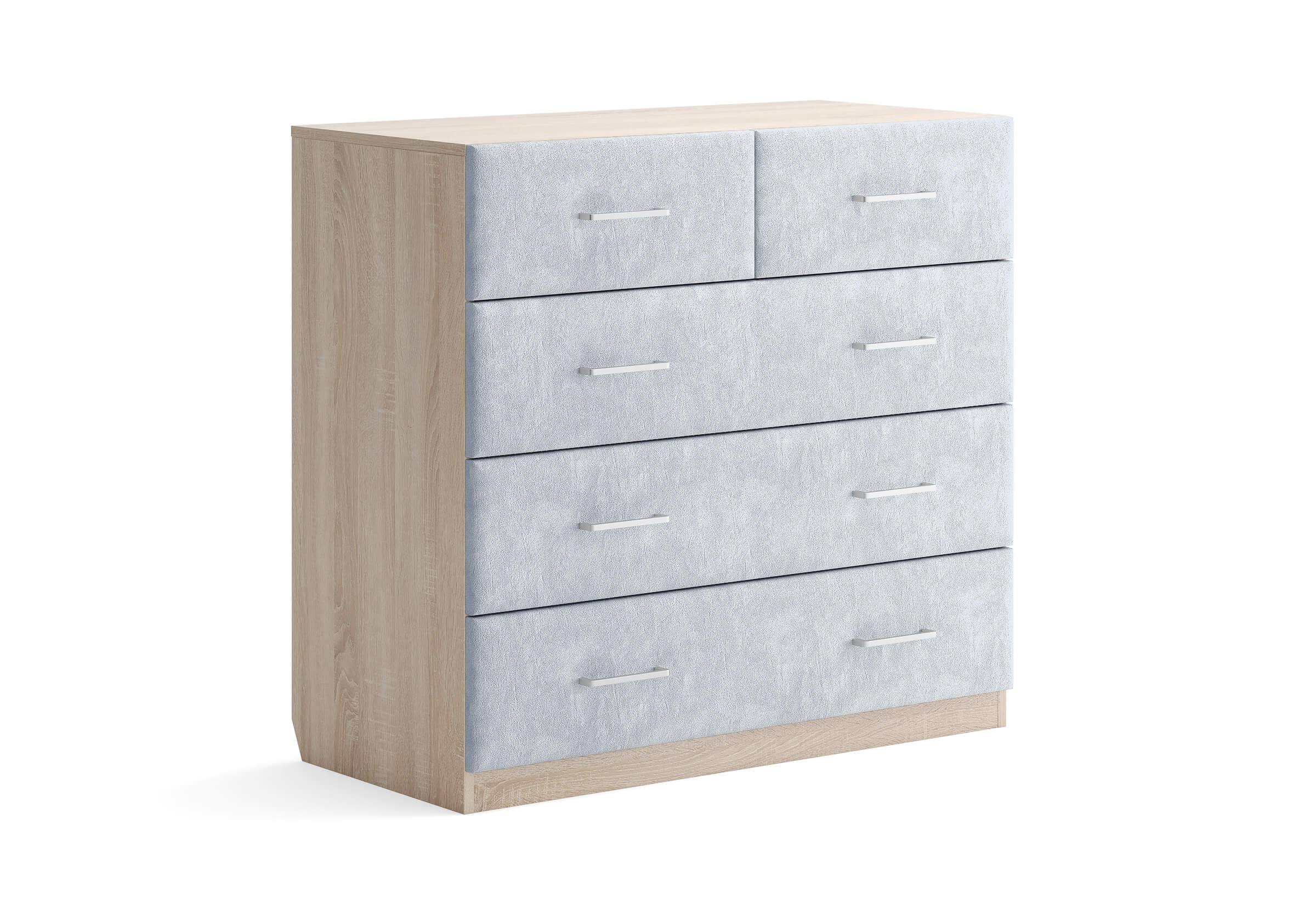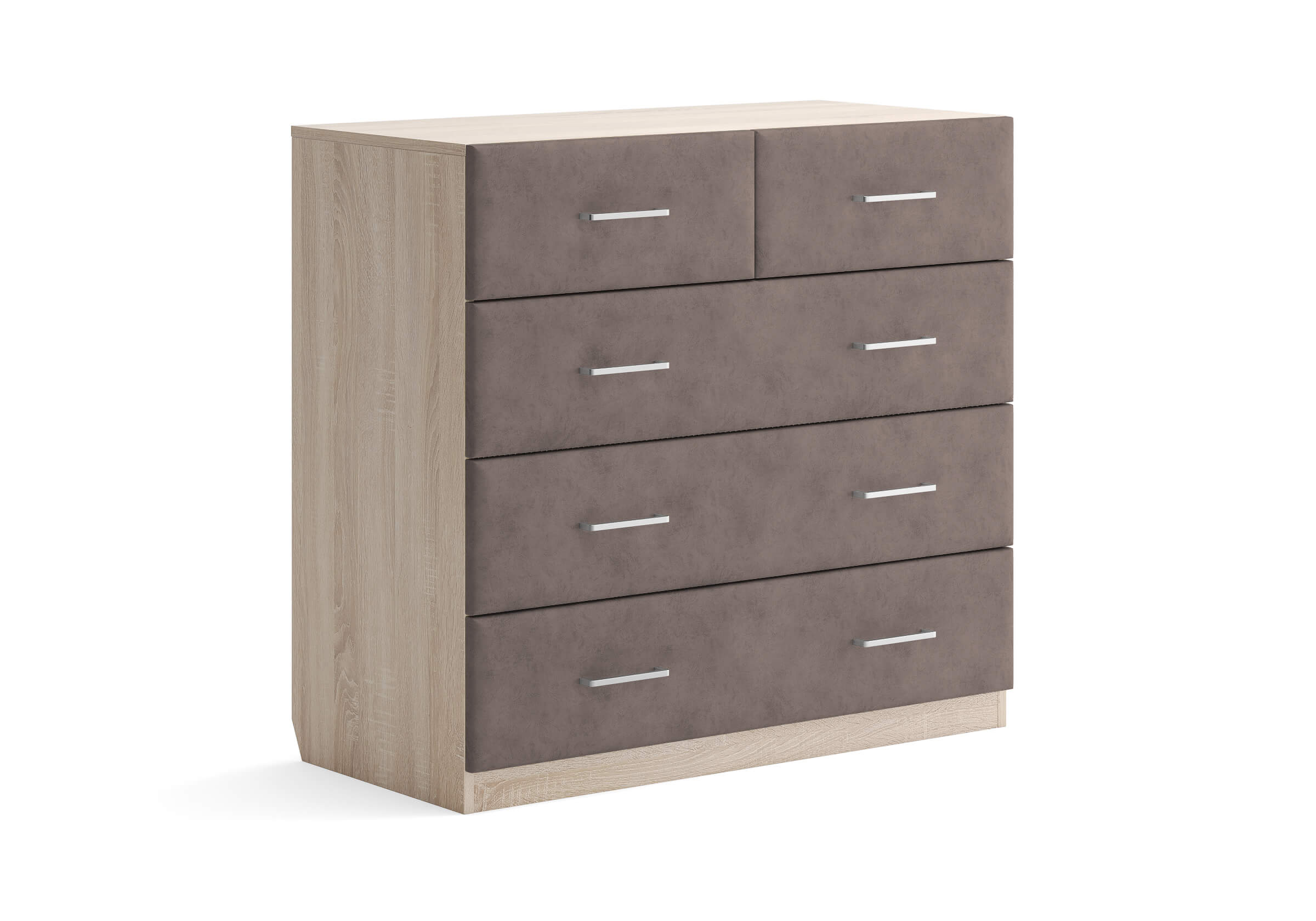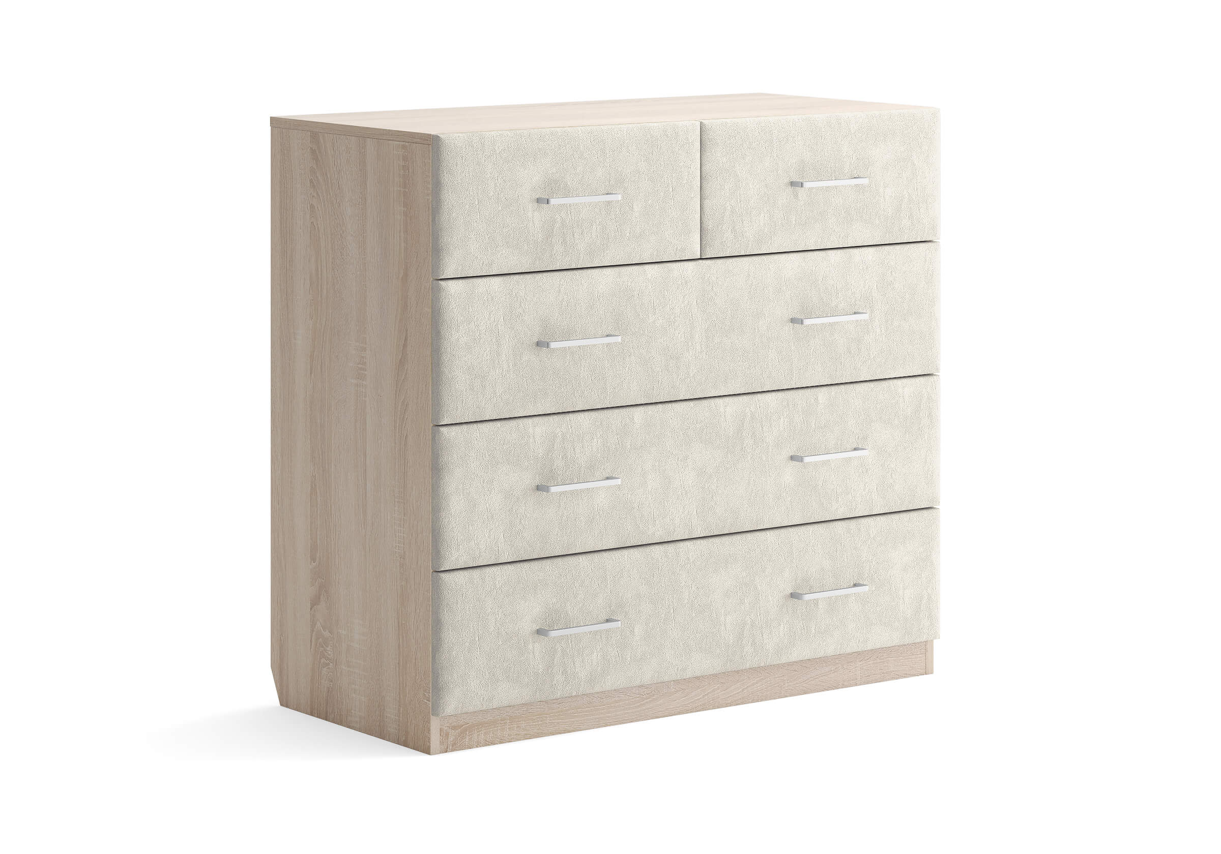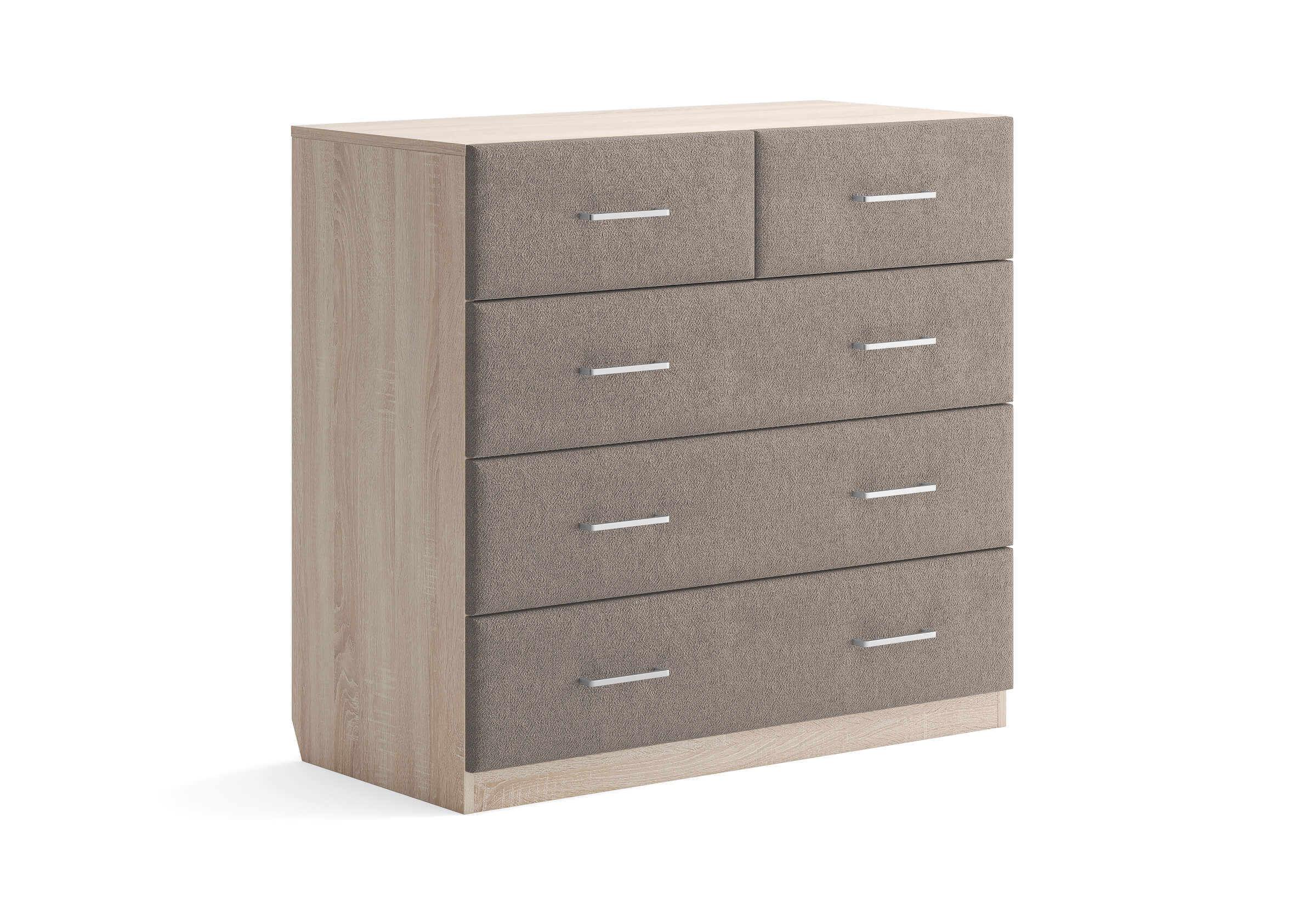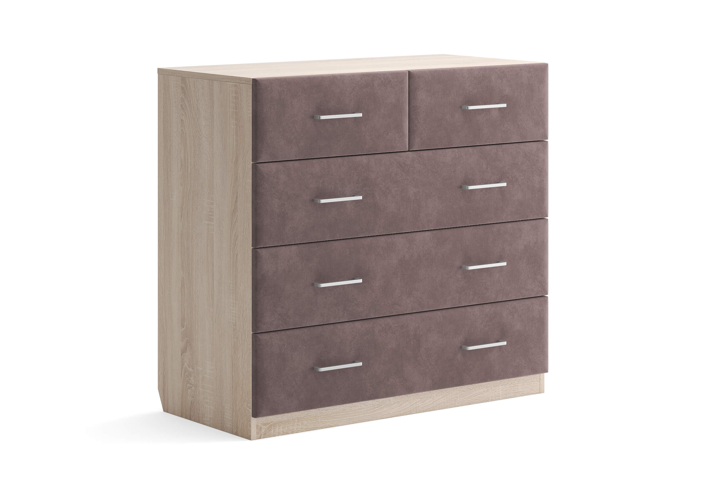 Комбинированный комод Tomas с пятью вместительными ящиками станет элегантным дополнением интерьера. Корпус, выполненный из высококачественной ЛДСП, гарантирует прочность и долговечность, а мягкие фасады в ткани и изящные металлические ручки добавят уют. Комод имеет скос под плинтус, это позволяет устанавливать его вплотную к стене. Благодаря своему дизайну и широкому выбору вариантов исполнения комод можно разместить не только в спальне, но и в прихожей или гостиной.
