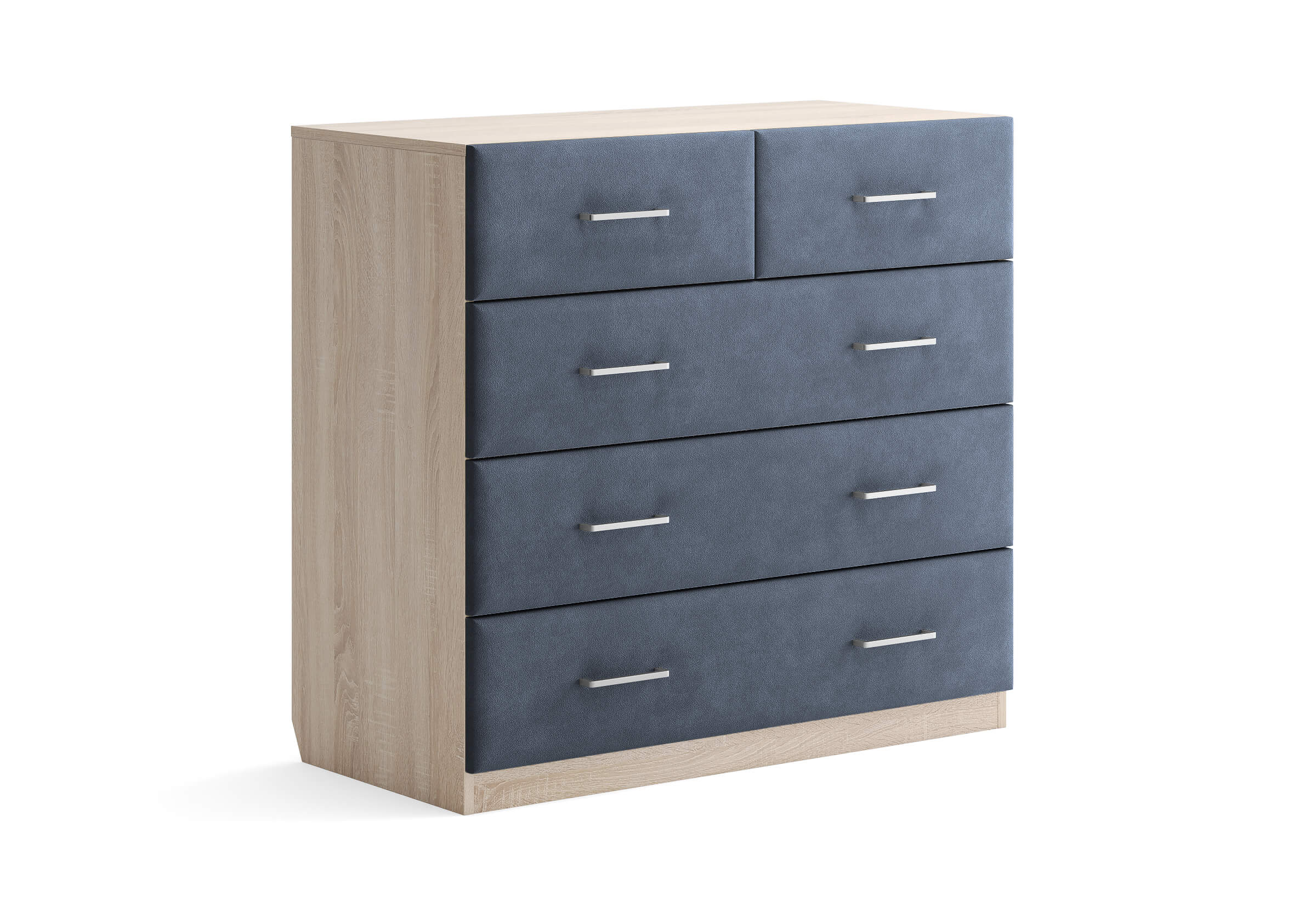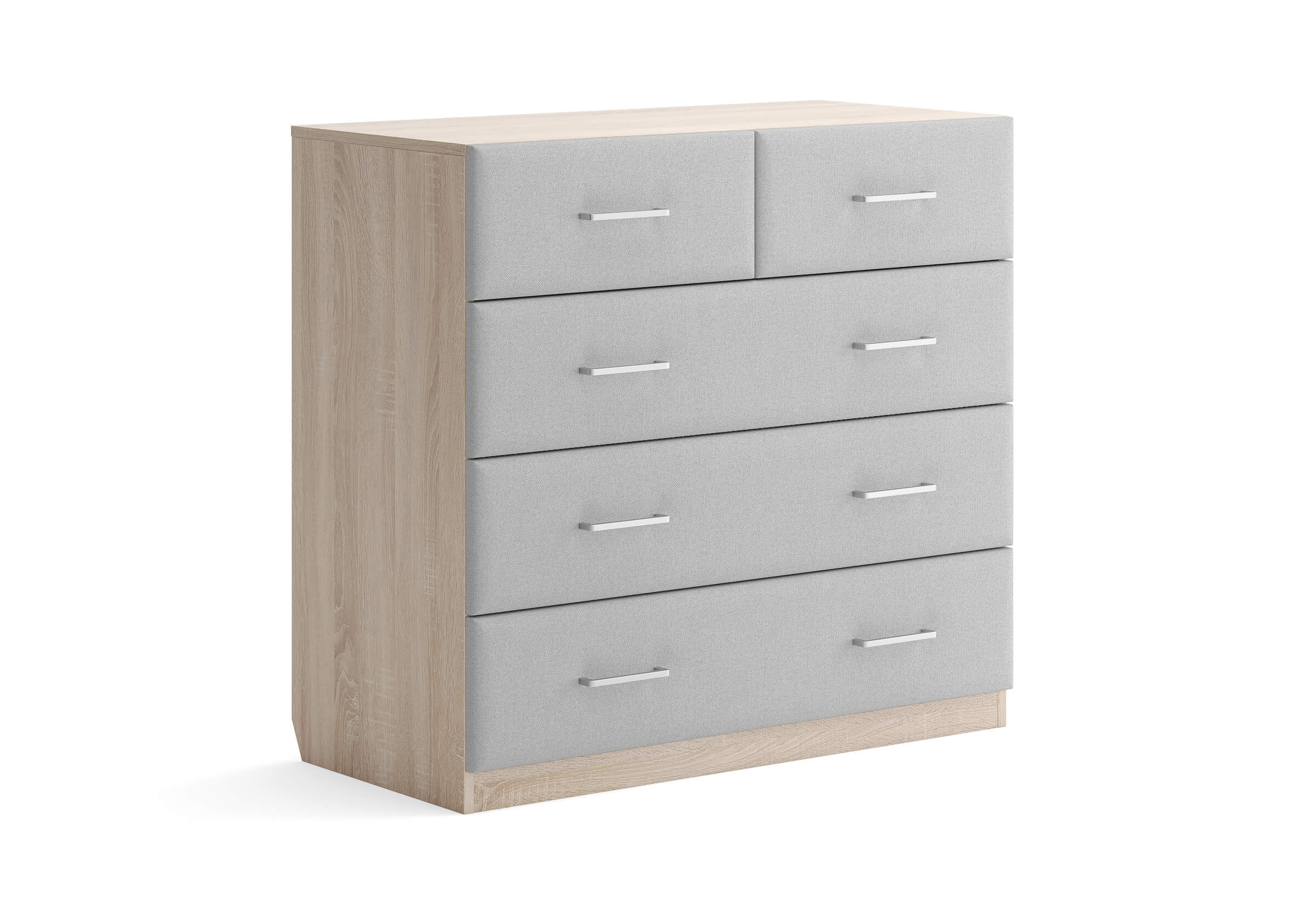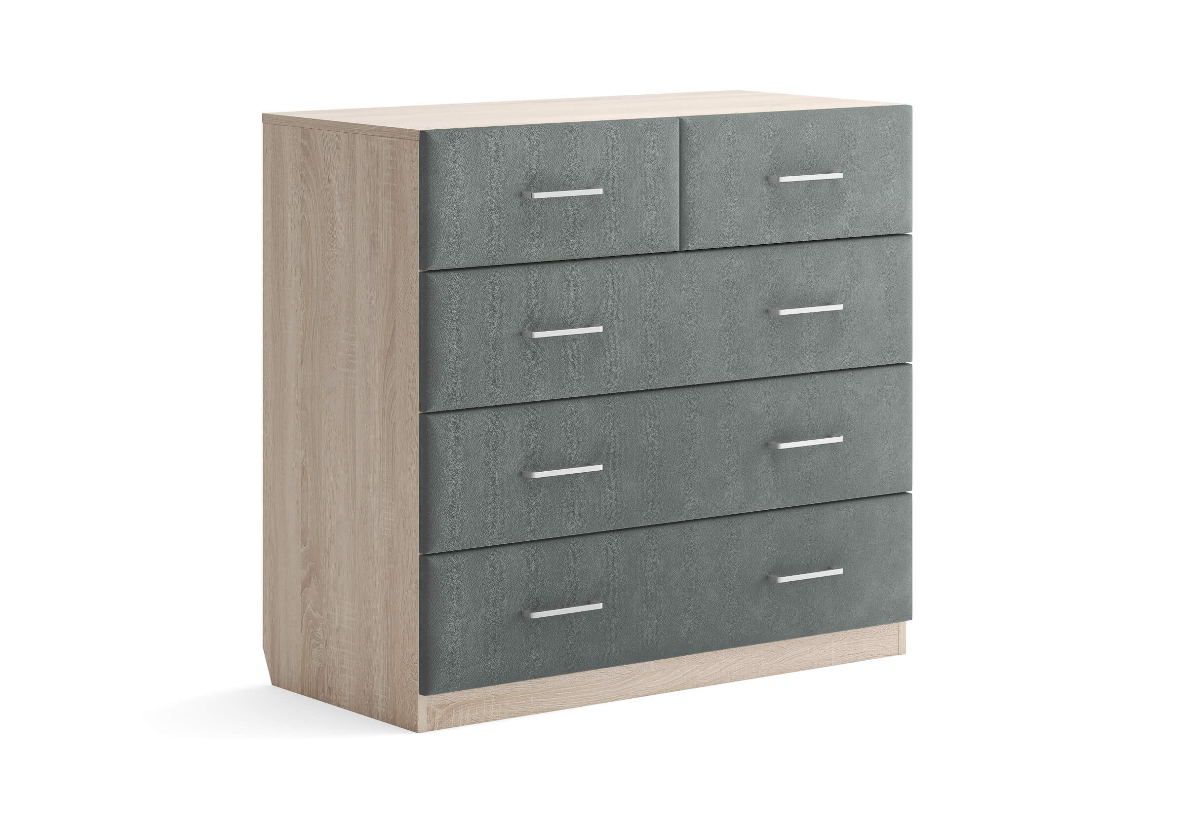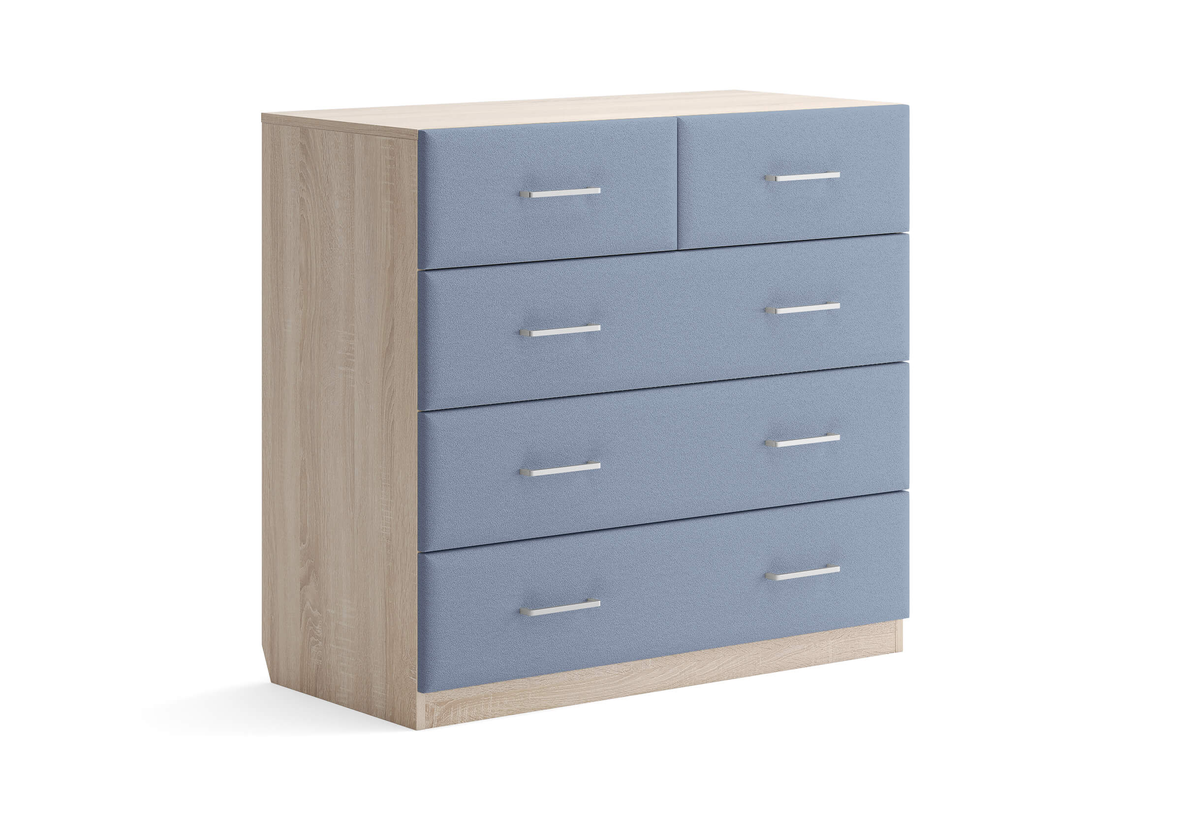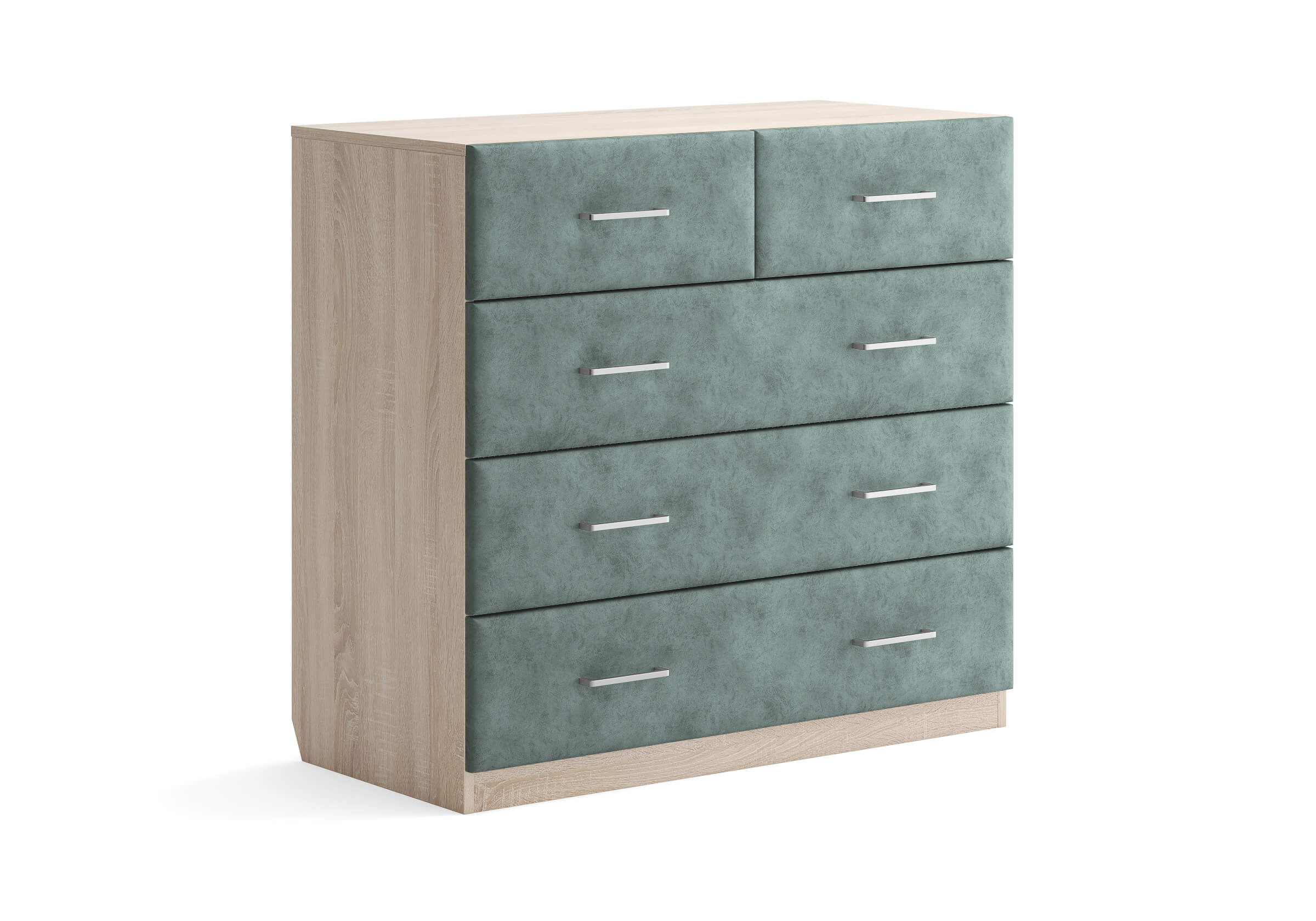 Комбинированный комод Tomas с пятью вместительными ящиками станет элегантным дополнением интерьера. Корпус, выполненный из высококачественной ЛДСП, гарантирует прочность и долговечность, а мягкие фасады в ткани и изящные металлические ручки добавят уют. Комод имеет скос под плинтус, это позволяет устанавливать его вплотную к стене. Благодаря своему дизайну и широкому выбору вариантов исполнения комод можно разместить не только в спальне, но и в прихожей или гостиной.